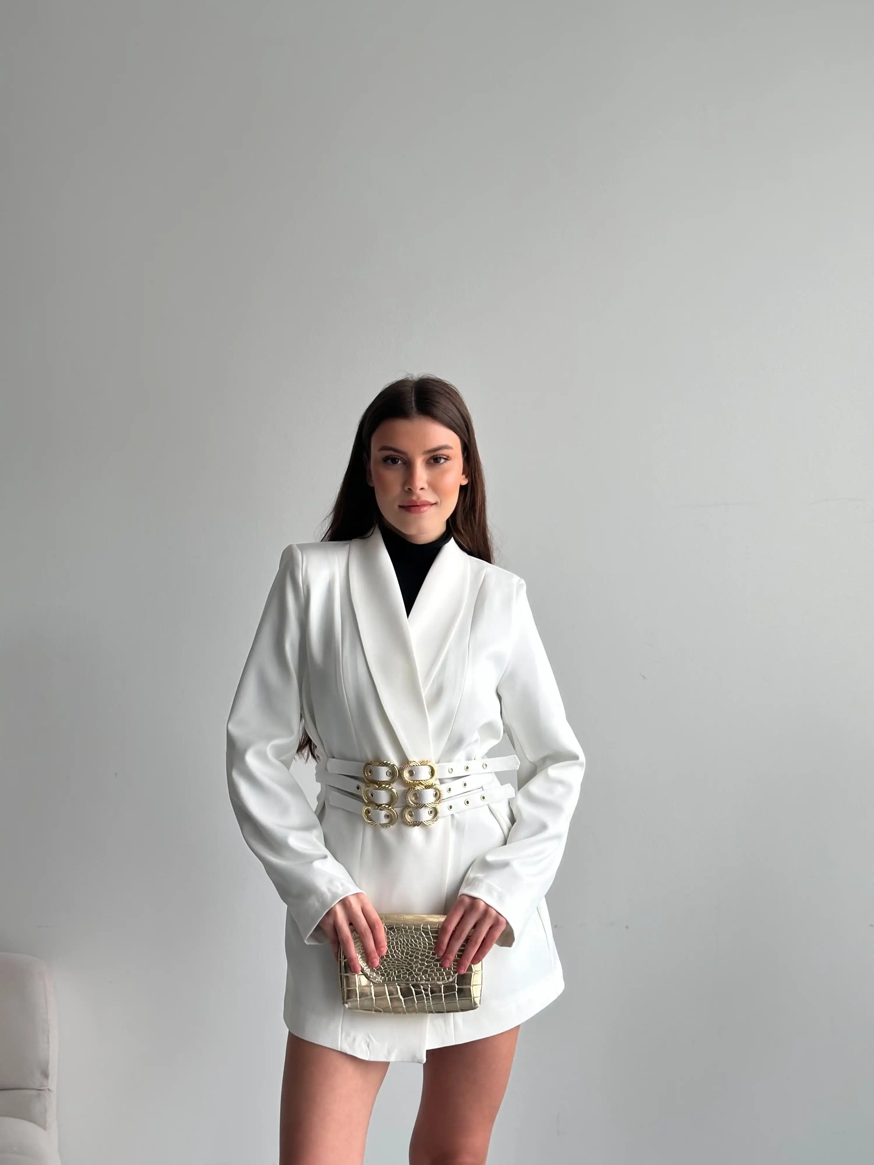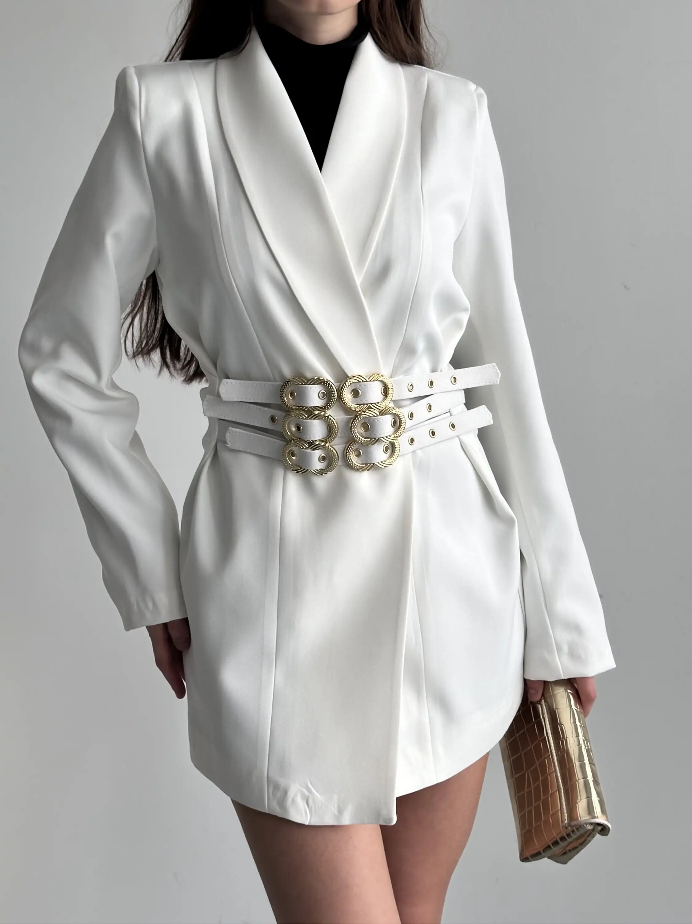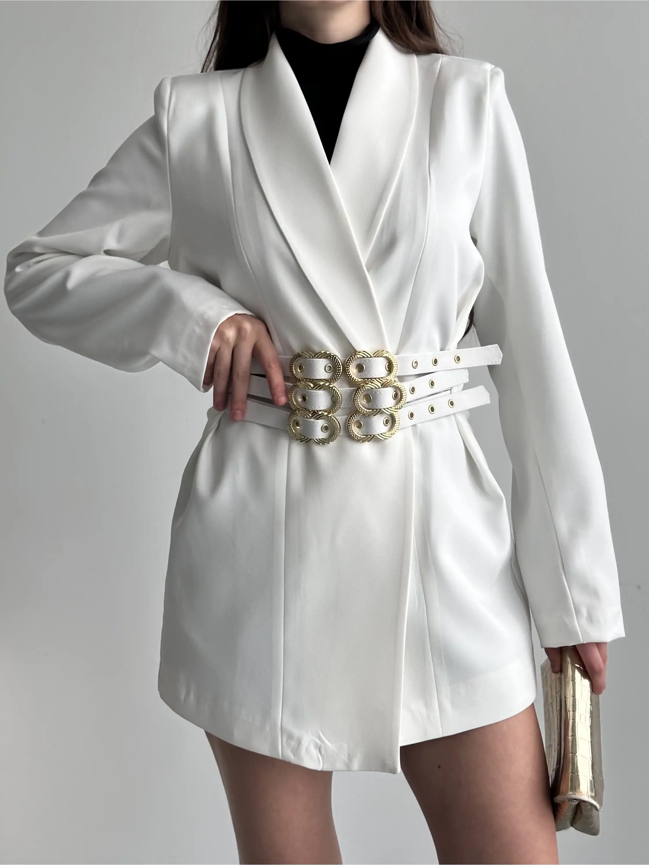 3 KEMER TASARIMLI BLAZER CEKET-BEYAZ