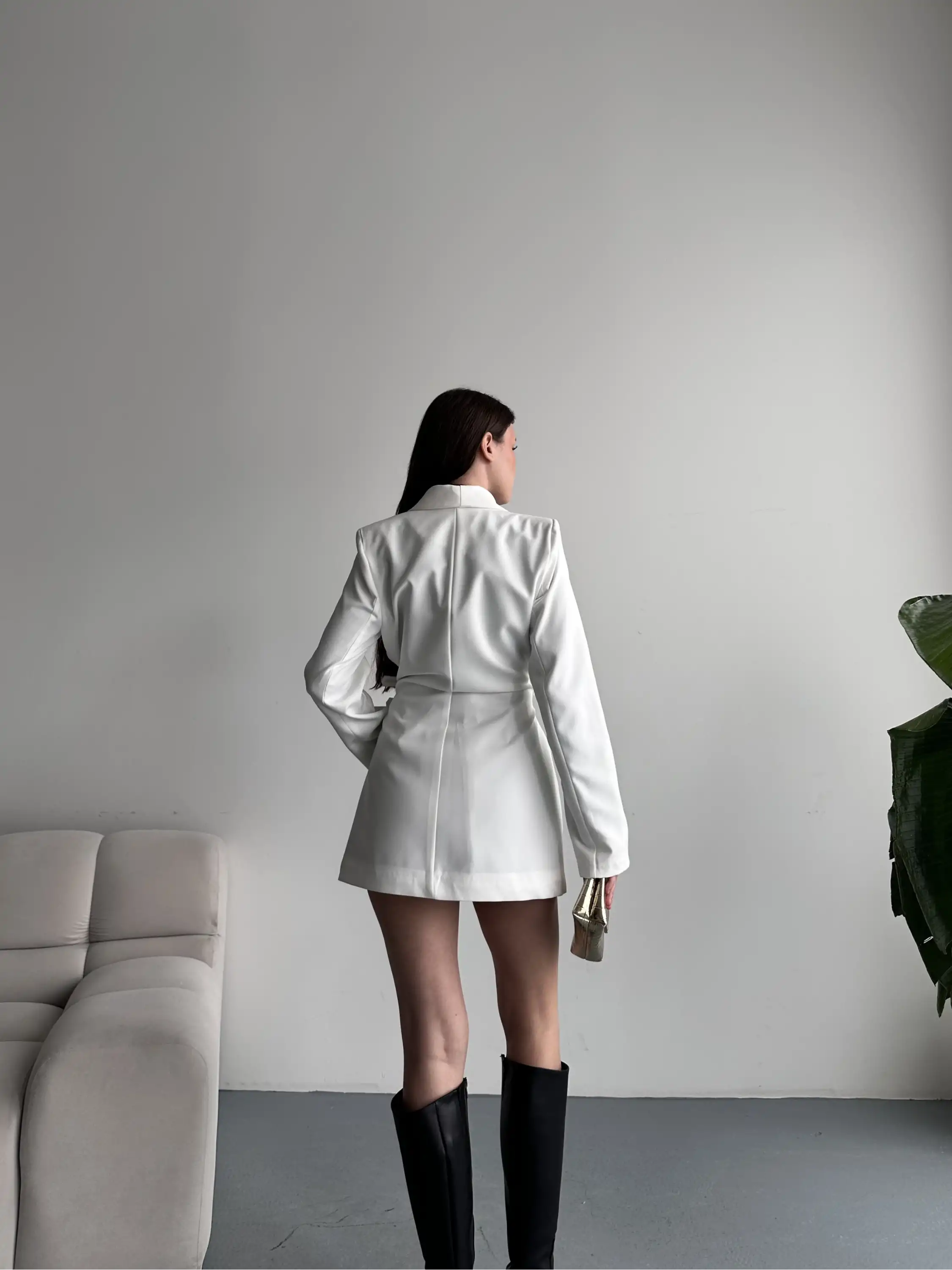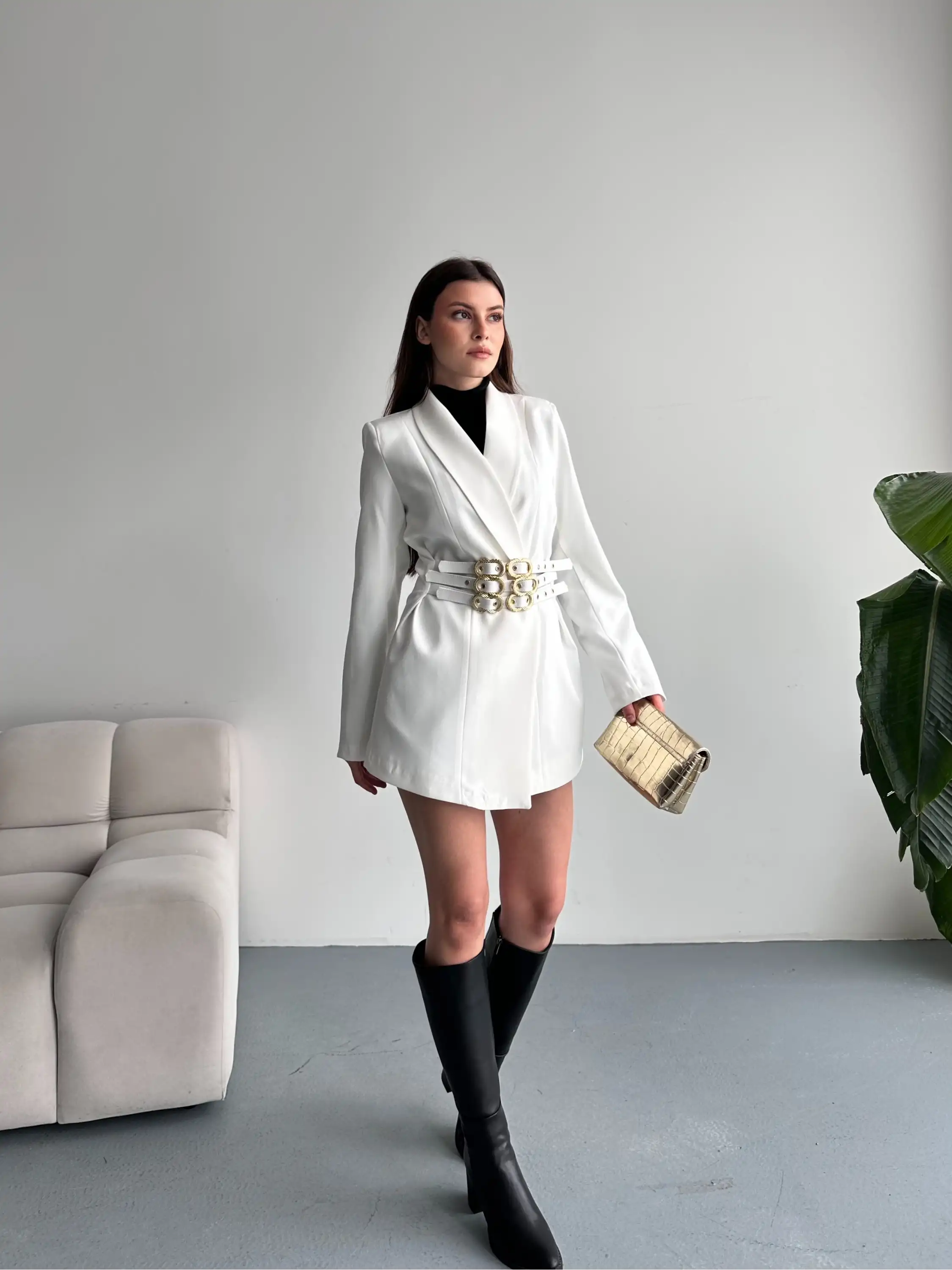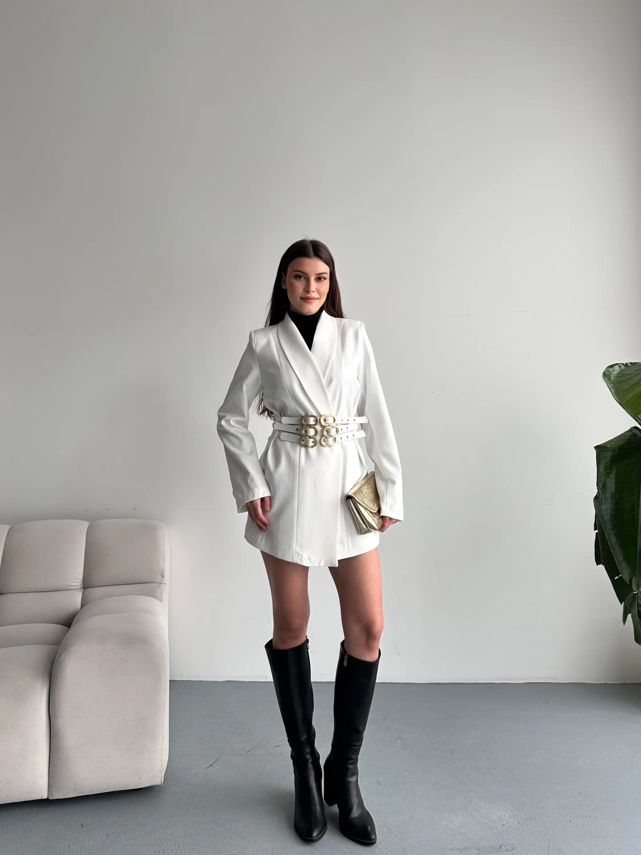 3 KEMER TASARIMLI BLAZER CEKET-BEYAZ