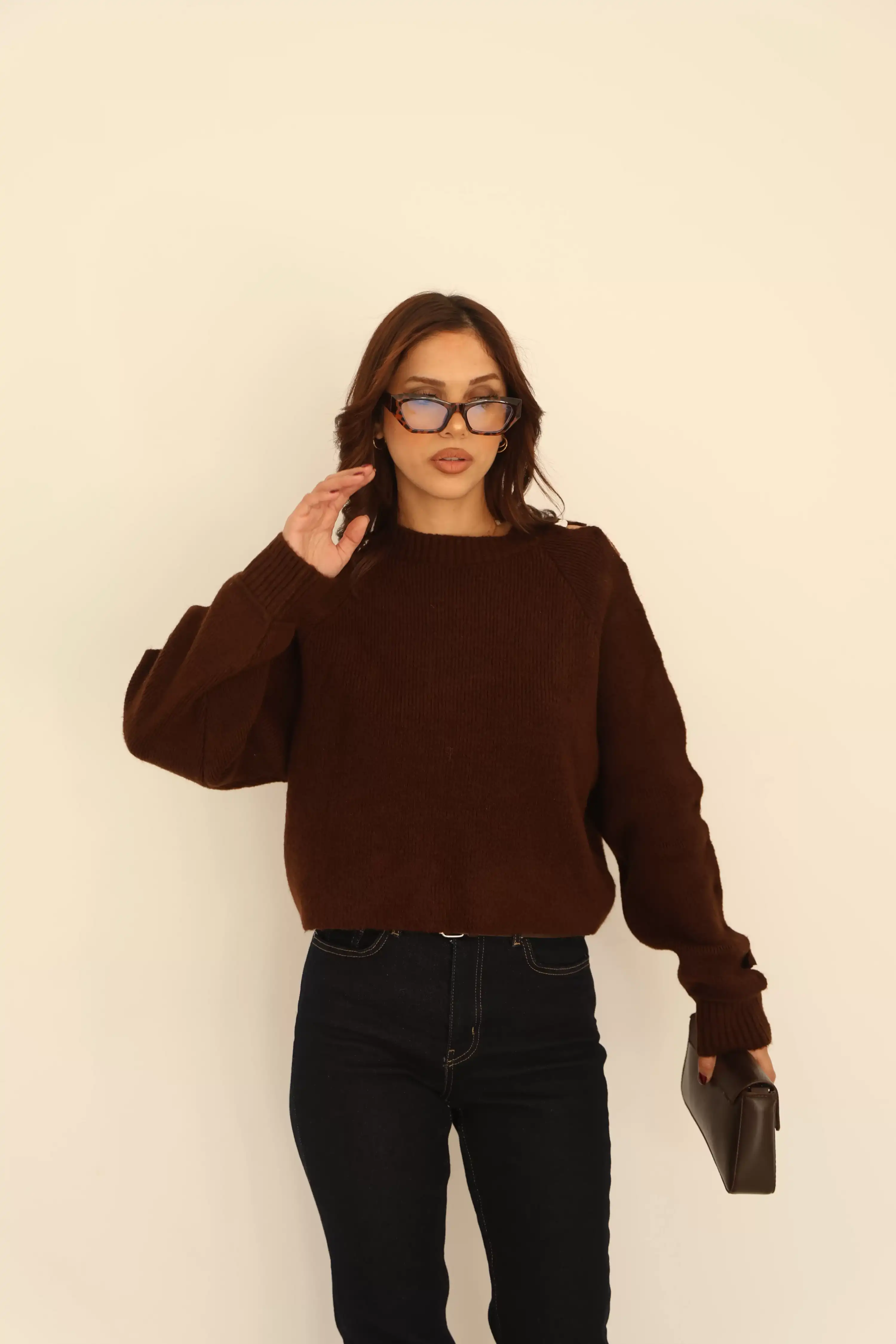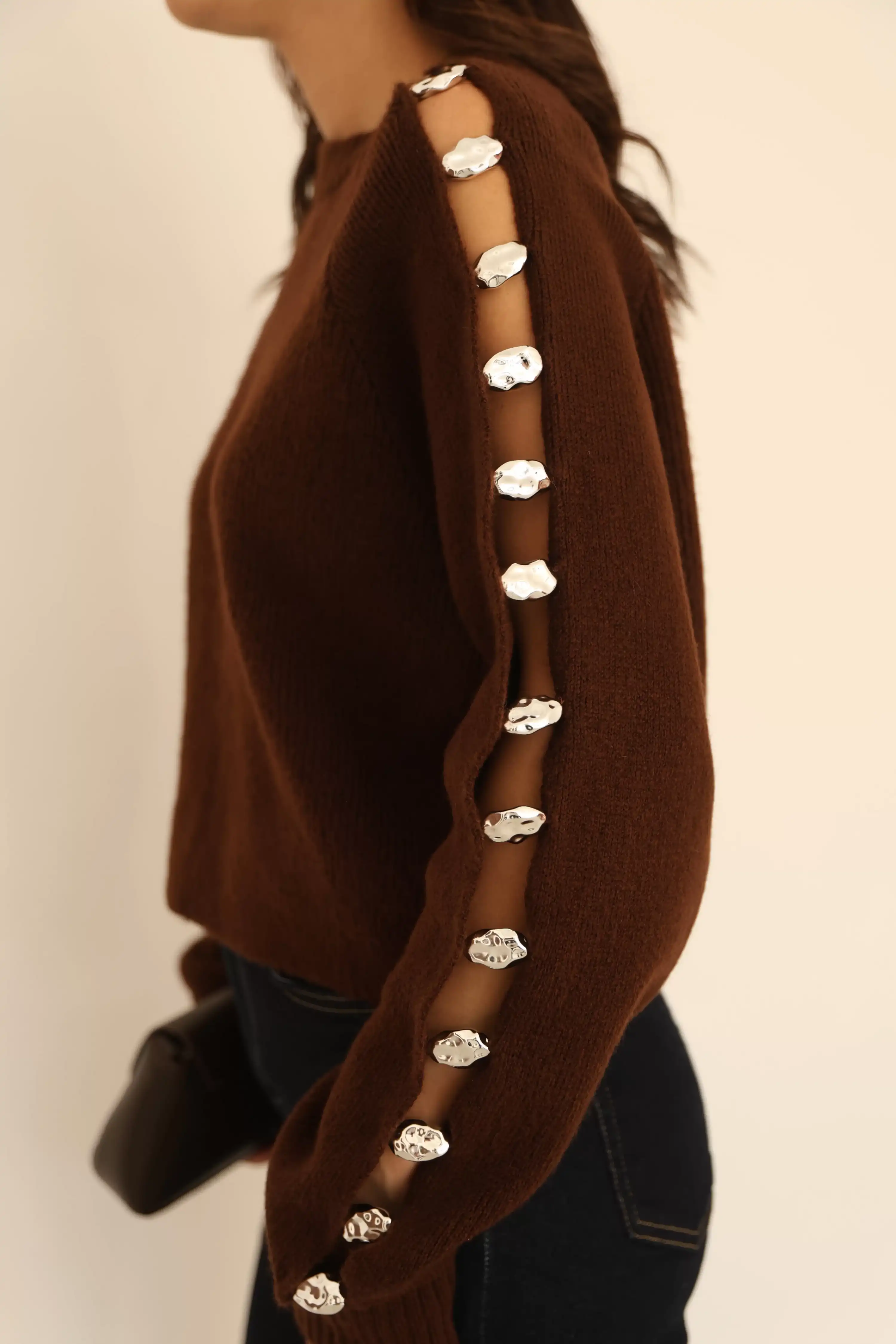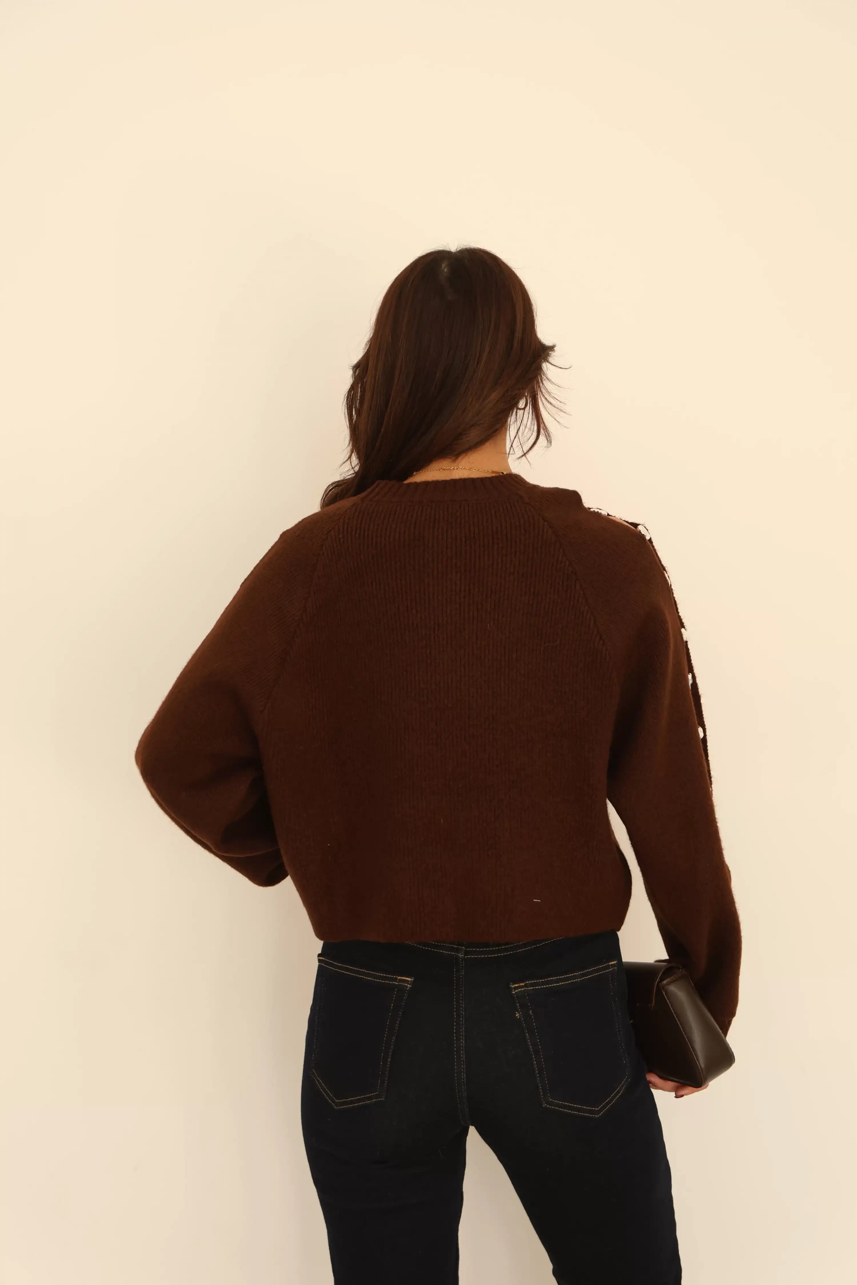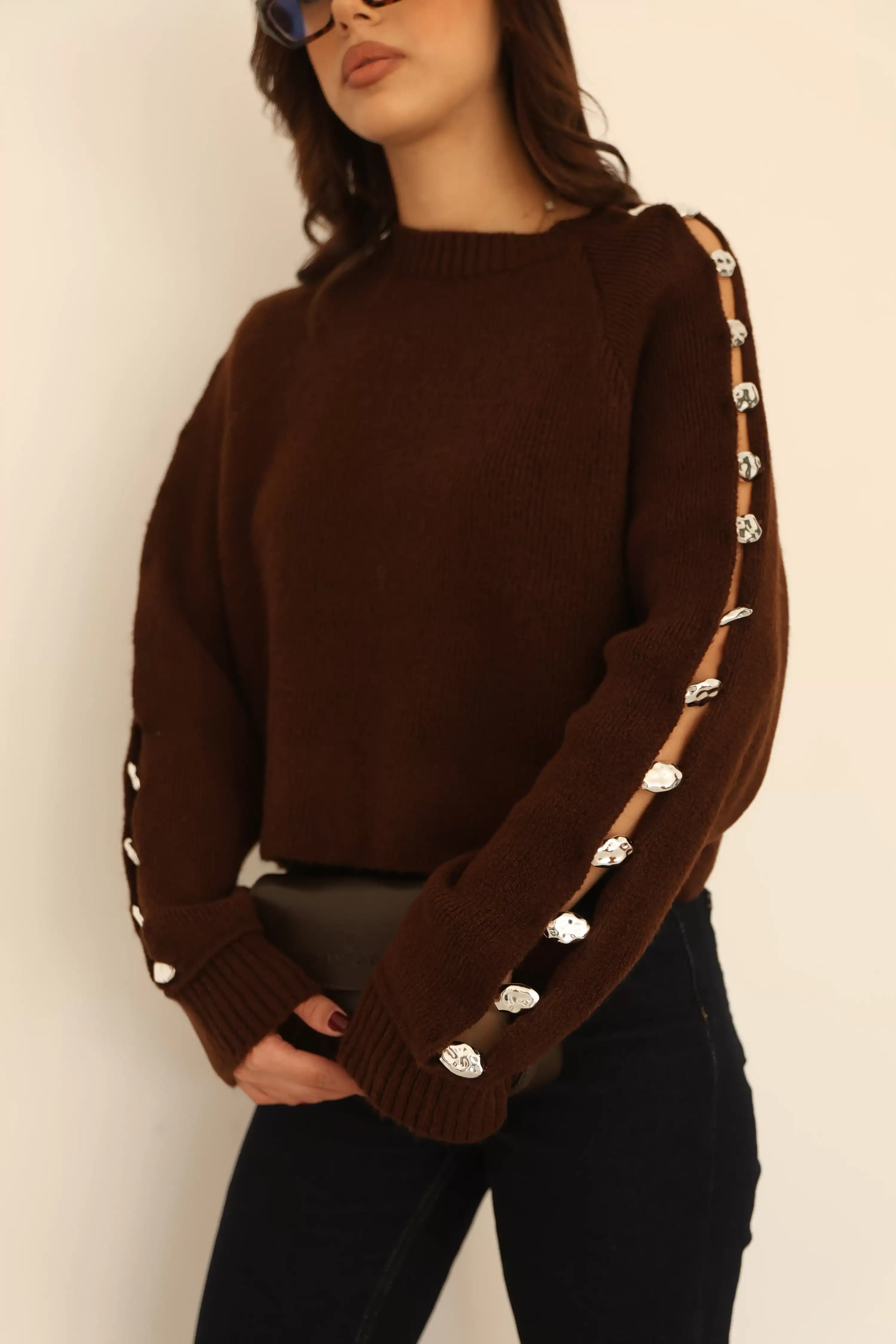 AKSESUAR DETAYLI TRİKO KAZAK-ACI KAHVE