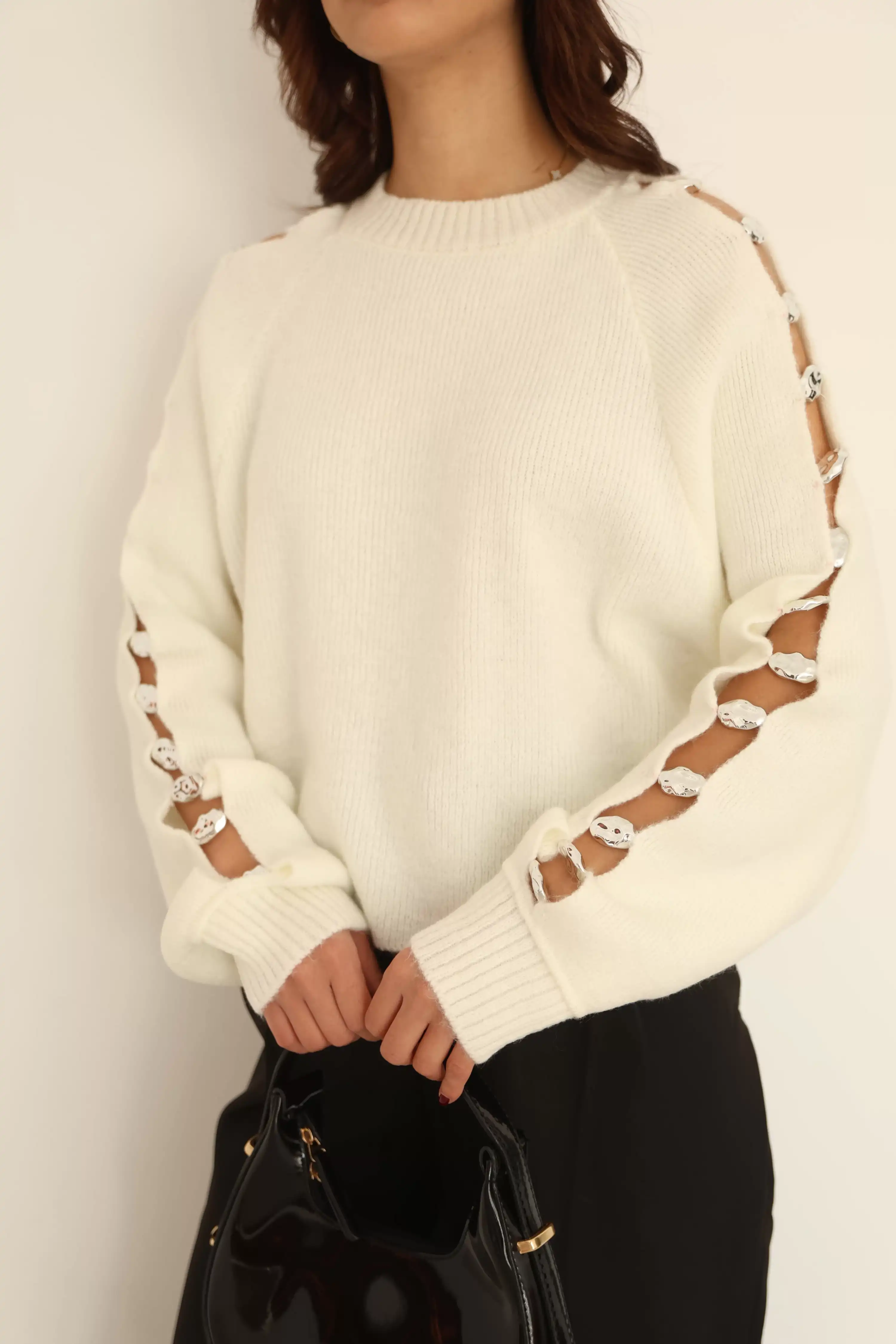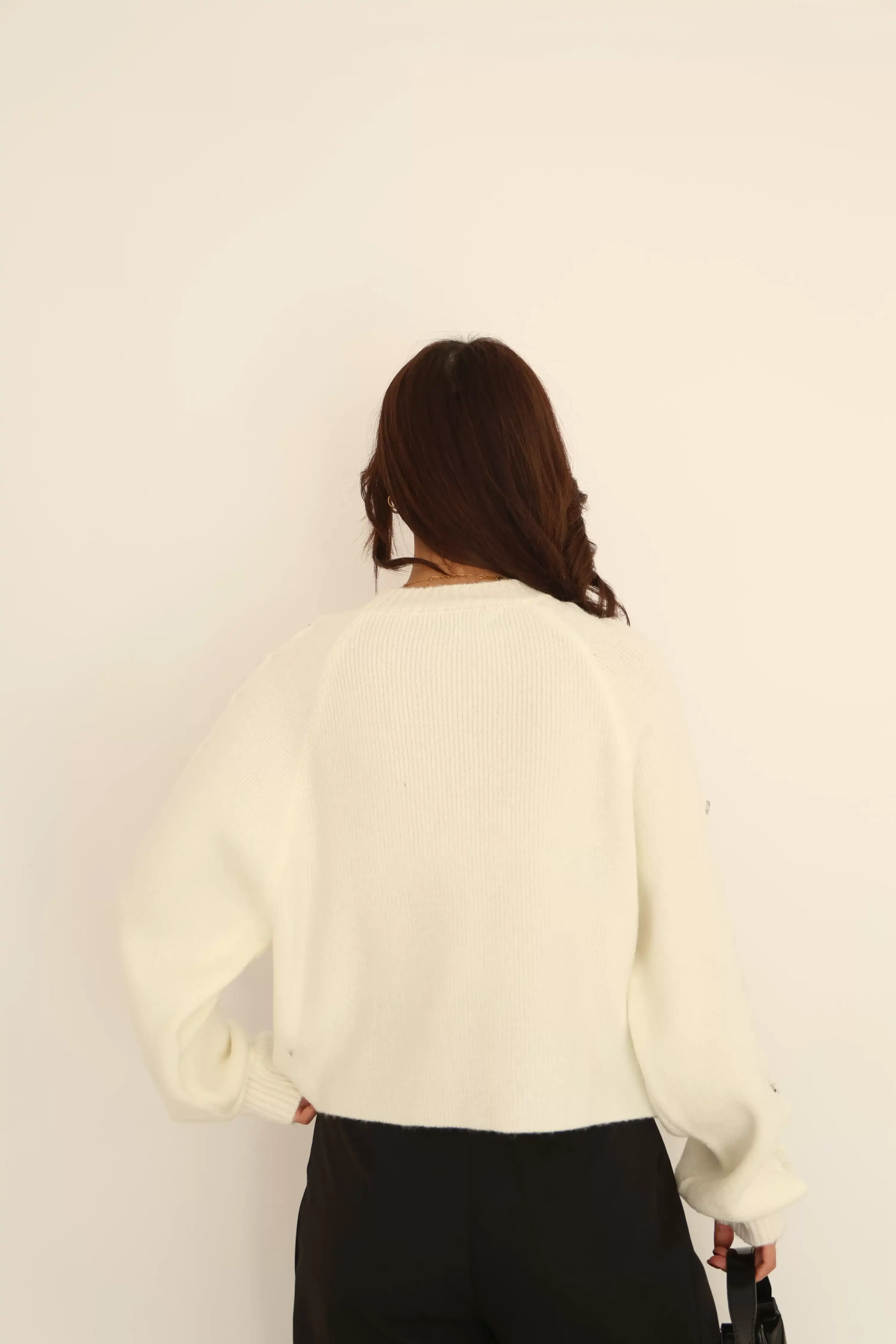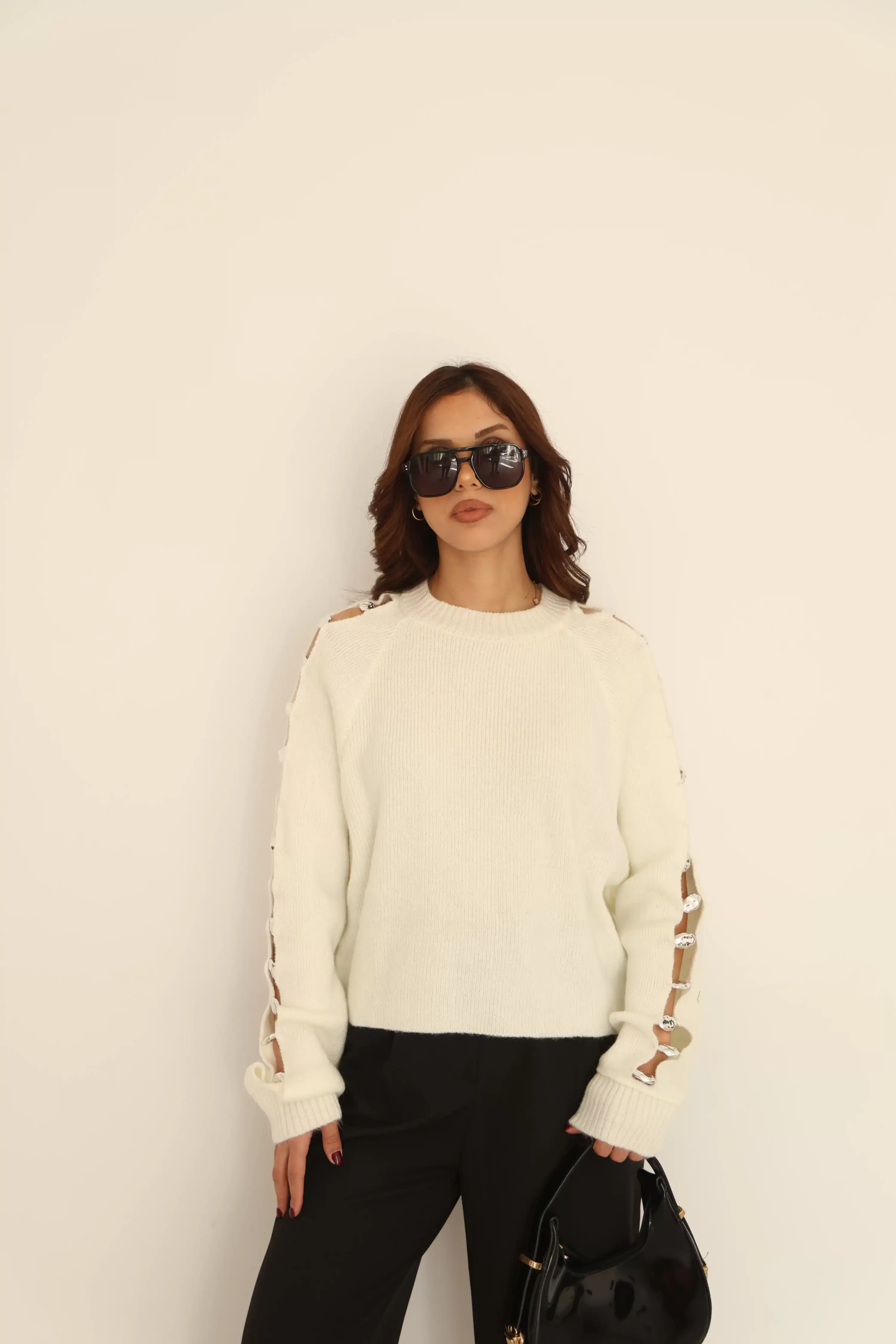 AKSESUAR DETAYLI TRİKO KAZAK-BEYAZ