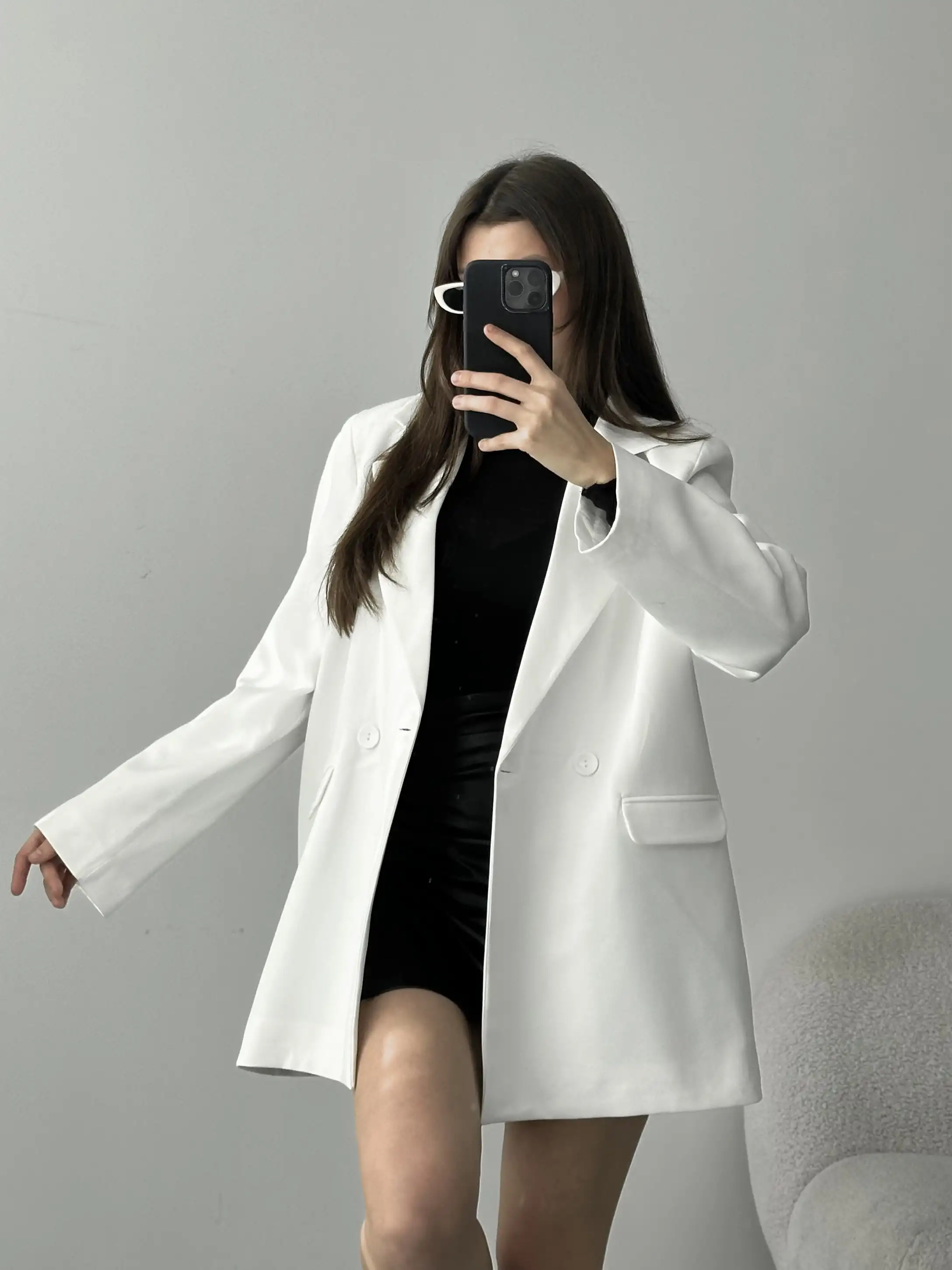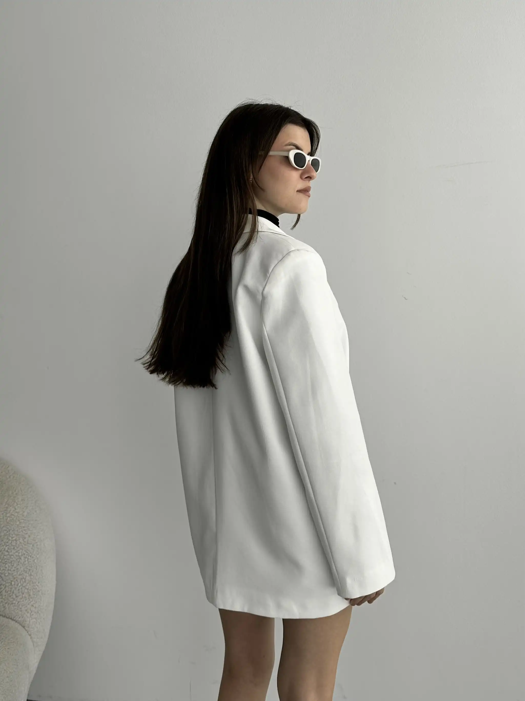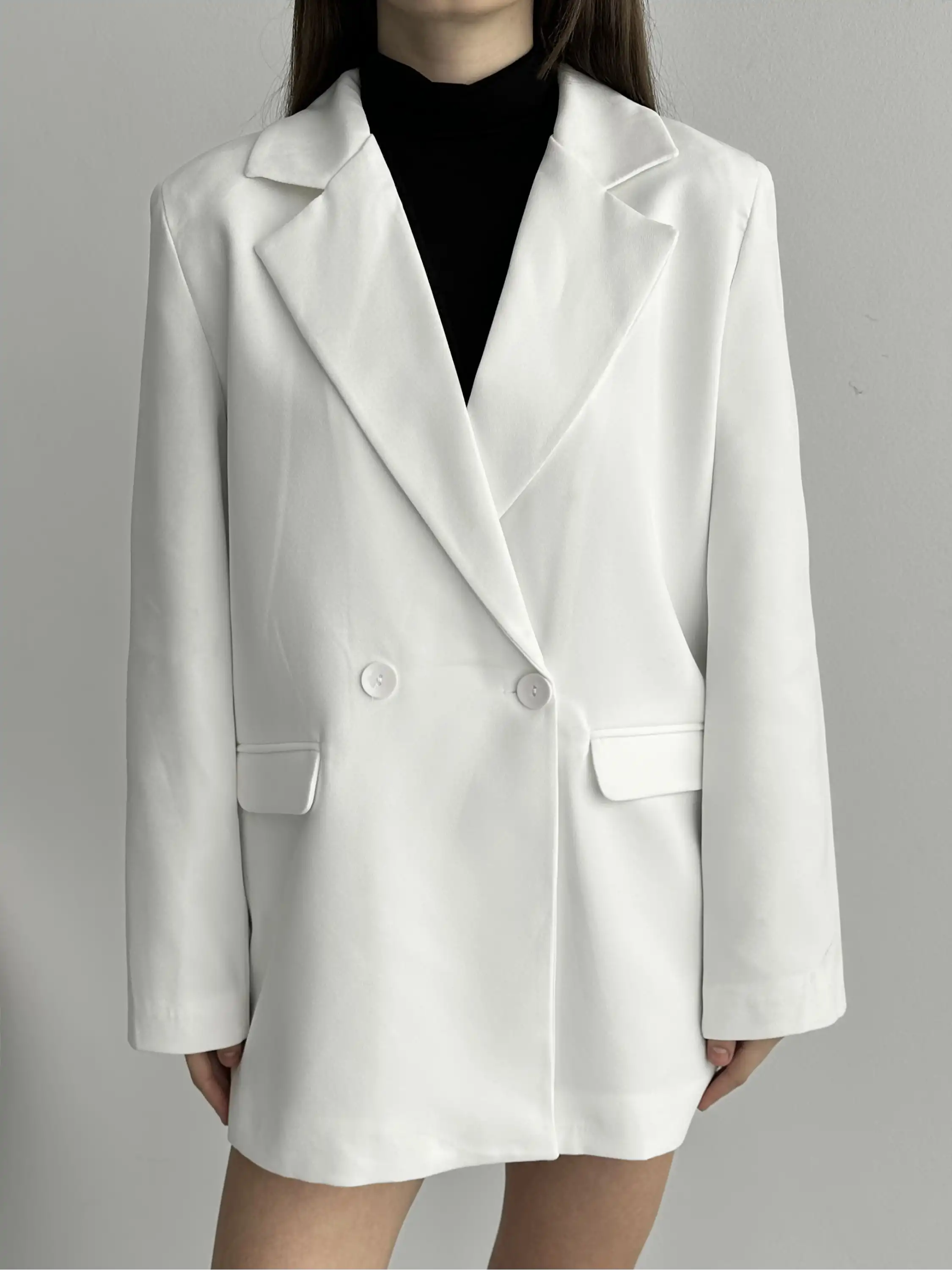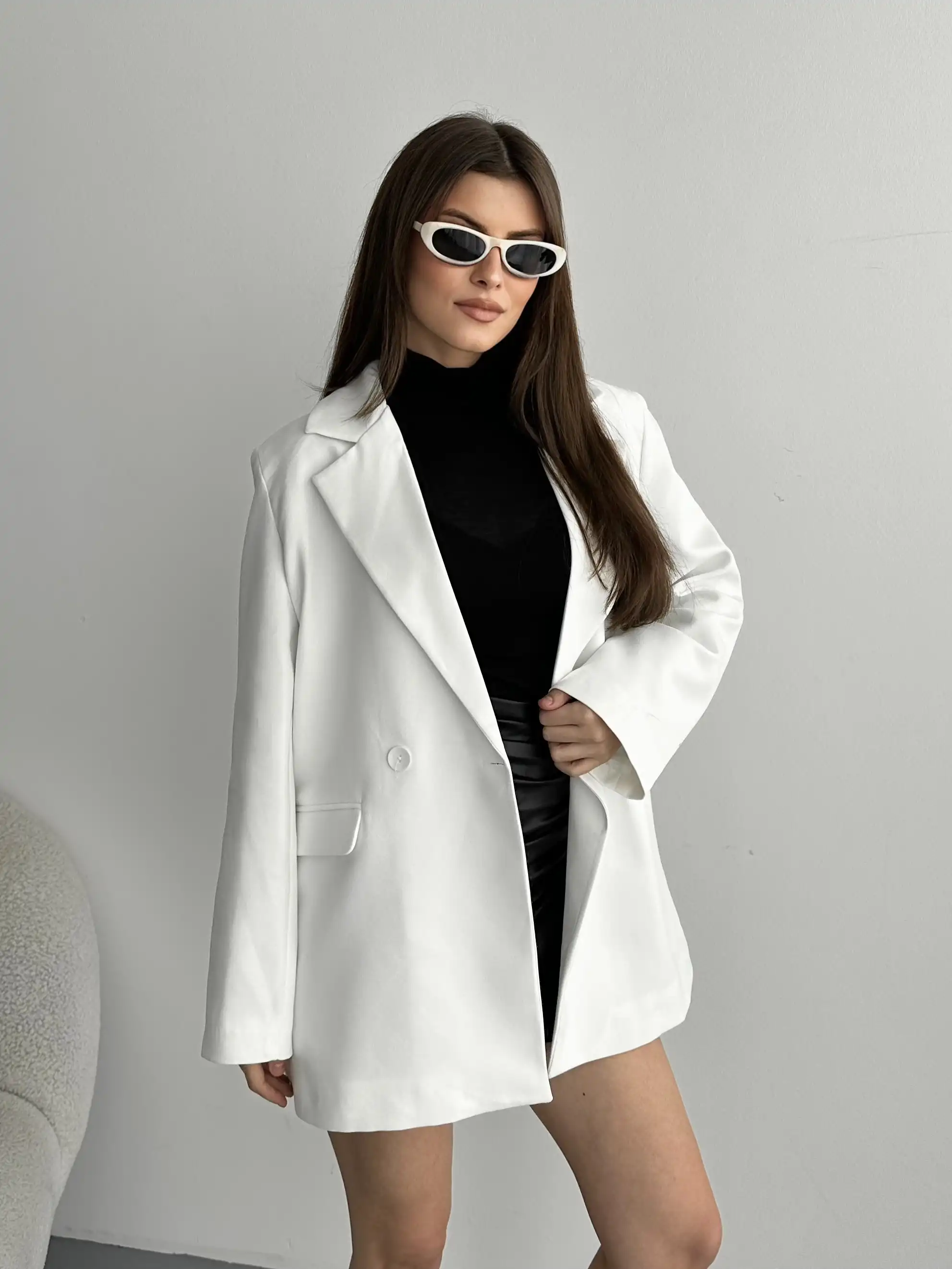 ASTARLI CEP DETAYLI BOL KESİM BLAZER CEKET-BEYAZ