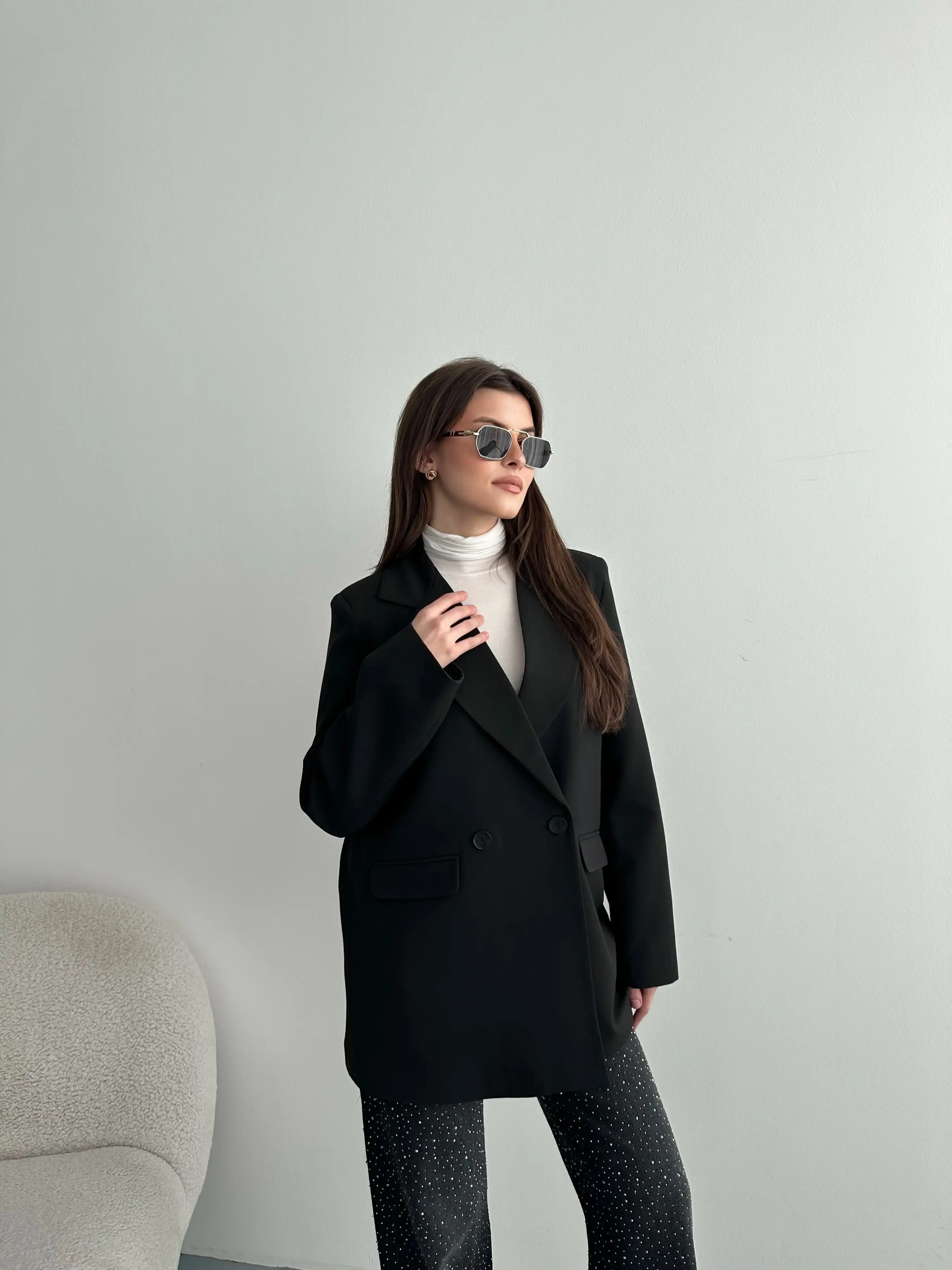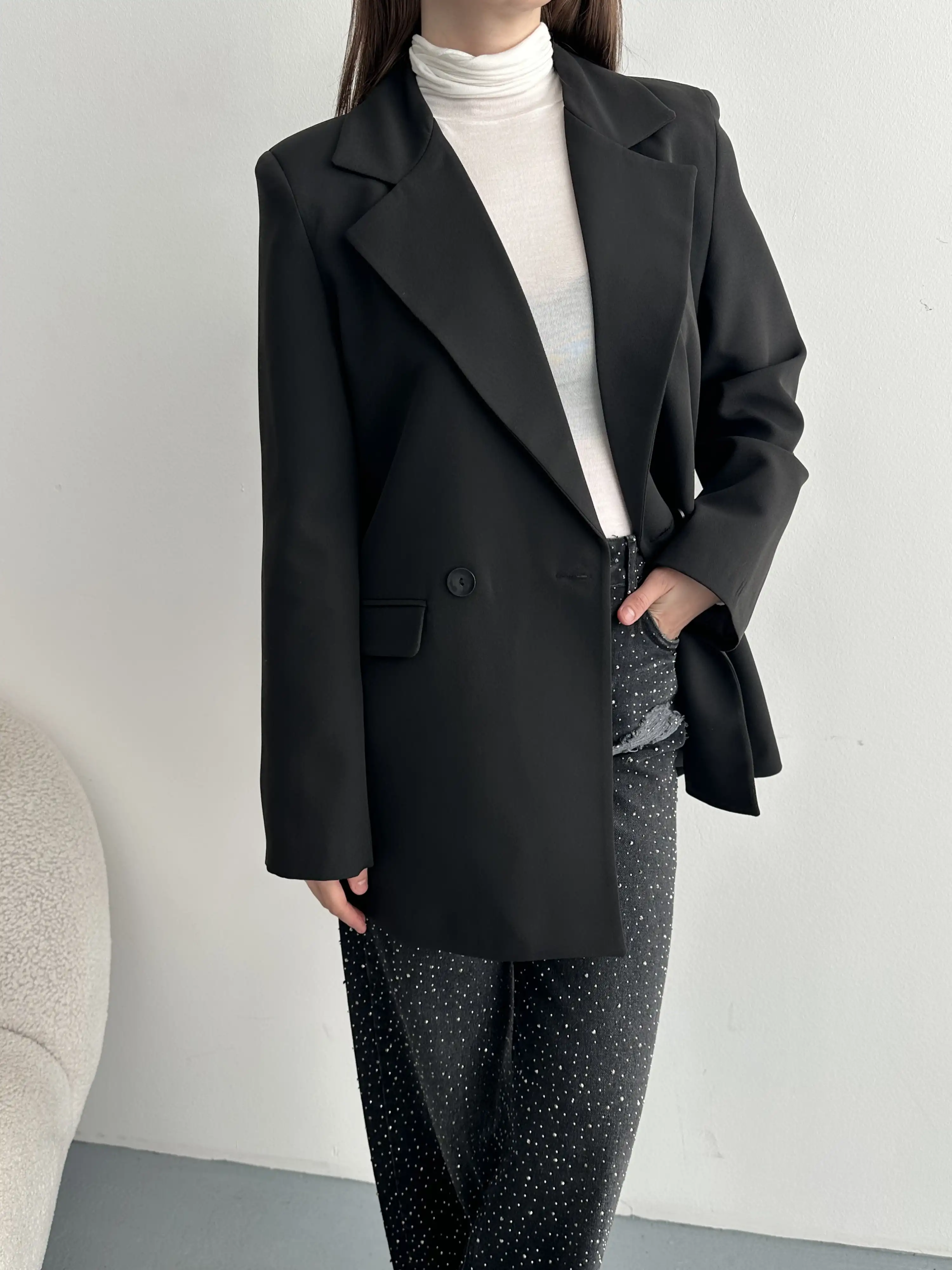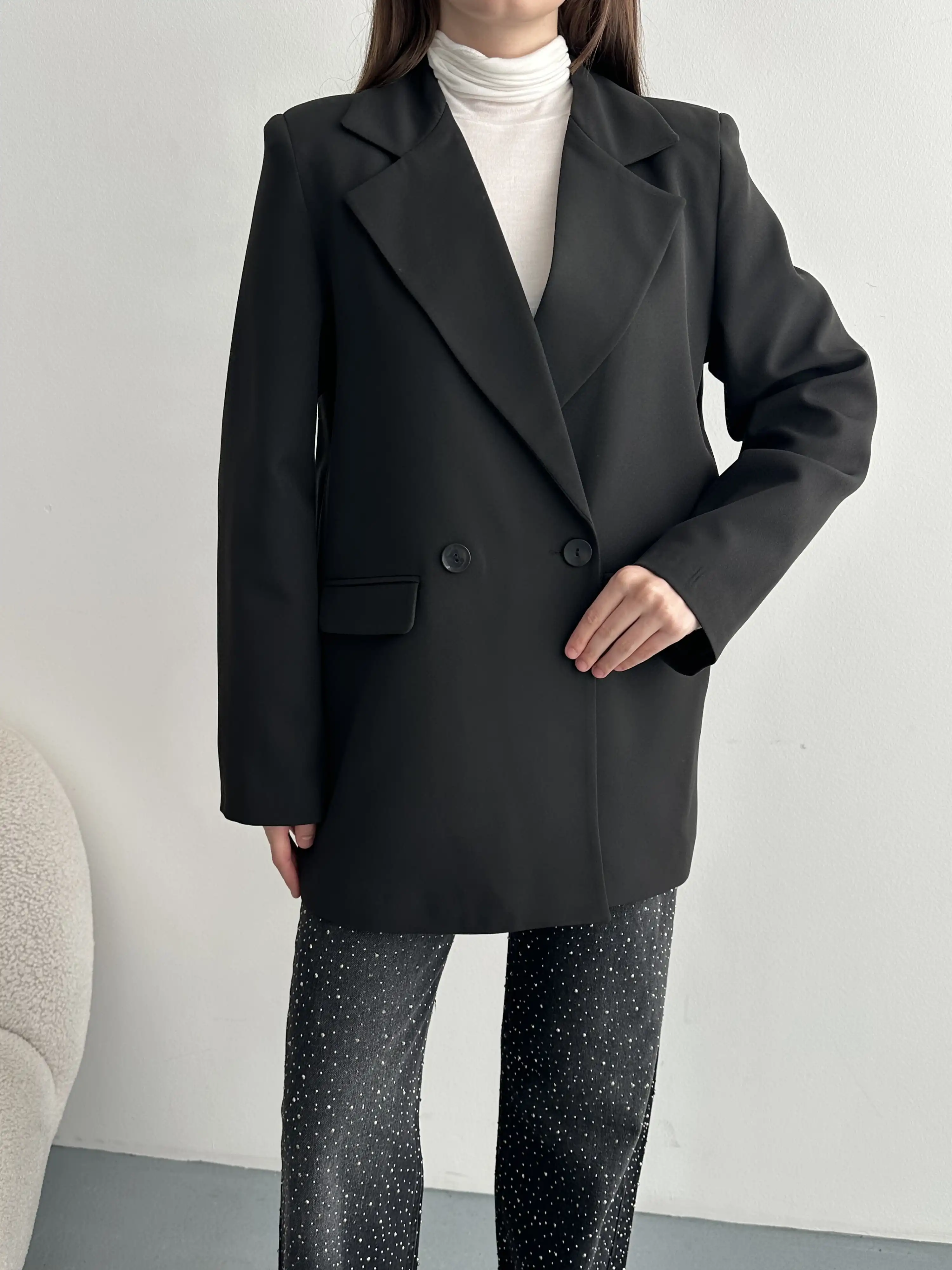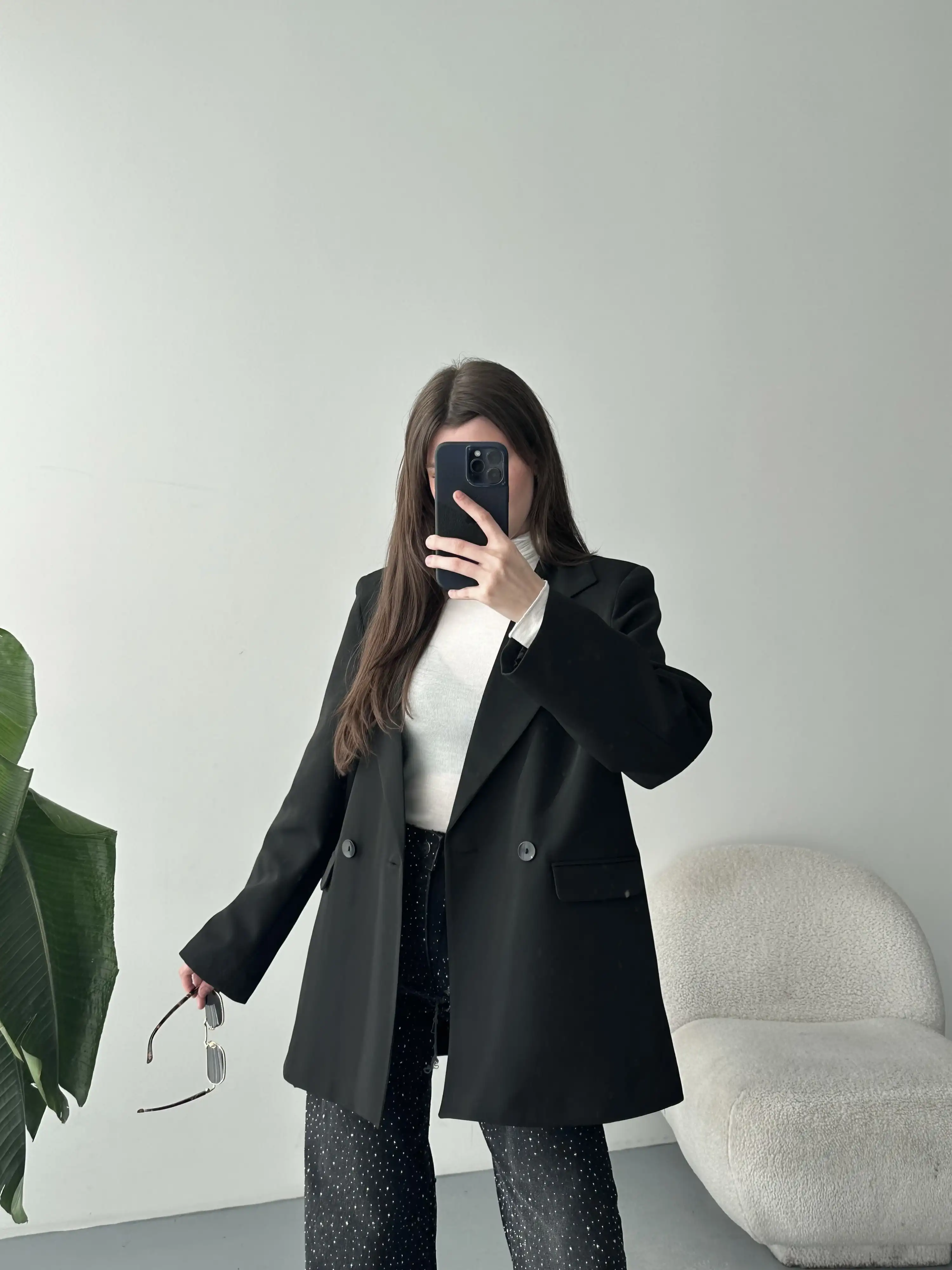 ASTARLI CEP DETAYLI BOL KESİM BLAZER CEKET-SİYAH