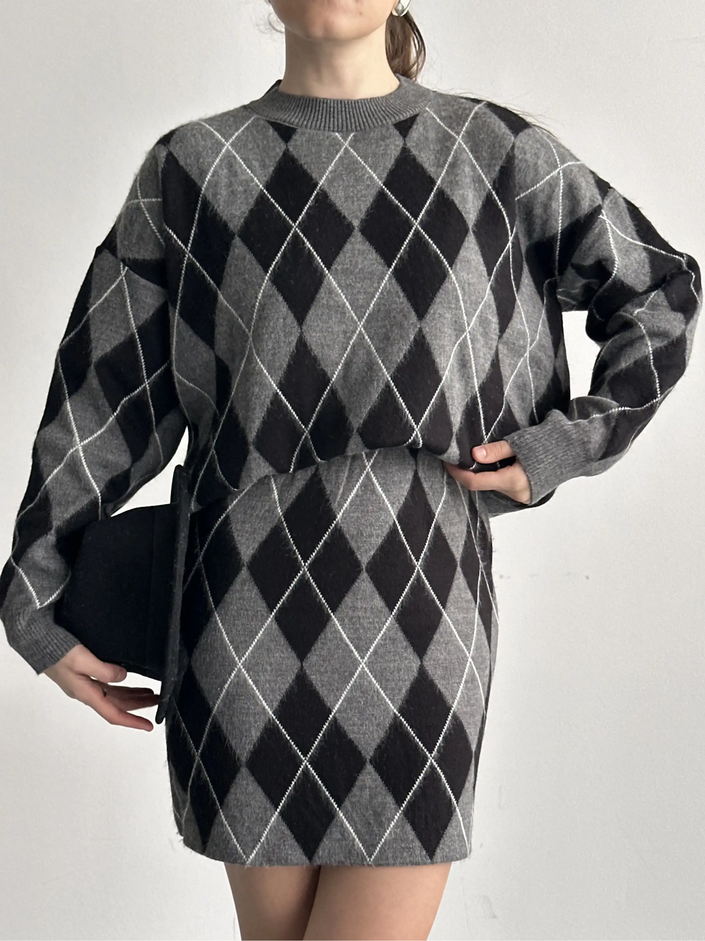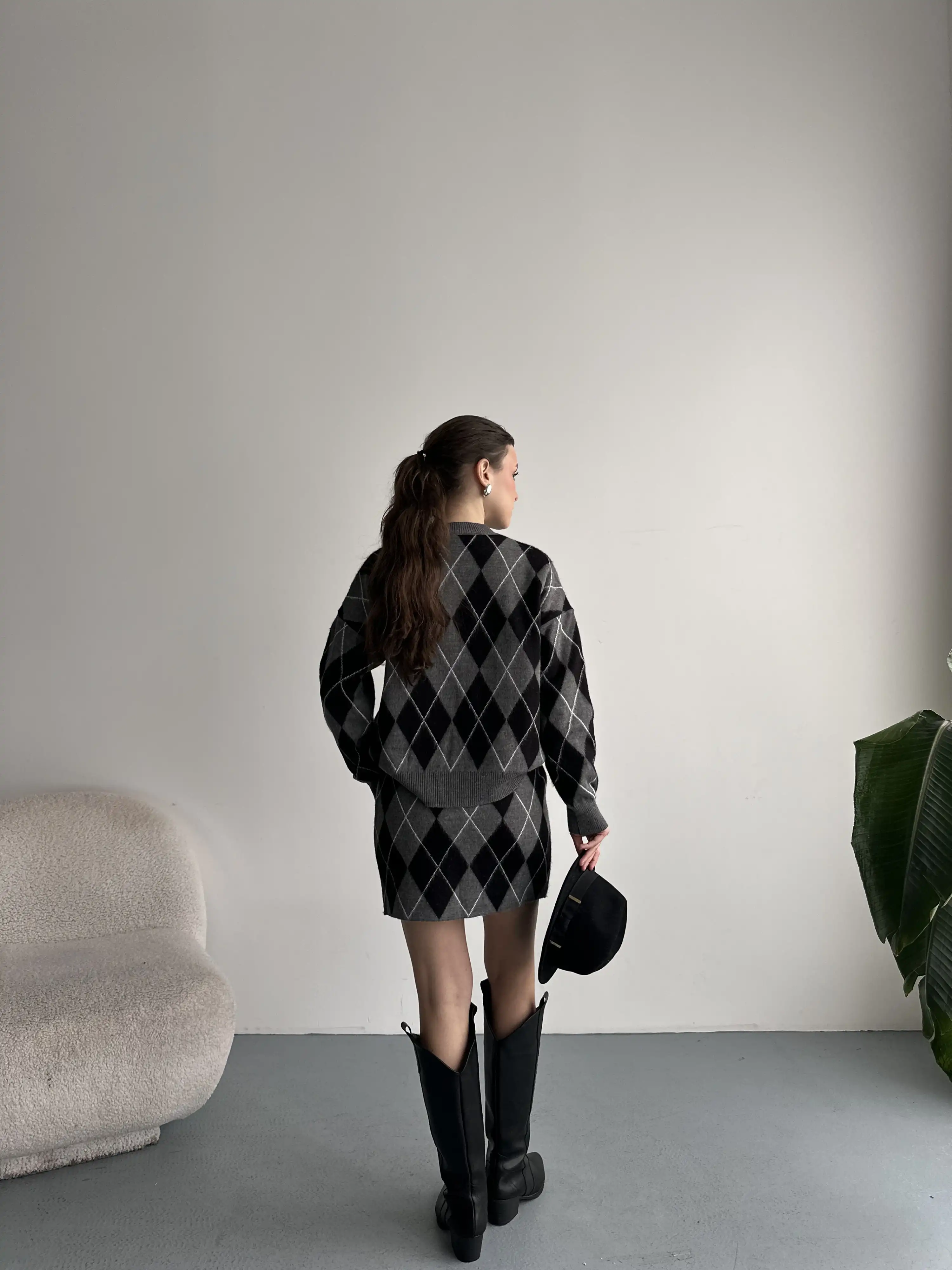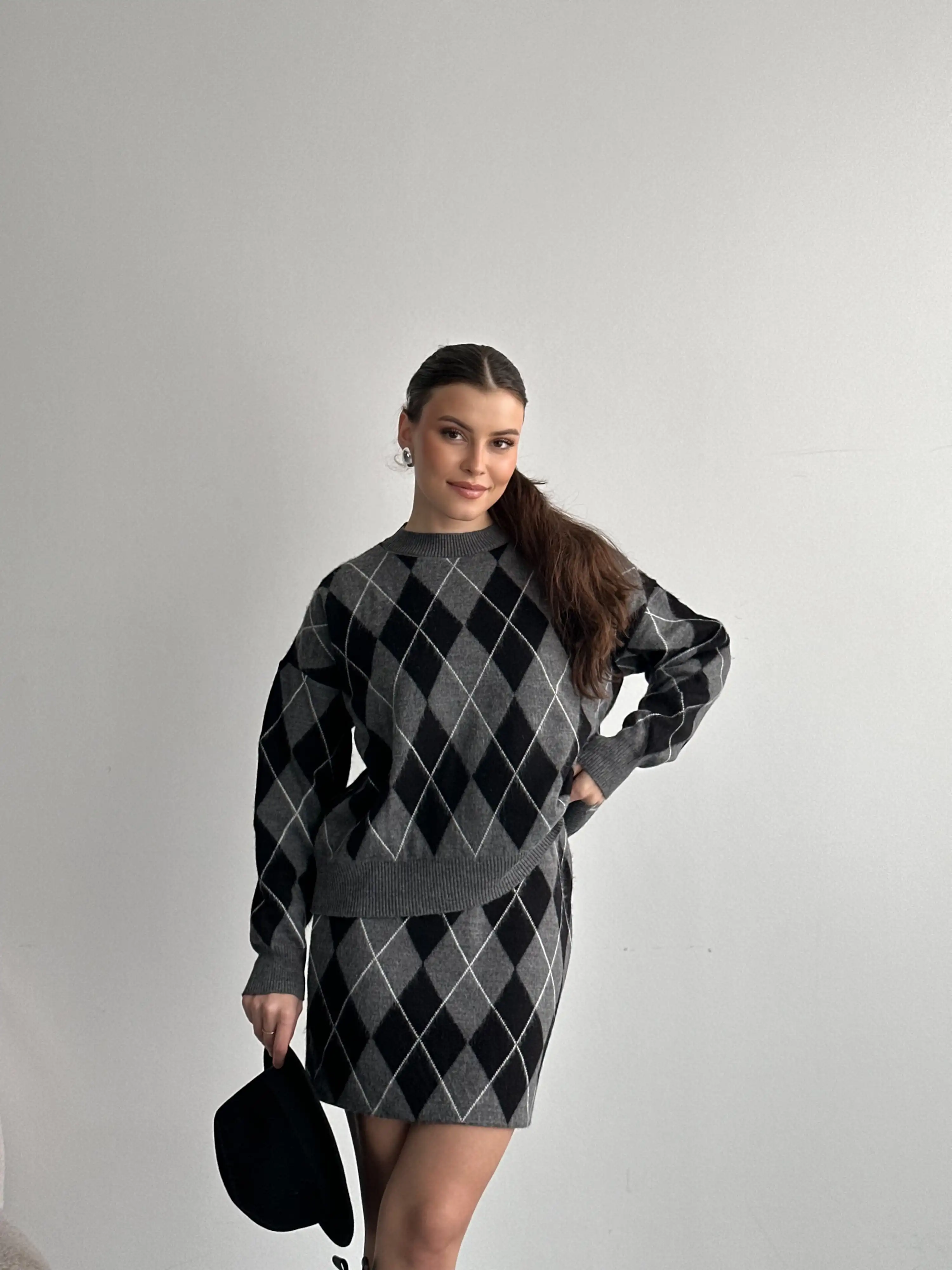 BAKLAVA DESENLİ ETEKLİ TRİKO TAKIM-SİYAH