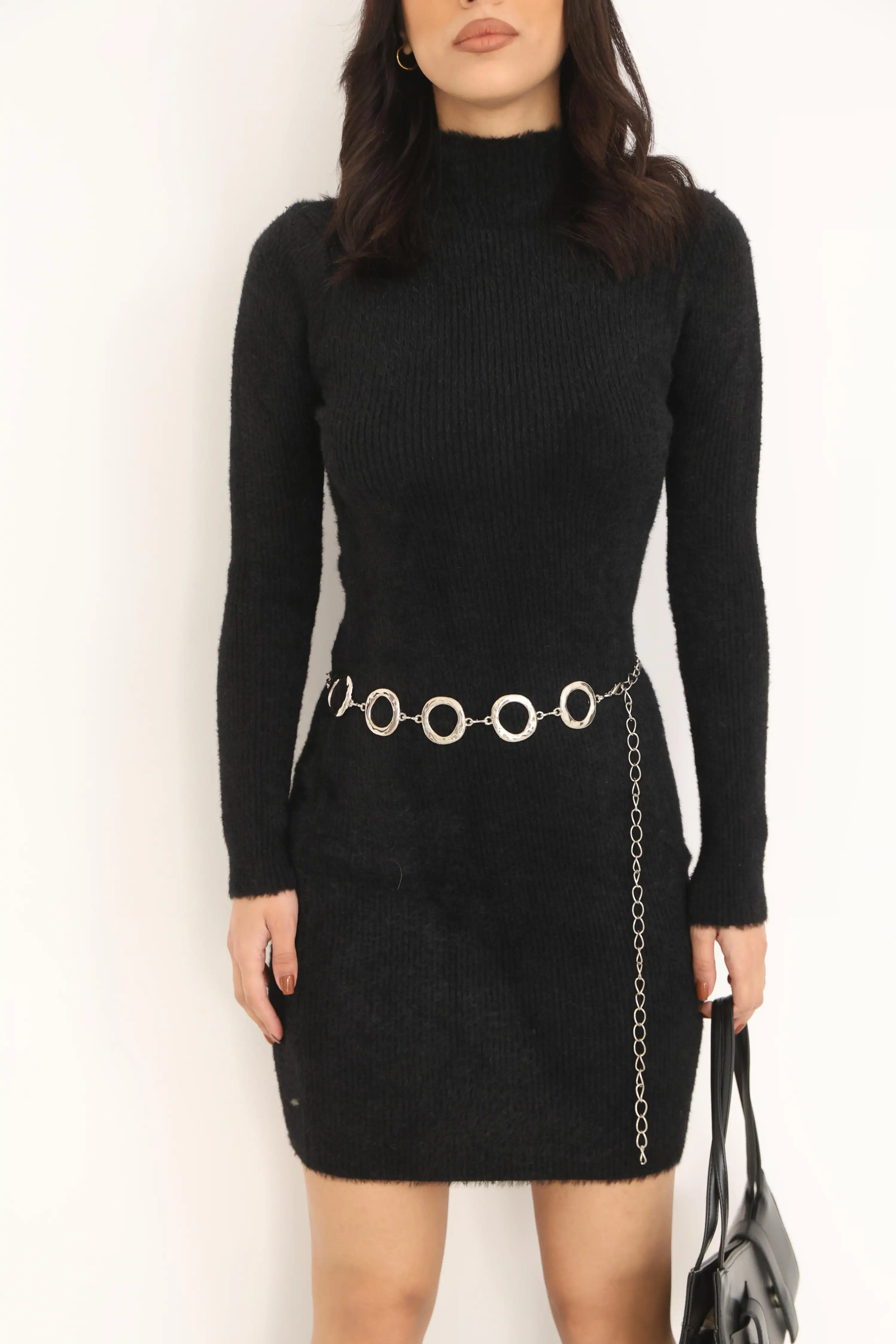 BALIKÇI YAKA TRİKO ELBİSE-SİYAH