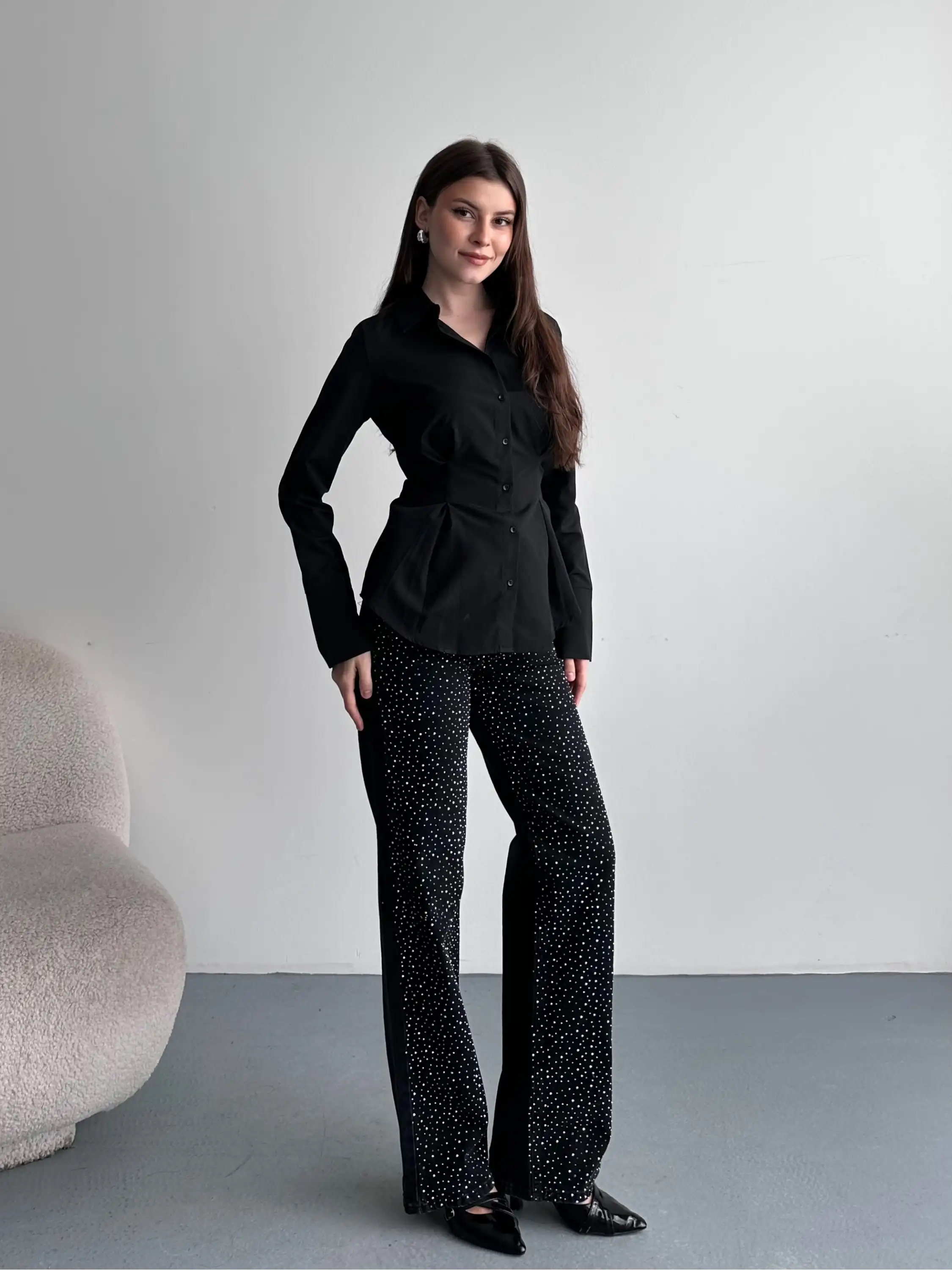 DANTEL DETAYLI OVERSIZE BLUZ-SİYAH
