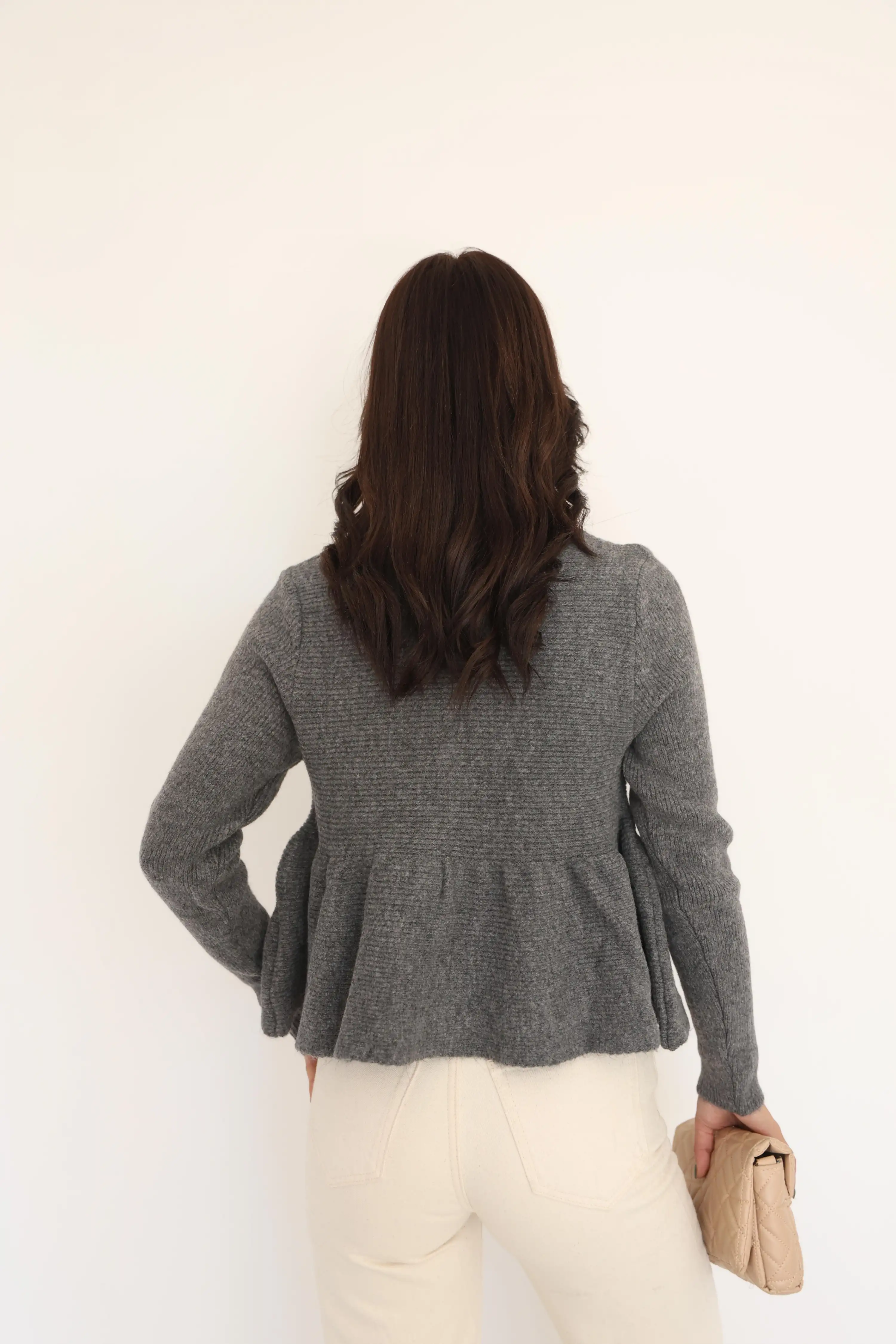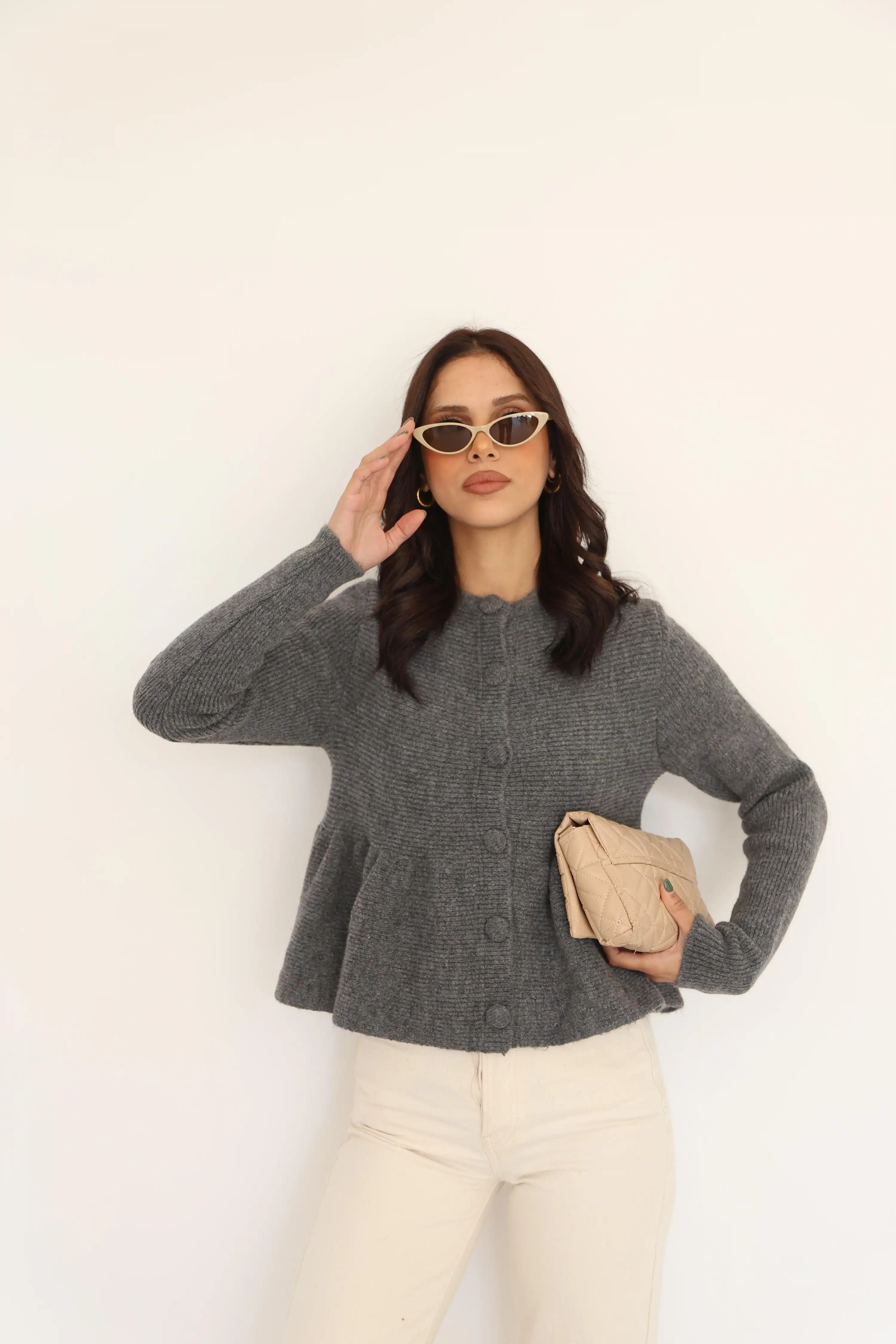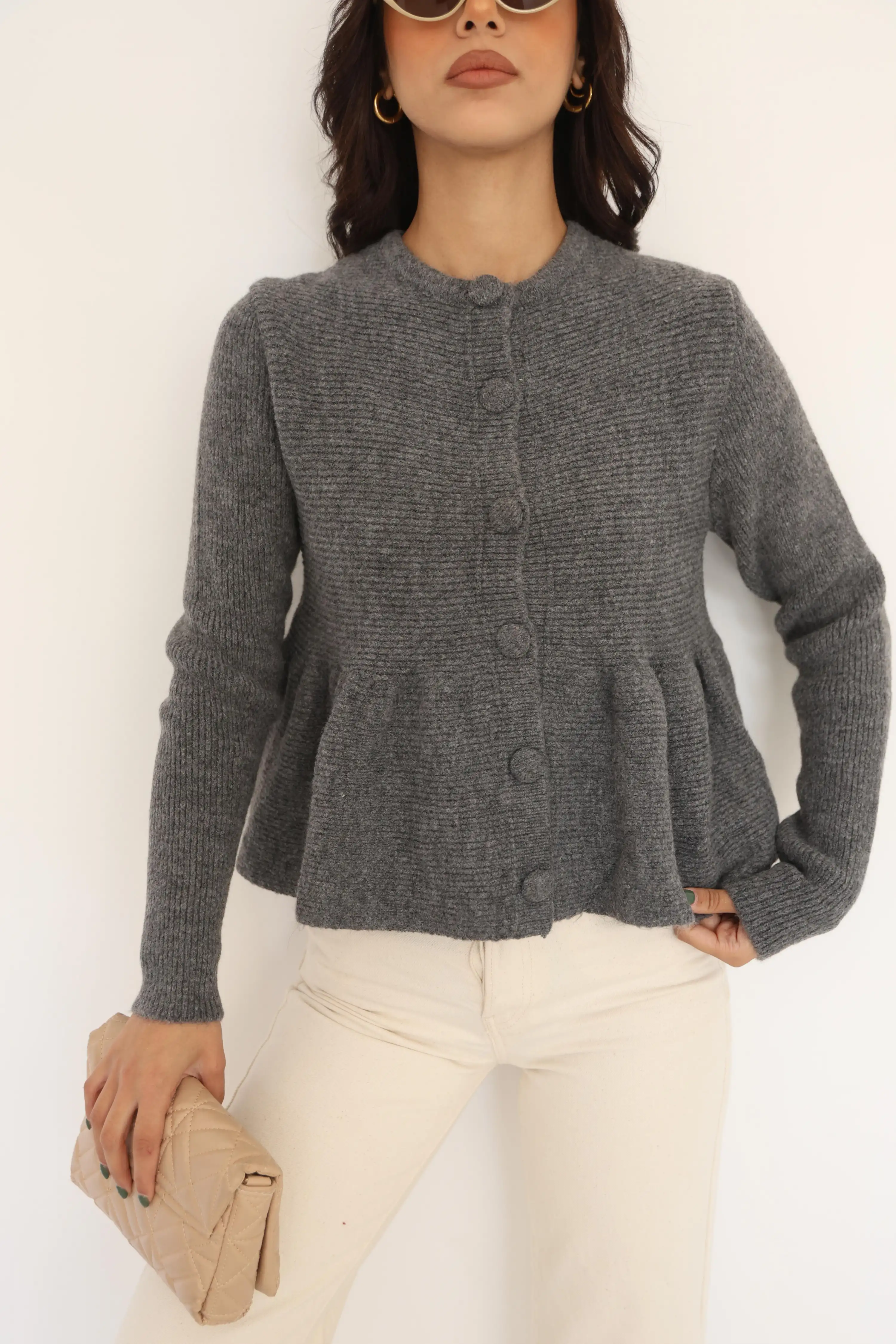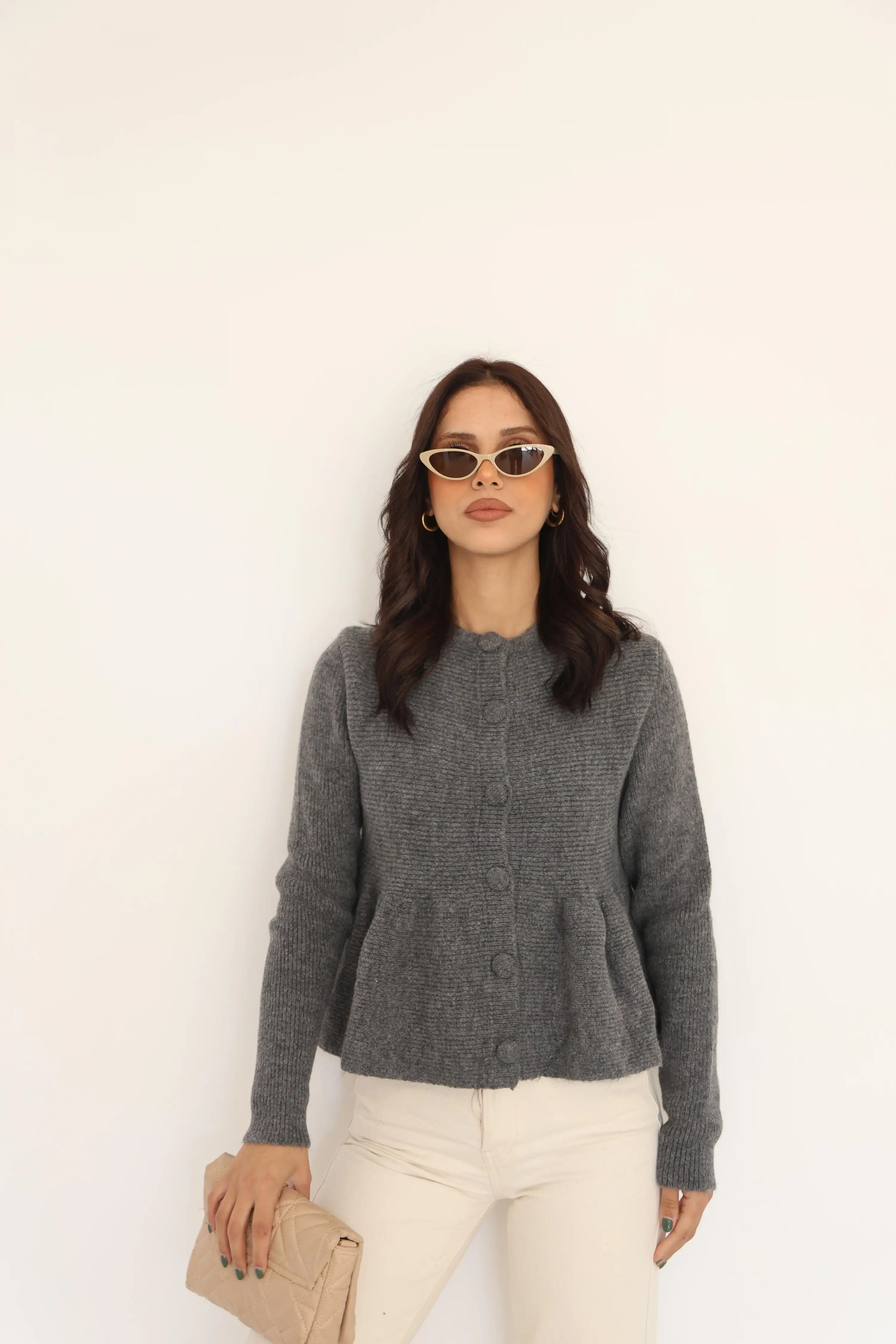 BEL PİLELİ KENDİNDEN ÇİZGİLİ HIRKA-GRİ