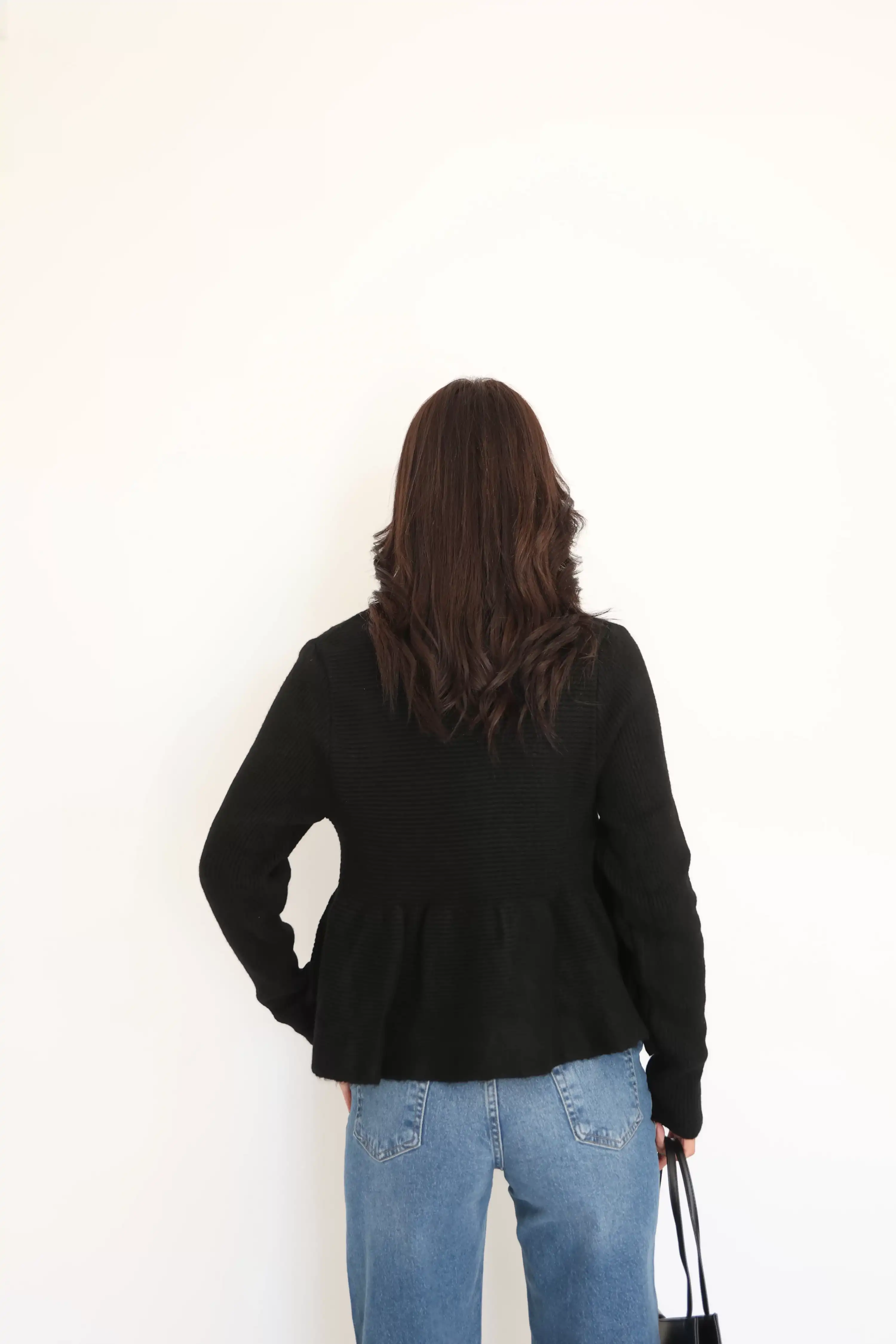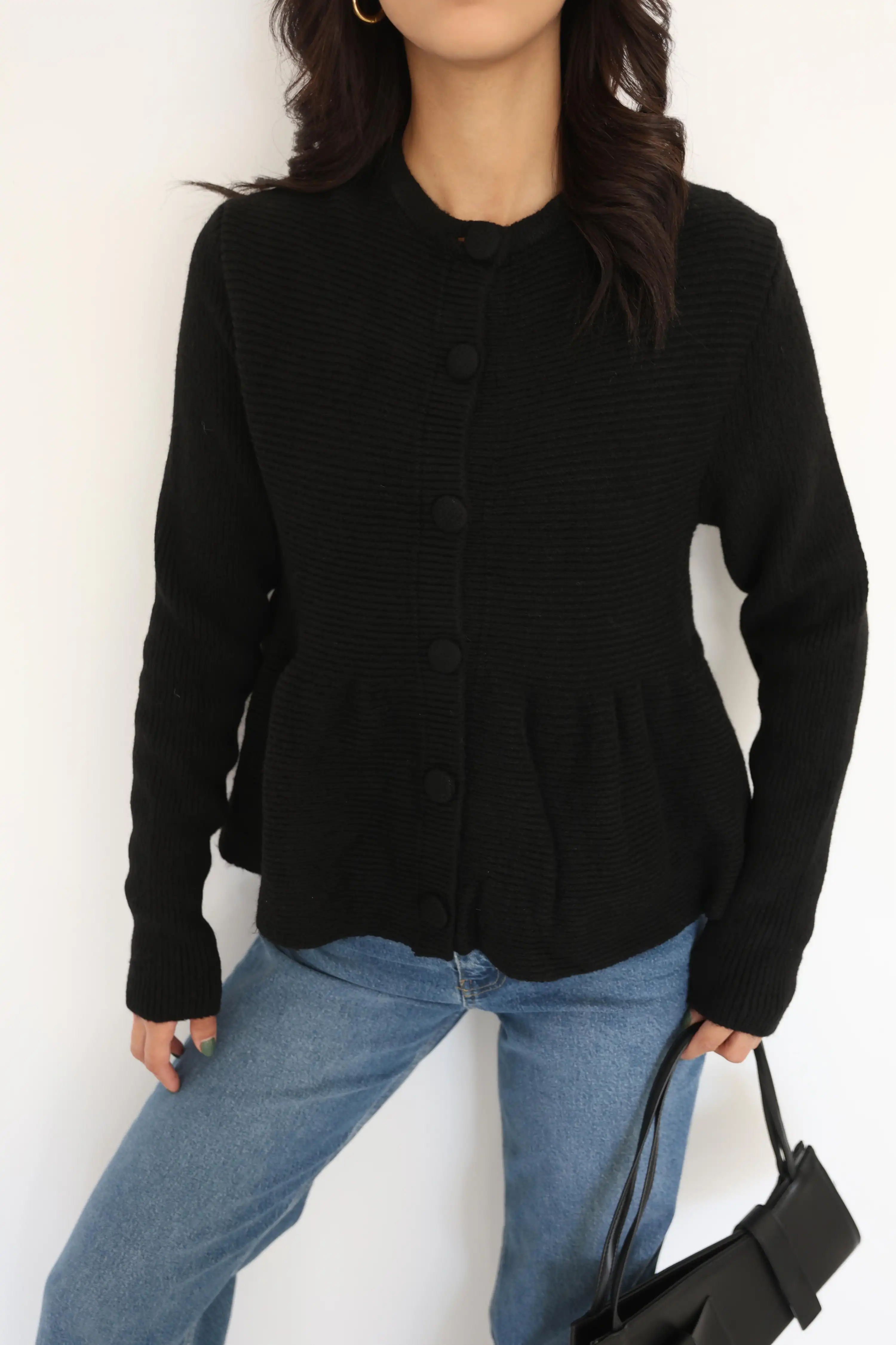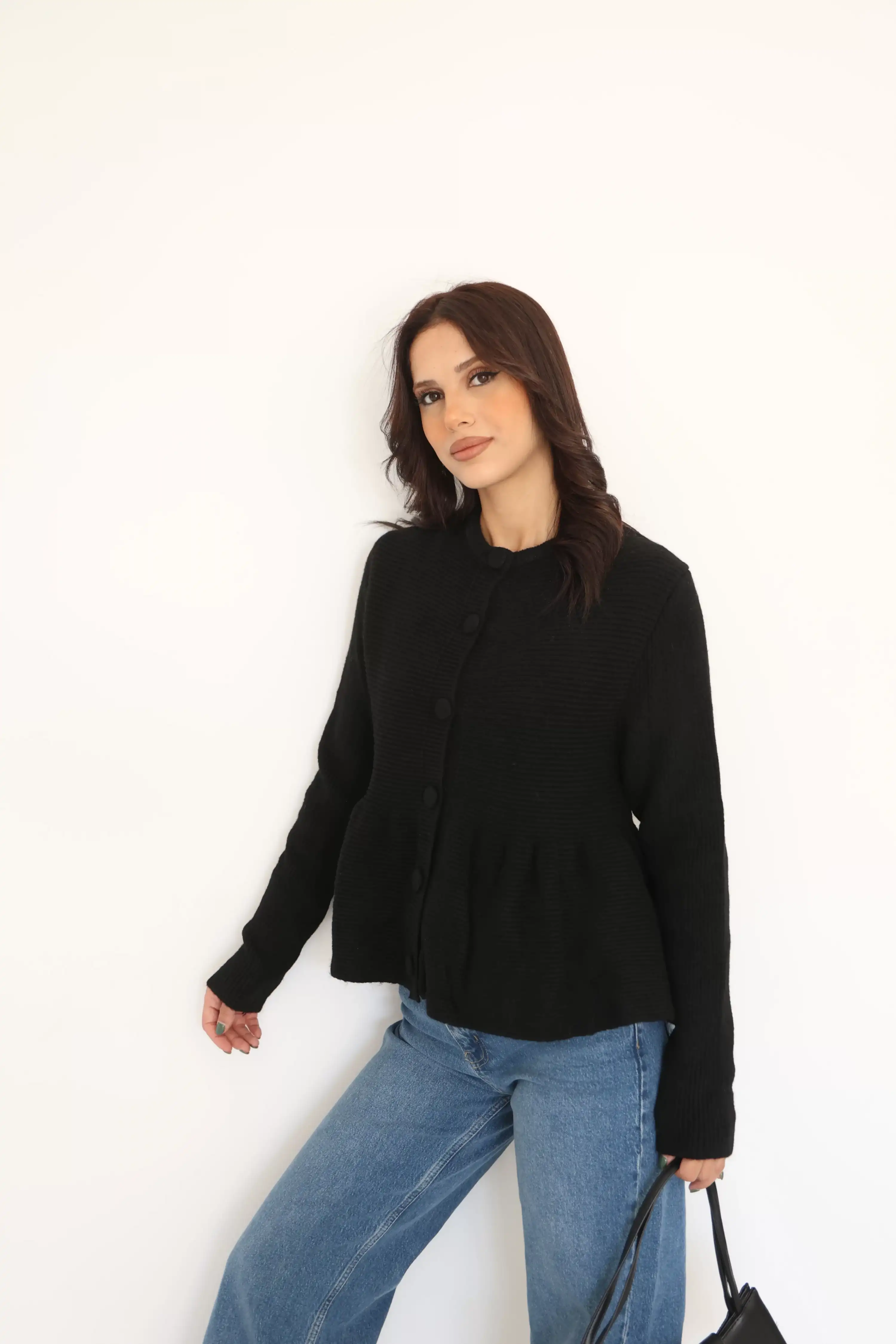 BEL PİLELİ KENDİNDEN ÇİZGİLİ HIRKA-SİYAH