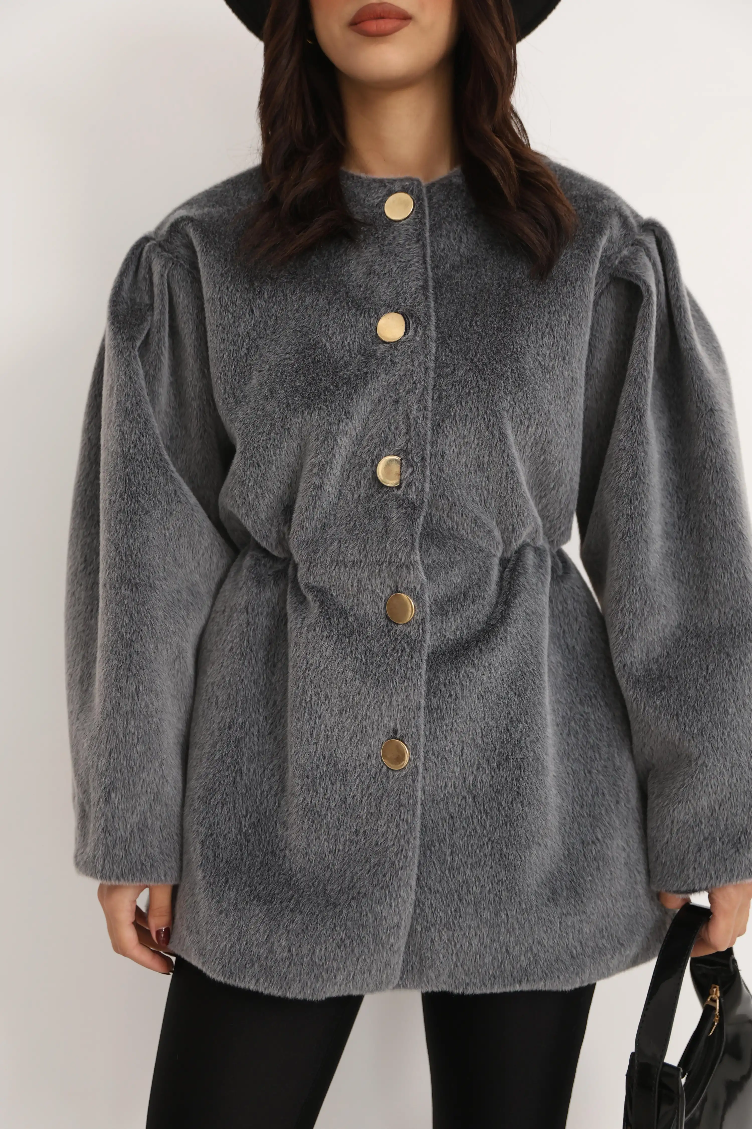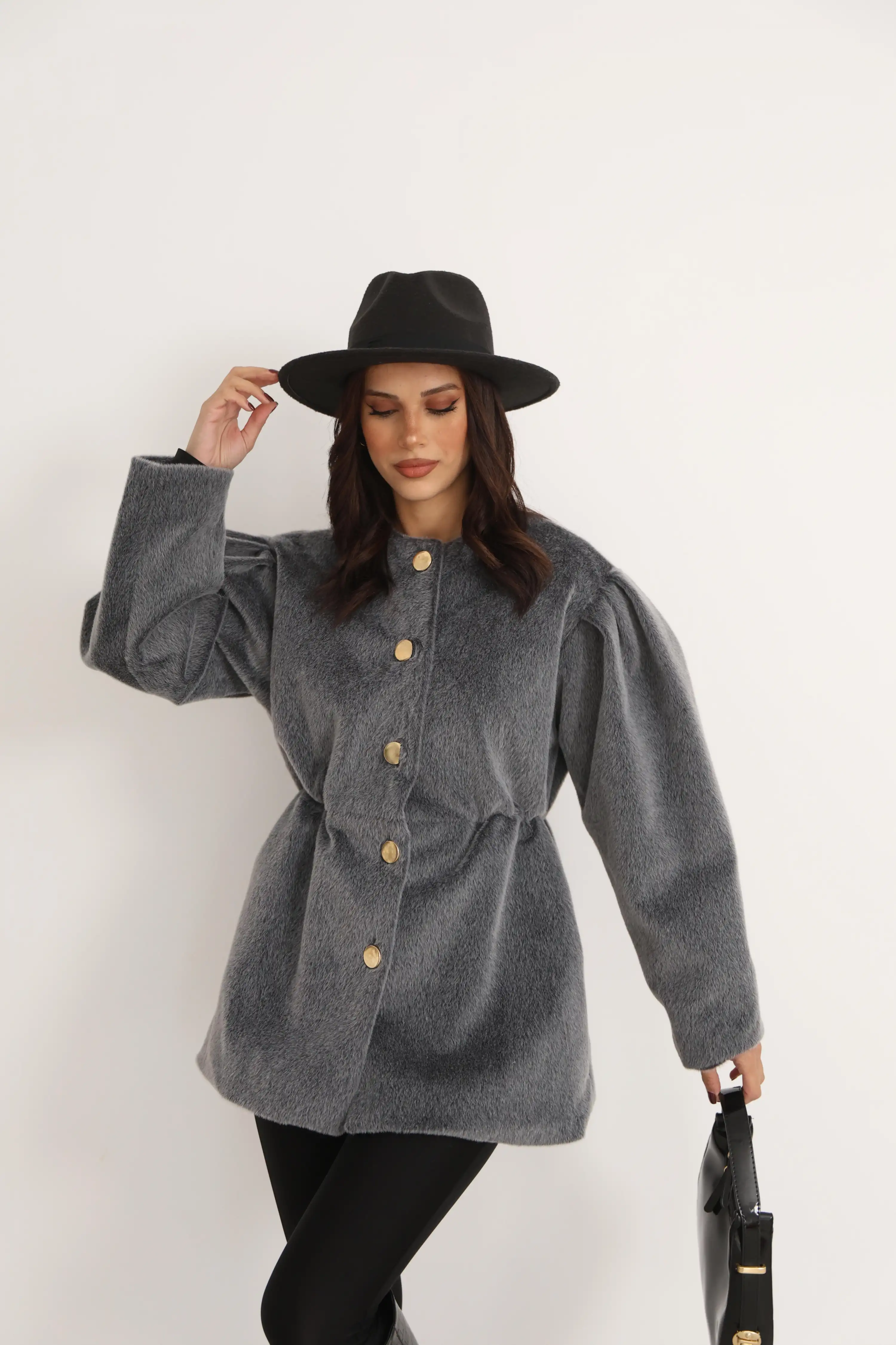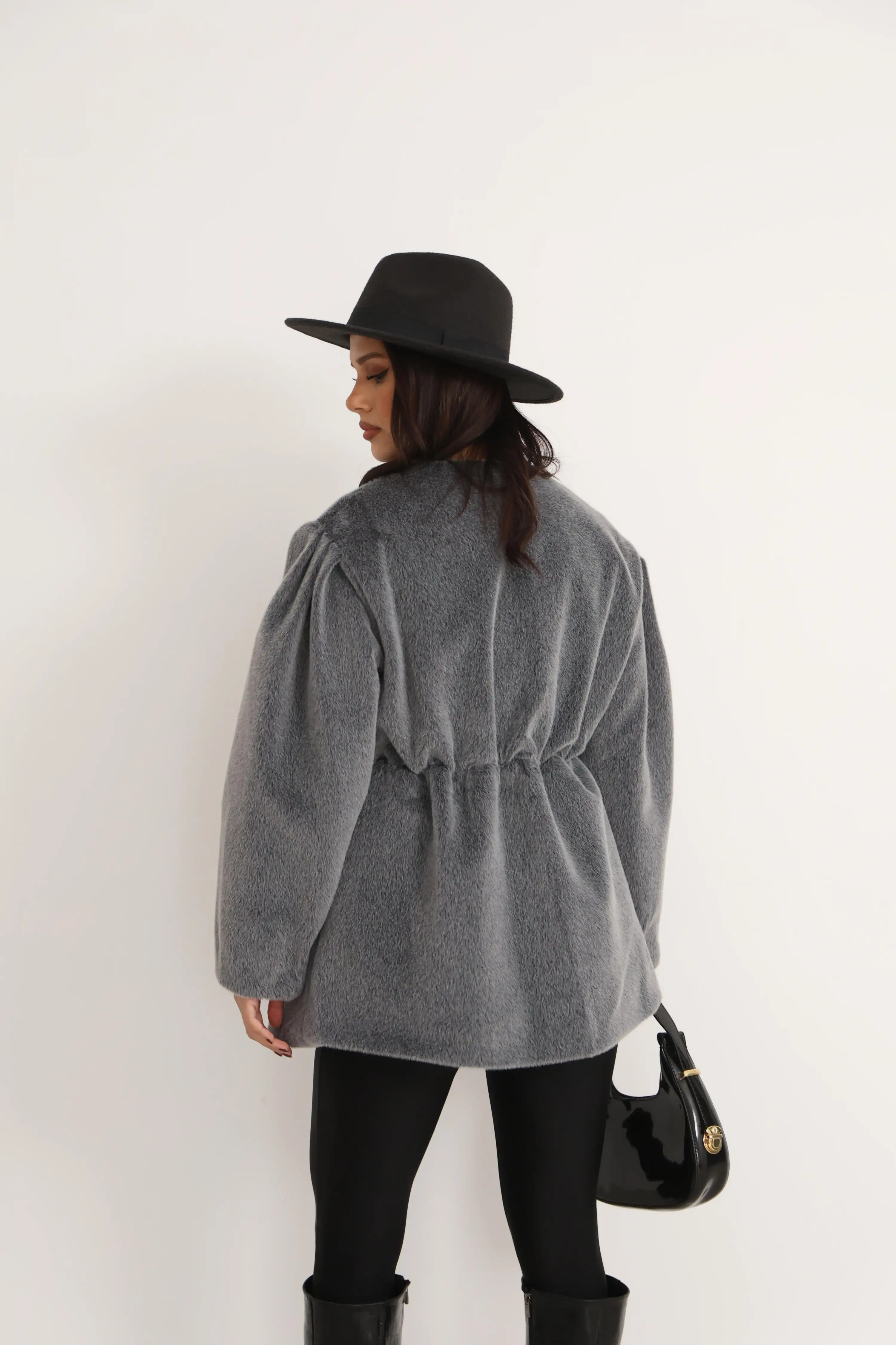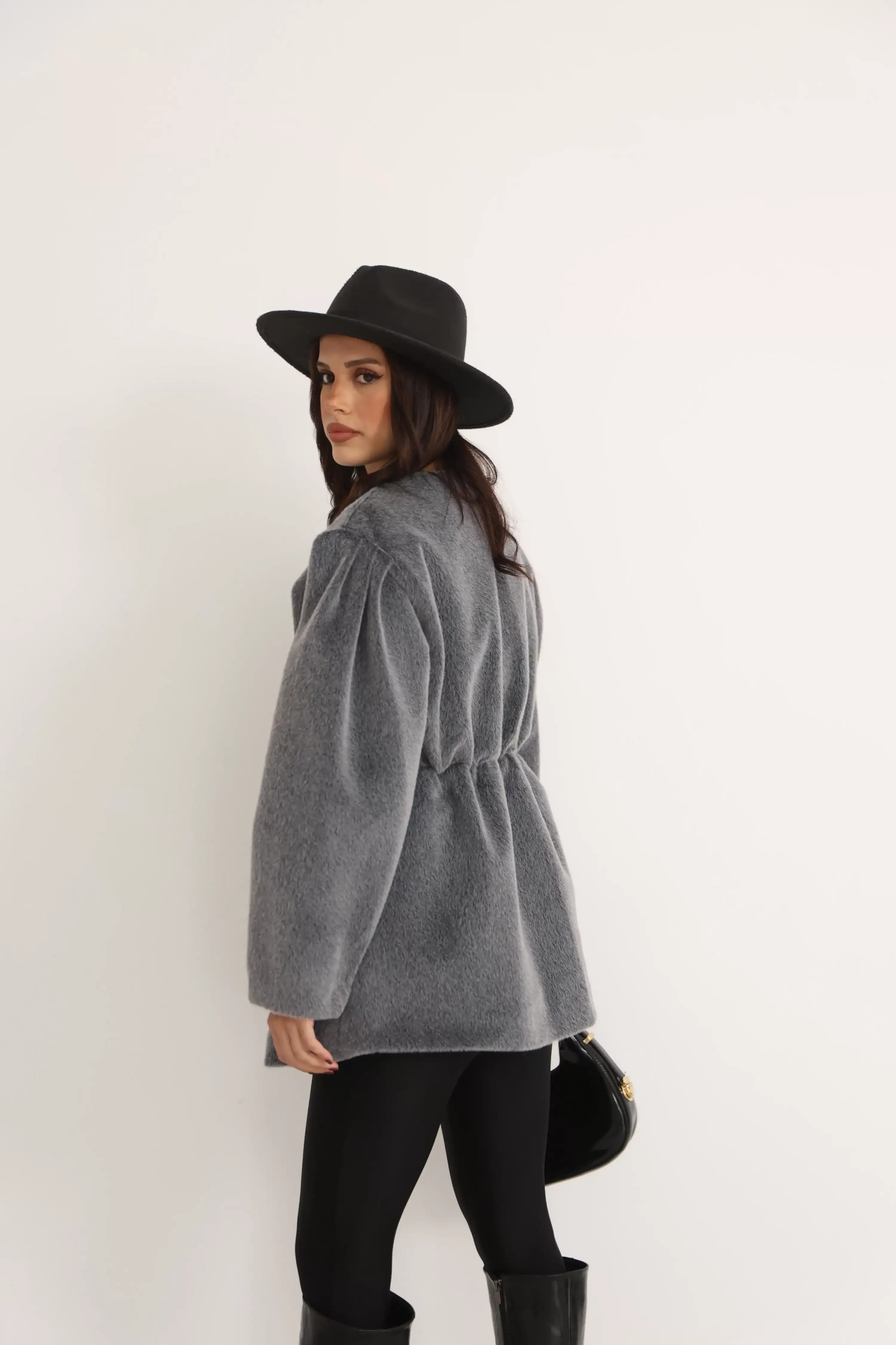 BELDEN BÜZME KÜRK CEKET-GRİ
