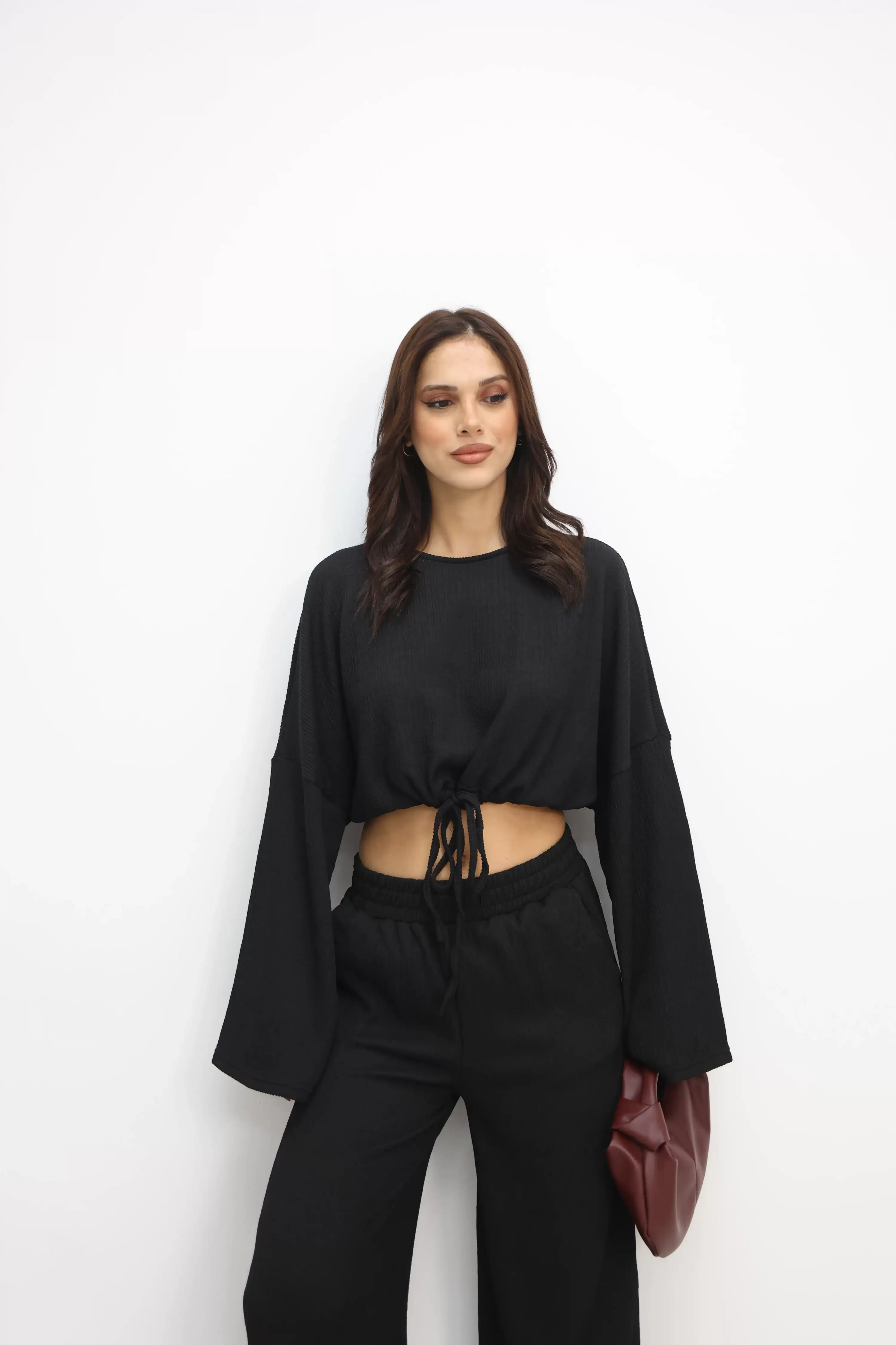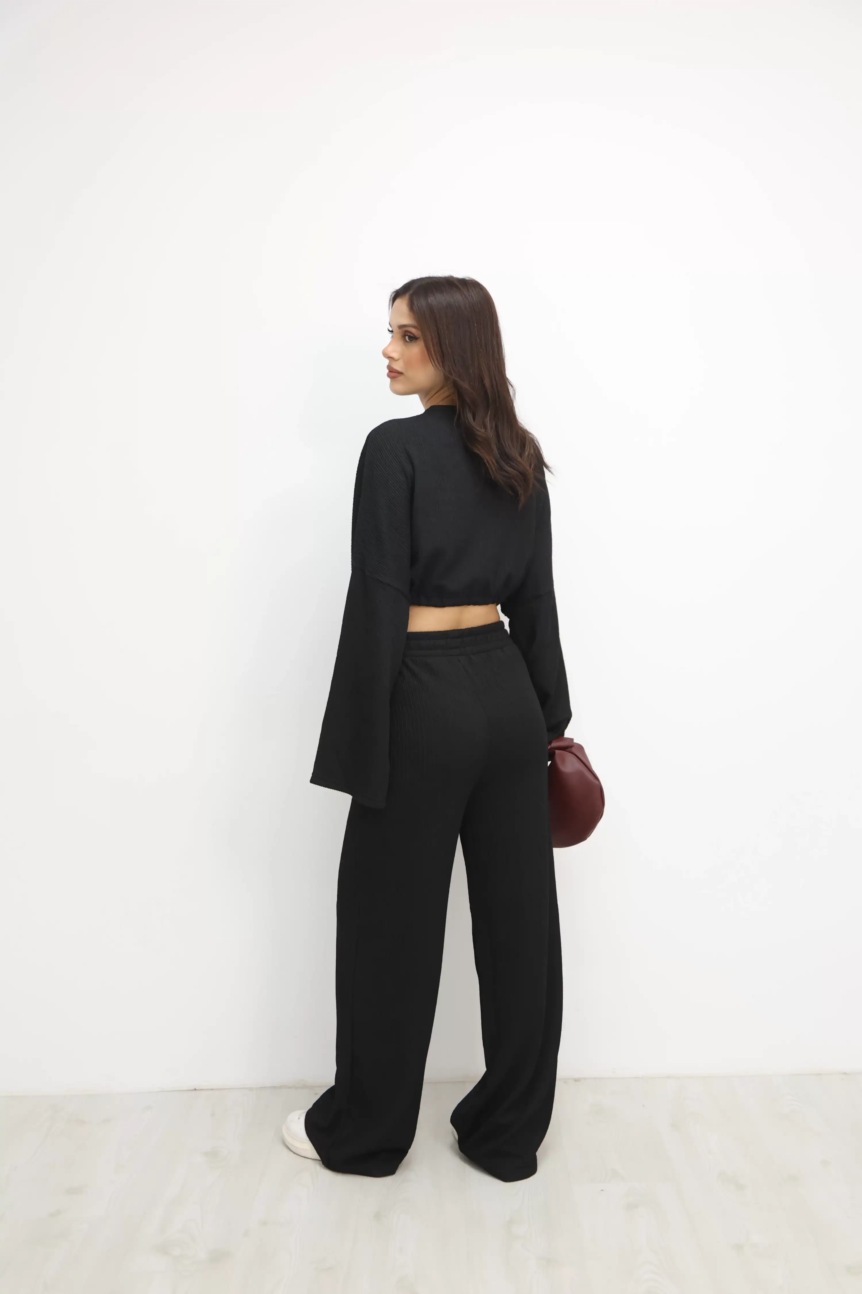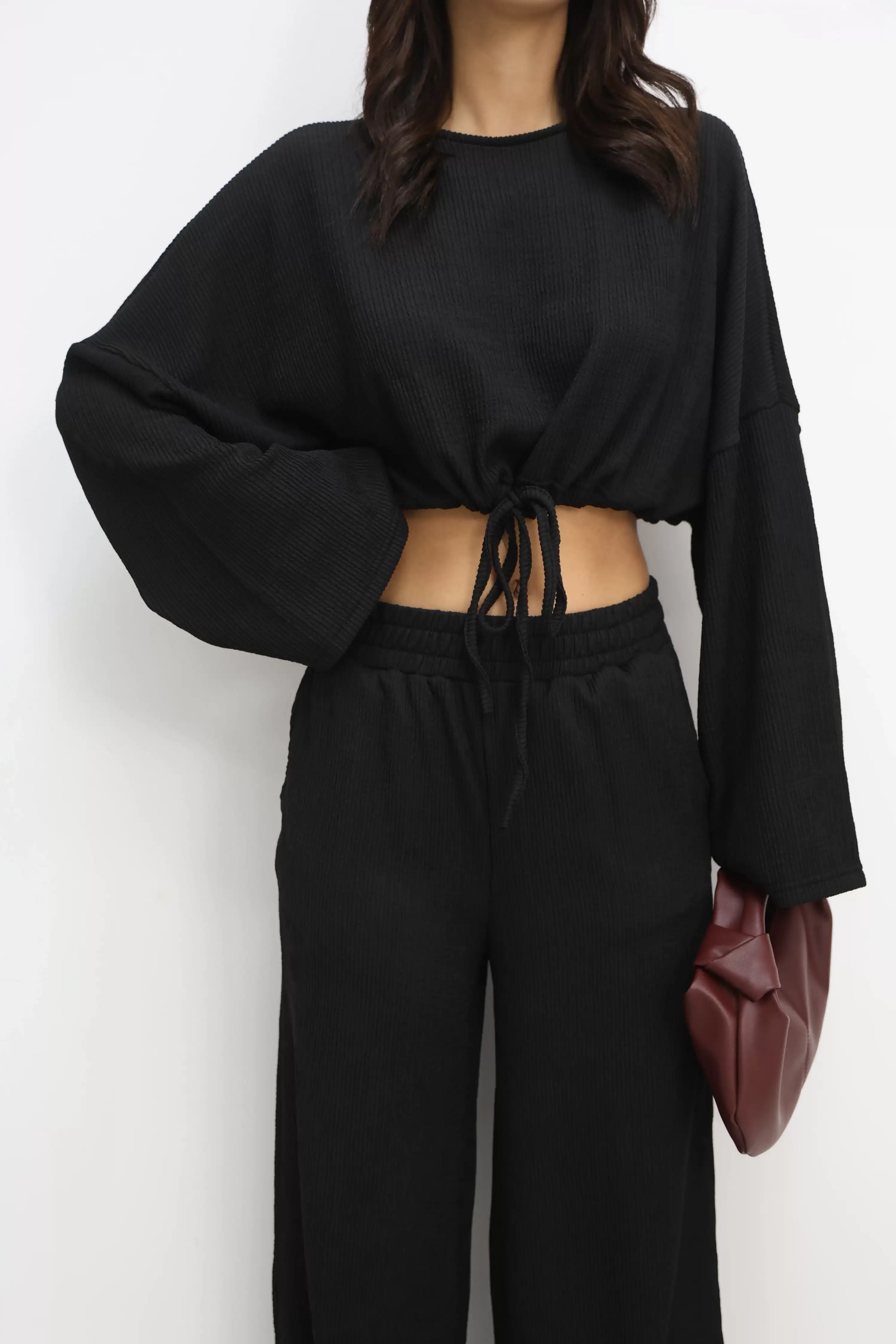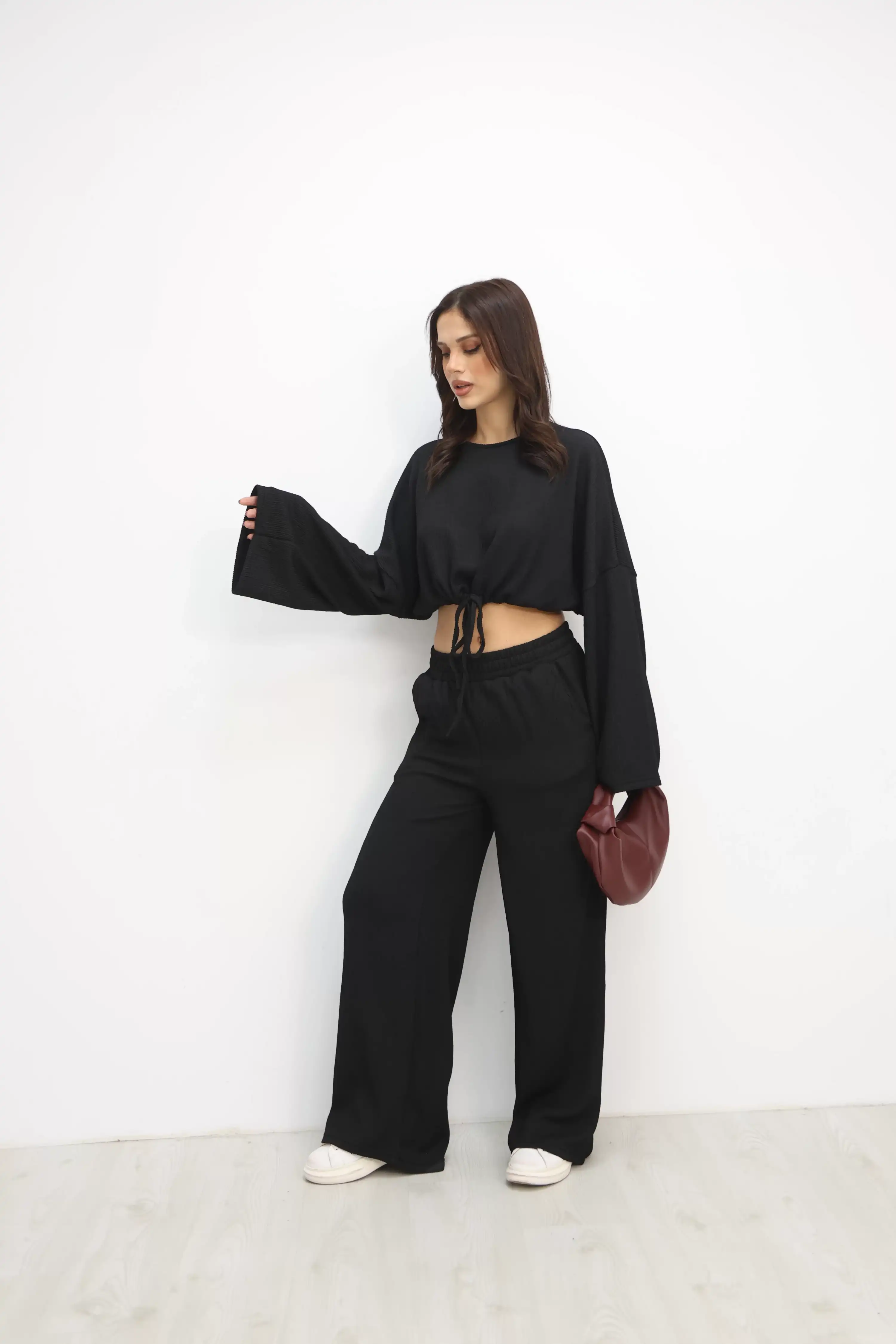BELDEN BÜZME LASTİKLİ KENDİNDEN ÇİZGİLİ TAKIM-SİYAH