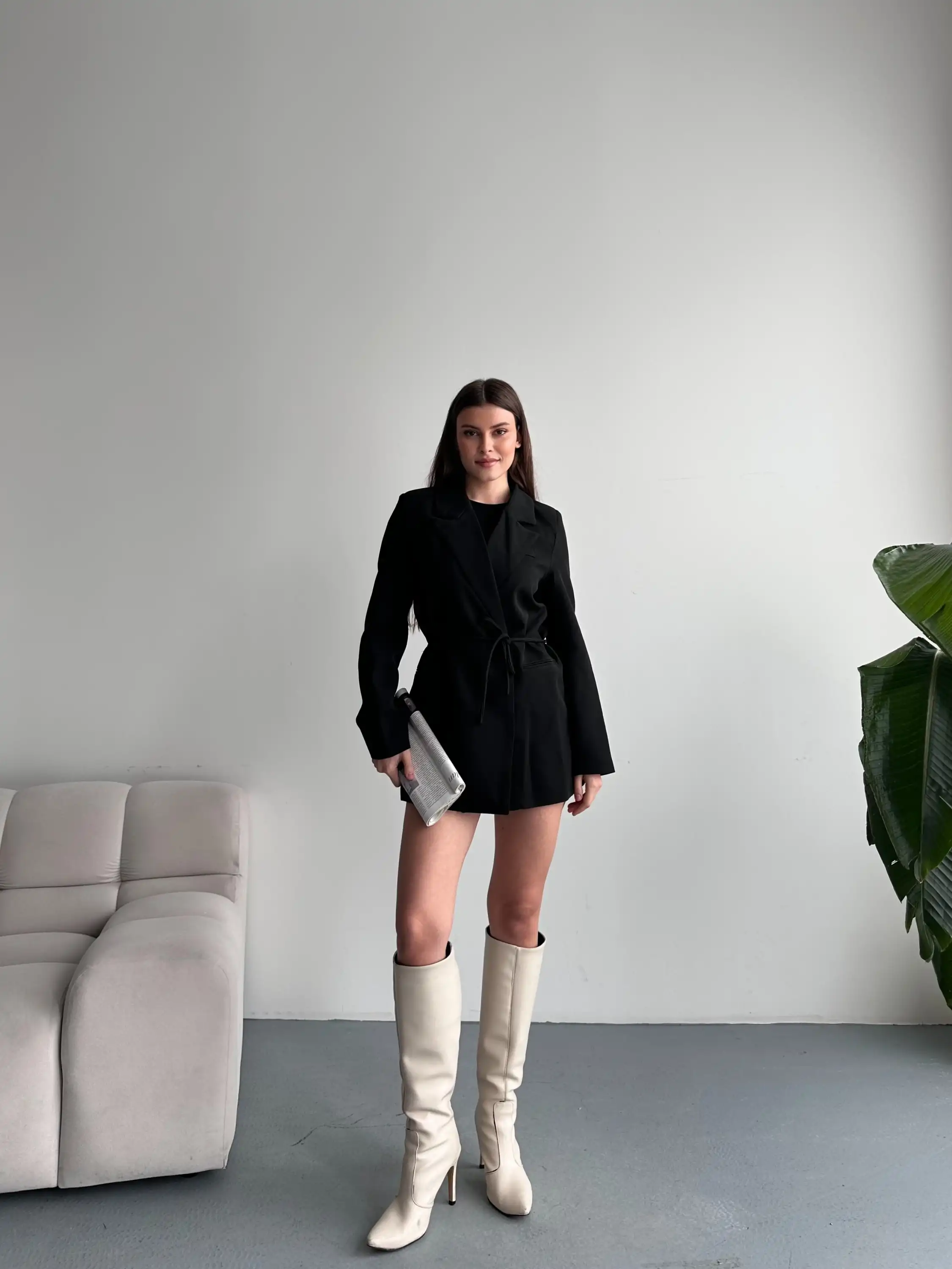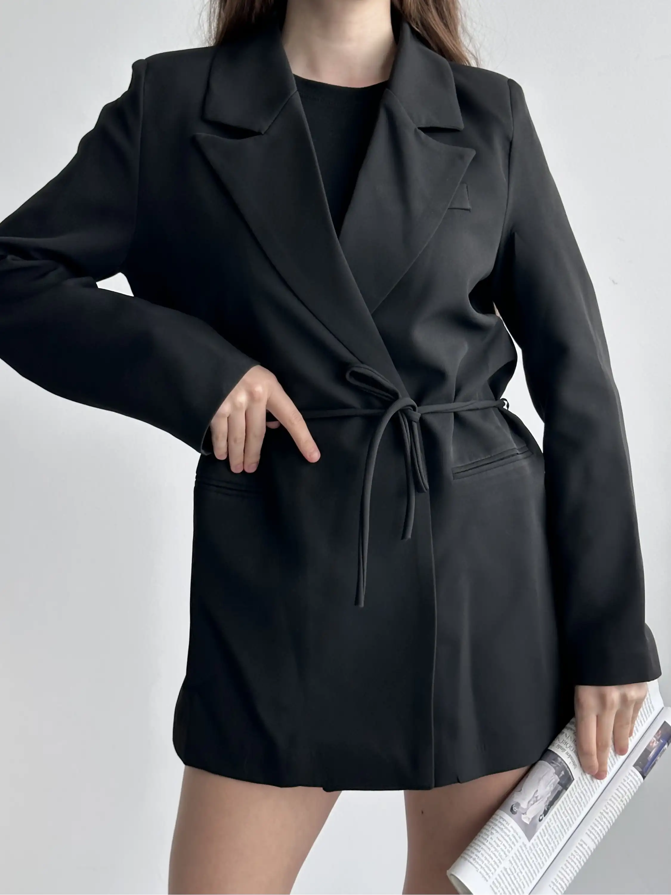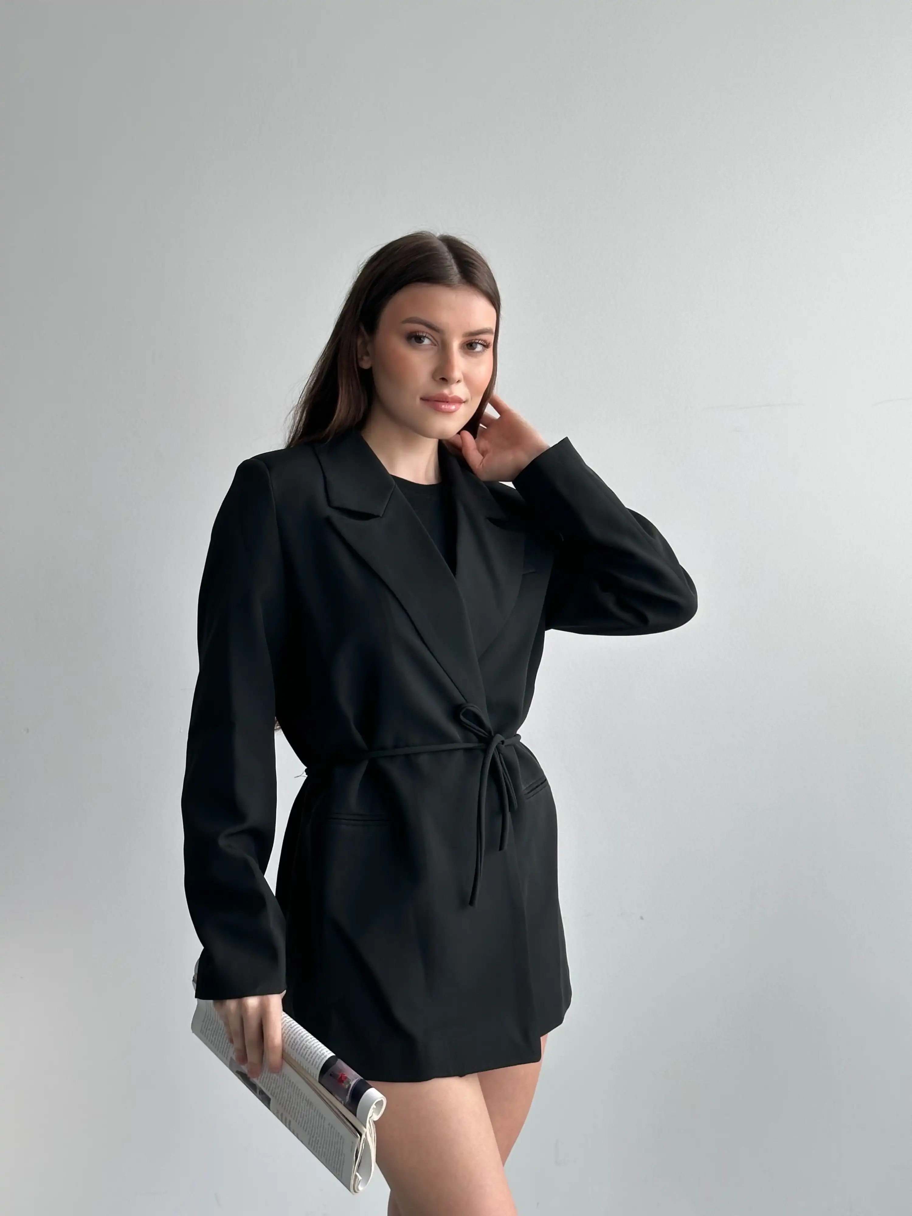 BELDEN İPLİ BLAZER CEKET-SİYAH