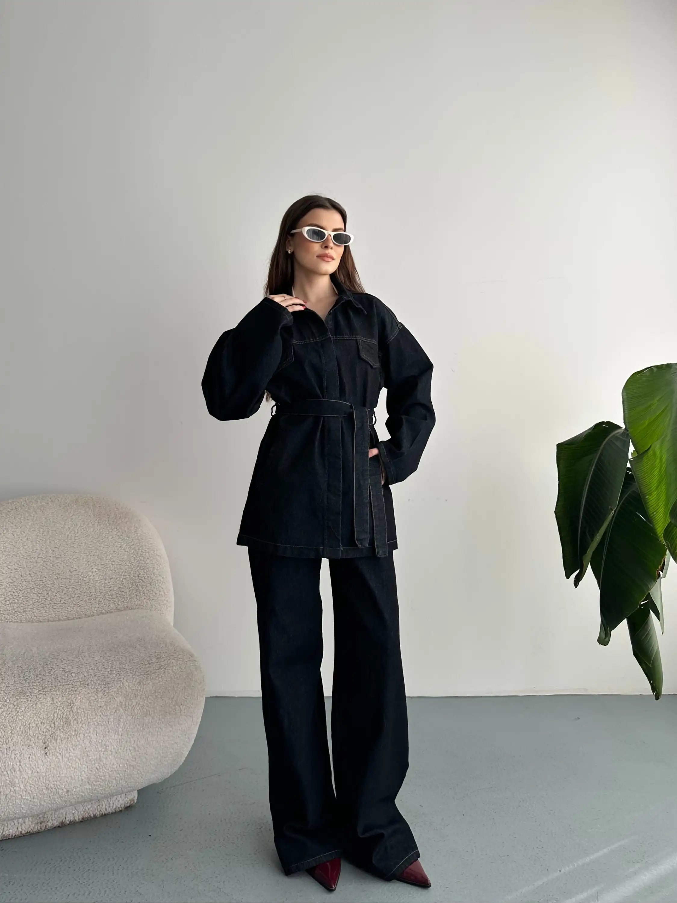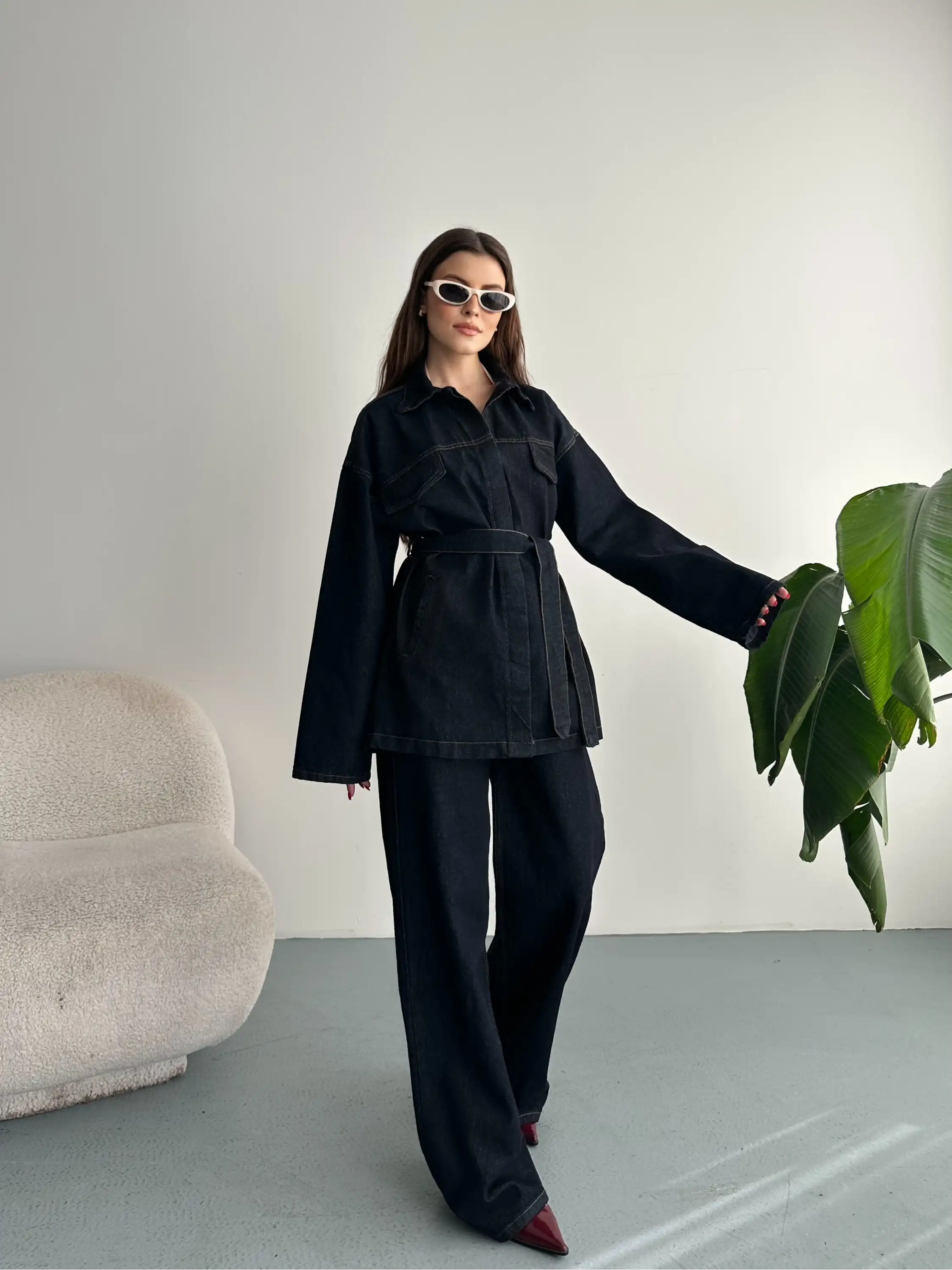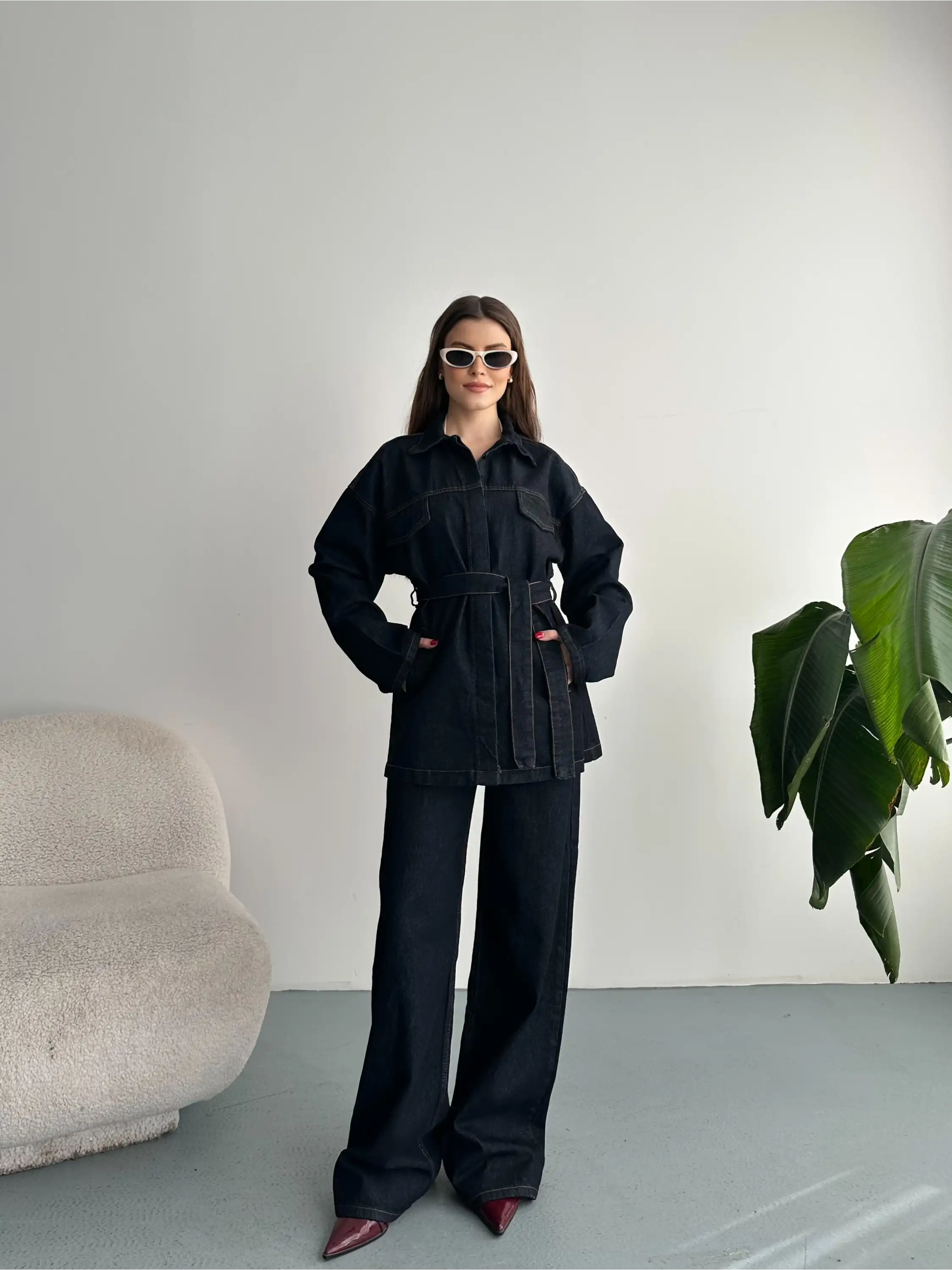 BELİ KUŞAKLI DENİM TAKIM-LACİVERT