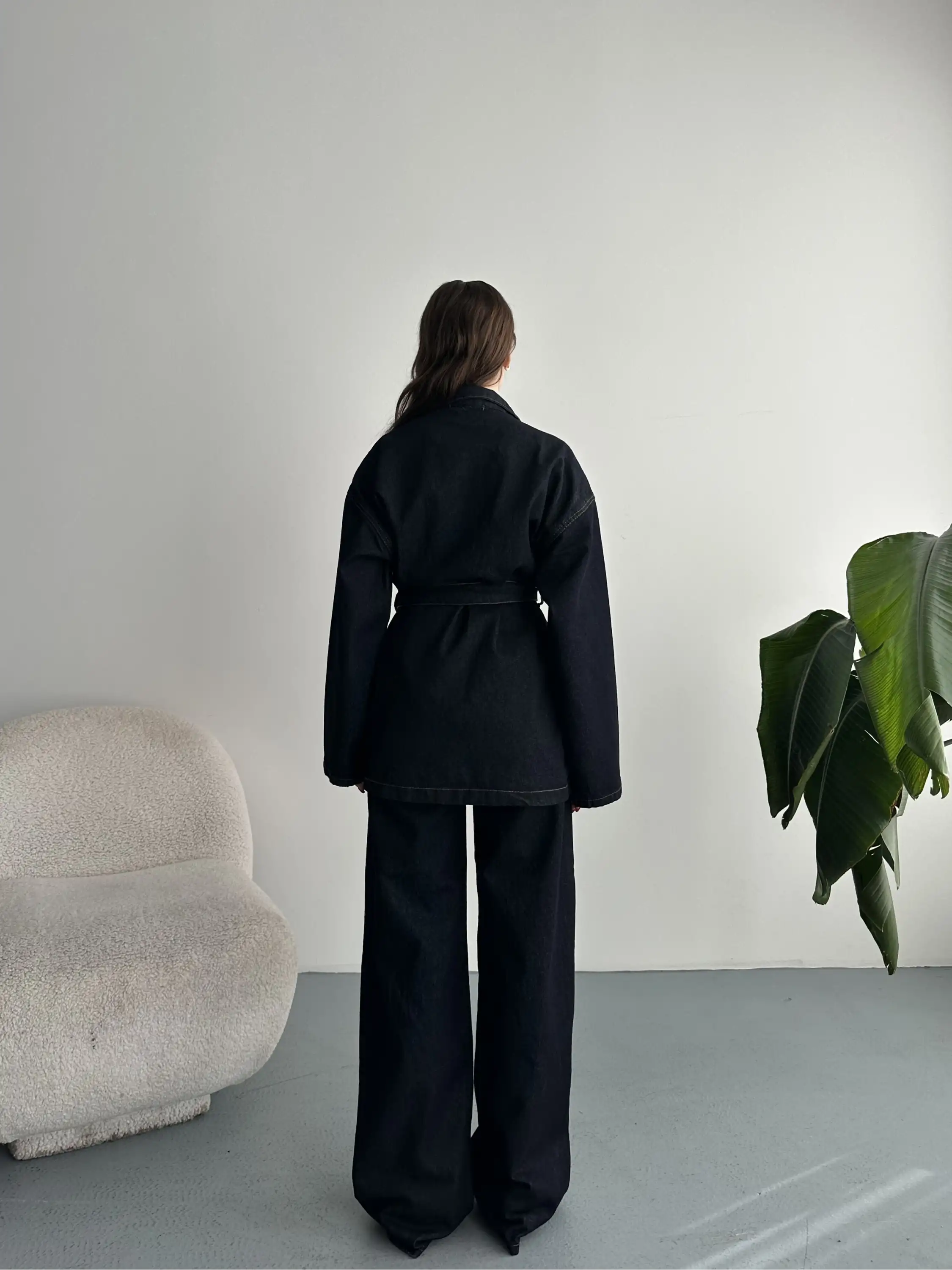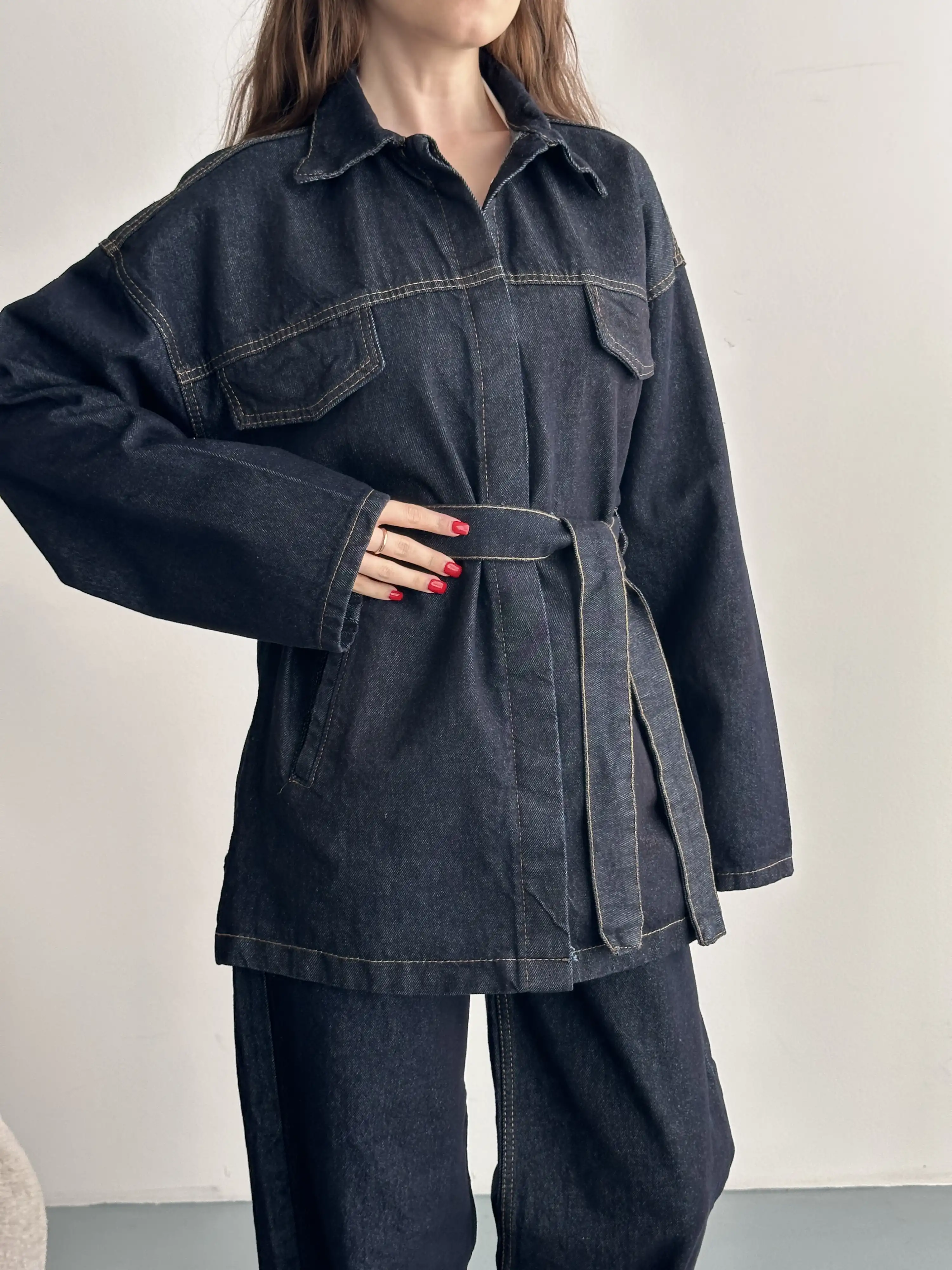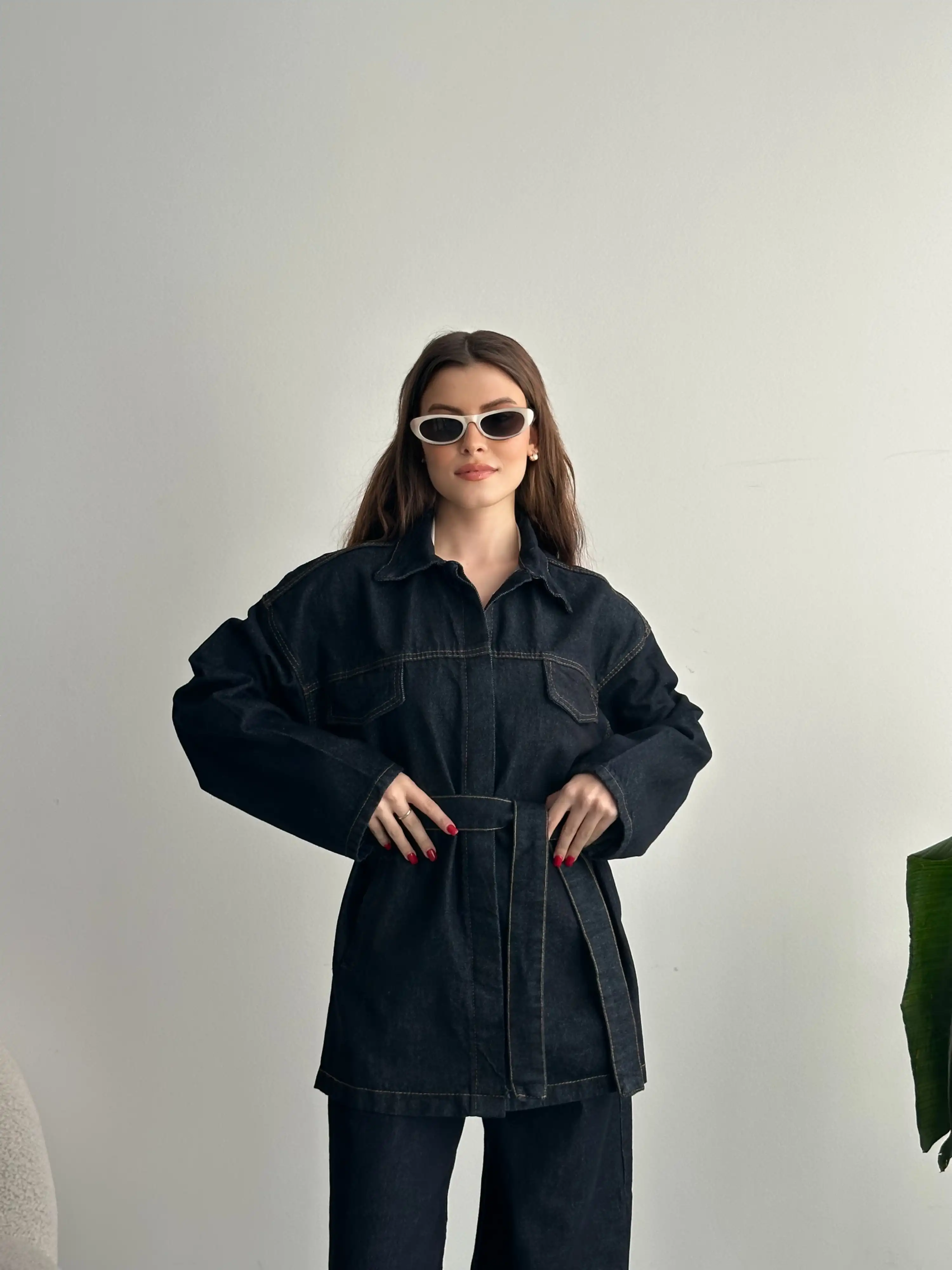 BELİ KUŞAKLI DENİM TAKIM-LACİVERT