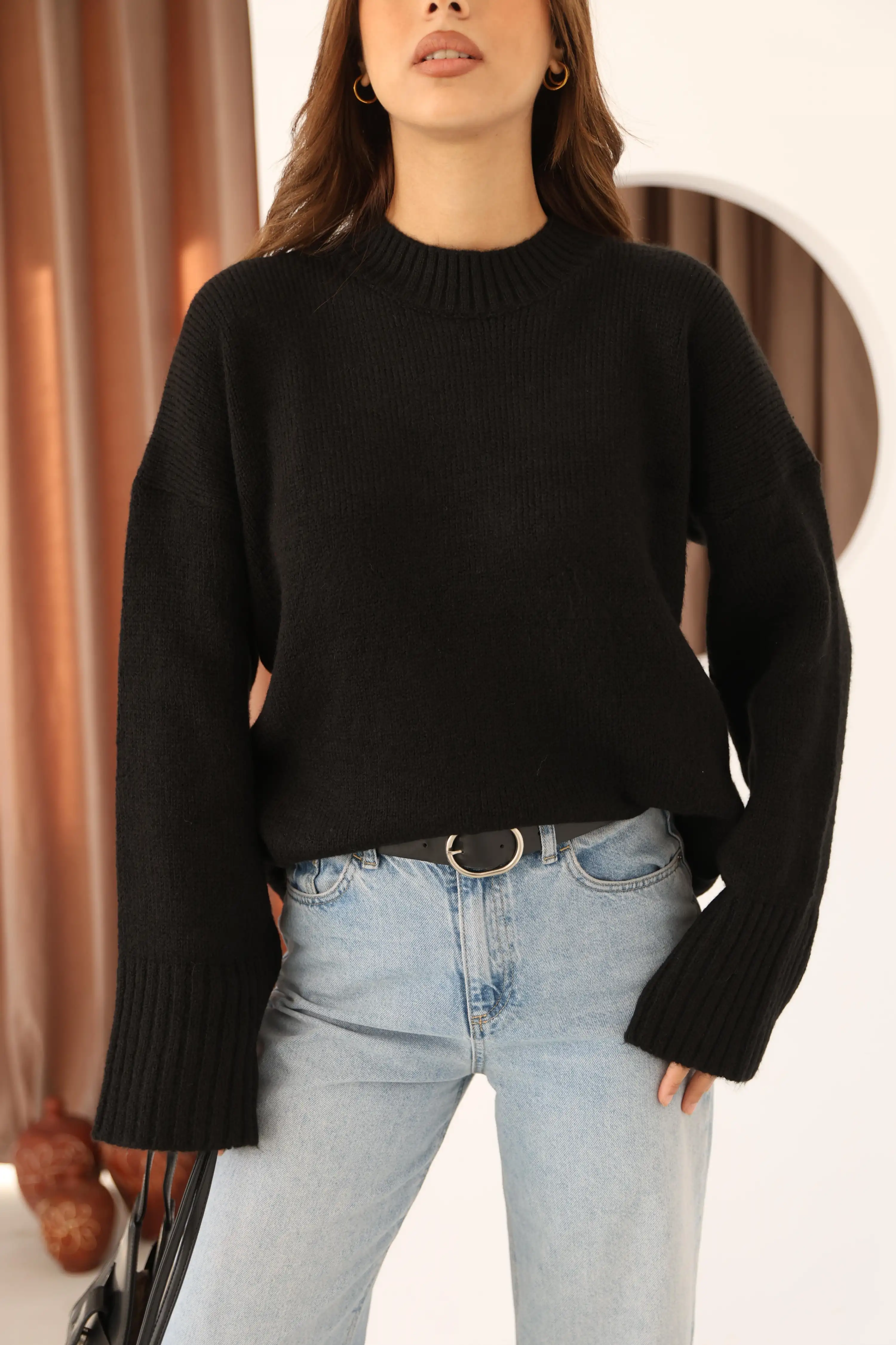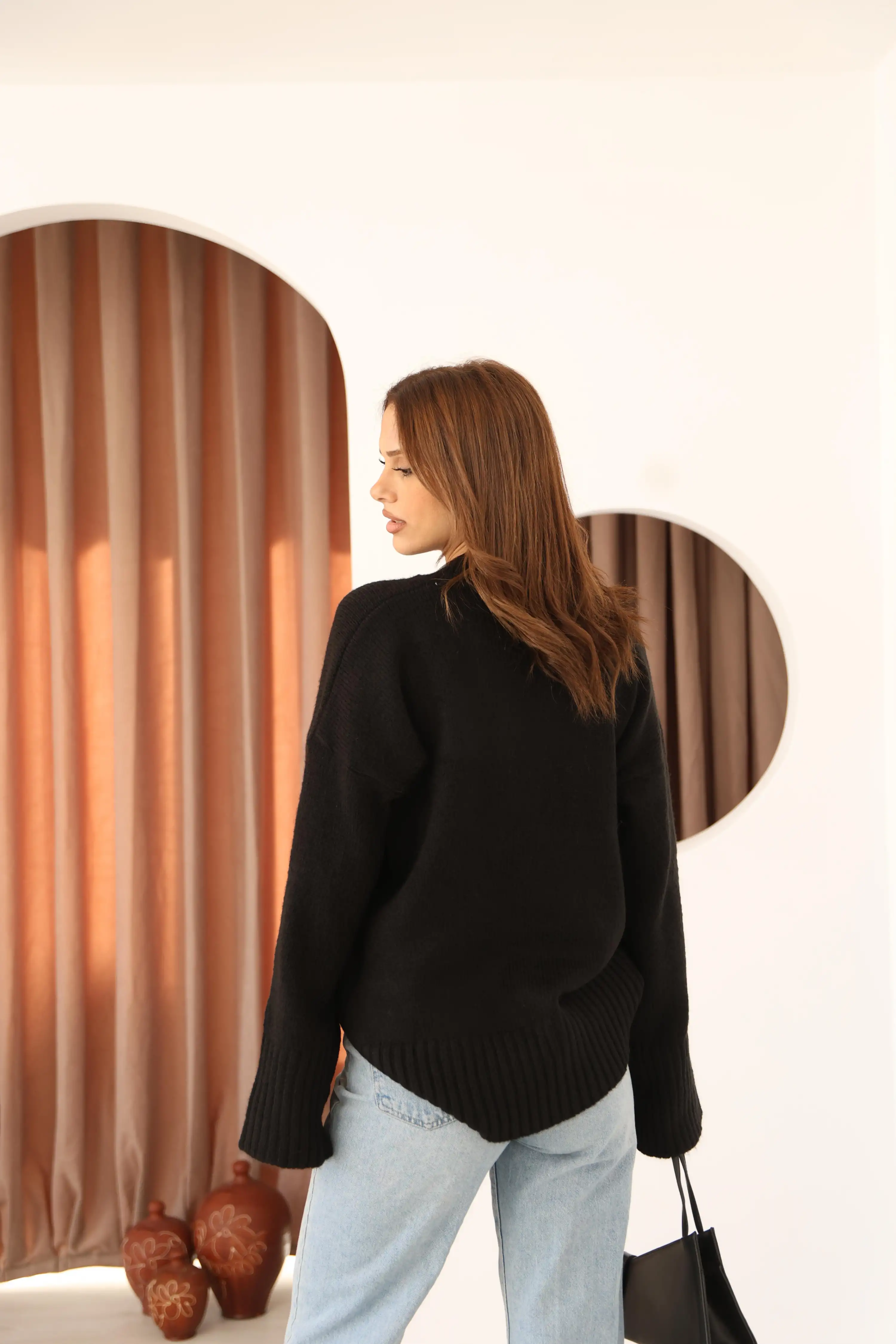 BİSİKLET YAKA OVERSİZE KAZAK-SİYAH