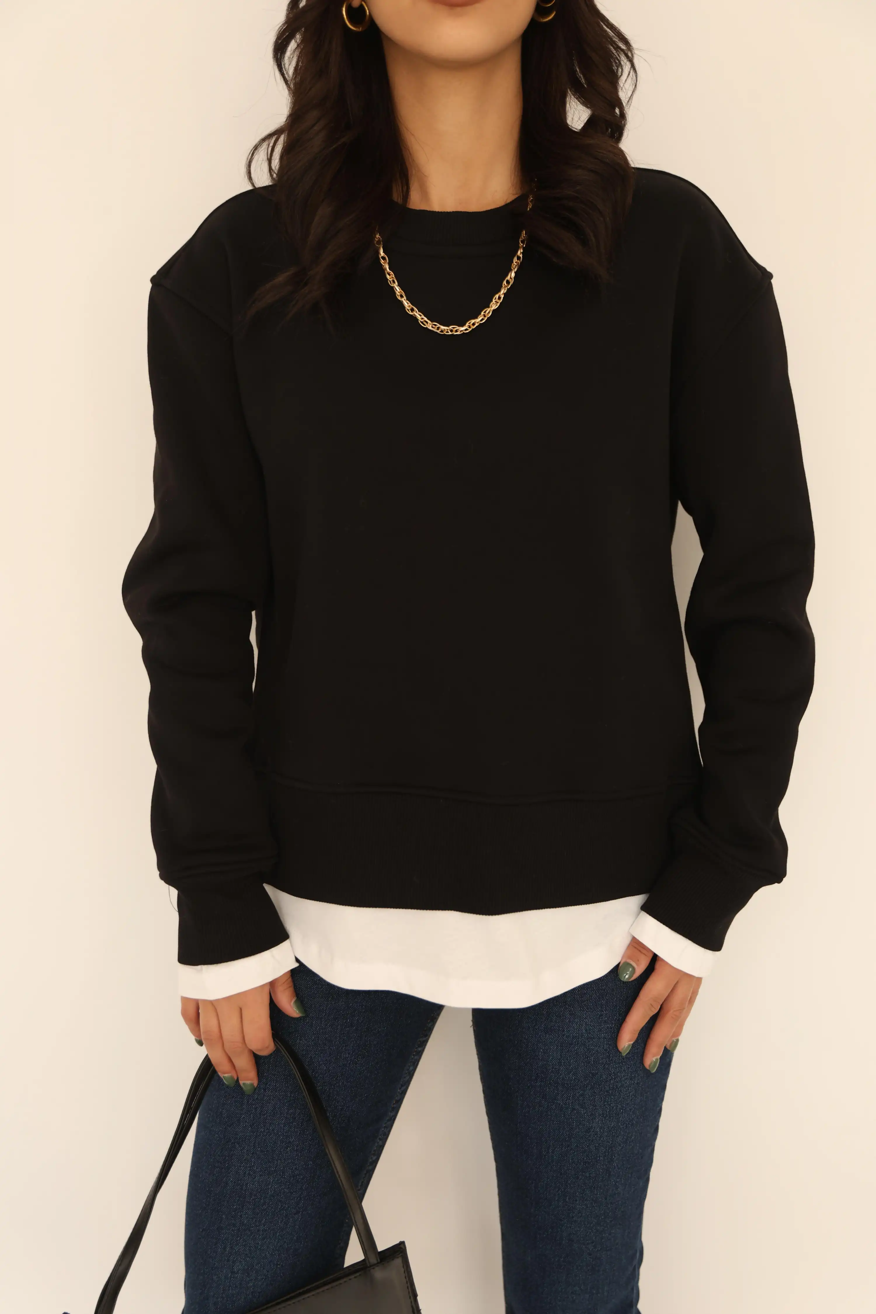 BİSİKLET YAKA SWEAT-SİYAH
