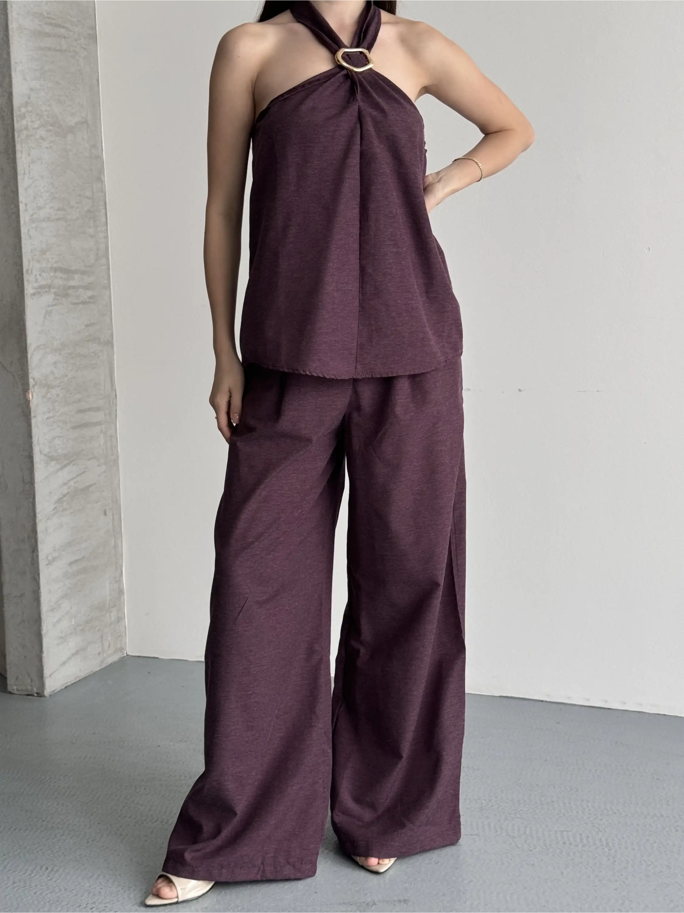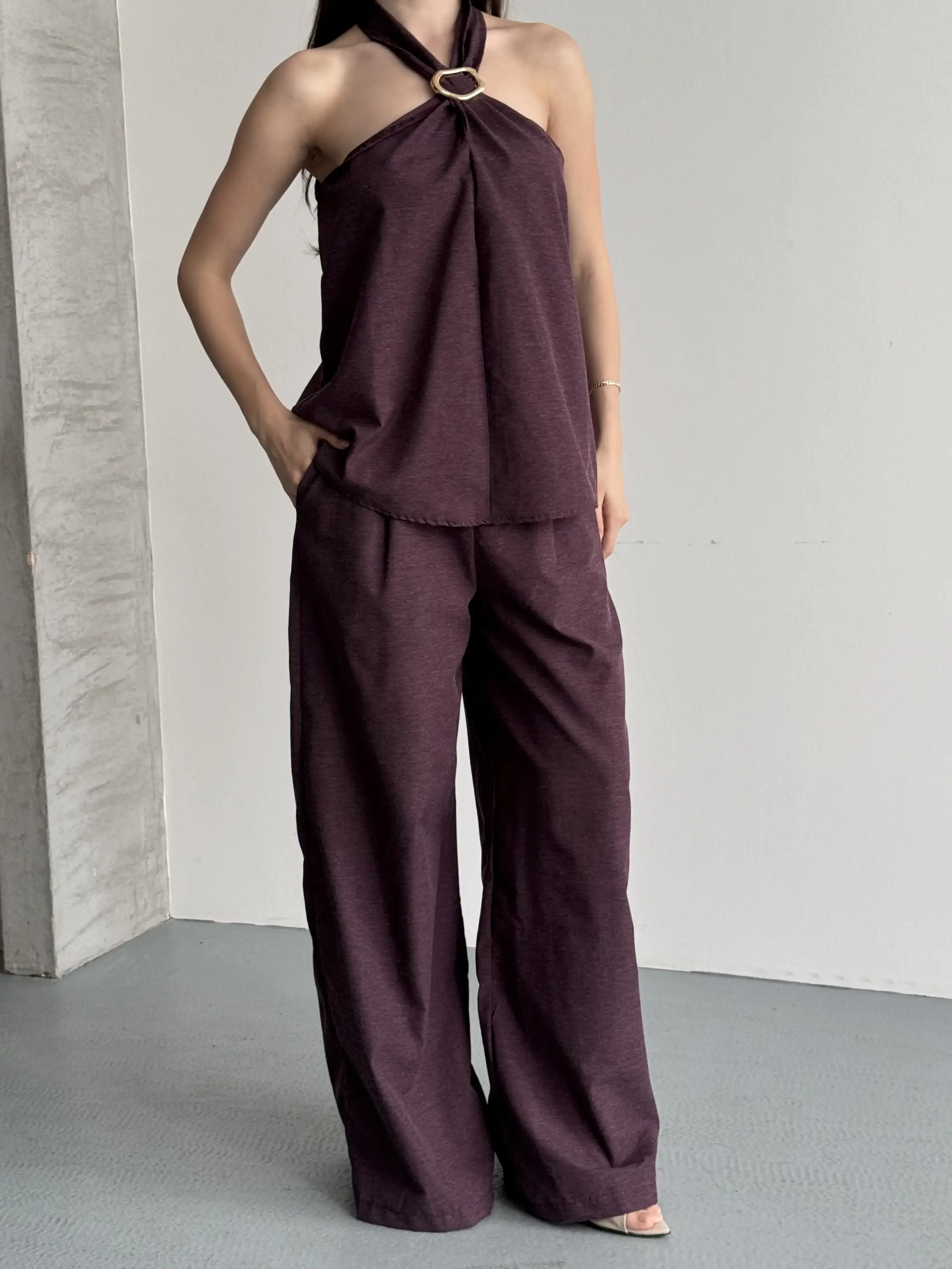 BOYUN GEÇİRMELİ GOLD AKSESUARLI PANTOLONLU TAKIM-BORDO