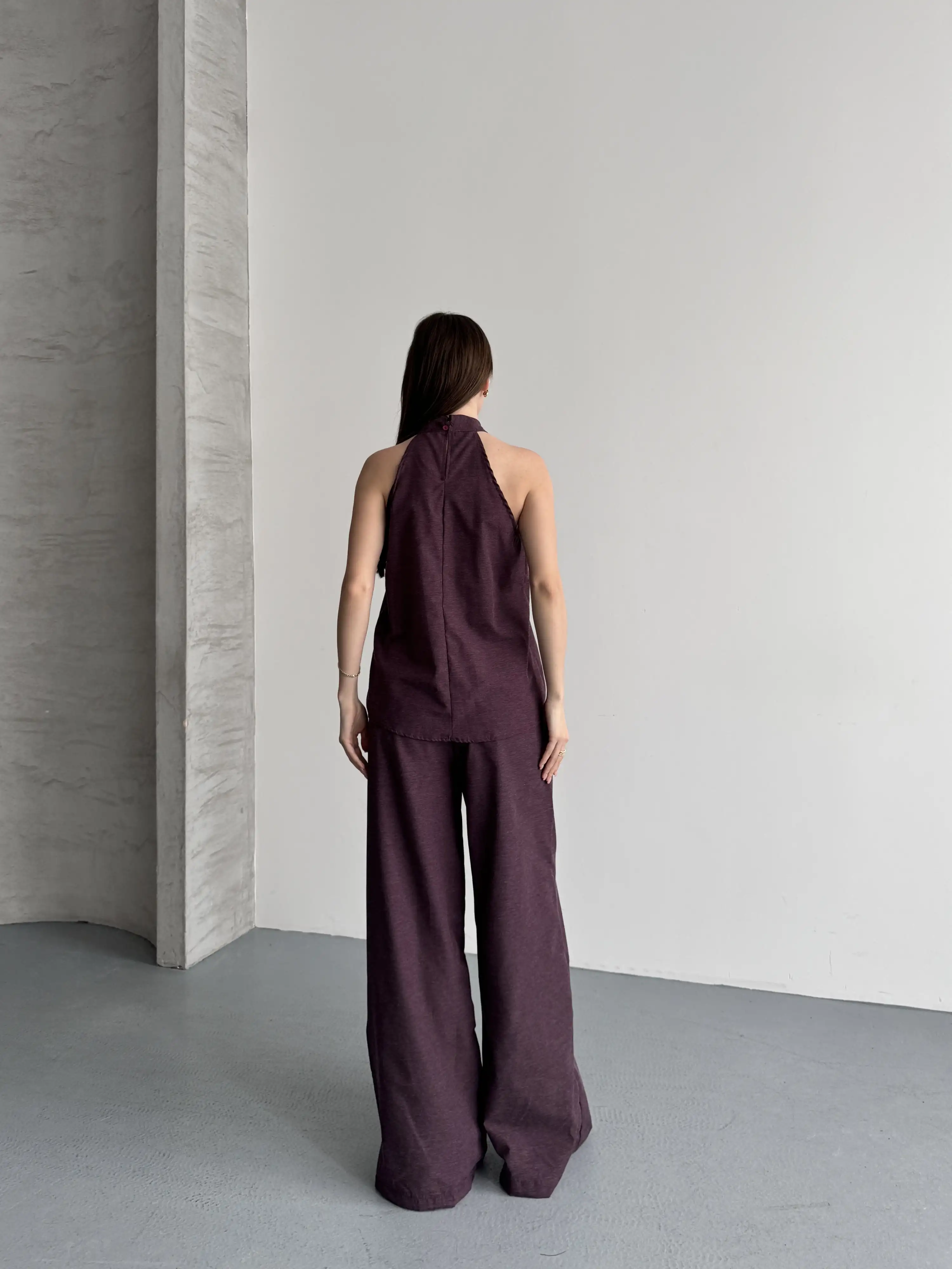 YÜKSEK BEL KETEN PALAZZO PANTOLON-KAHVE