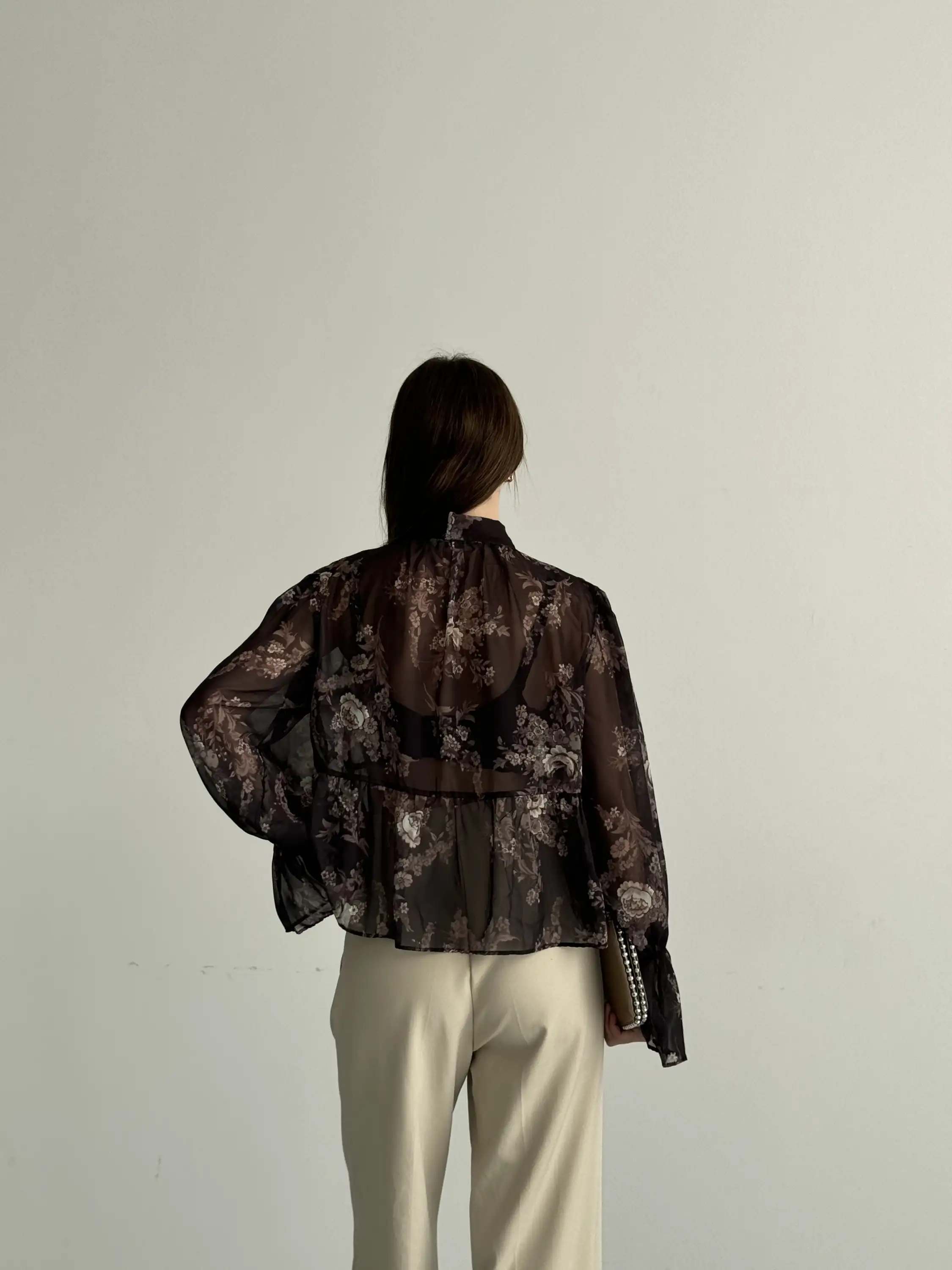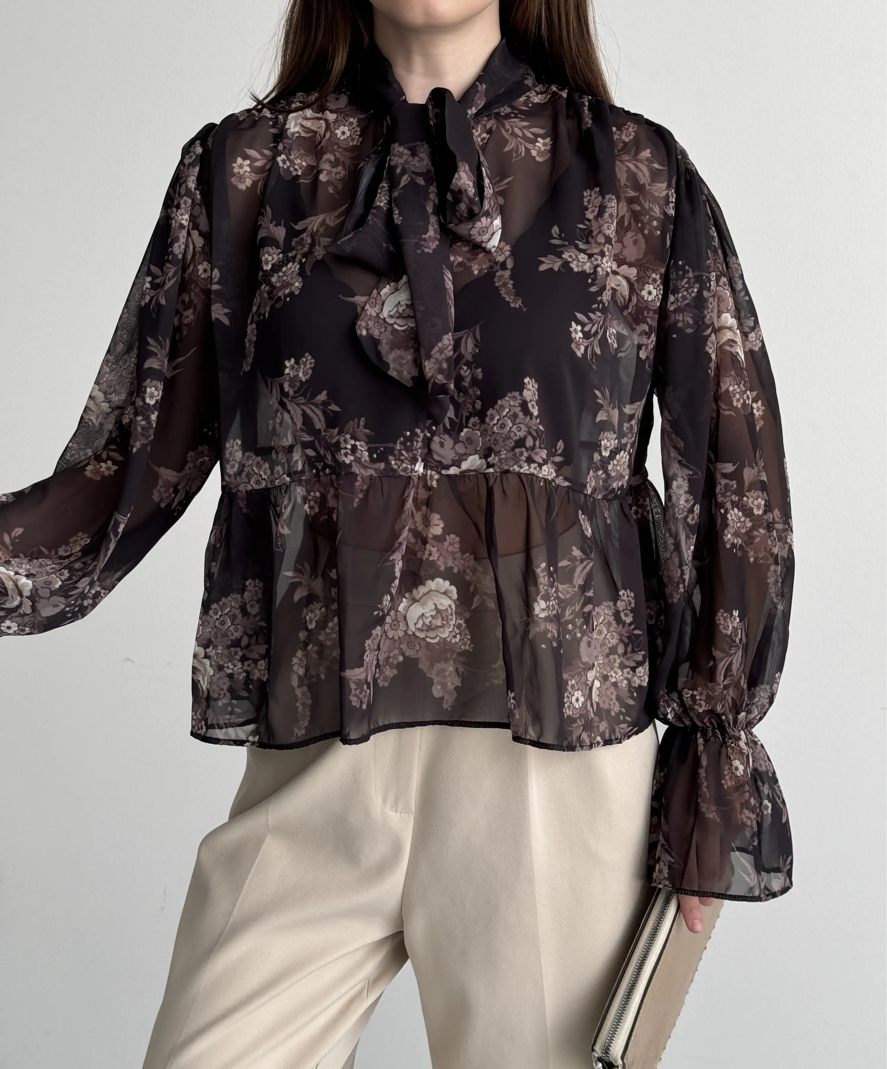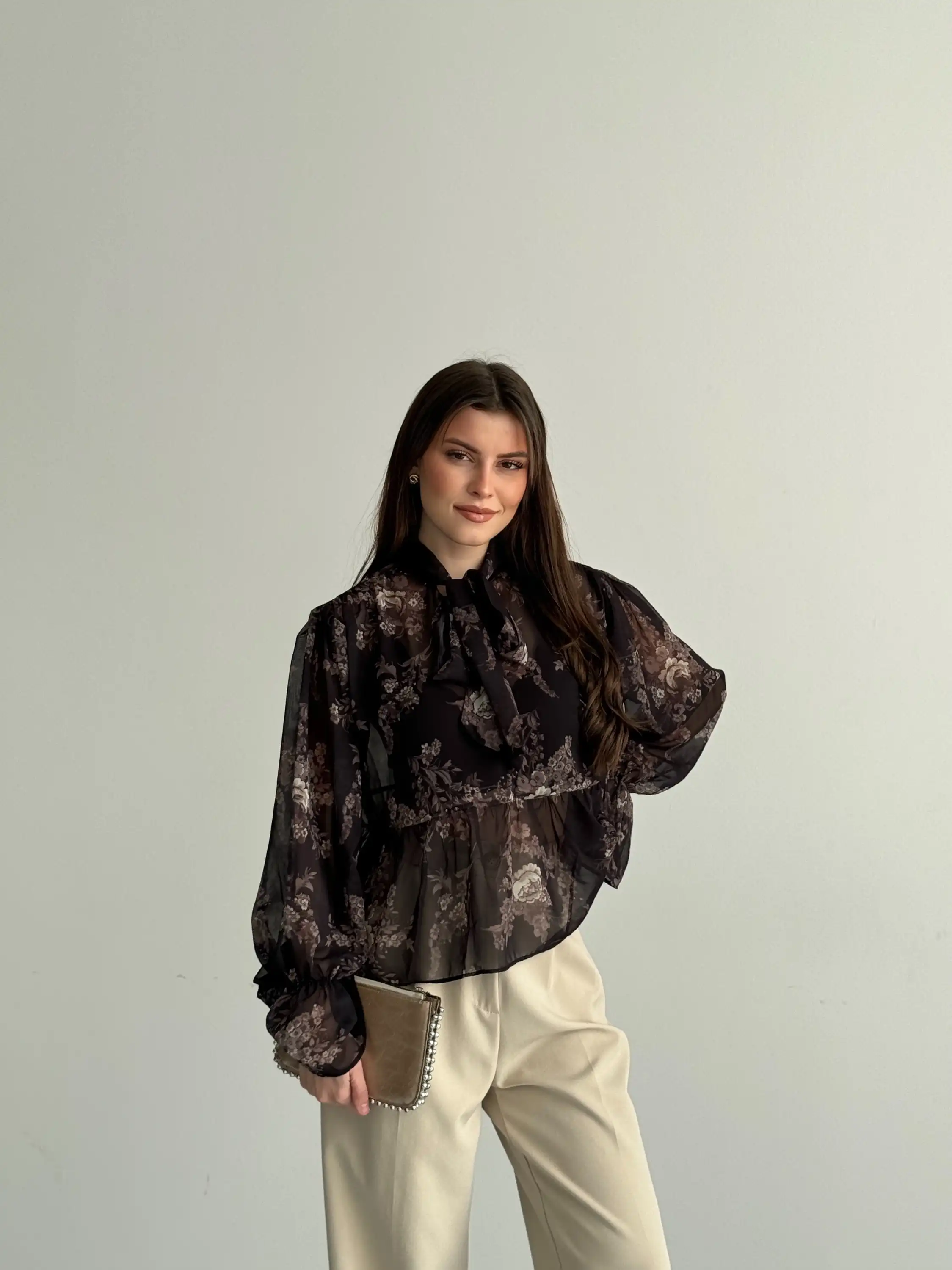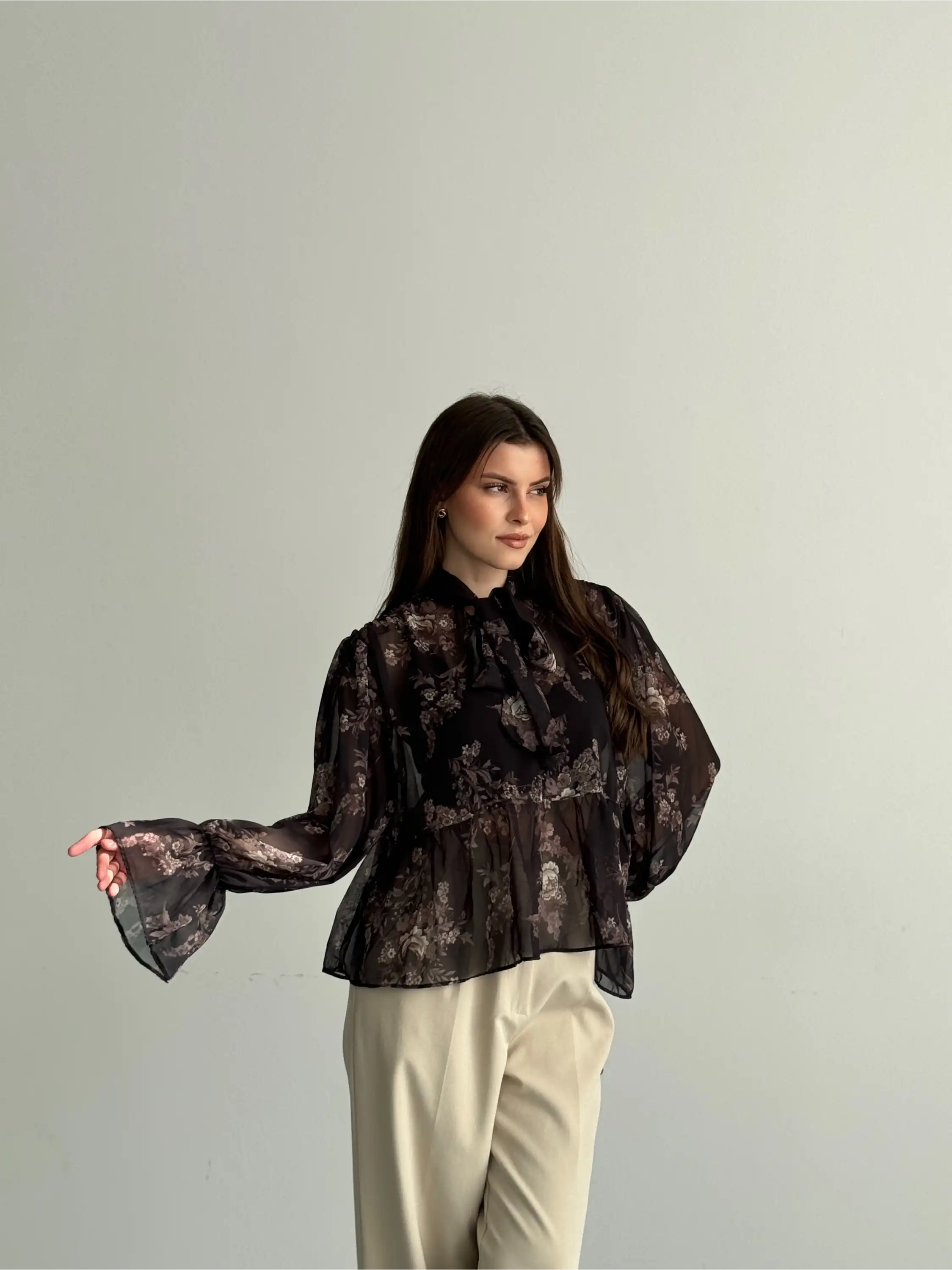 BOYUNDAN BAĞLAMALI ŞİFON BLUZ-SİYAH