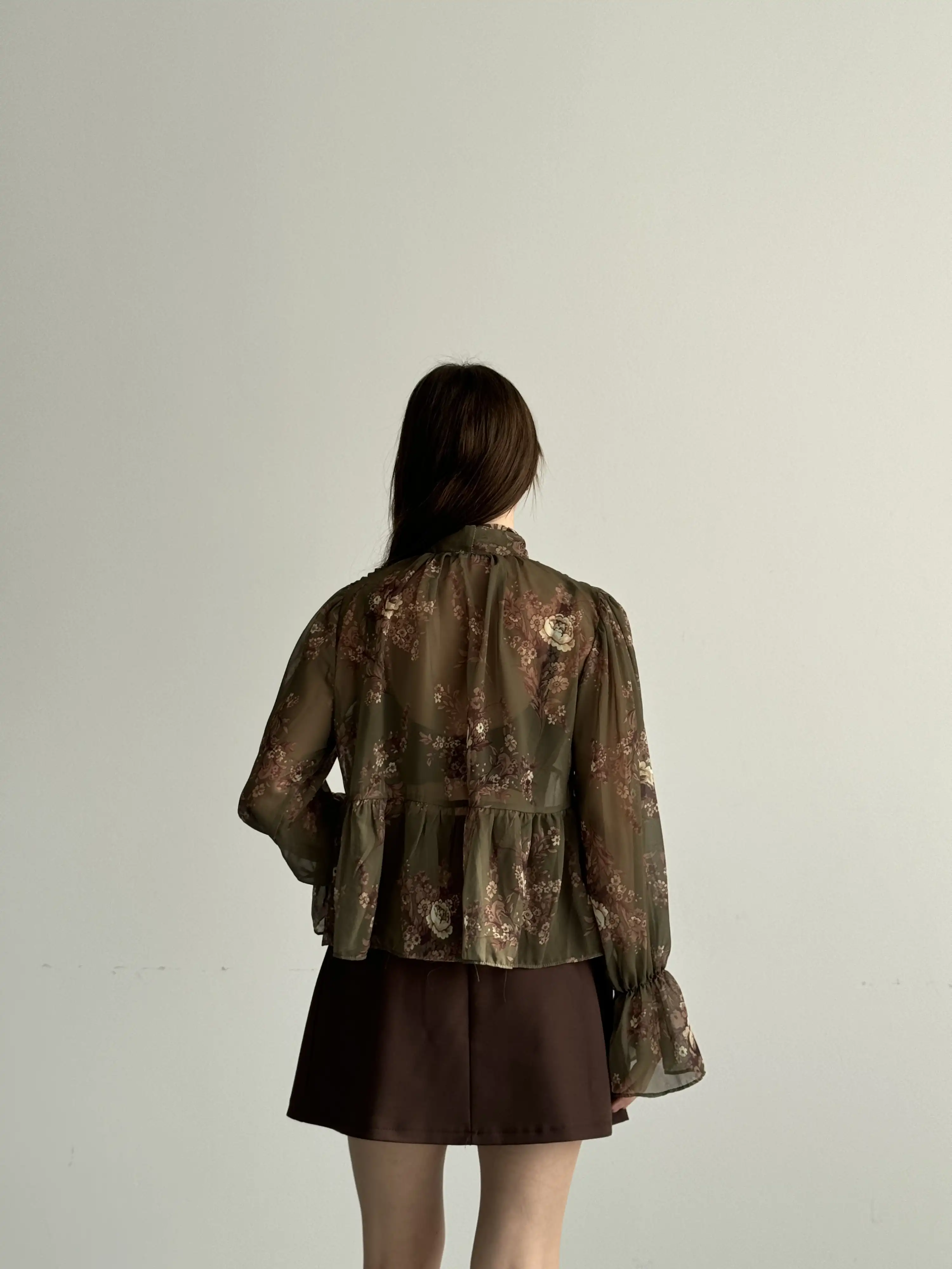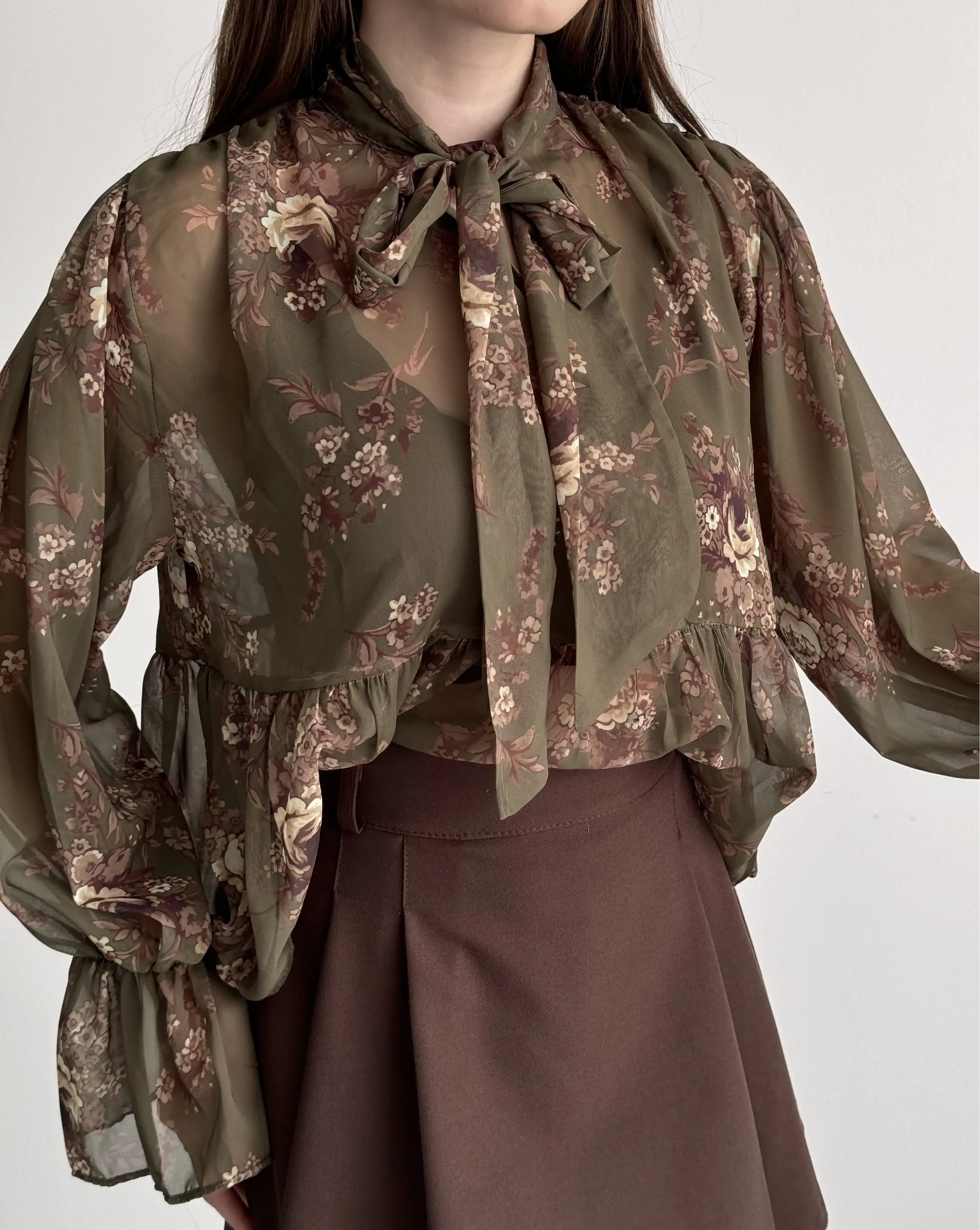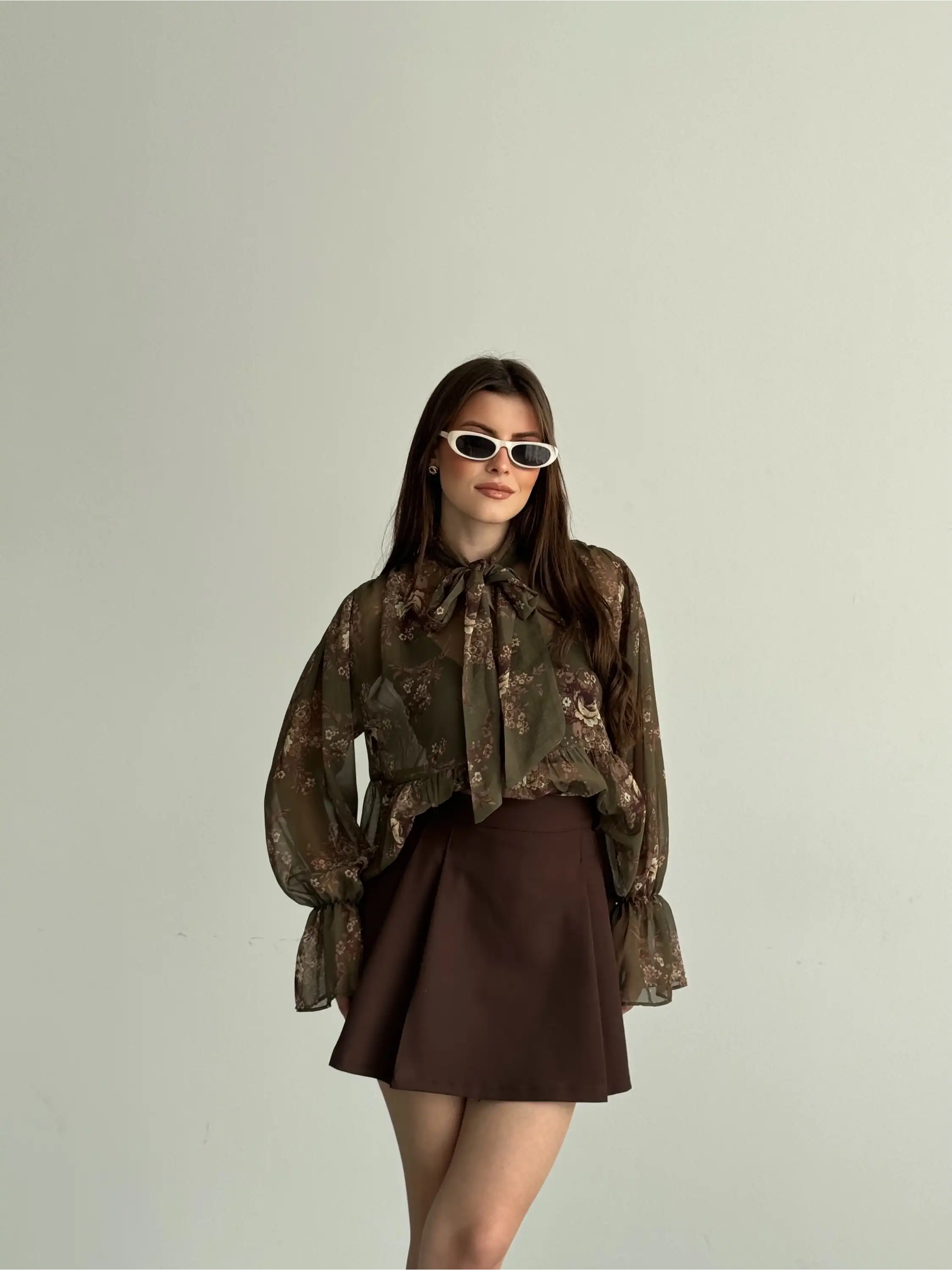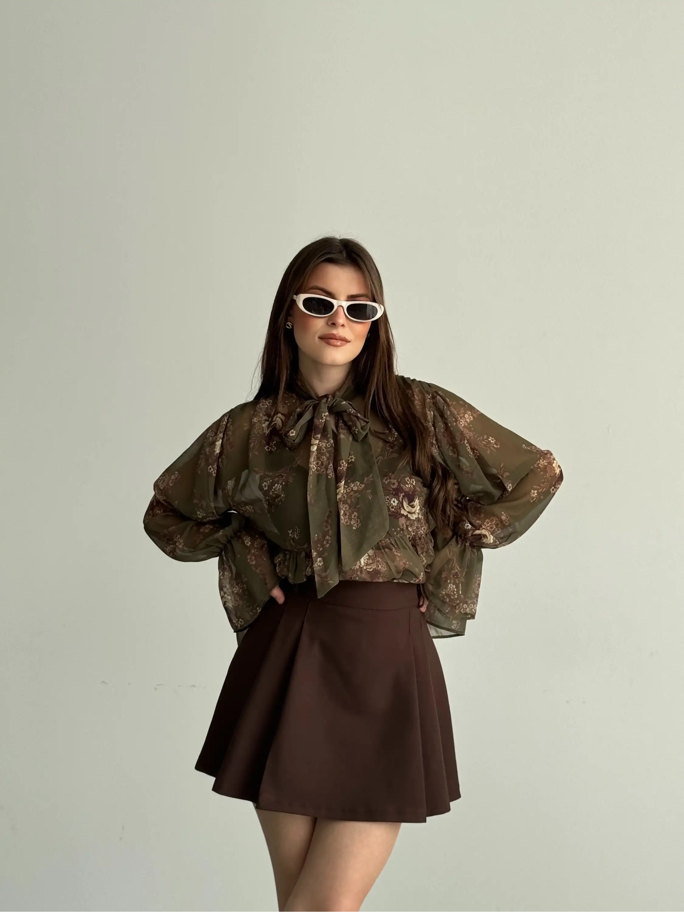 BOYUNDAN BAĞLAMALI ŞİFON BLUZ-YEŞİL