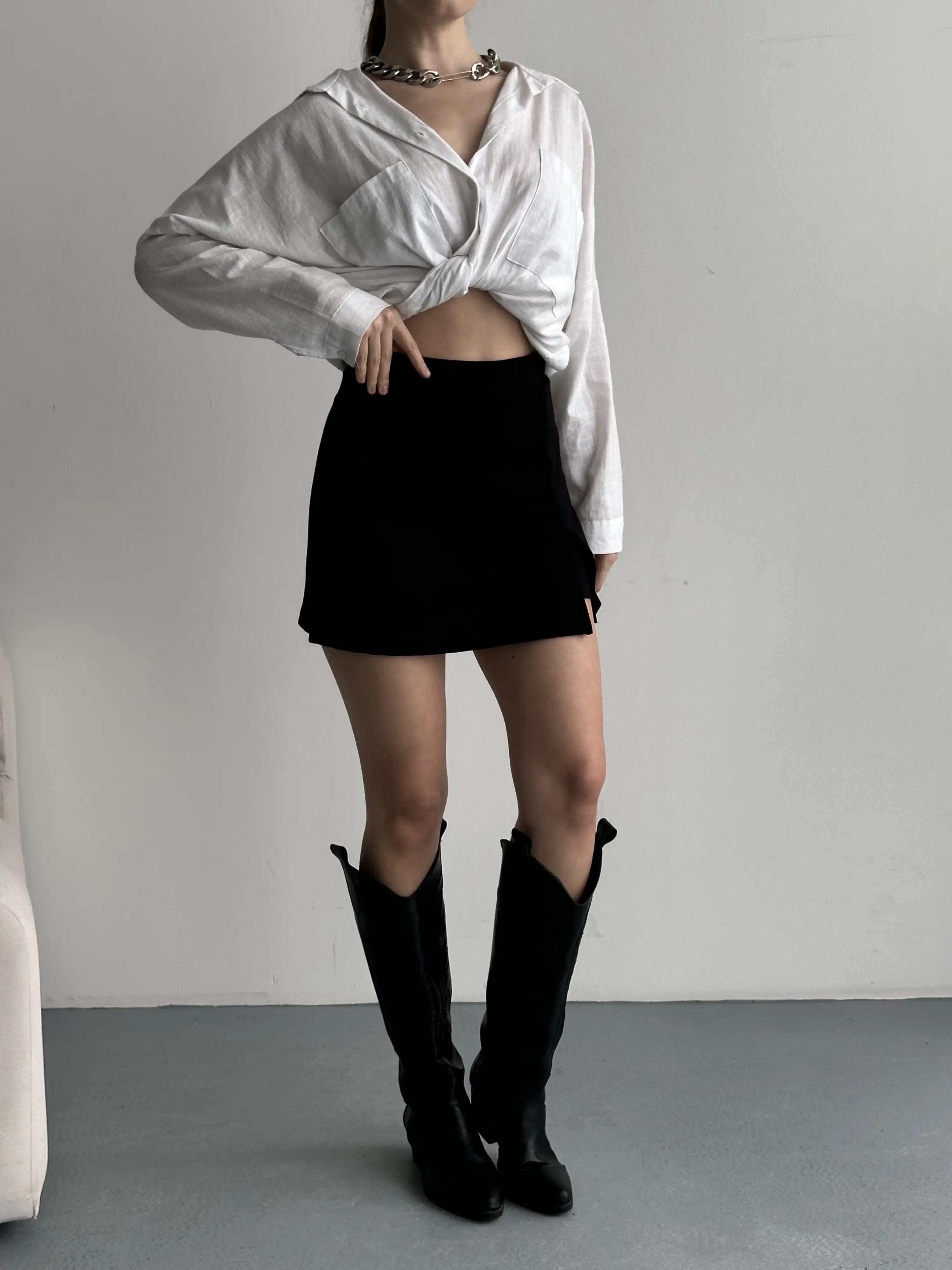 KEMERLİ DESENLİ KAT ETEK-SİYAH
