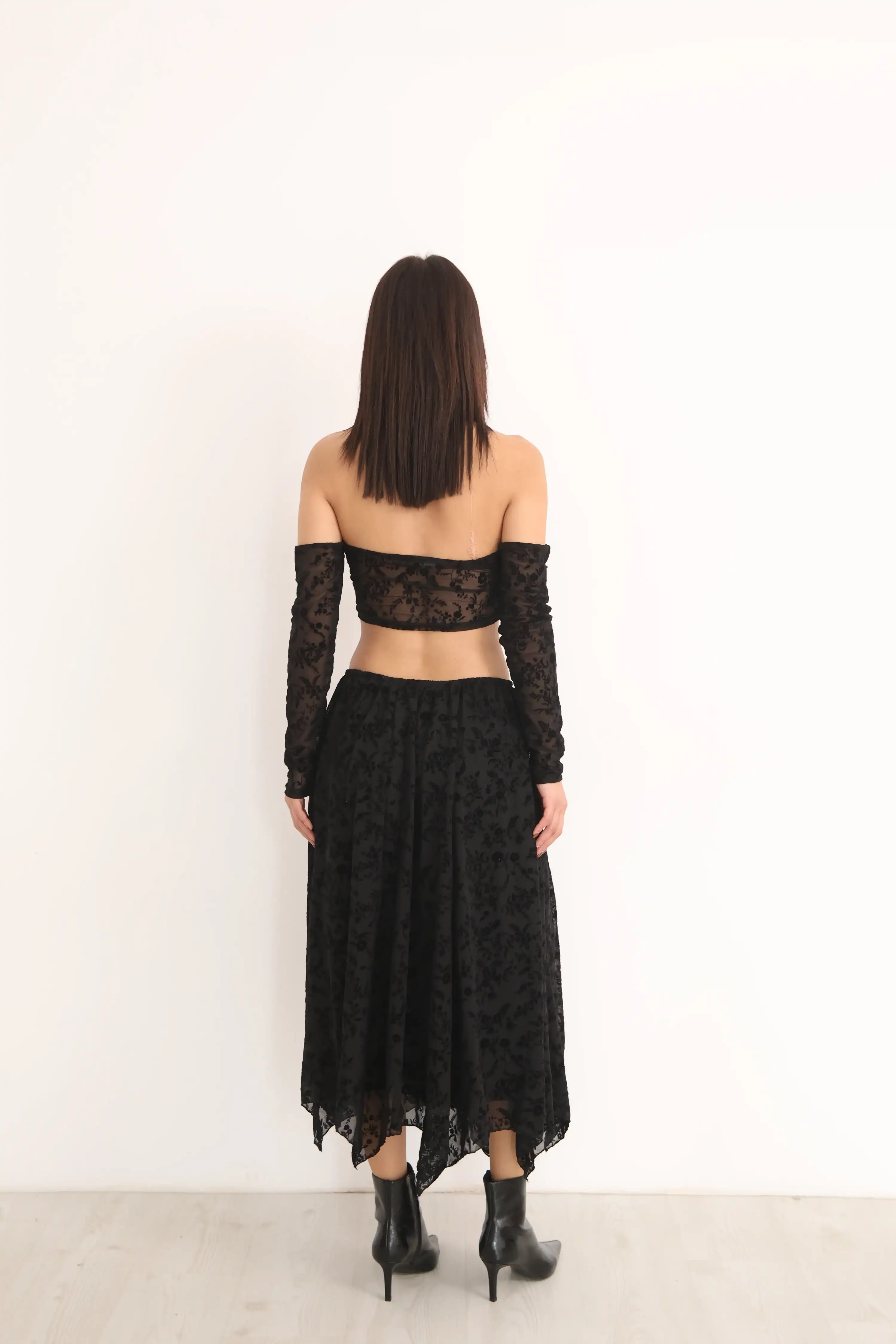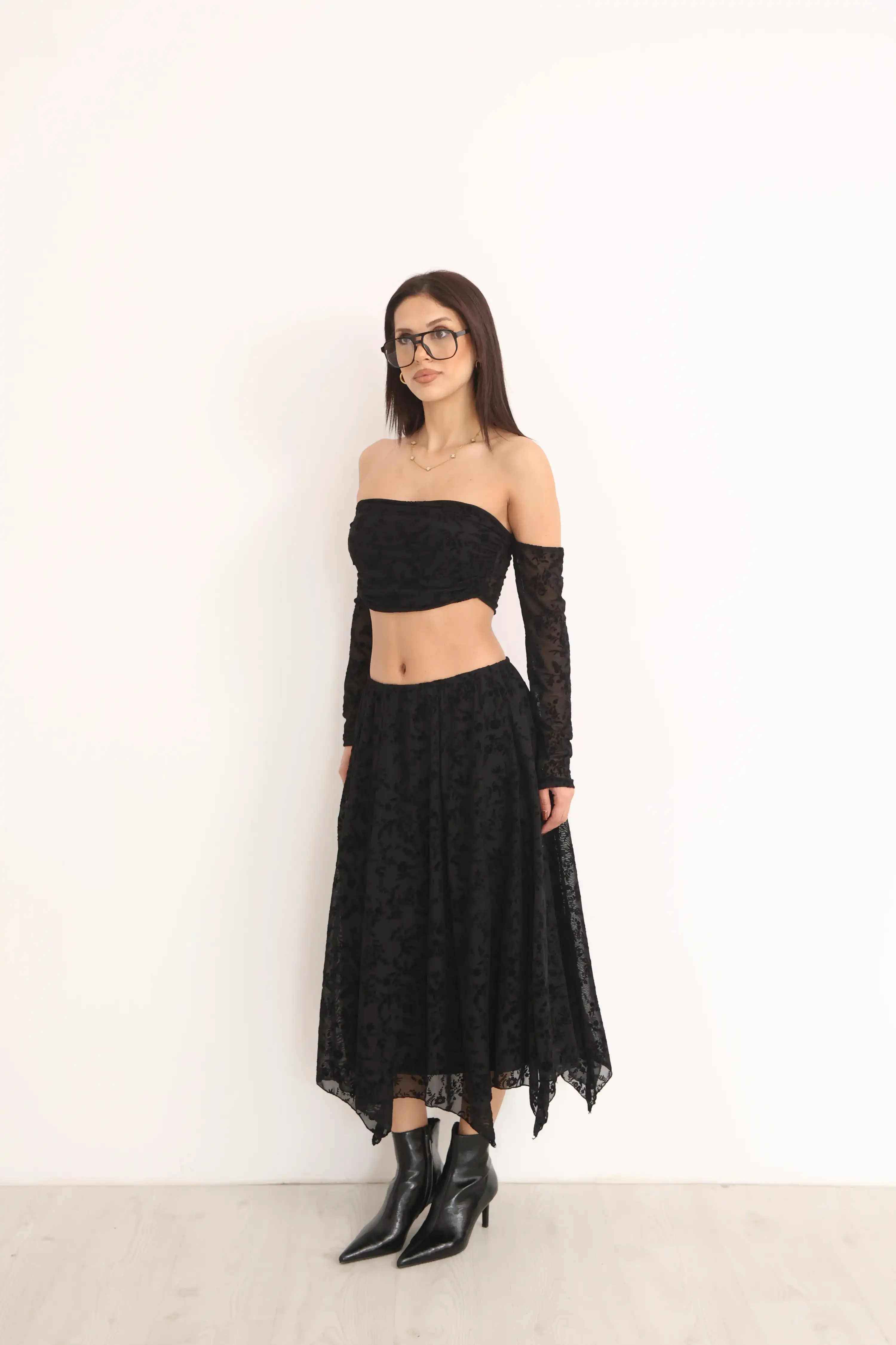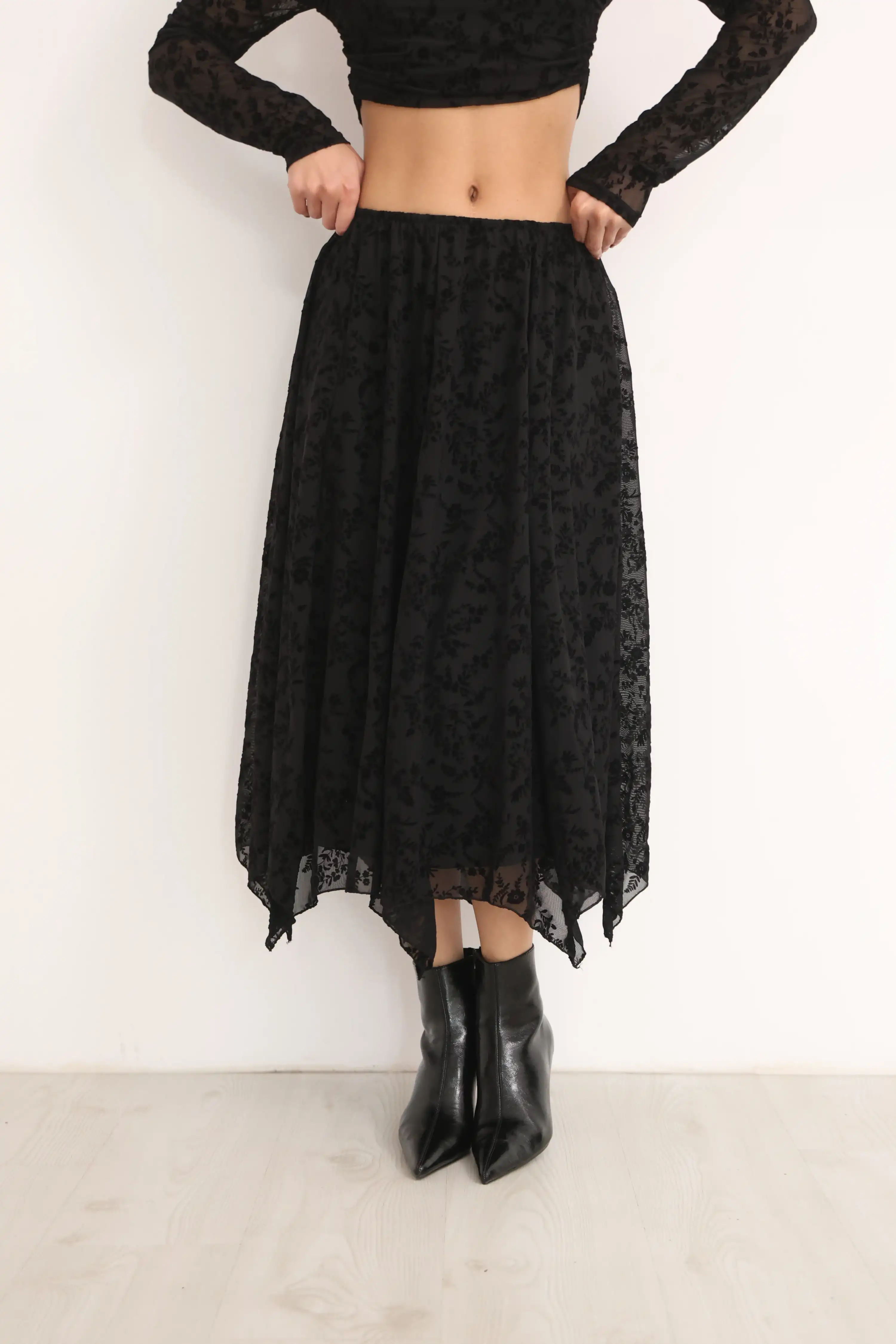 KEMERLİ DESENLİ KAT ETEK-SİYAH