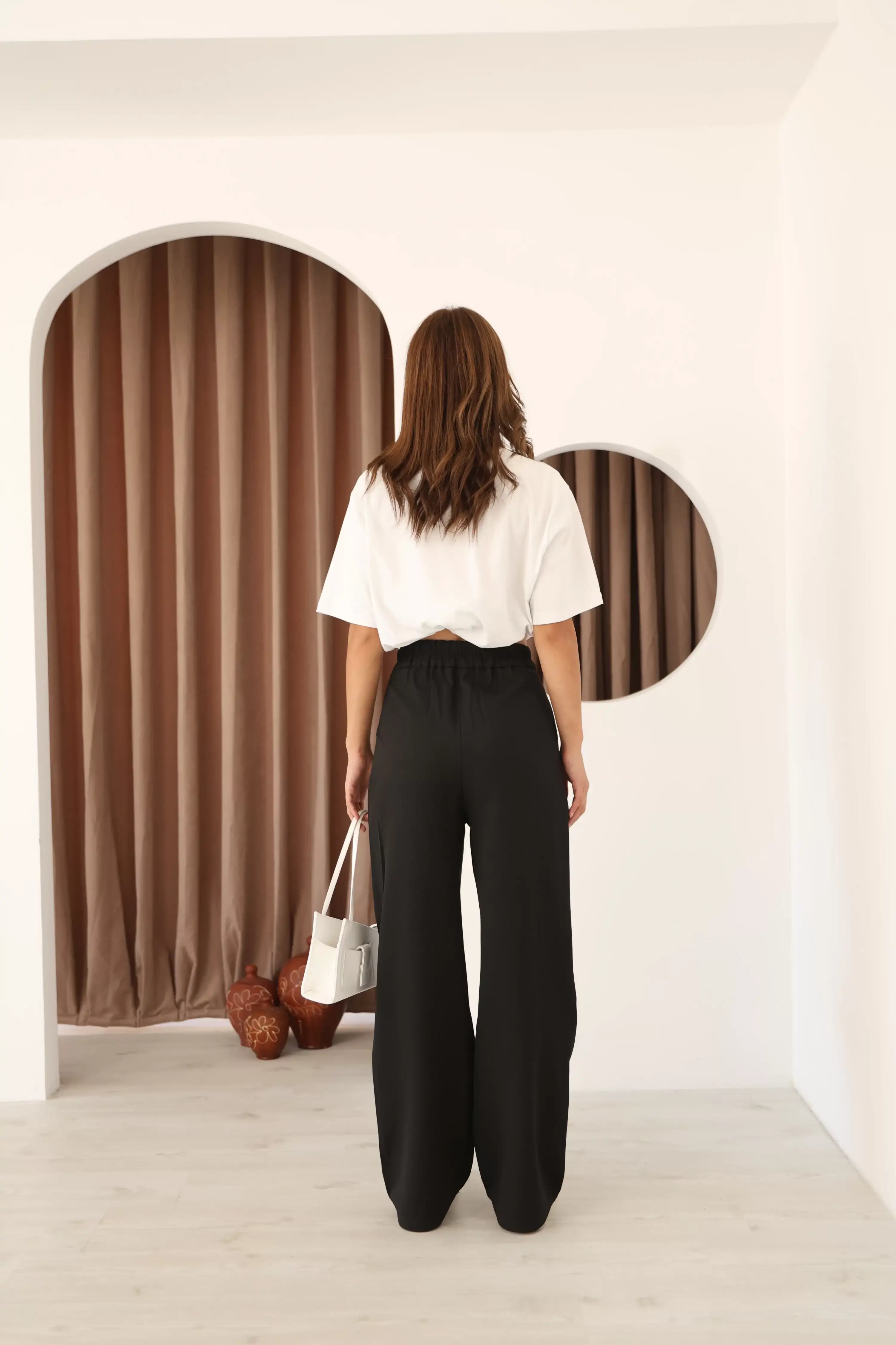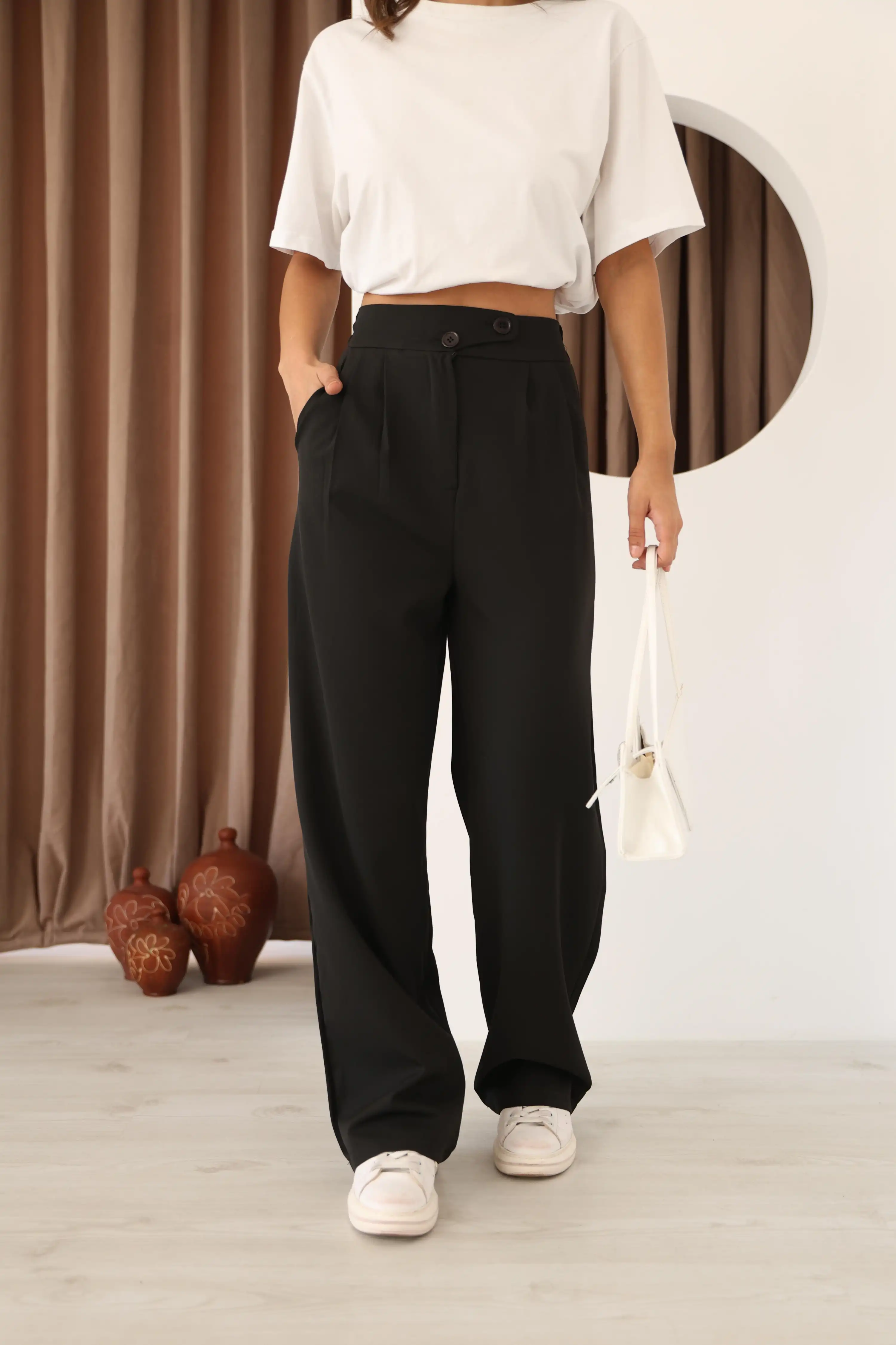 ÇİFT DÜĞMELİ KUMAŞ PANTOLON-SİYAH