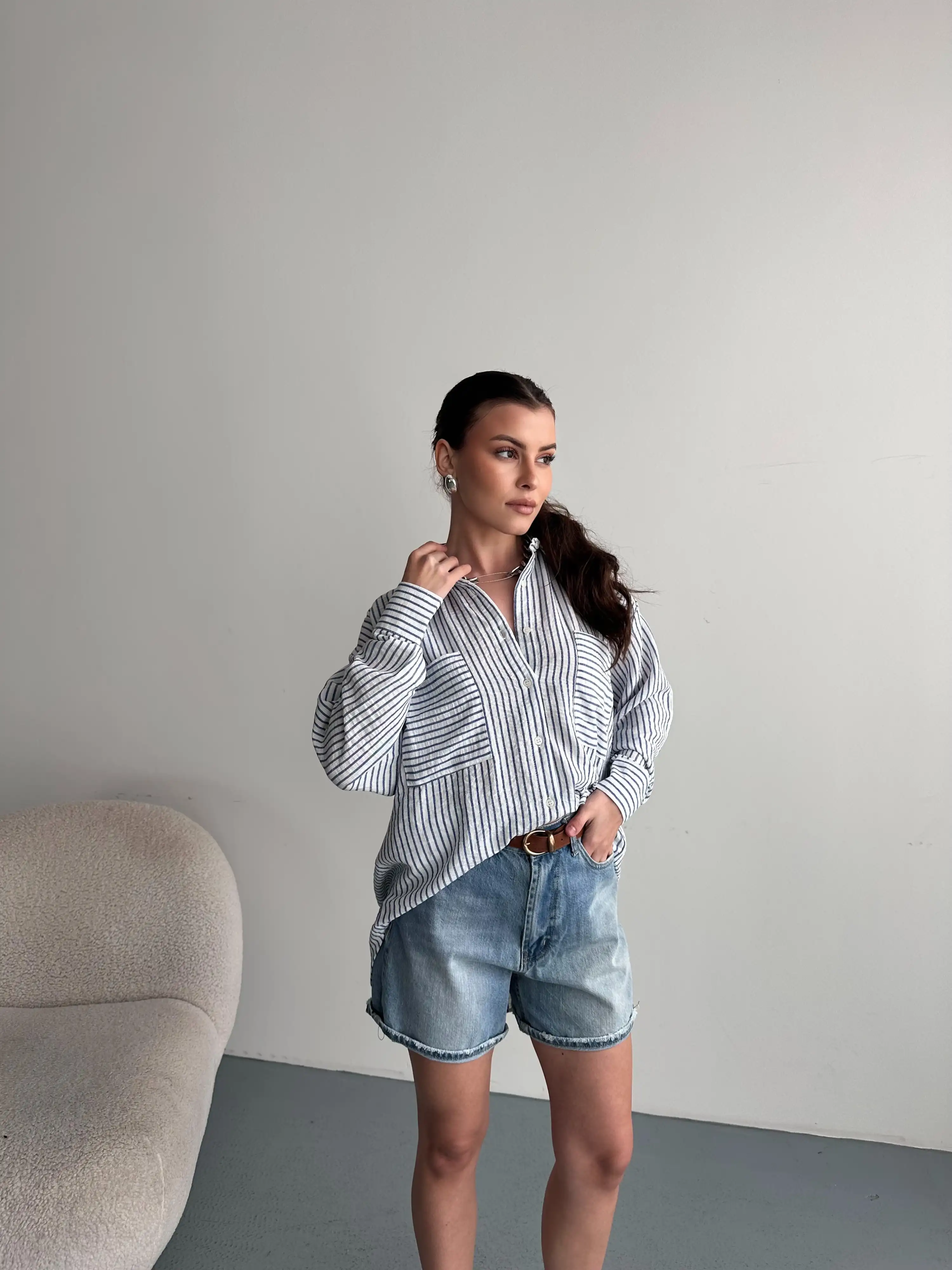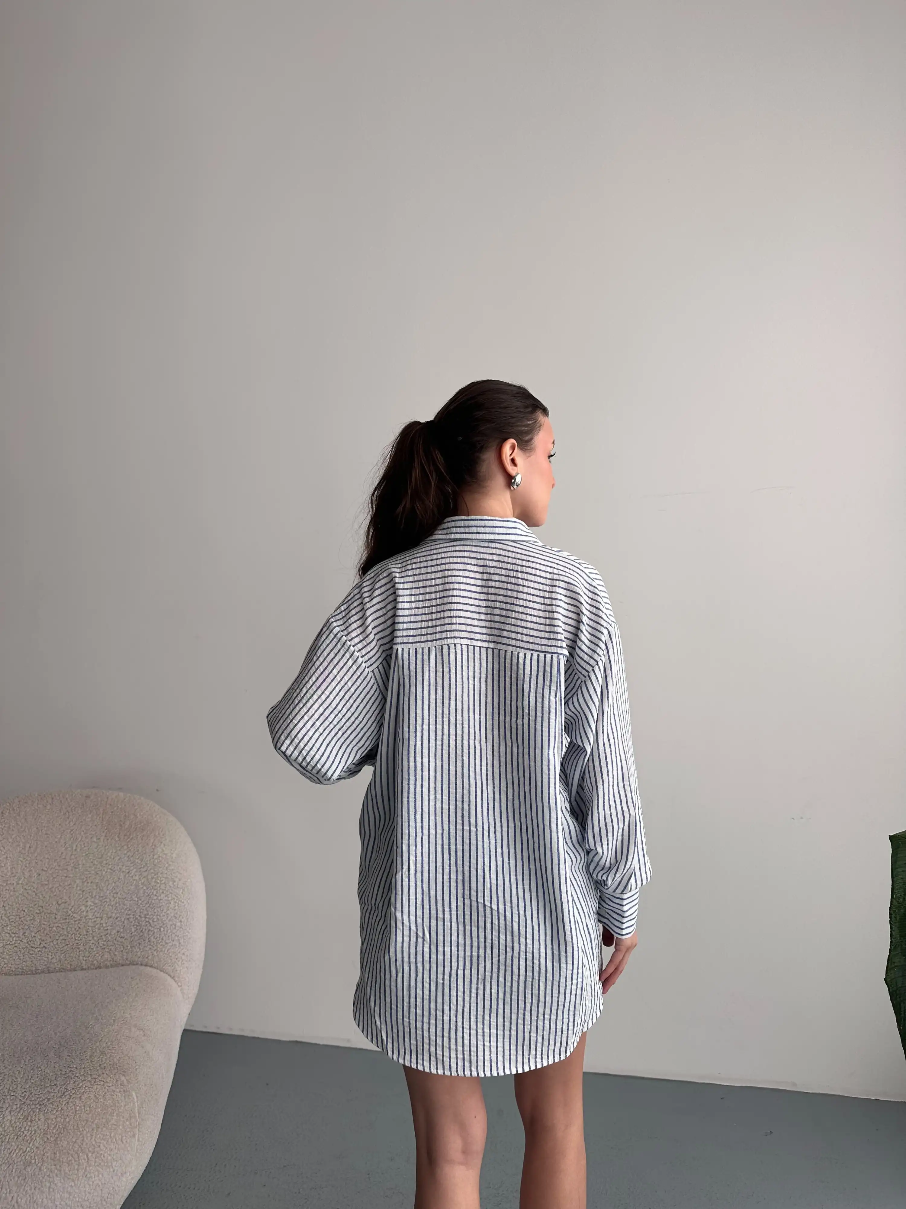 ÇİZGİLİ OVERSİZE GÖMLEK-MAVİ