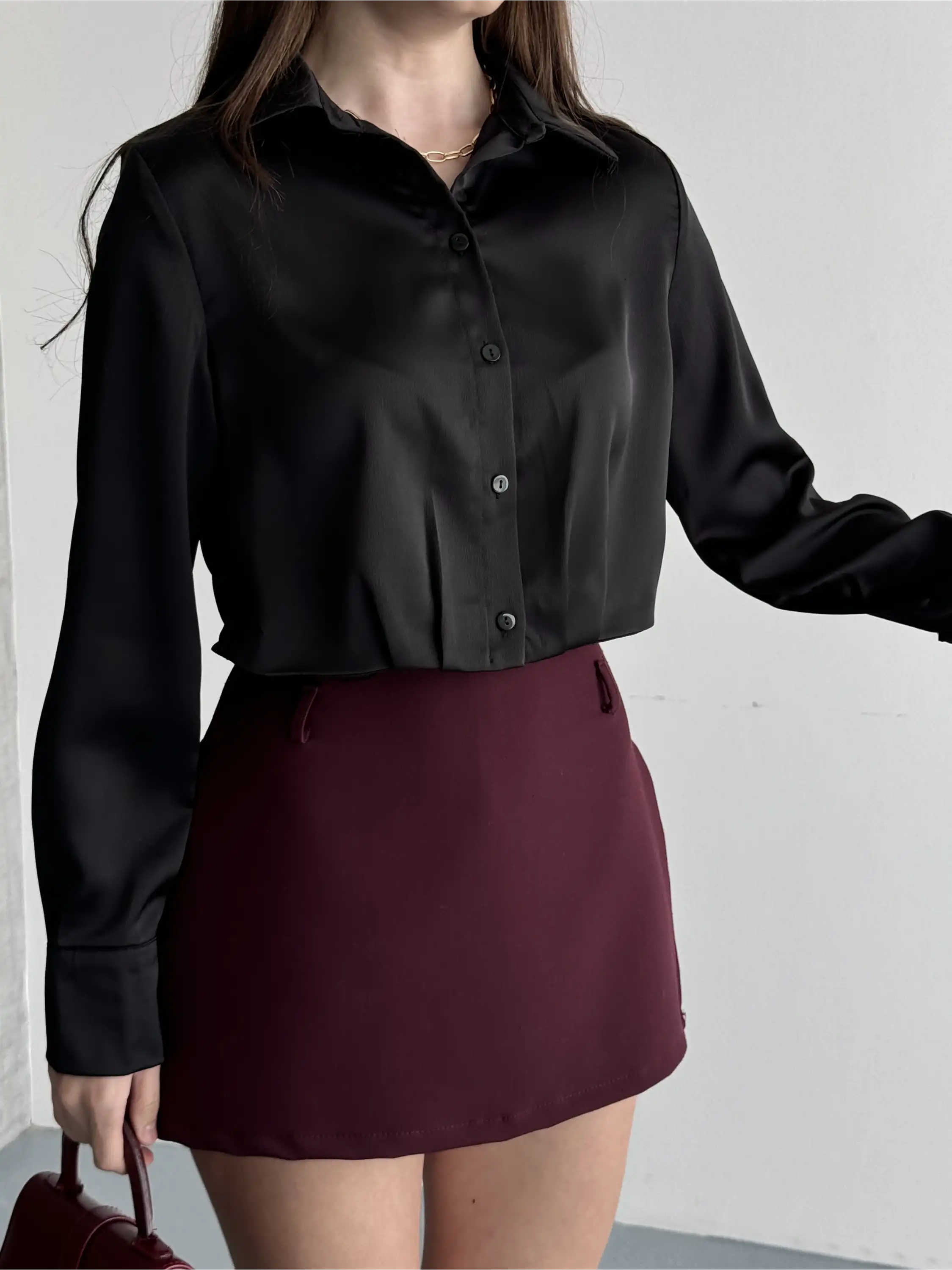 KALIN MANŞETLİ BALON KOL GÖMLEK-SİYAH
