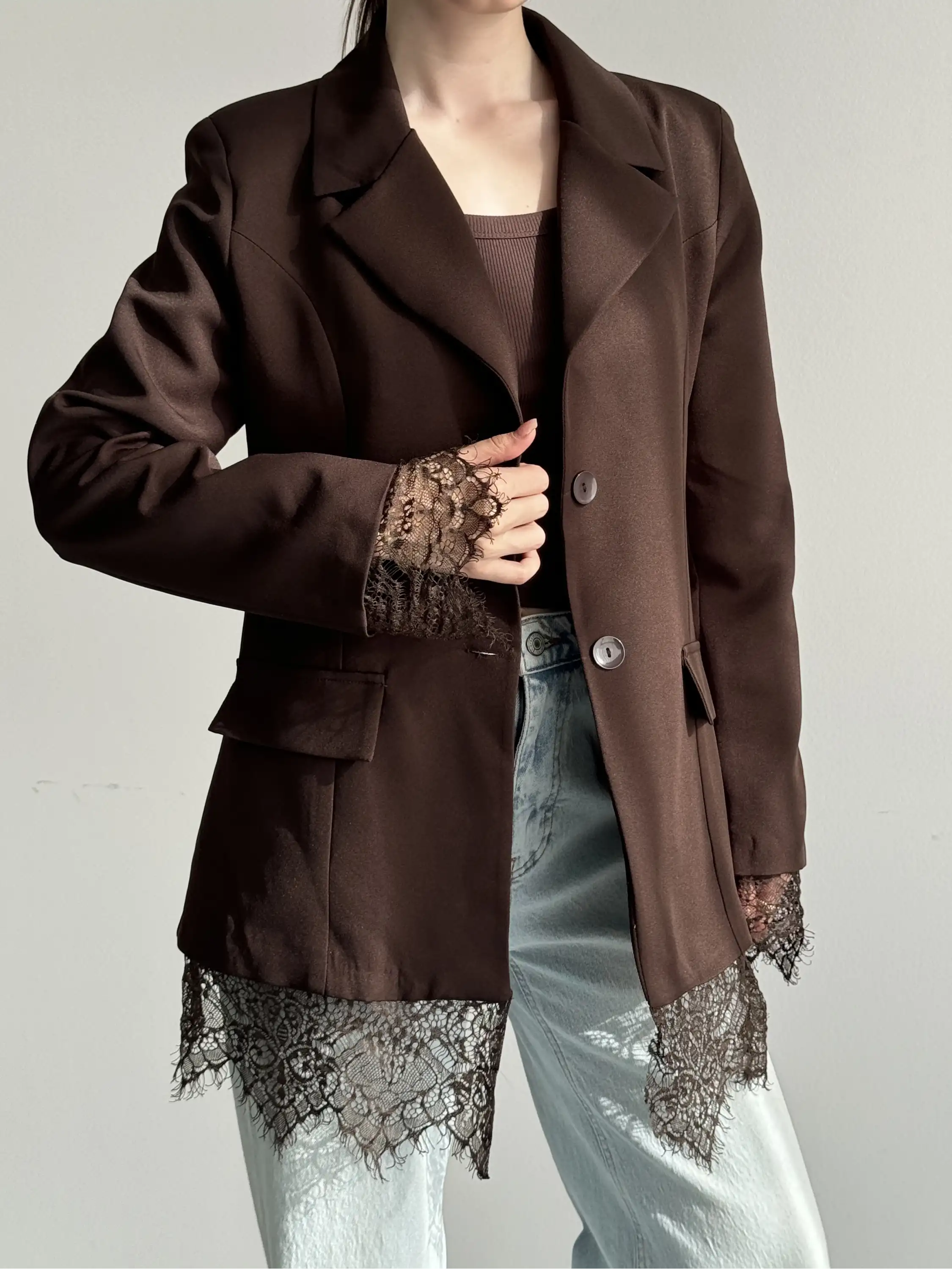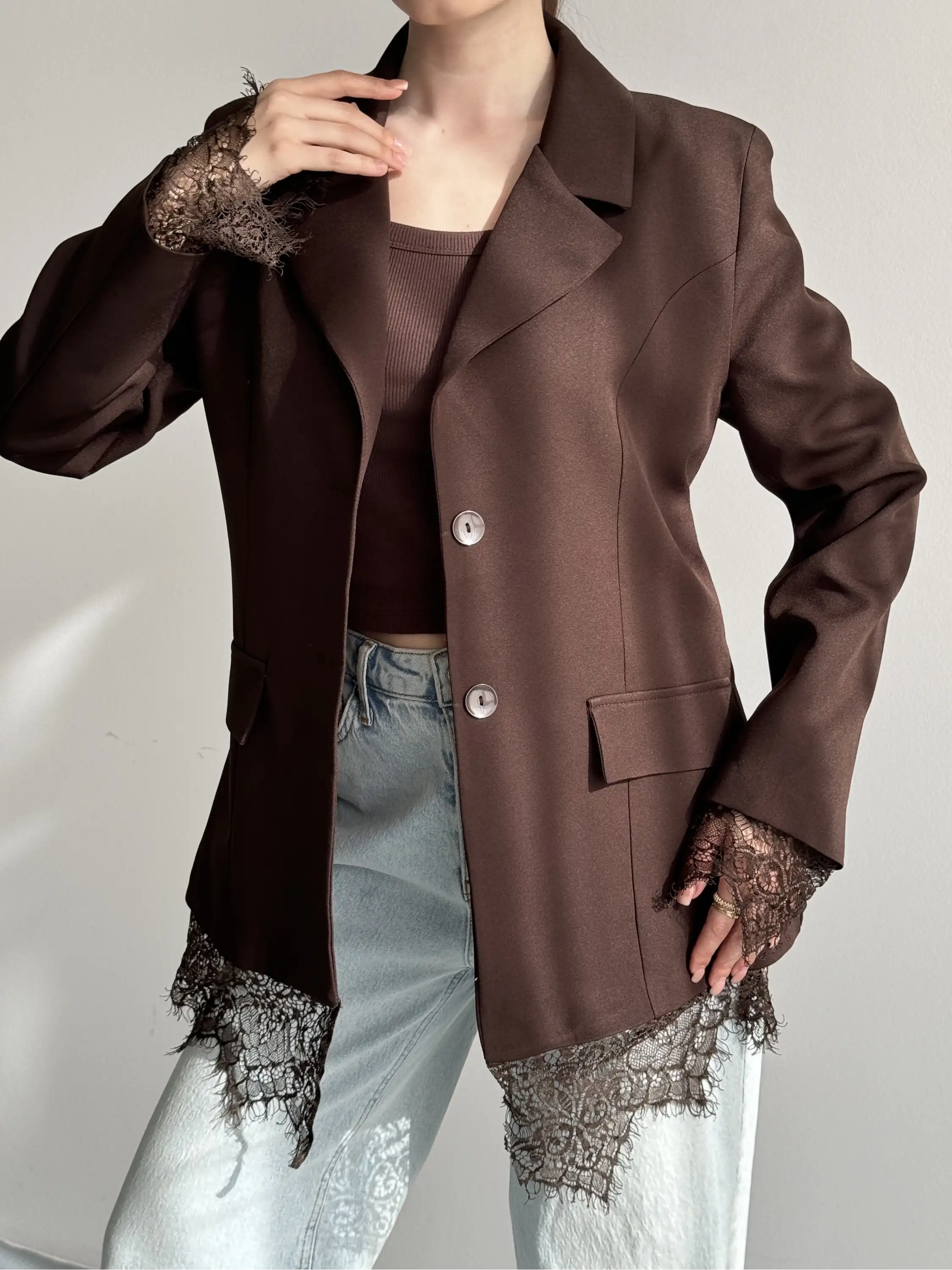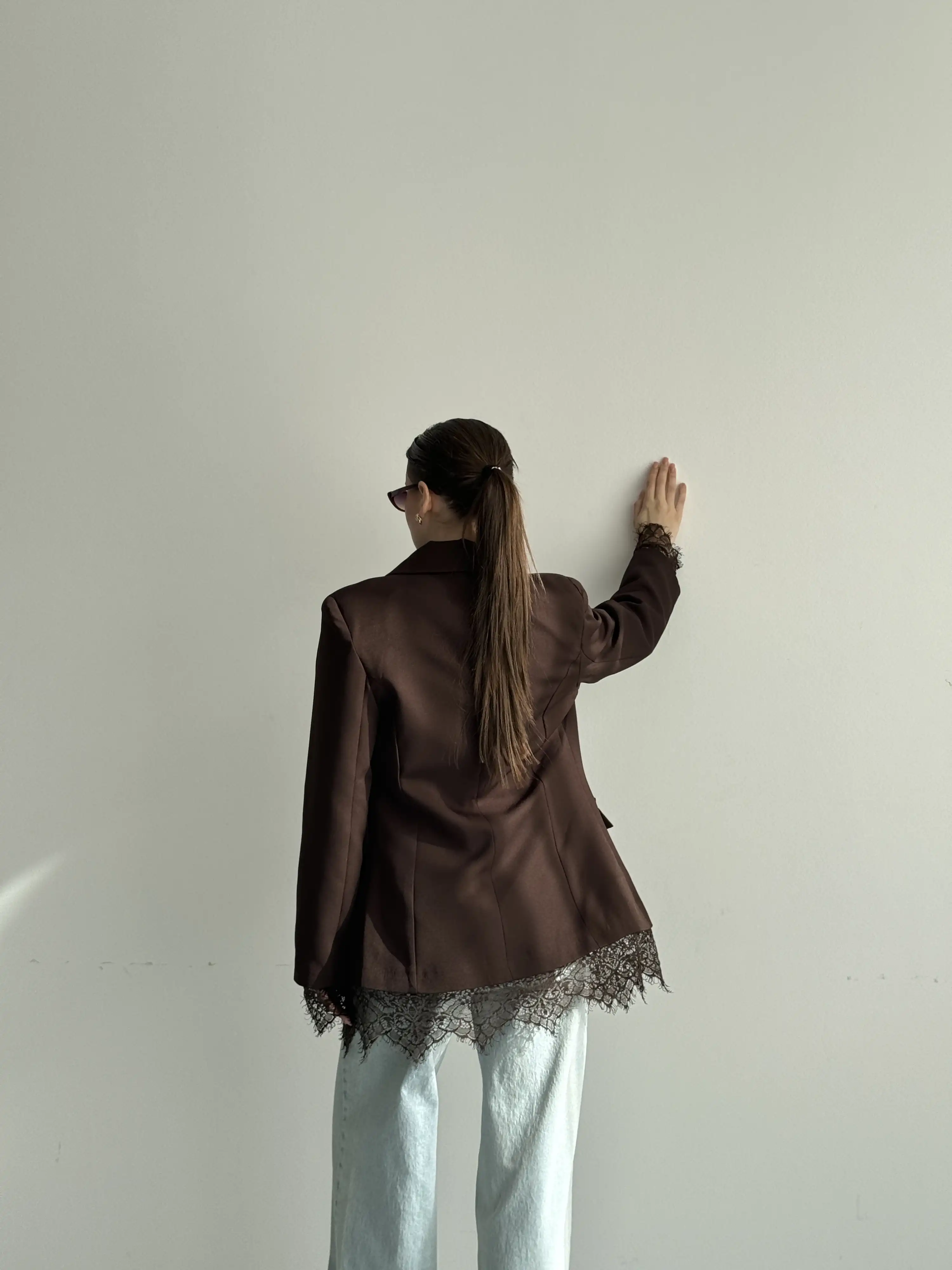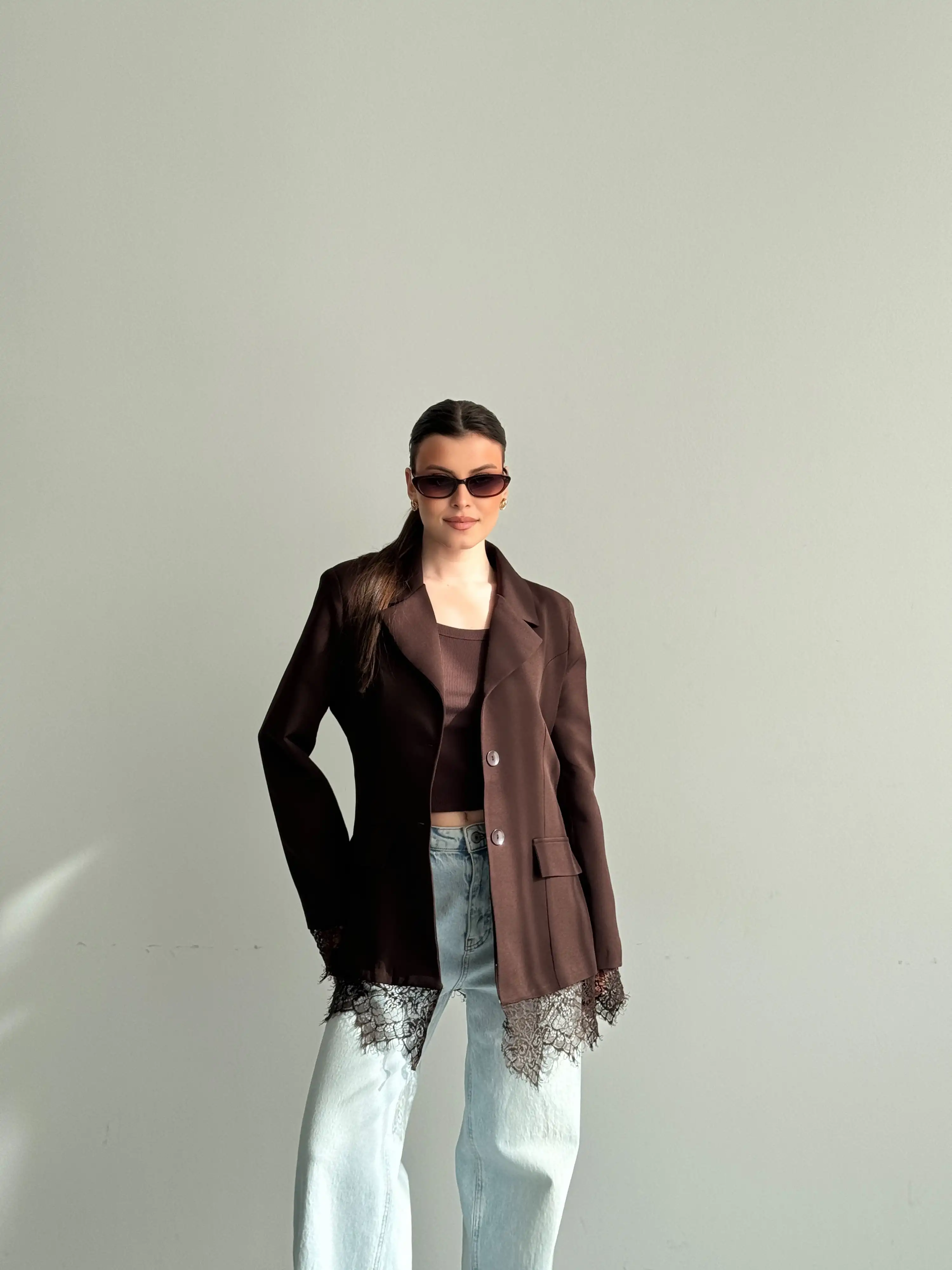 DANTEL ÇIKIŞLI ASTARLI BLAZER CEKET-KAHVE
