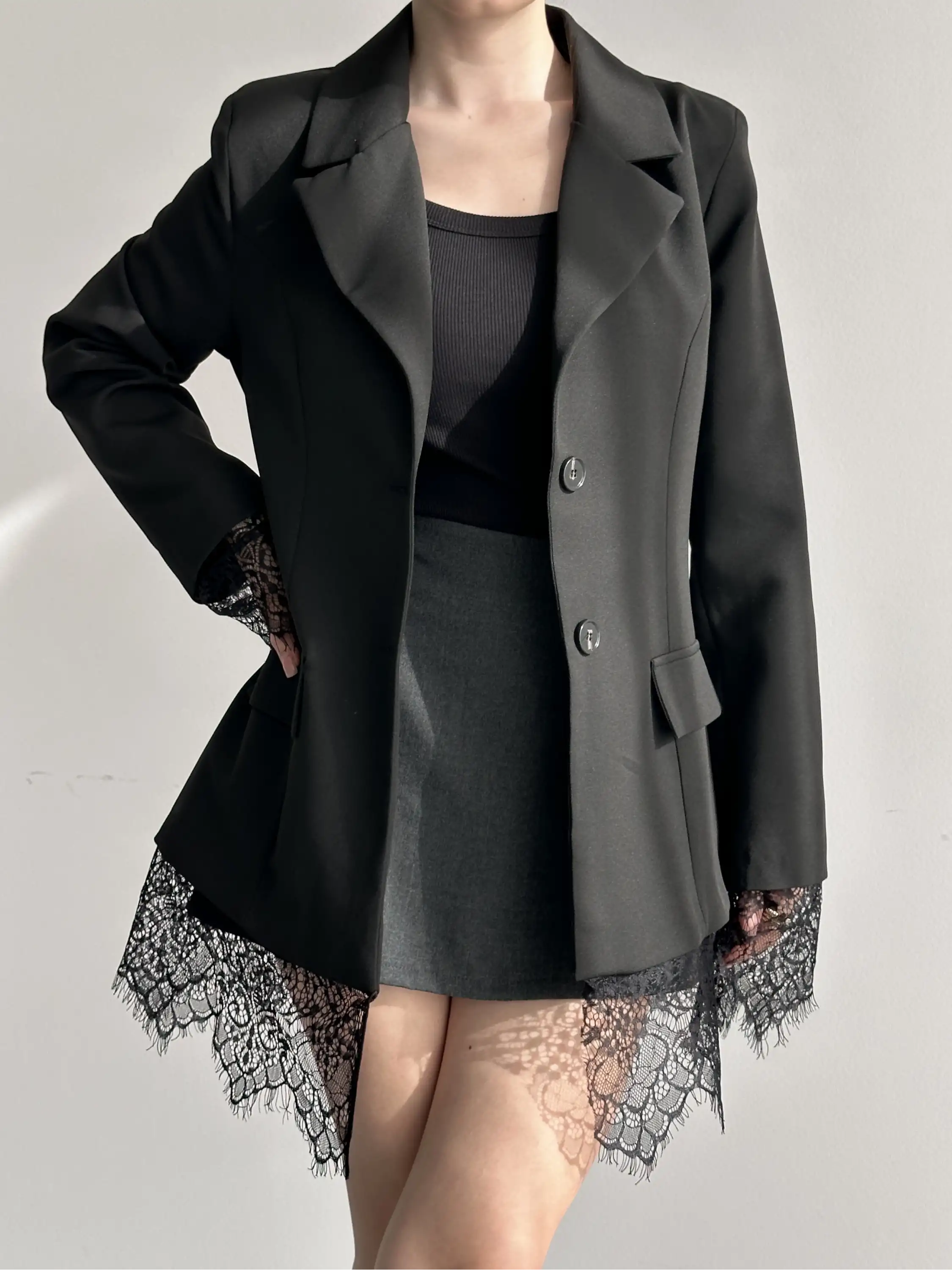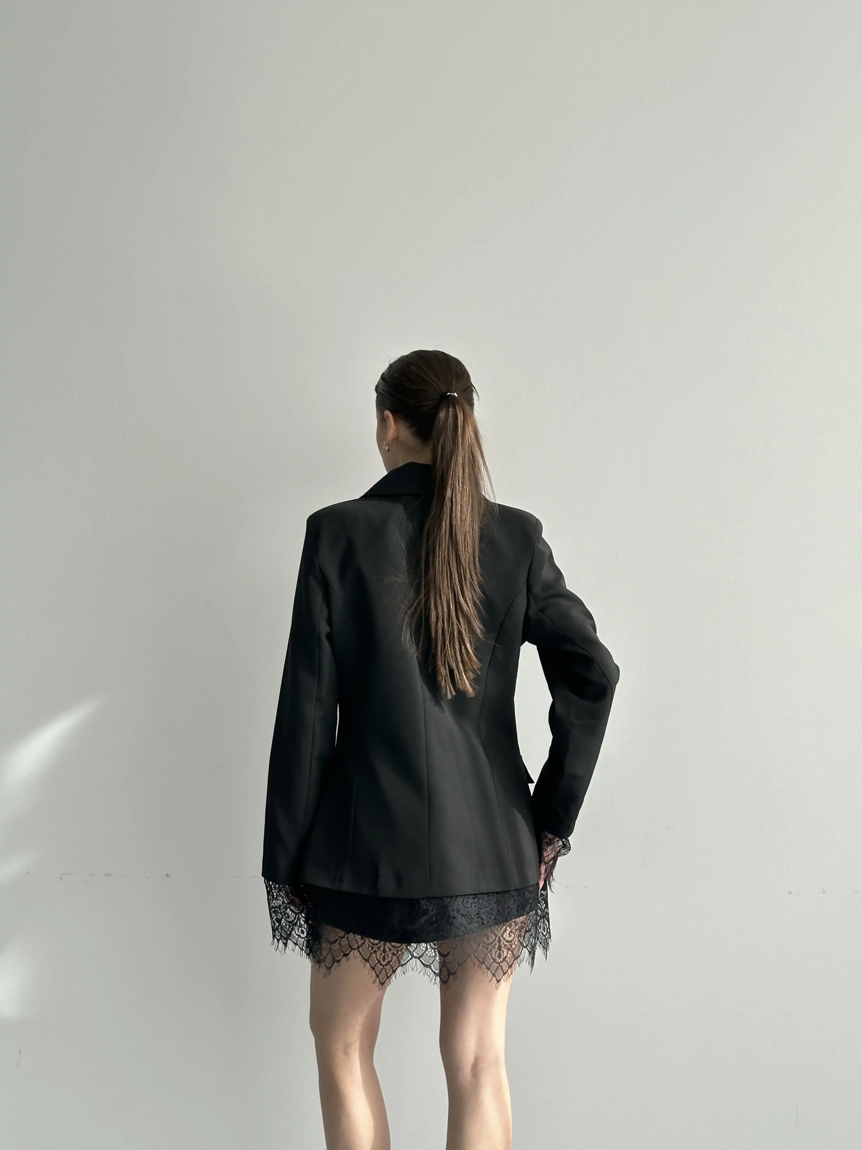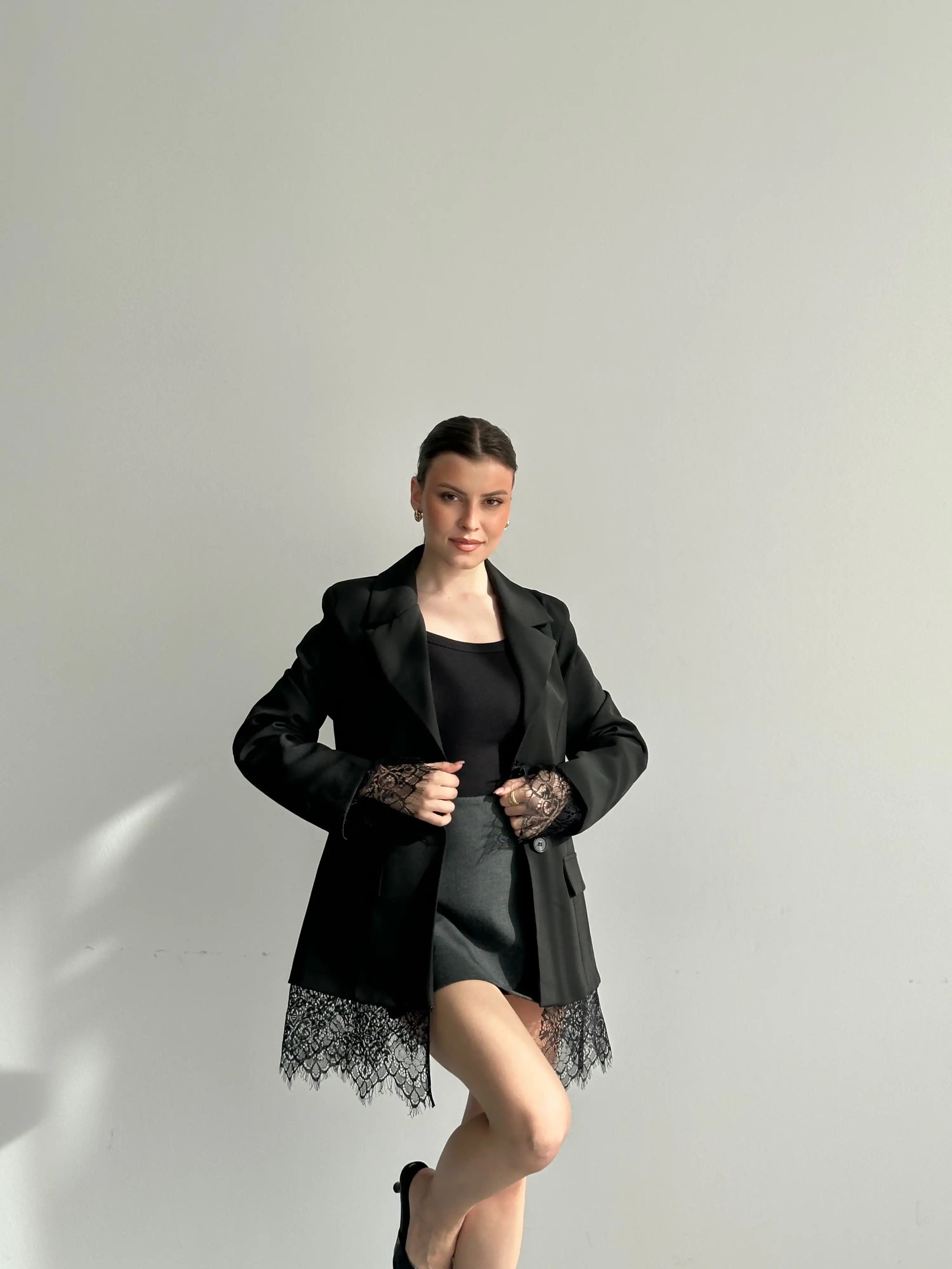 DANTEL ÇIKIŞLI ASTARLI BLAZER CEKET-SİYAH