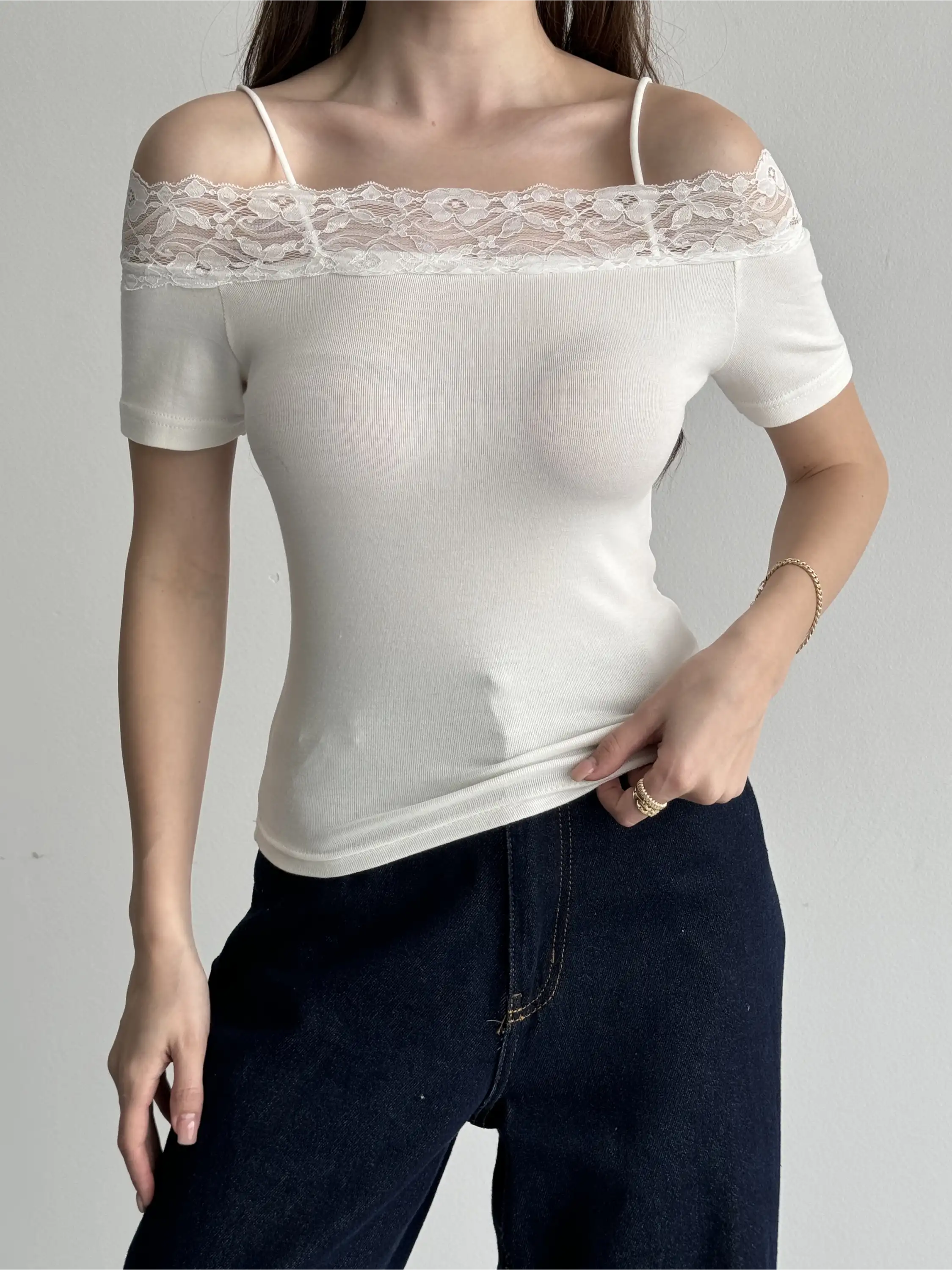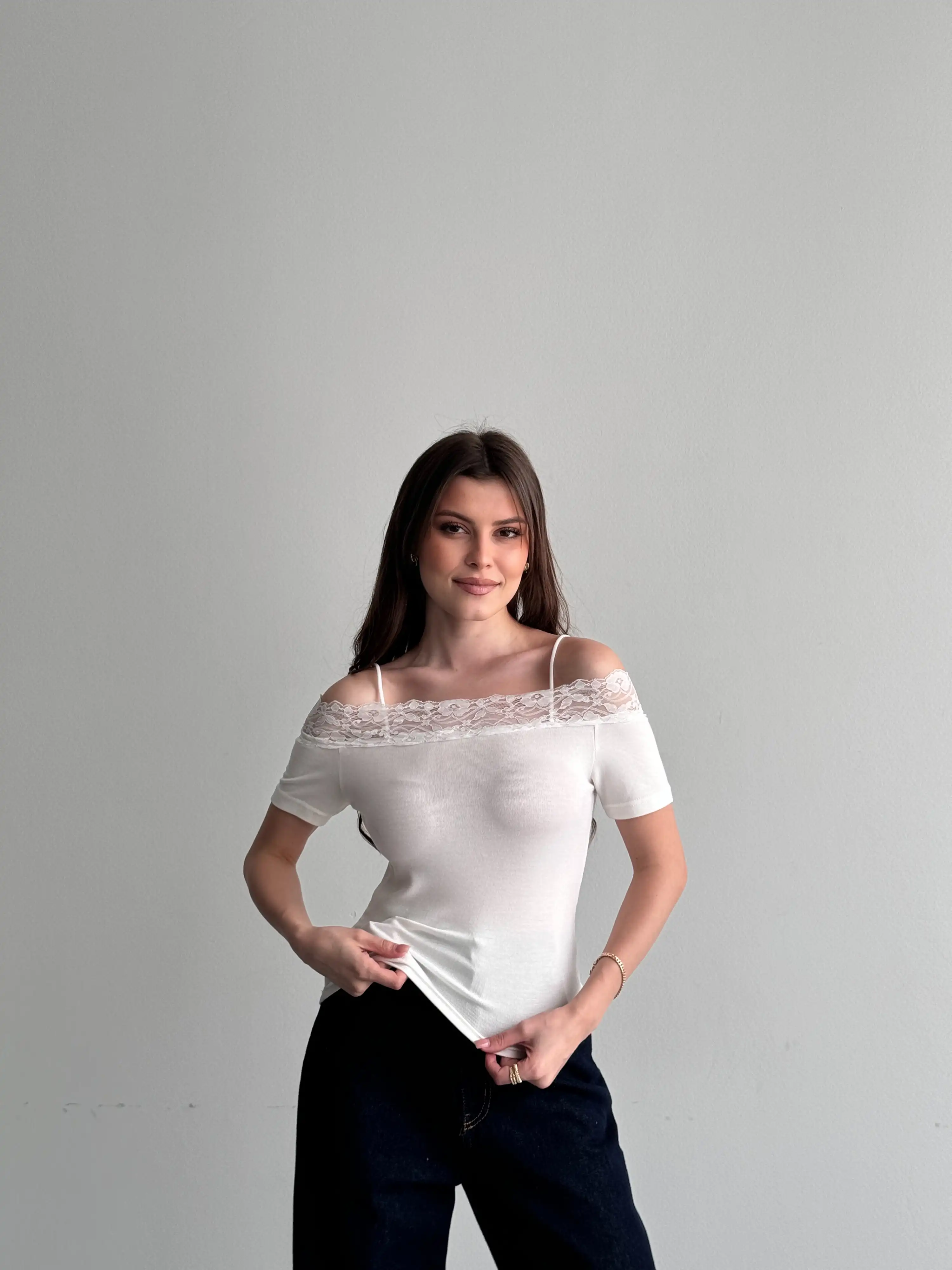 DANTEL DETAYLI MADONNA YAKA BLUZ-BEYAZ