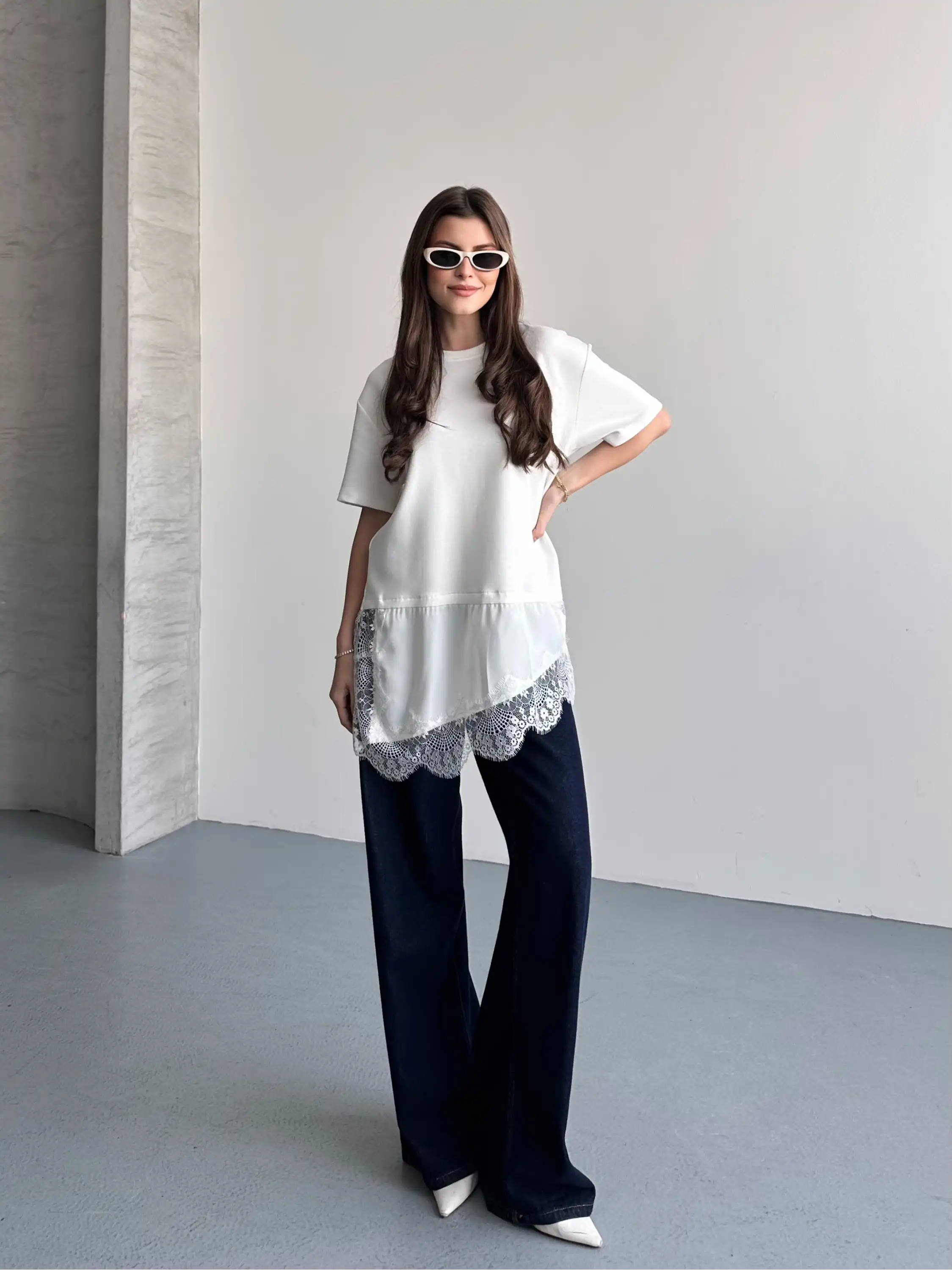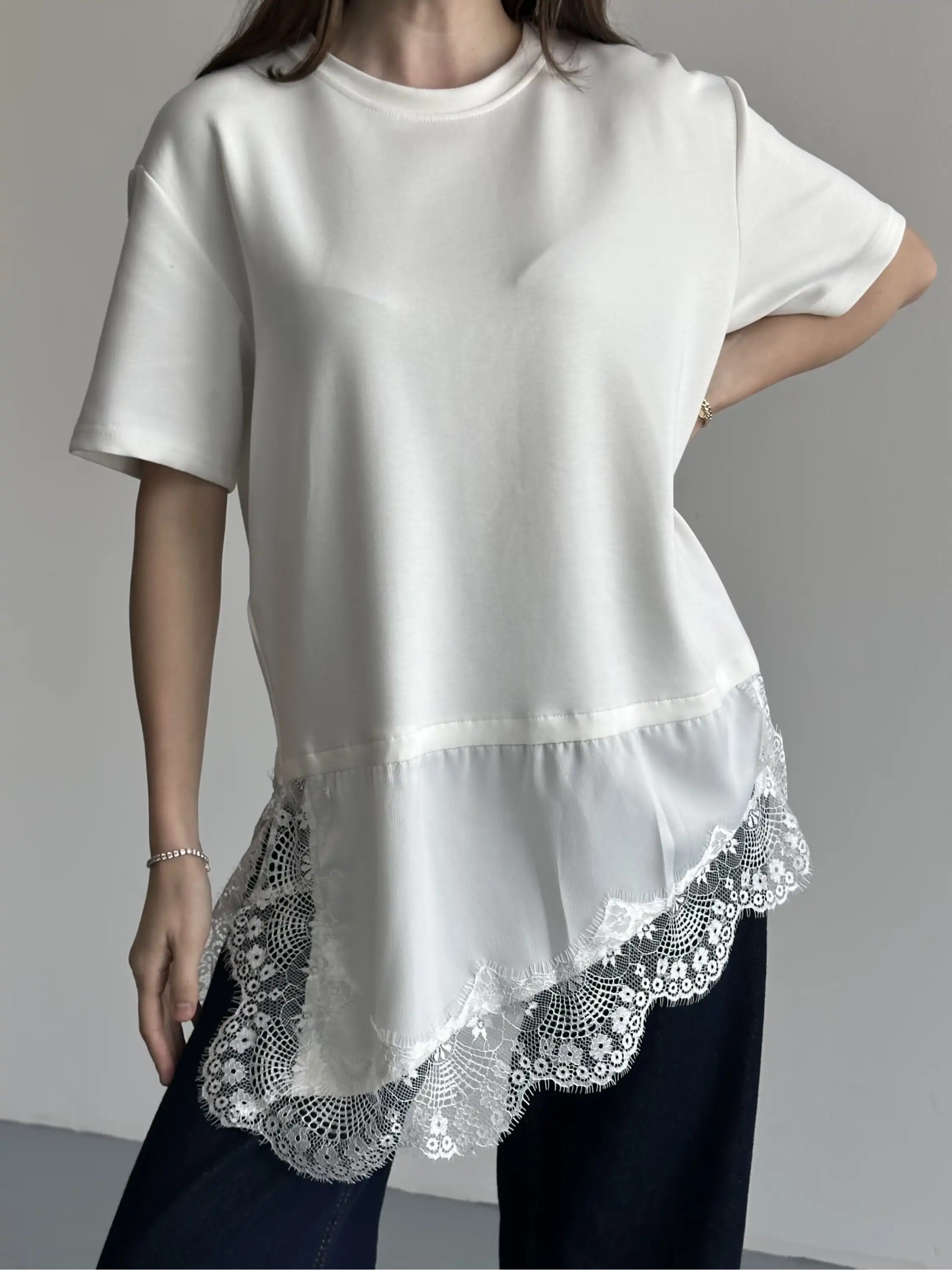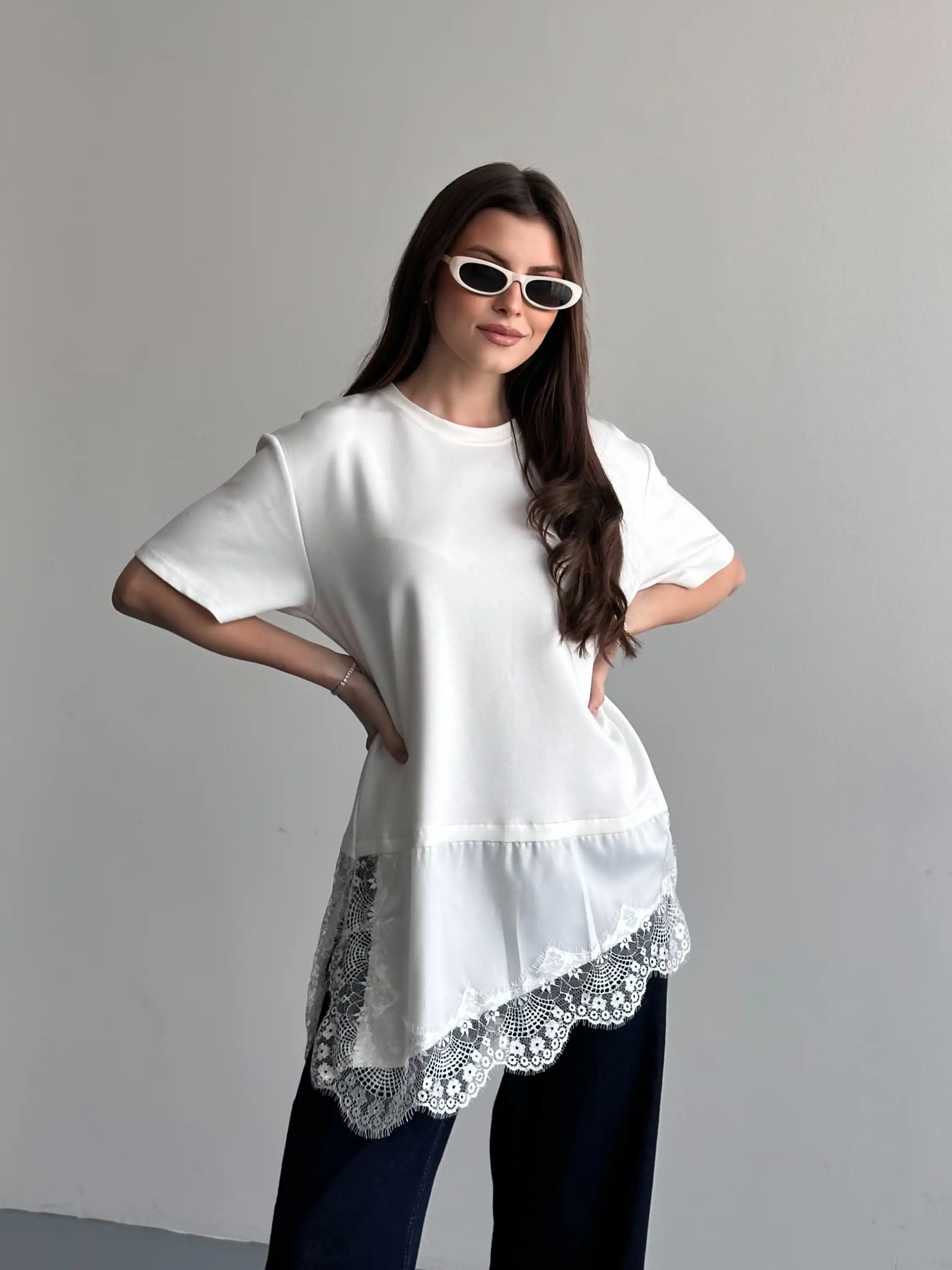 DANTEL DETAYLI OVERSIZE BLUZ-BEYAZ