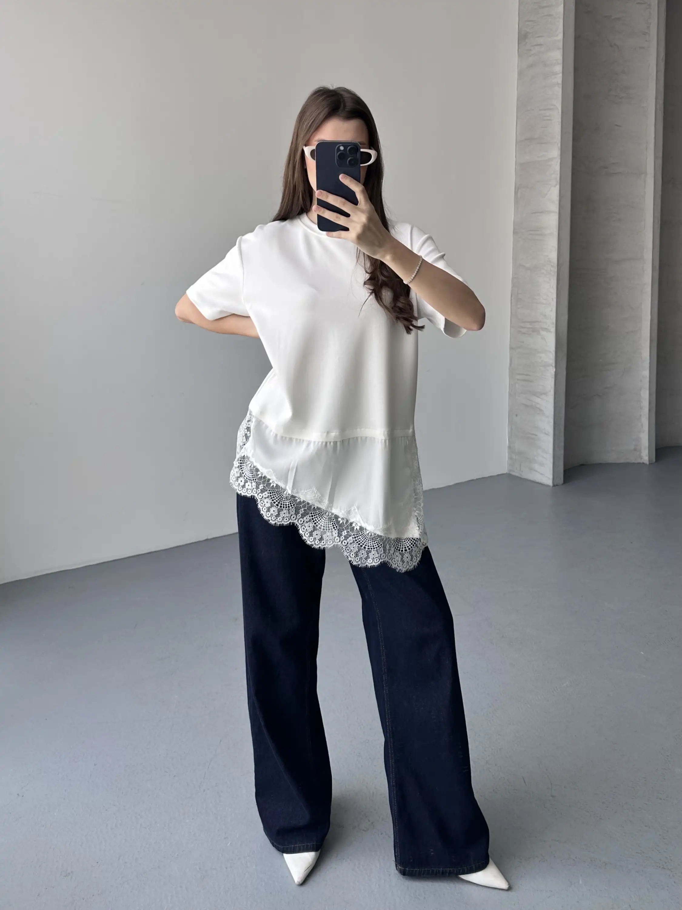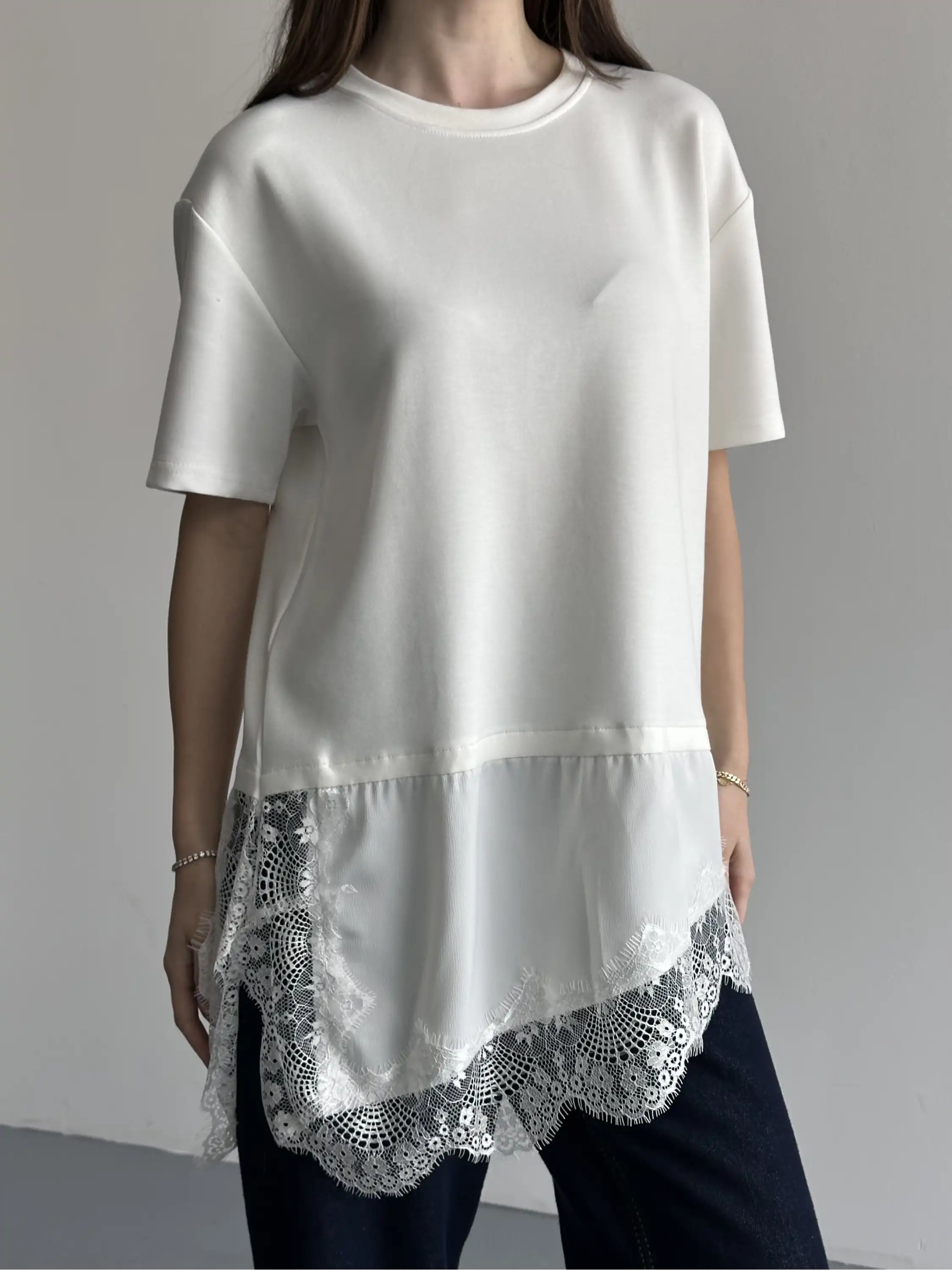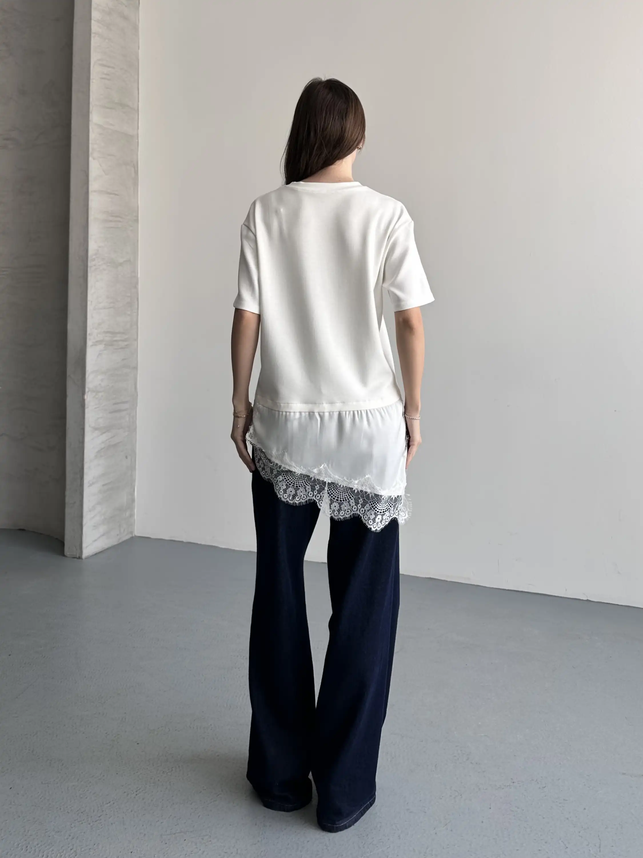 DANTEL DETAYLI OVERSIZE BLUZ-BEYAZ