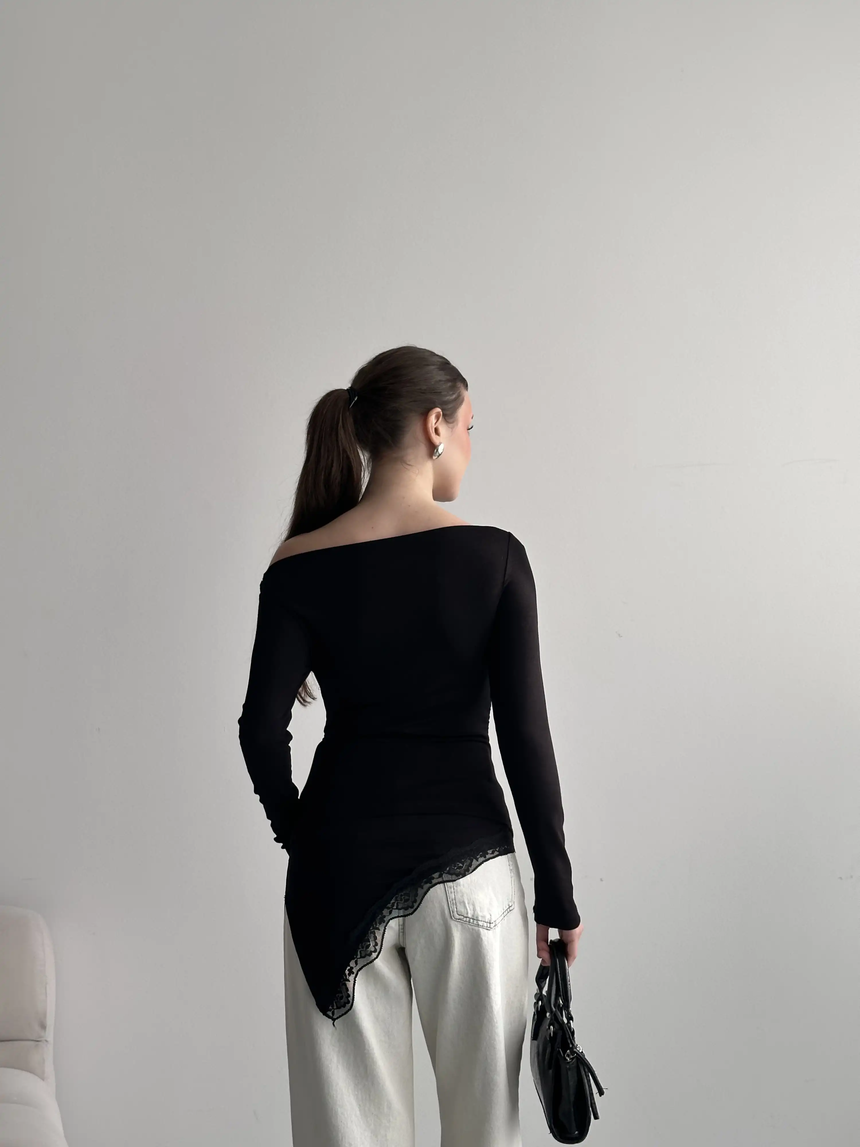 DANTEL DETAYLI OVERSIZE BLUZ-SİYAH