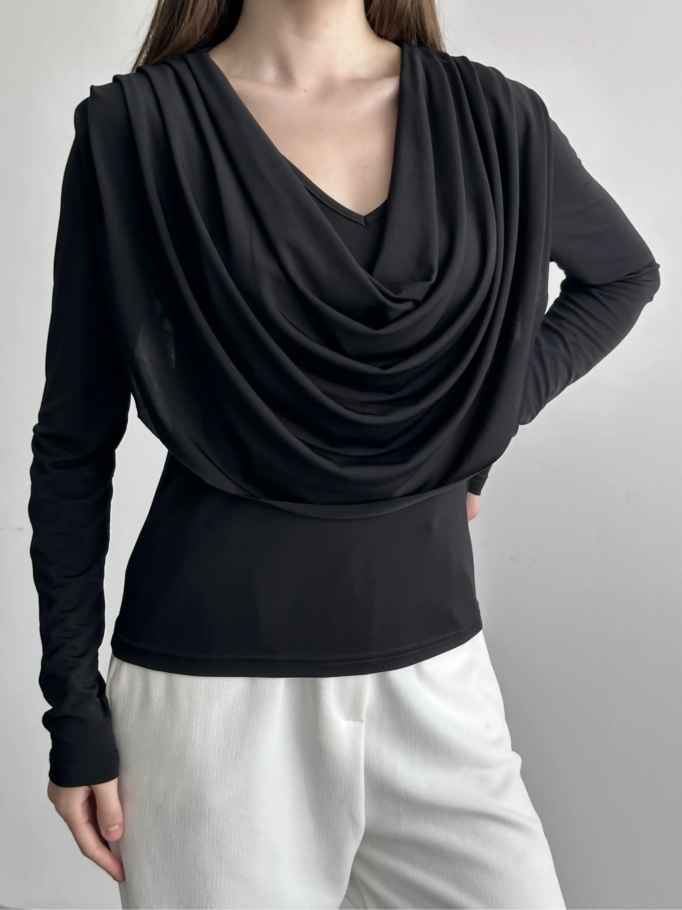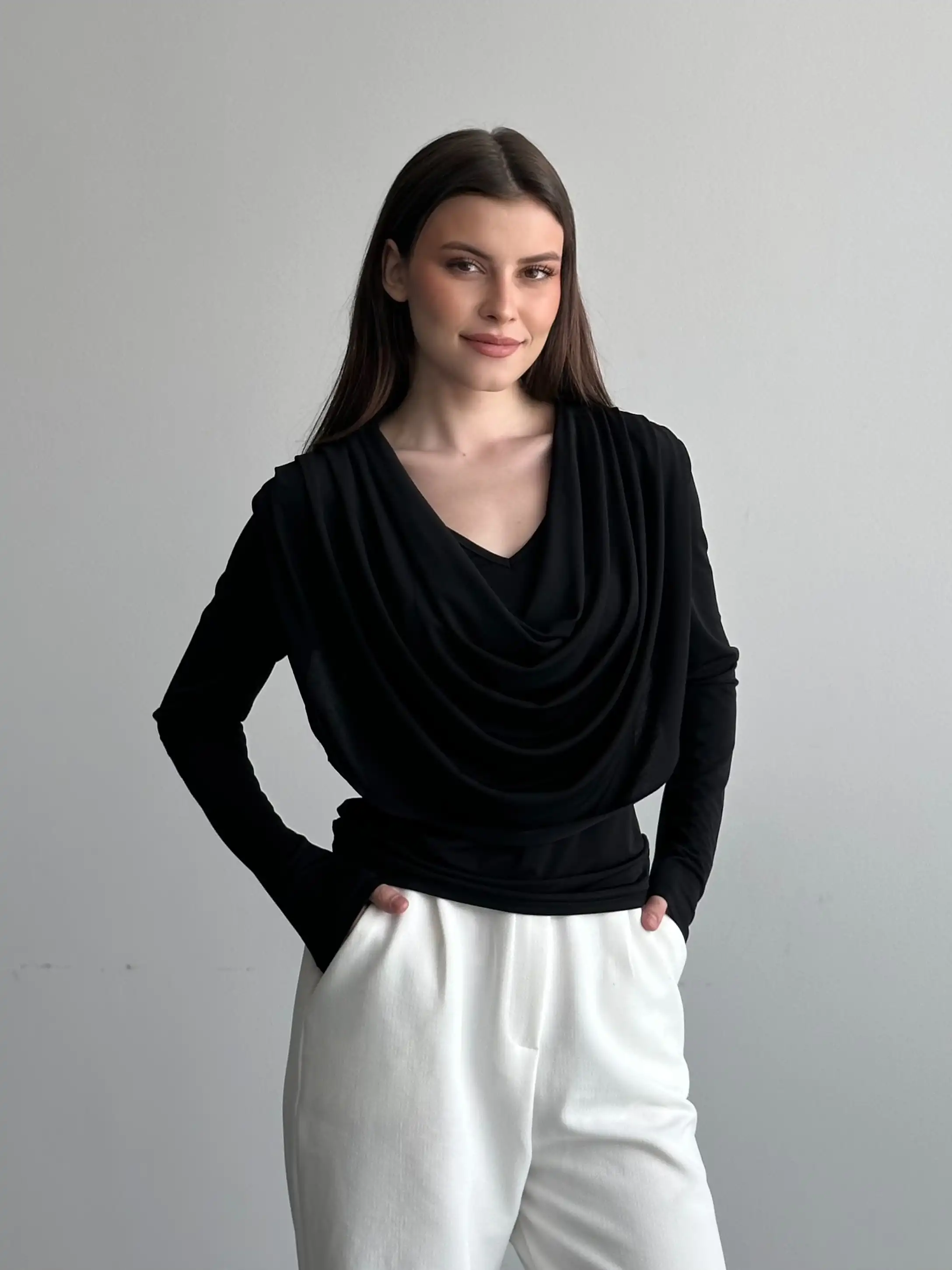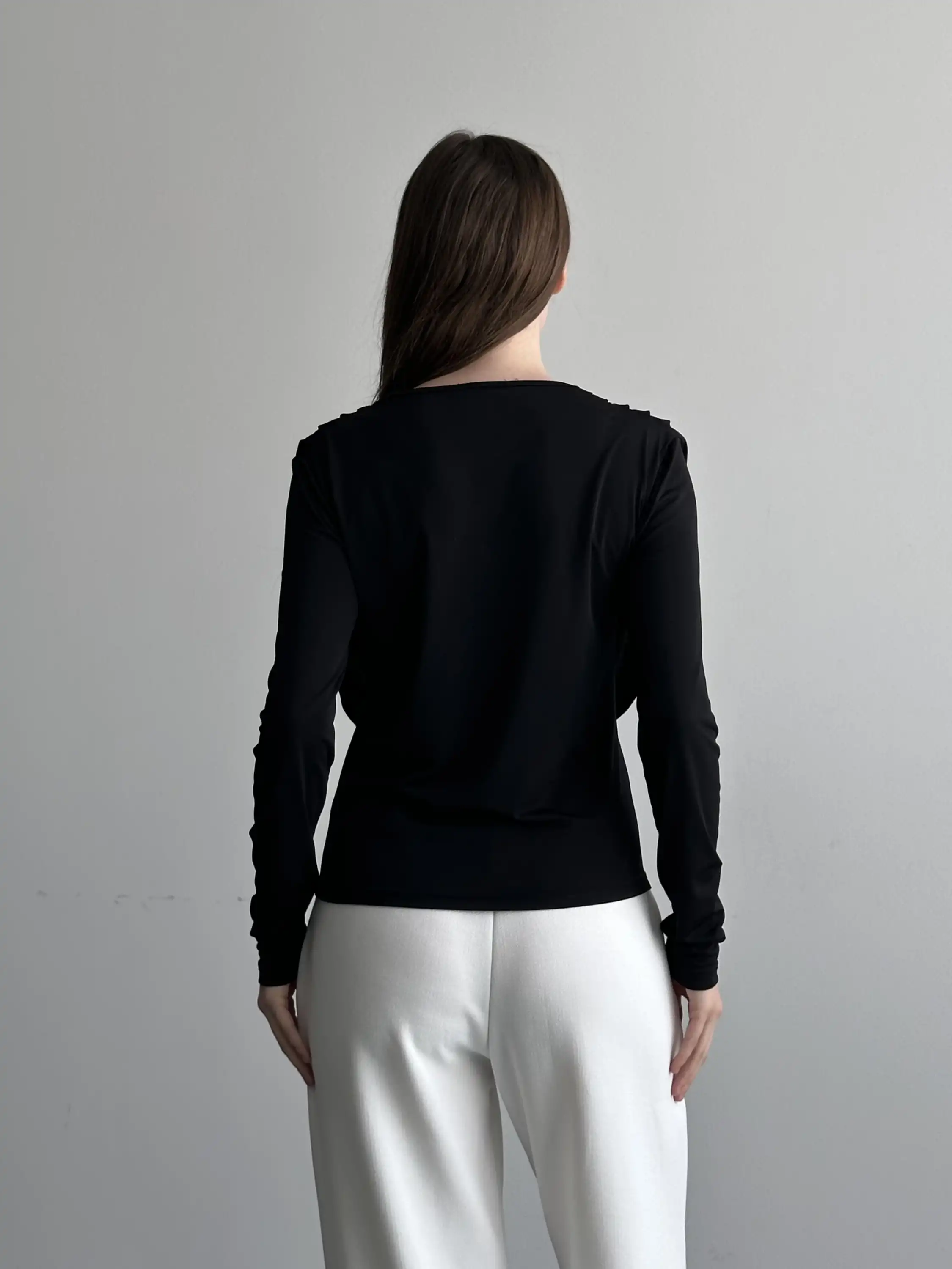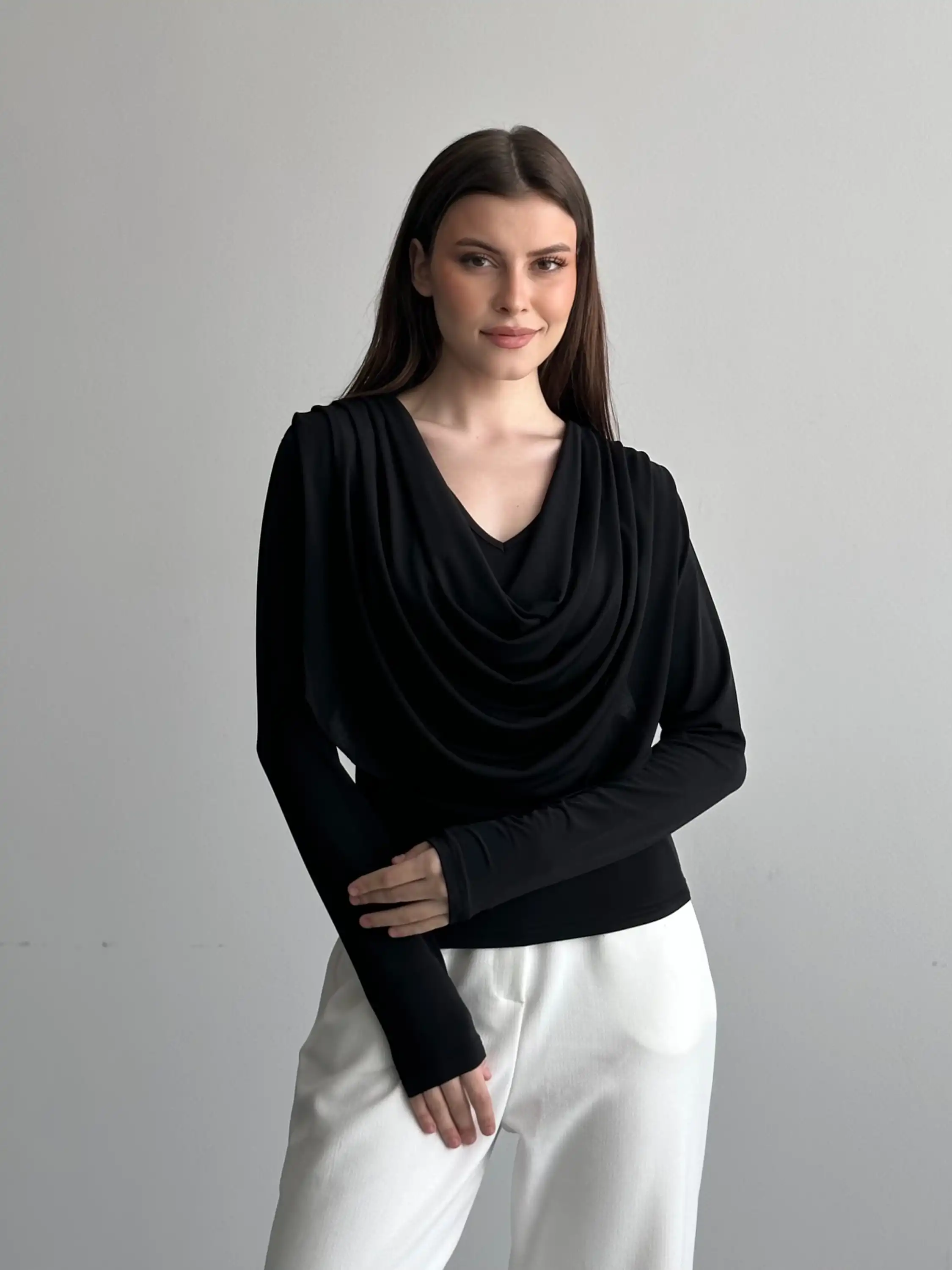 DEGAJE YAKA MODEL BLUZ-SİYAH