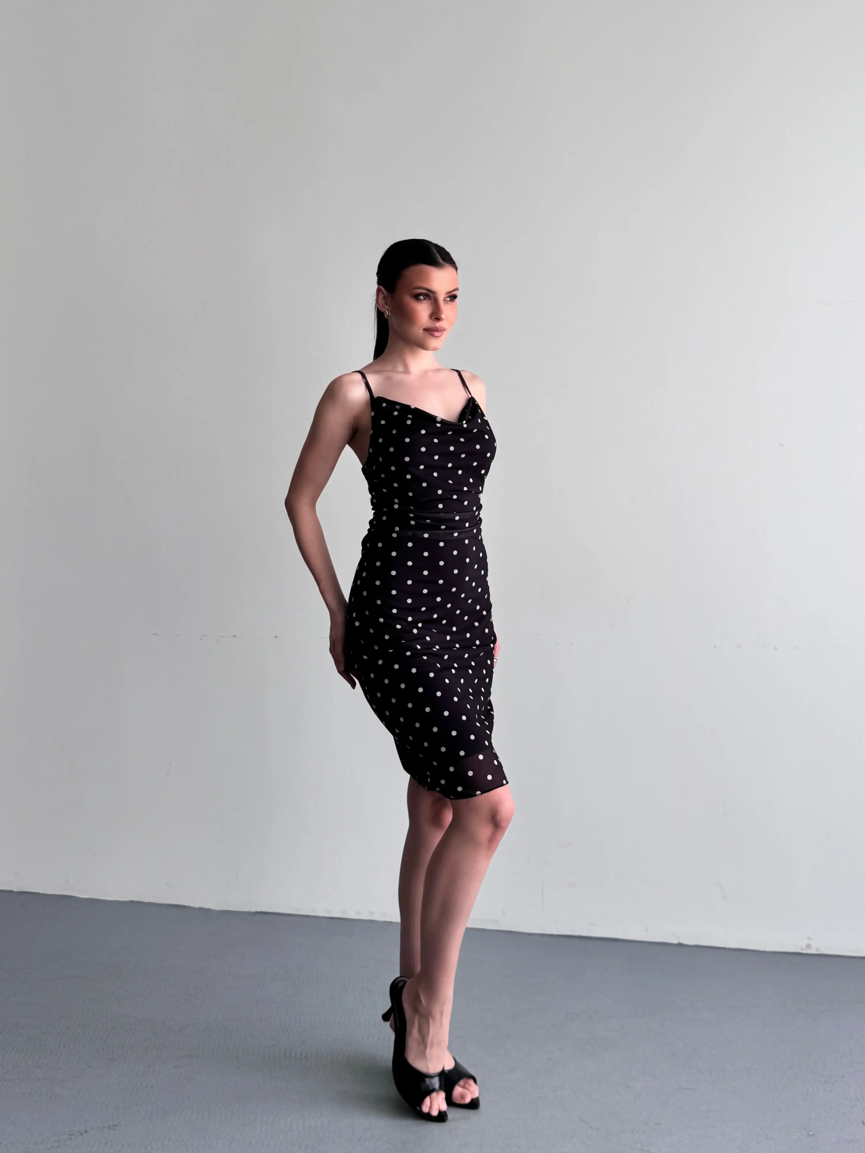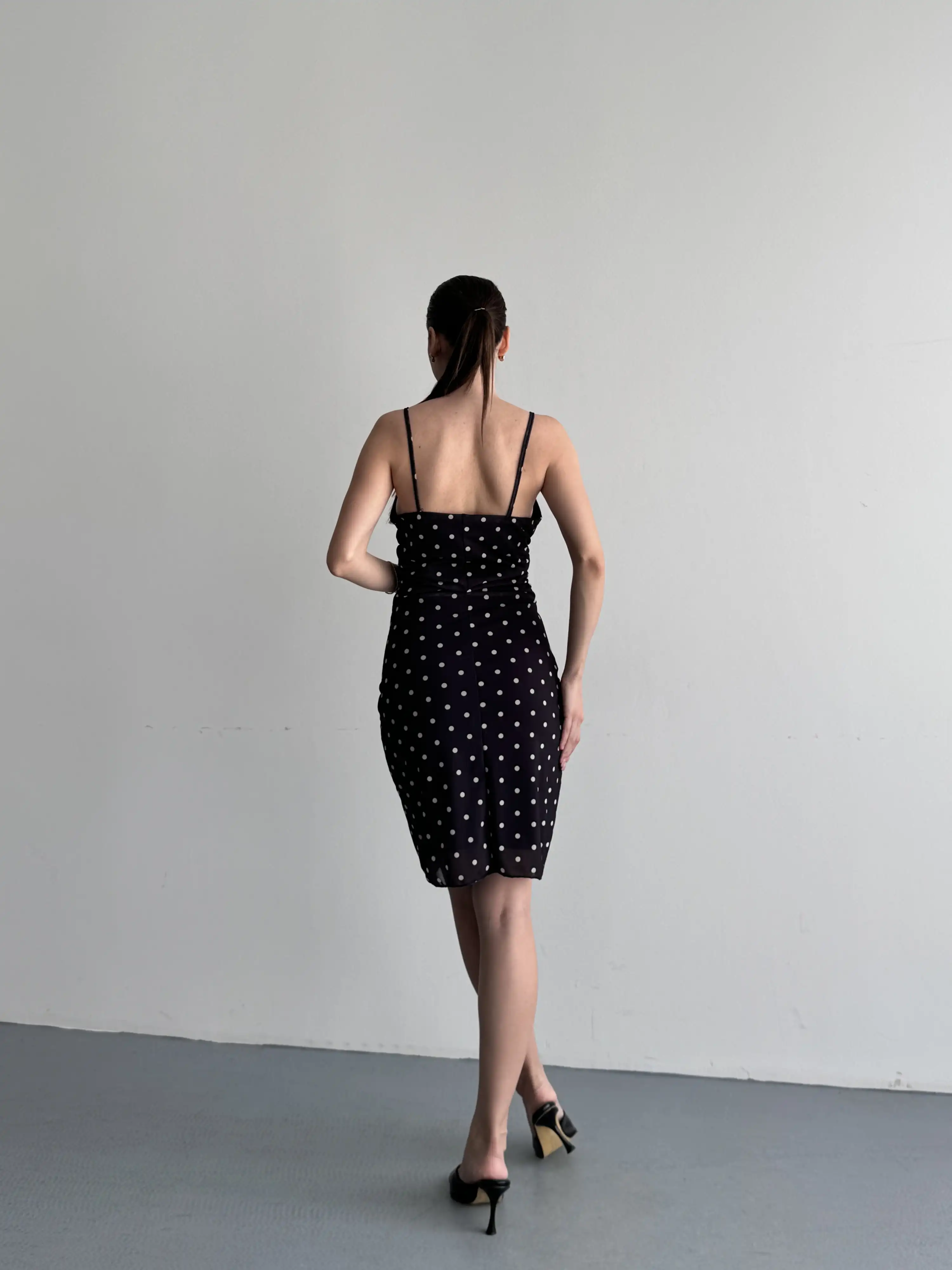 ASKILI MİNİ PUANTİYELİ ELBİSE-SİYAH