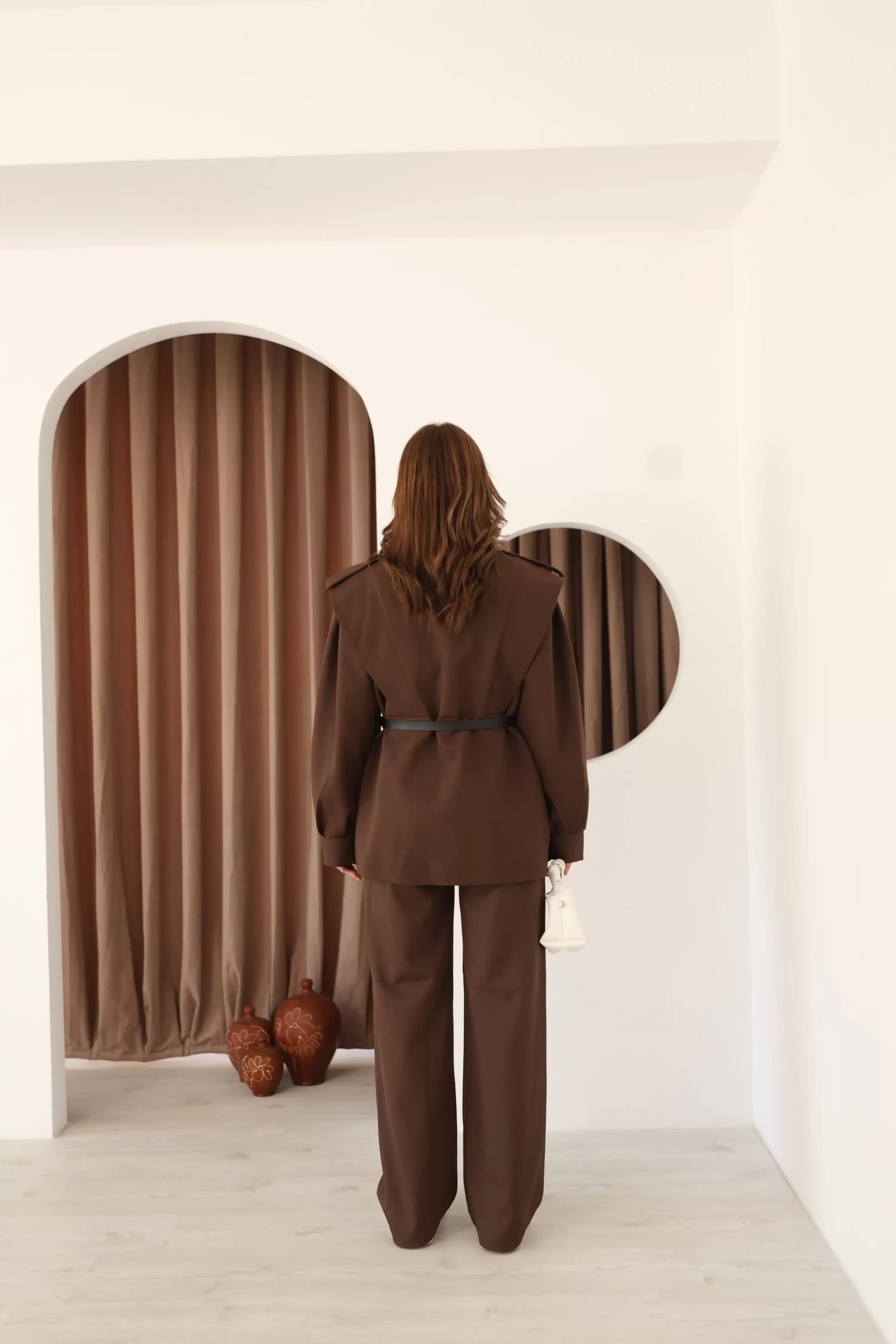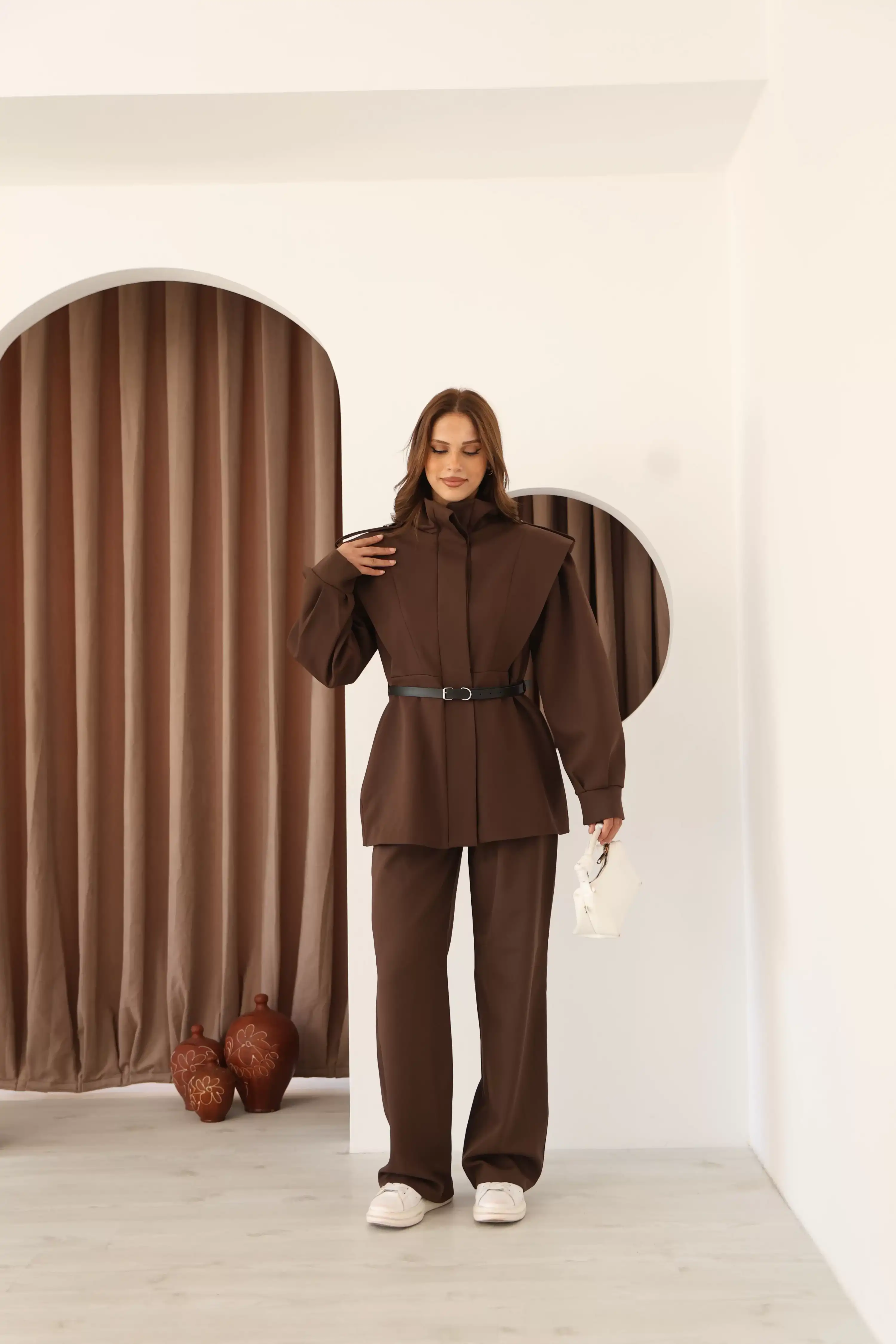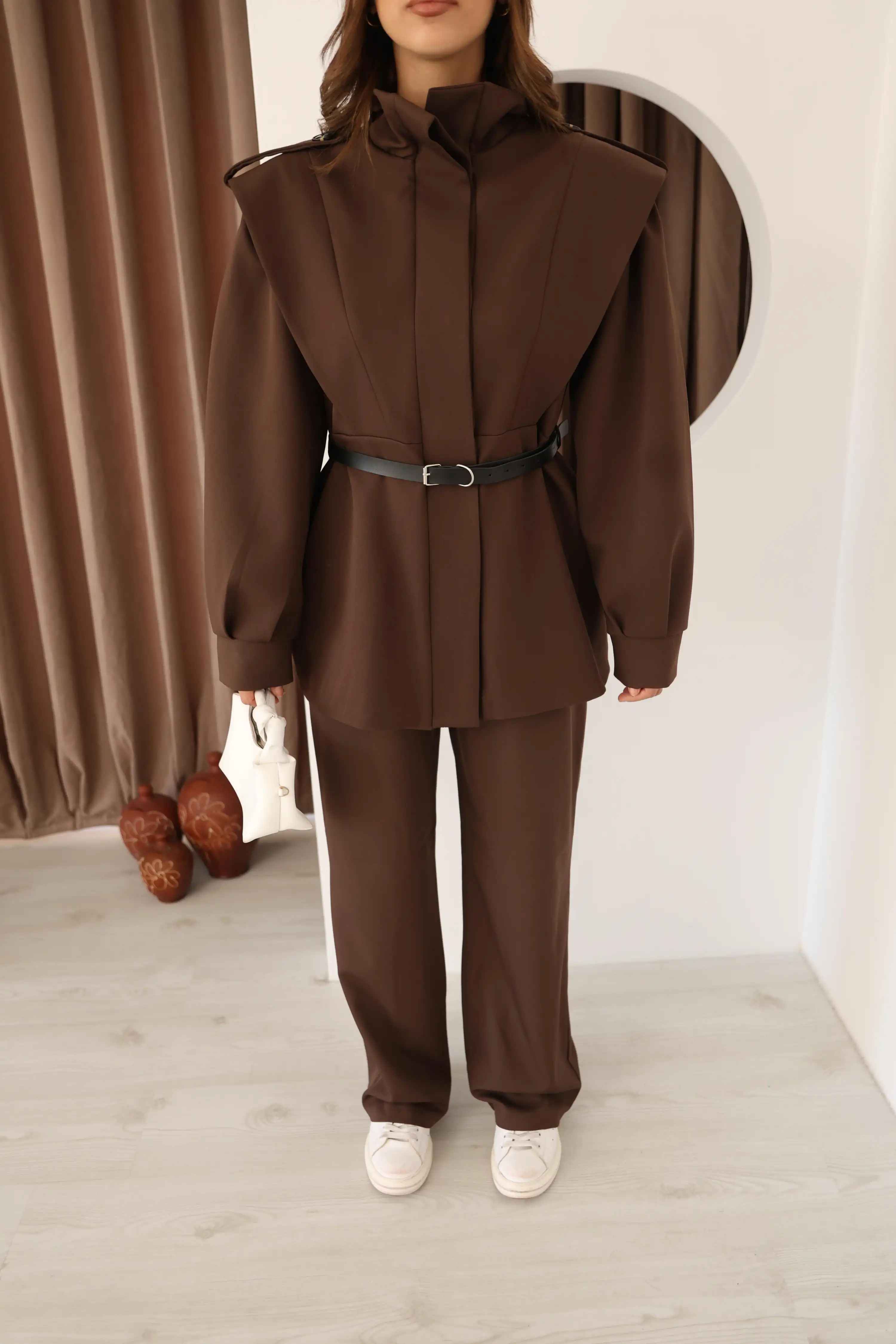 DİK YAKA OMUZ APOLETLİ TAKIM-KAHVE