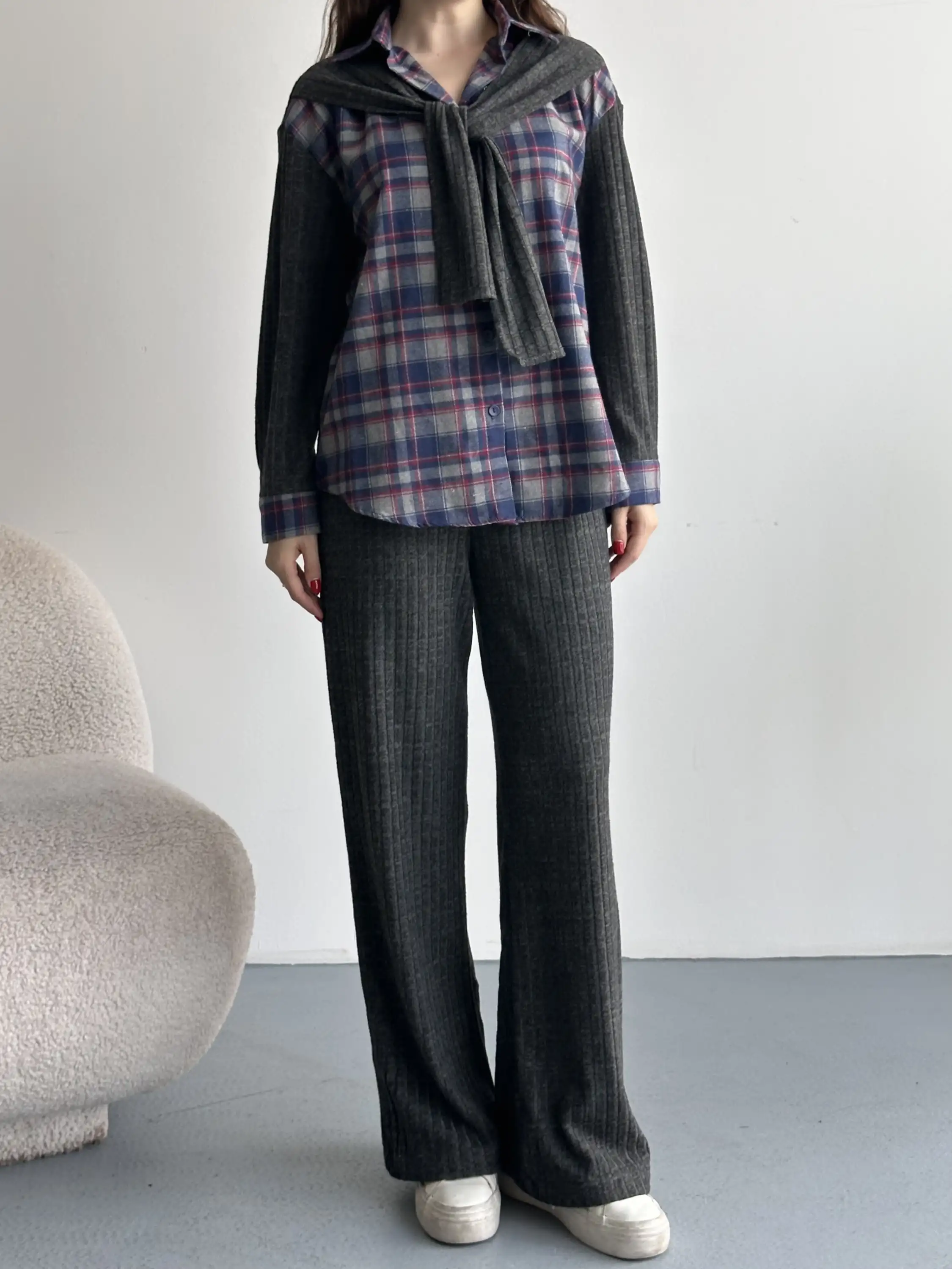 EKOSE DETAYLI PANTOLONLU TAKIM-MAVİ
