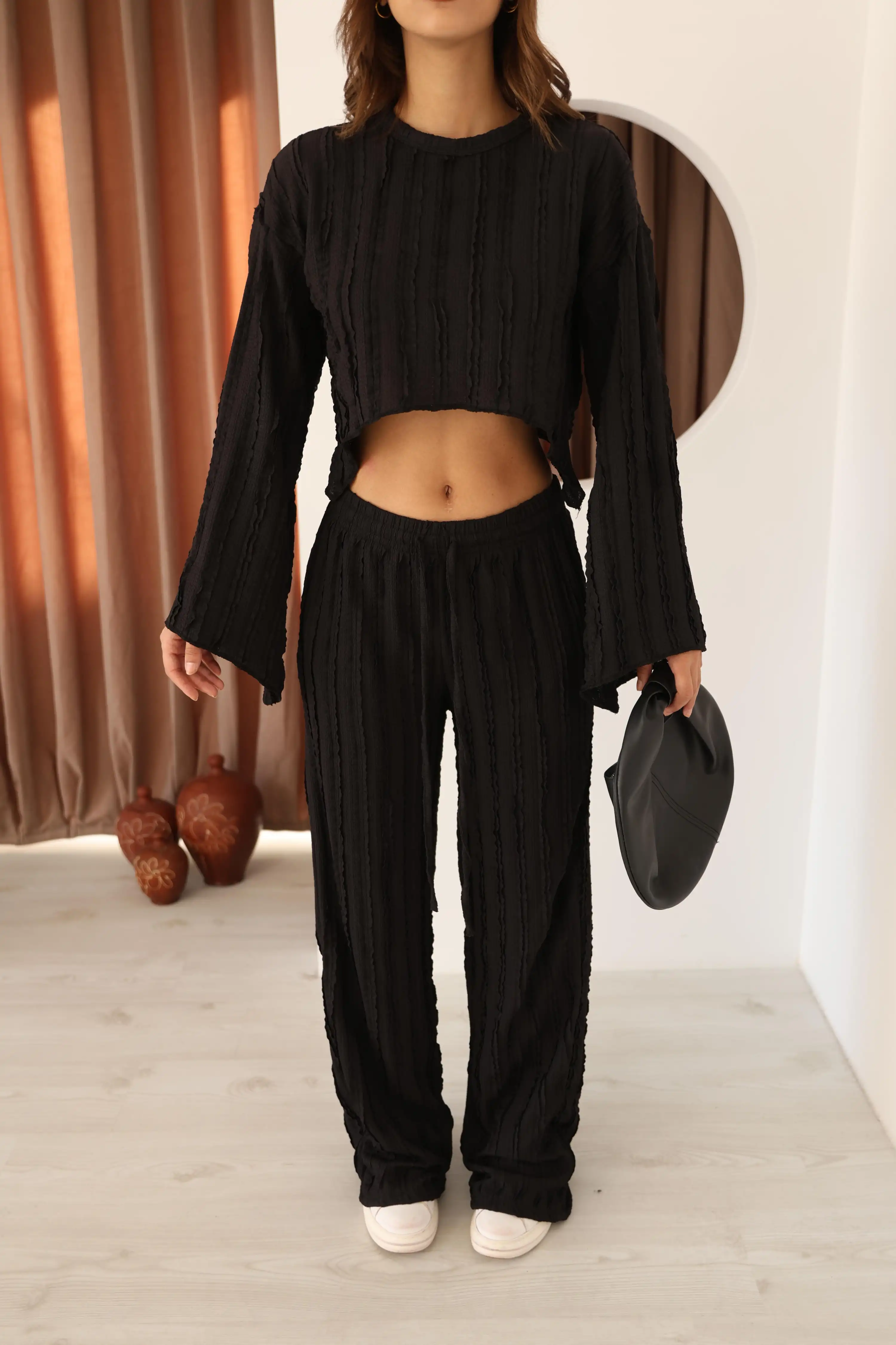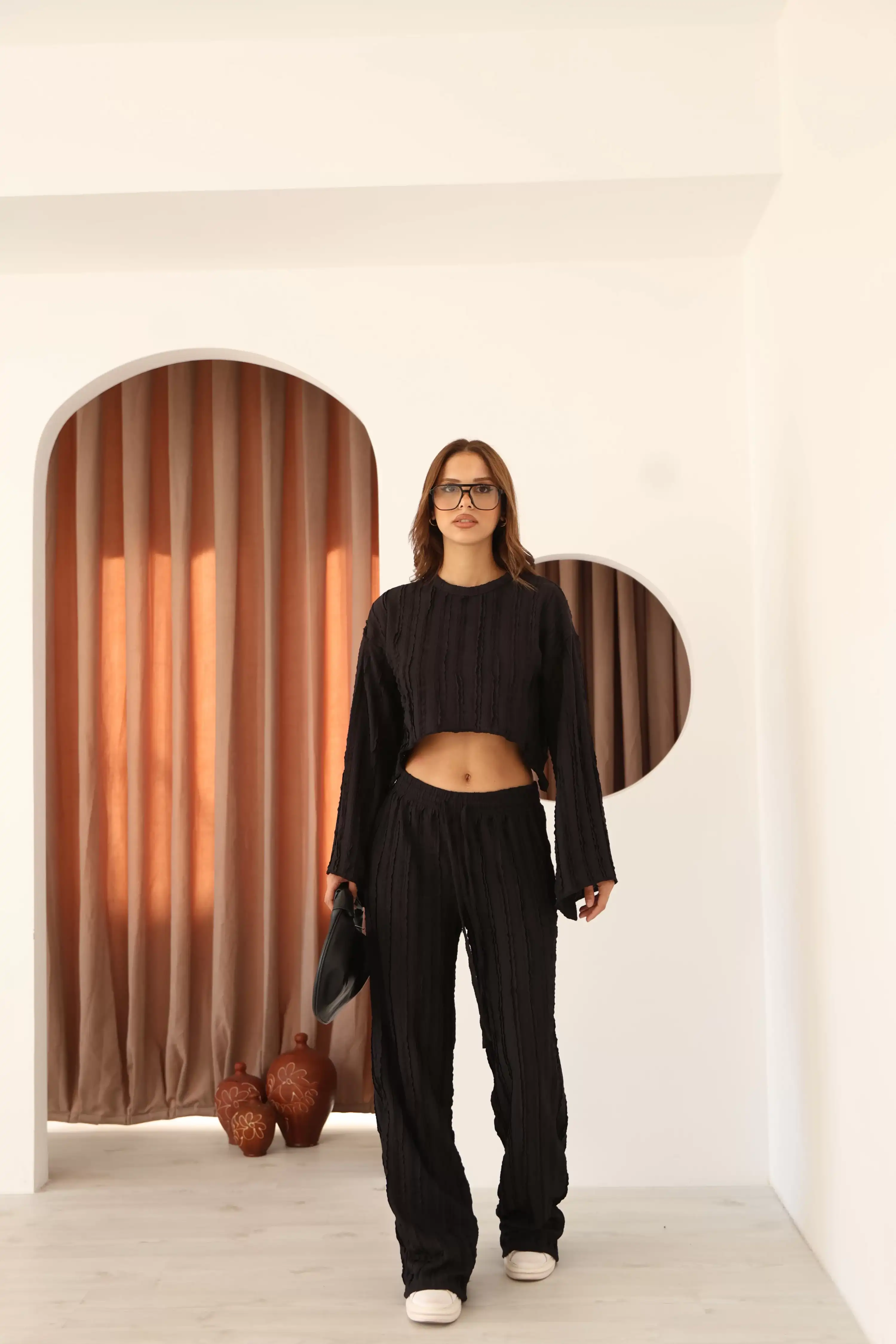 FİTİLİ TERS DİKİŞLİ TAKIM-SİYAH