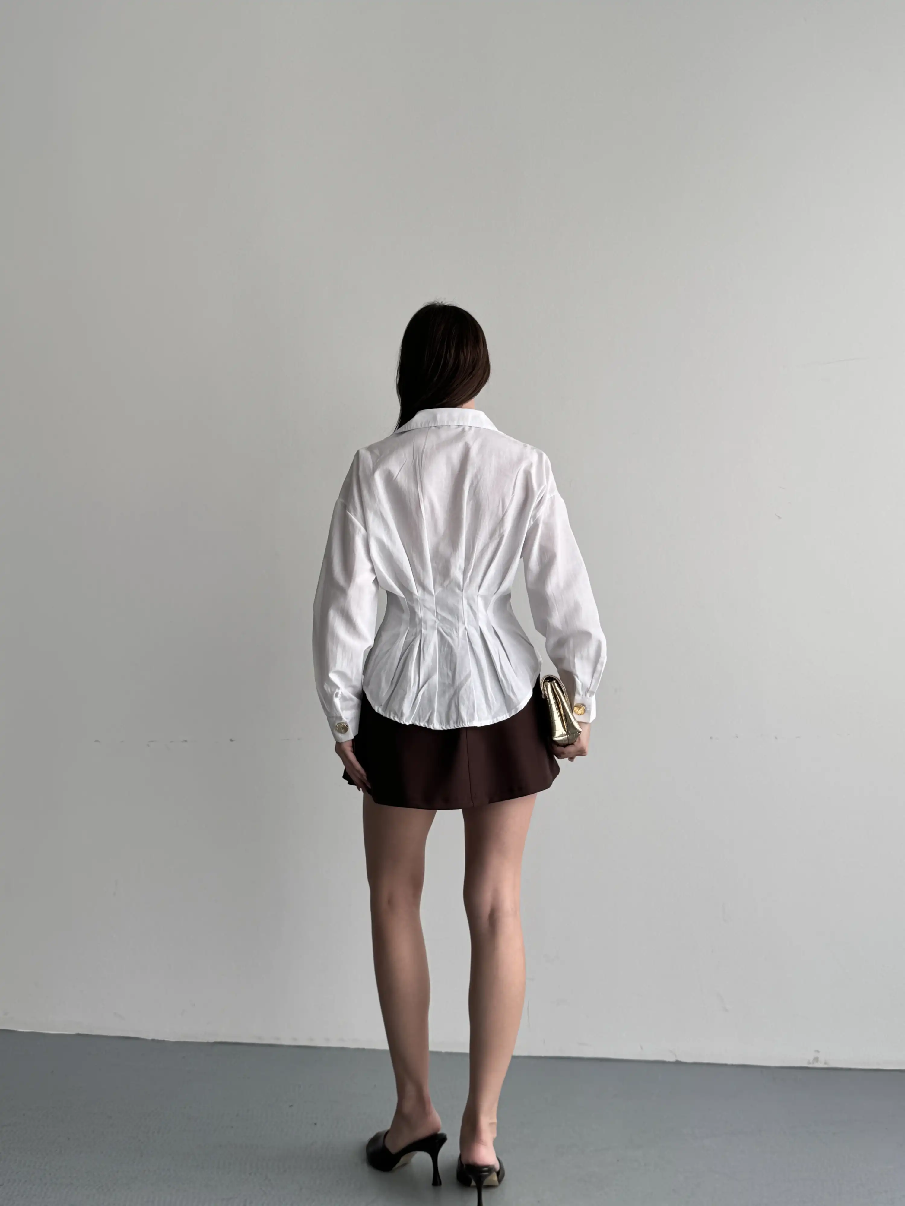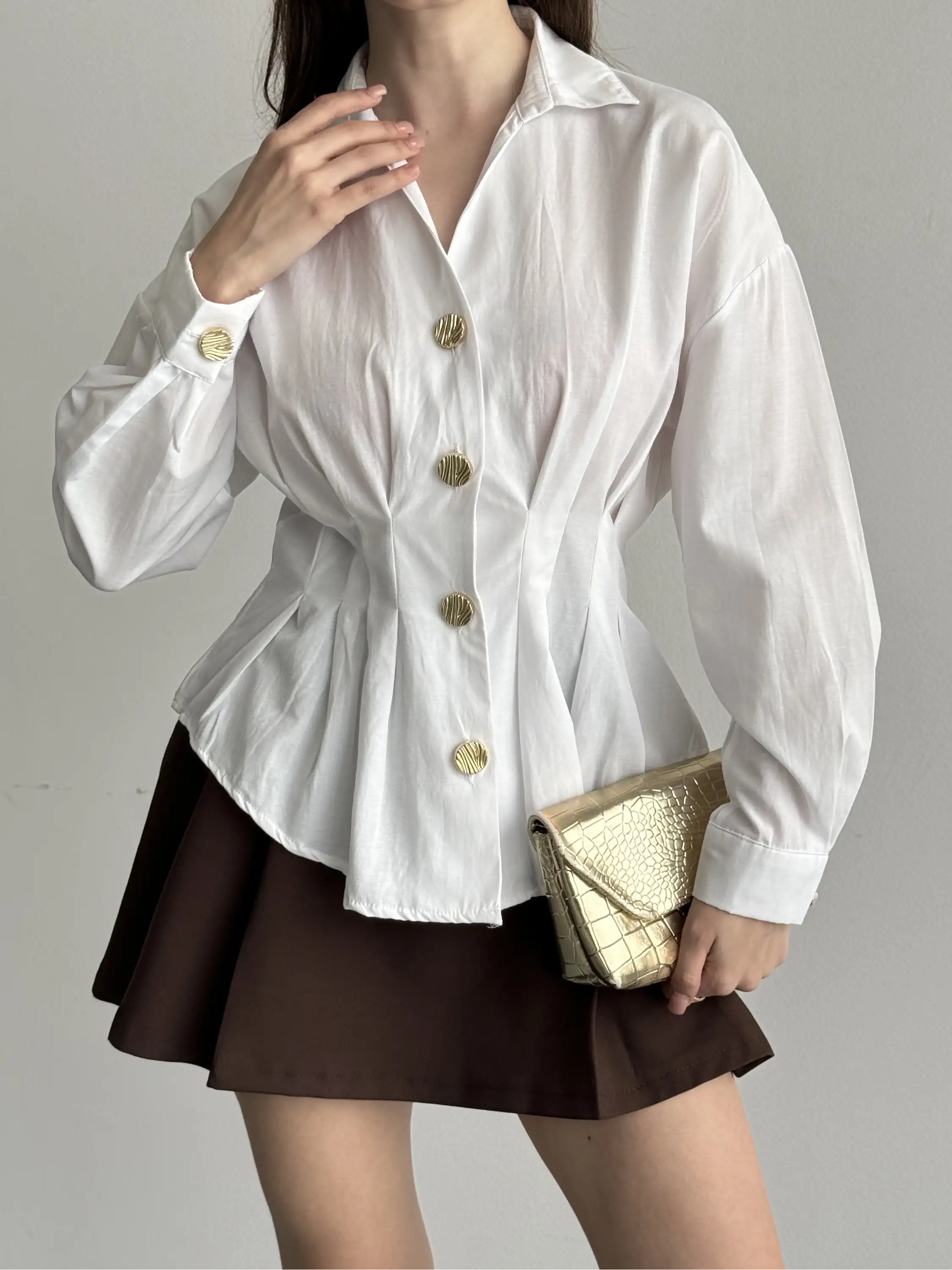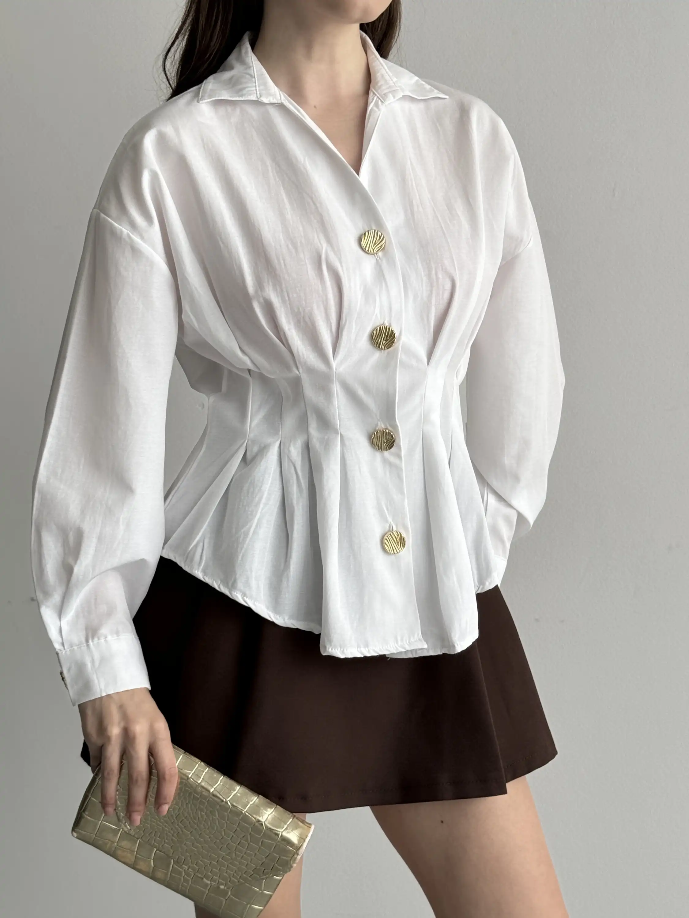 GOLD DÜĞME DETAYLI BELDEN OTURTMALI GÖMLEK-BEYAZ