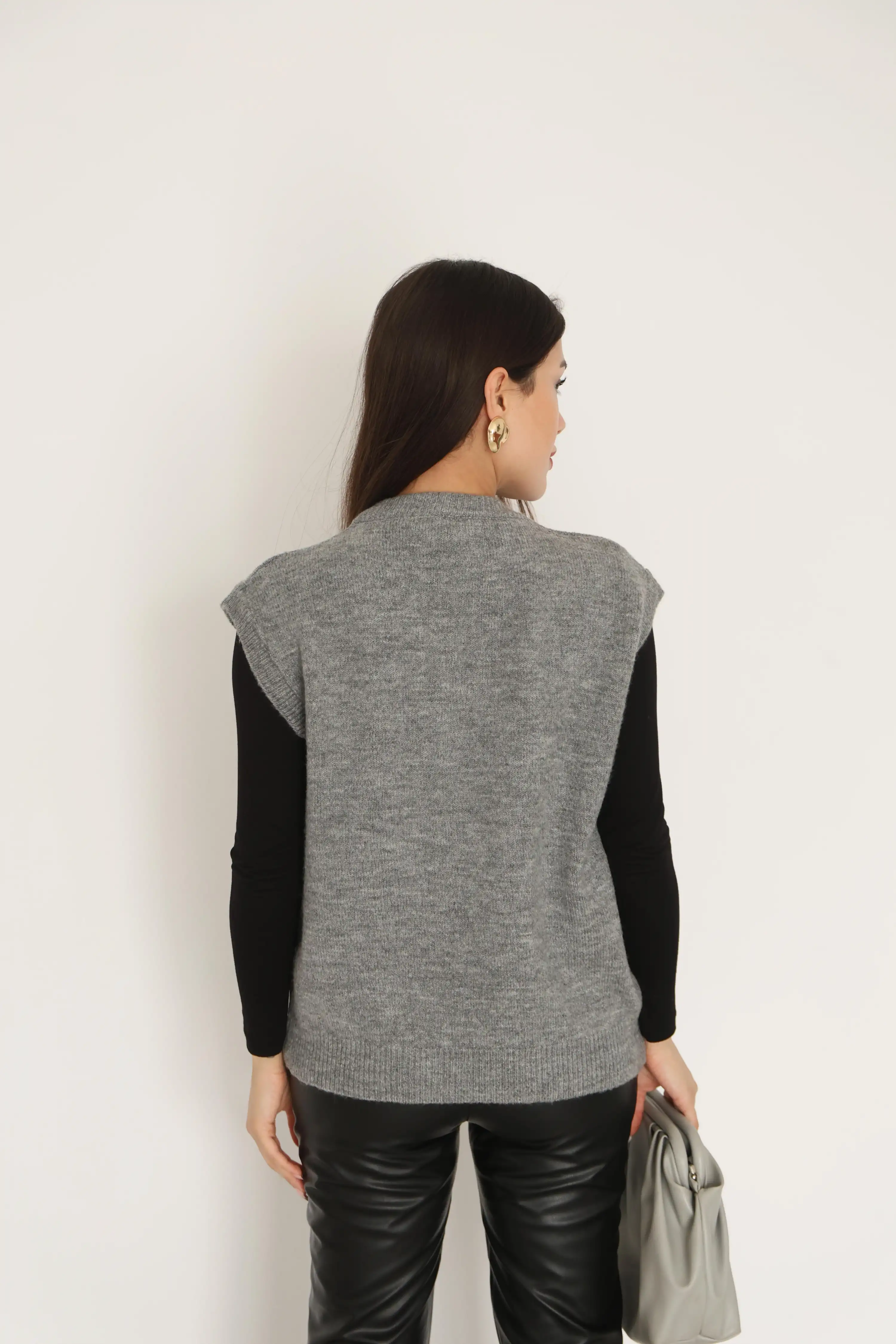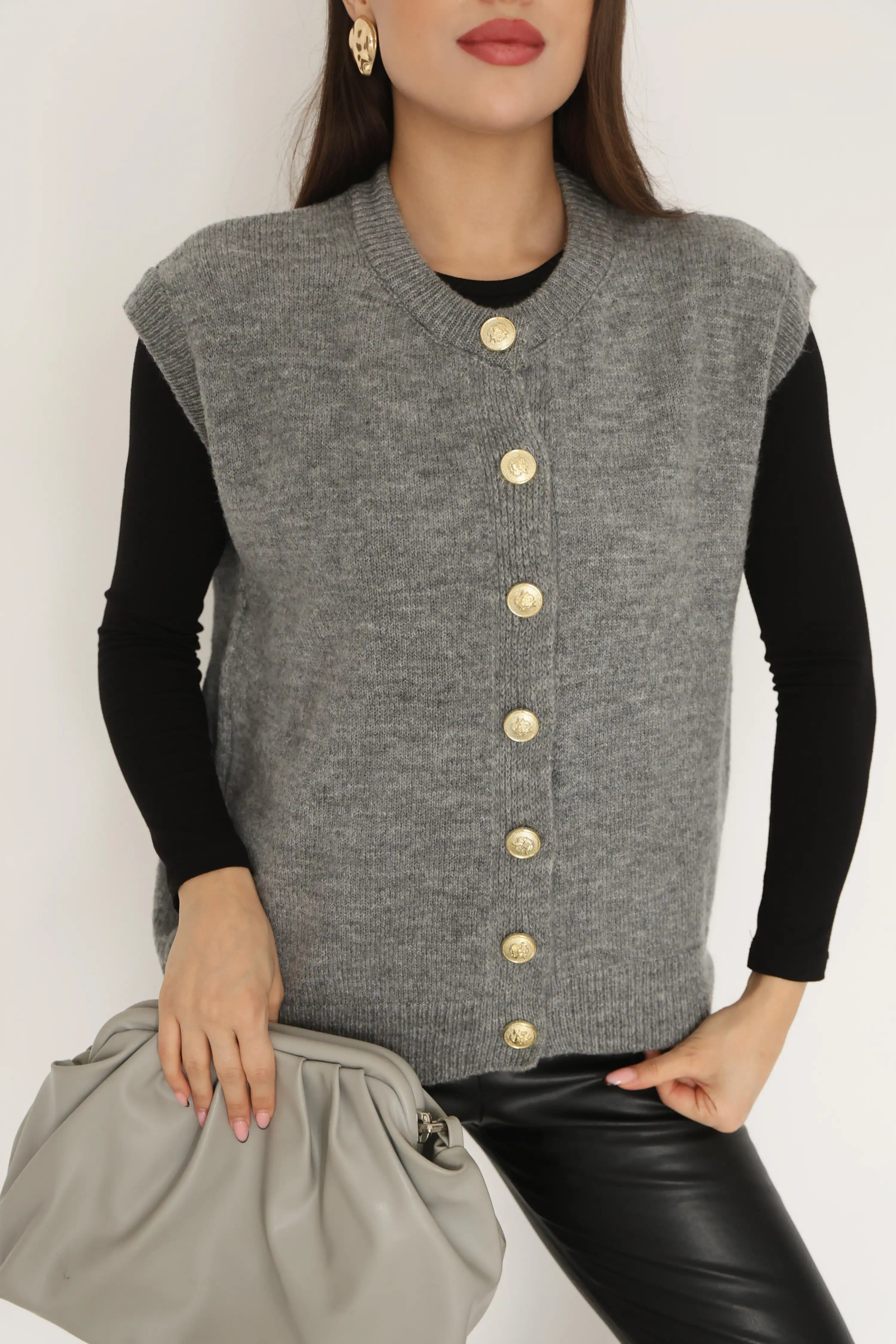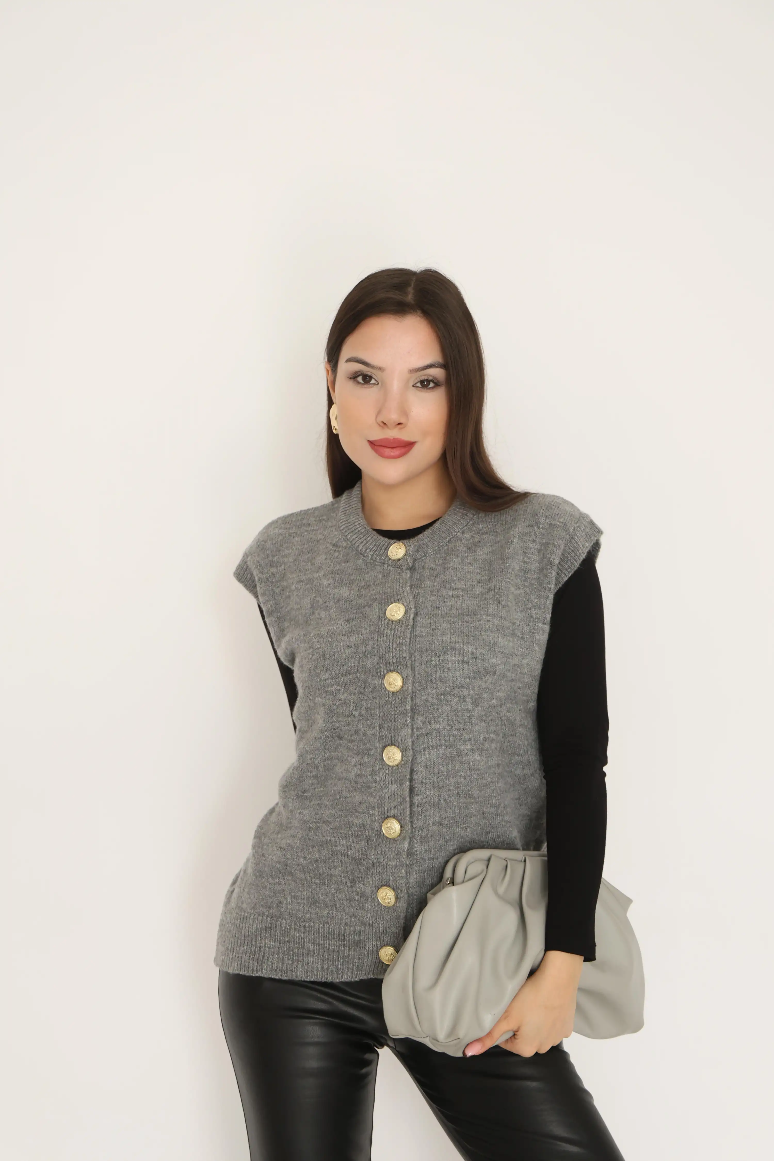 GOLD DÜĞMELİ YELEK TRİKO-GRİ