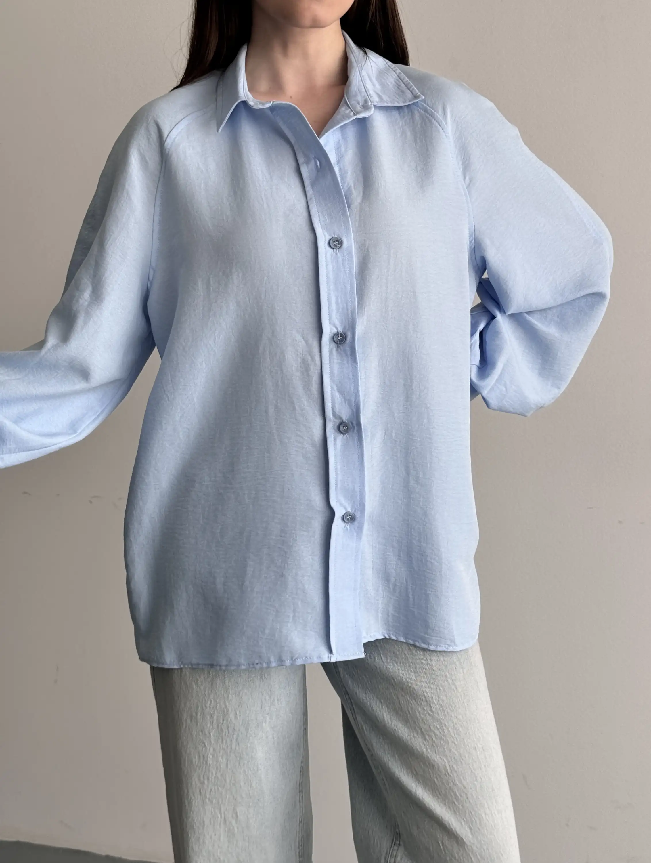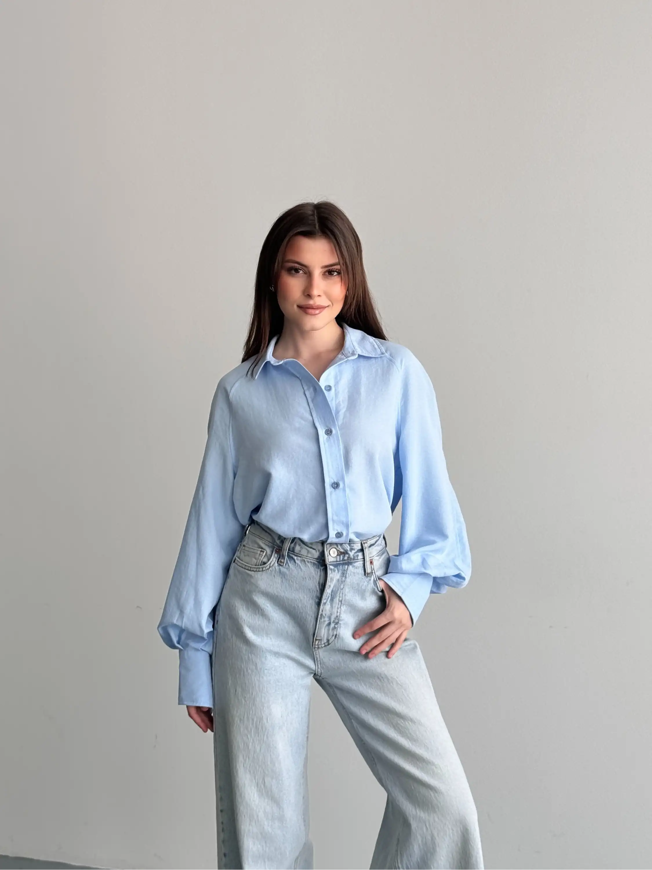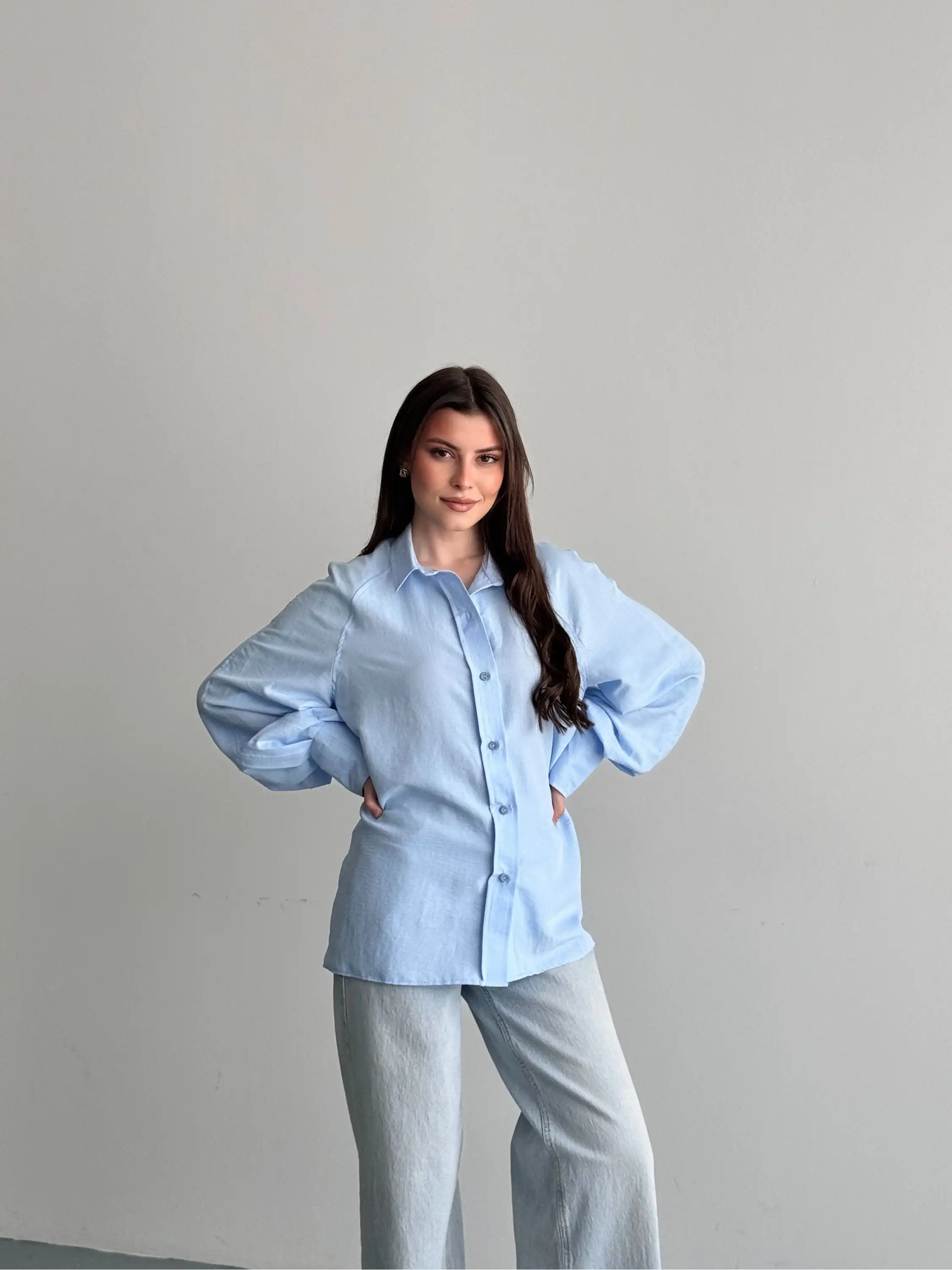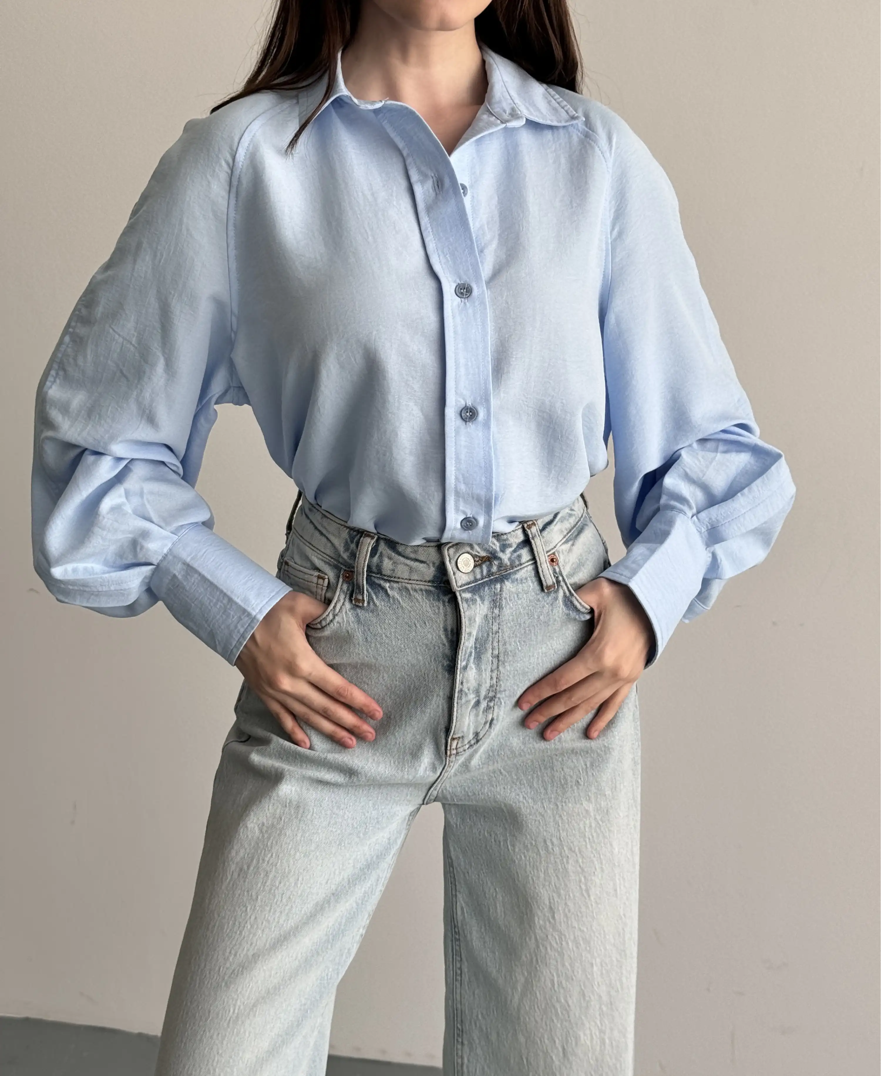 KALIN MANŞETLİ BALON KOL GÖMLEK-MAVİ