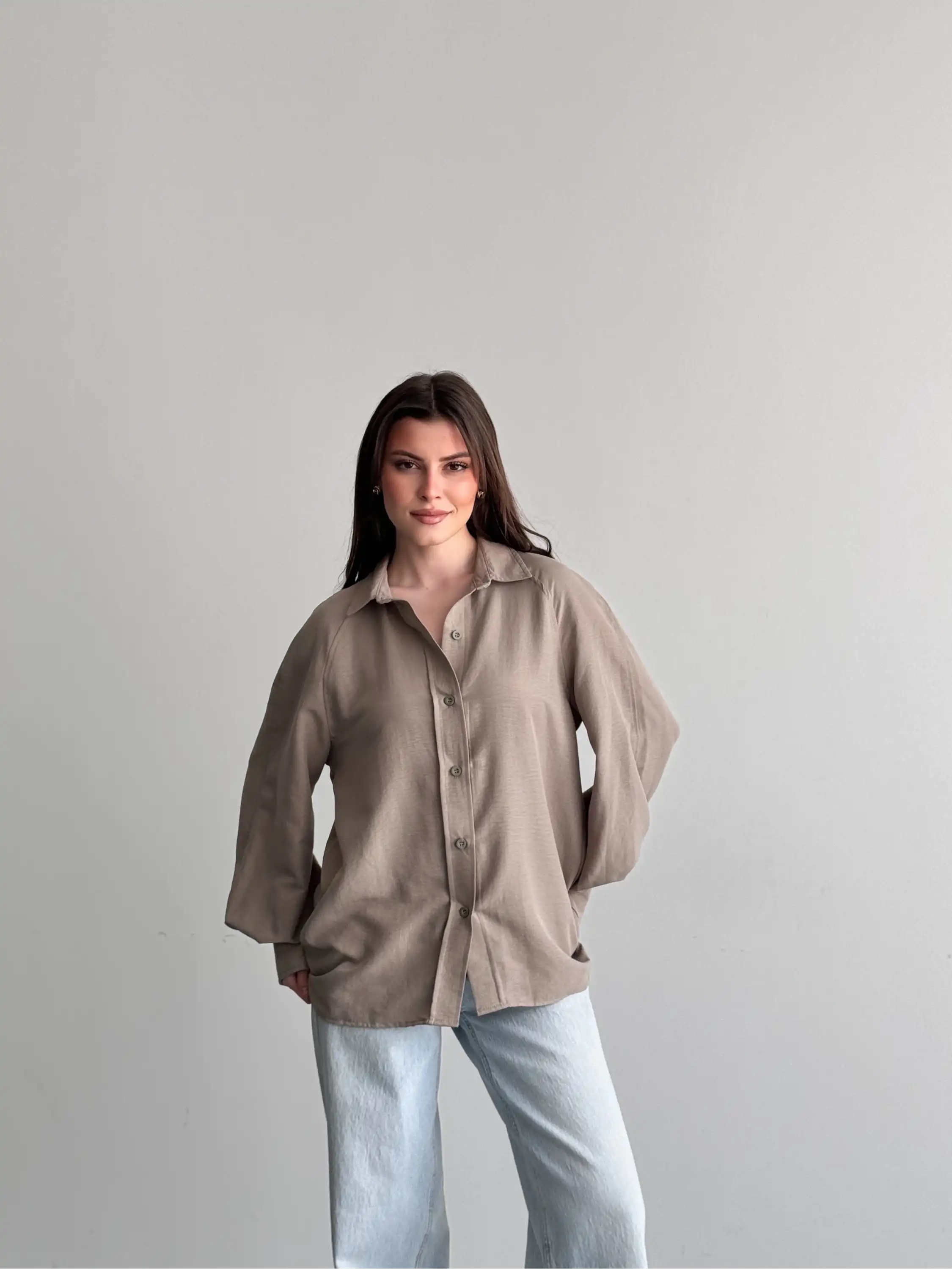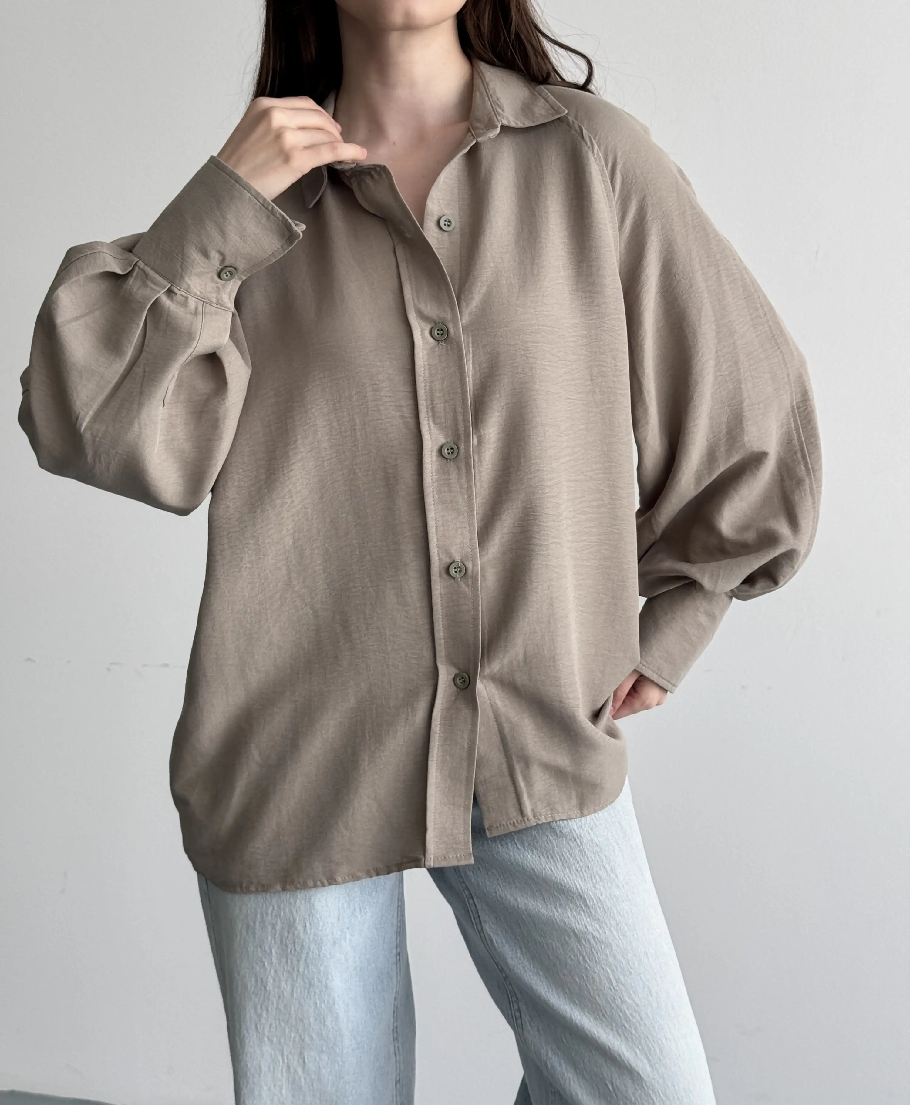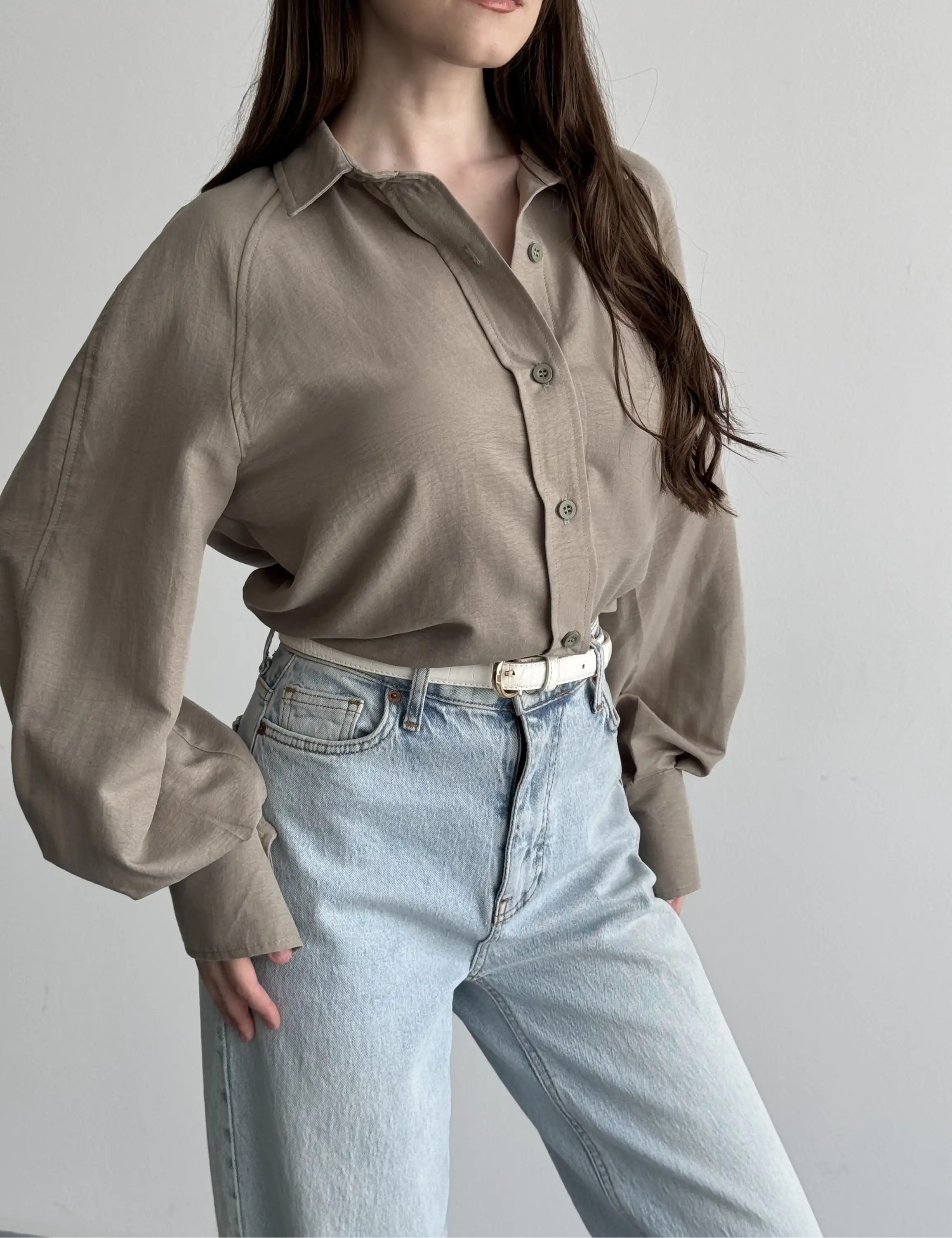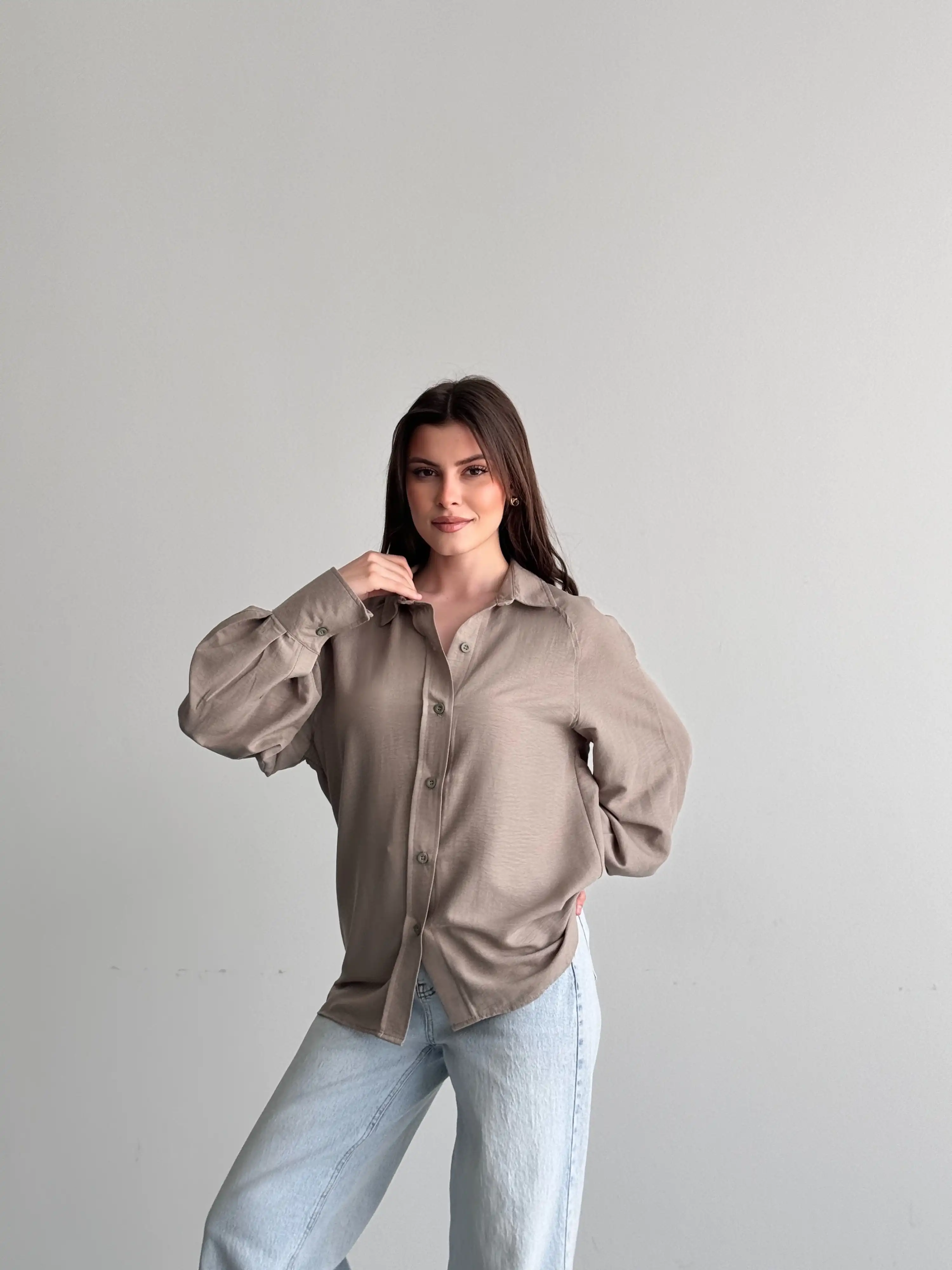 KALIN MANŞETLİ BALON KOL GÖMLEK-VİZON