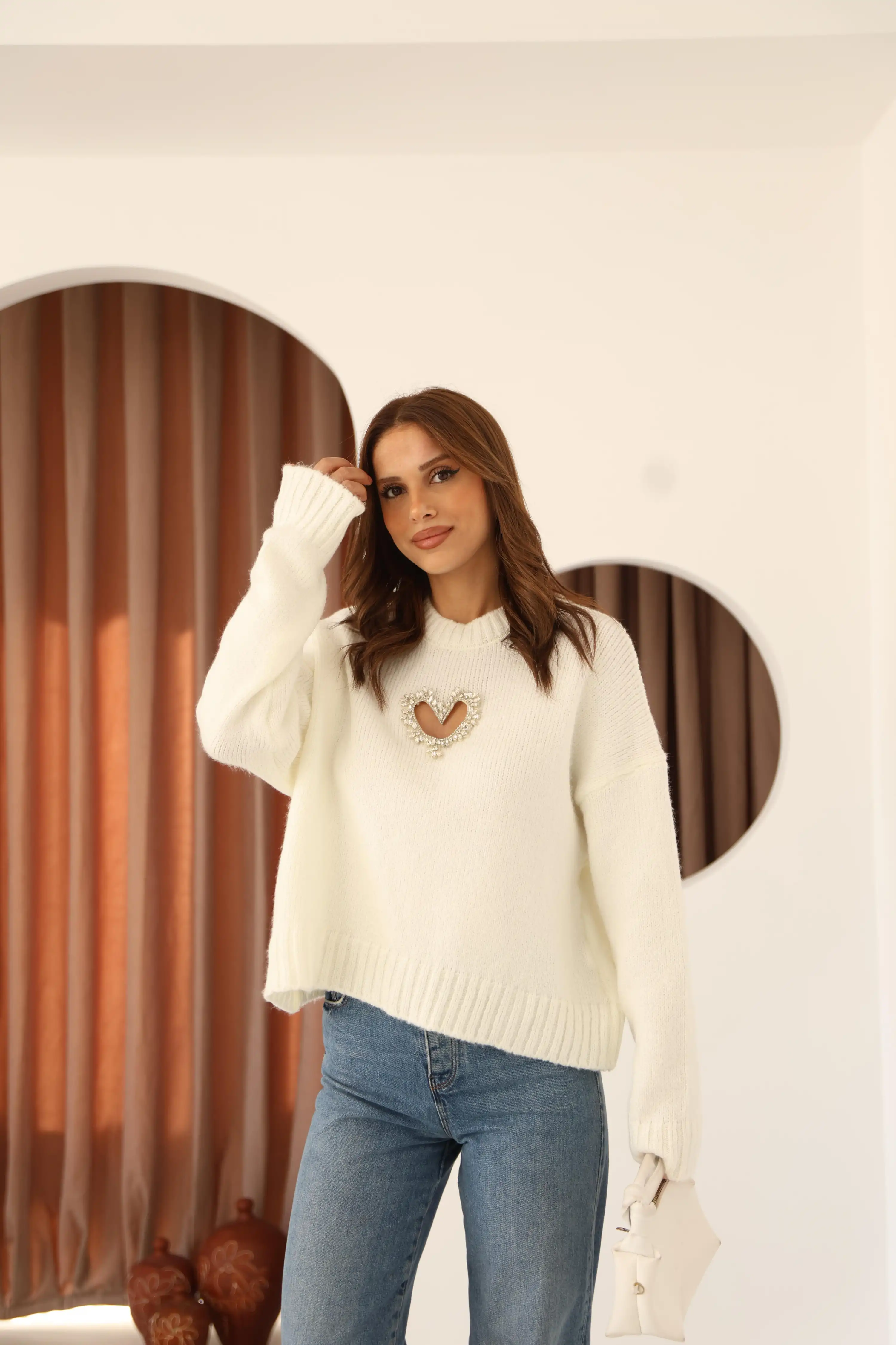 KALP DEKOLTELİ KAZAK-BEYAZ