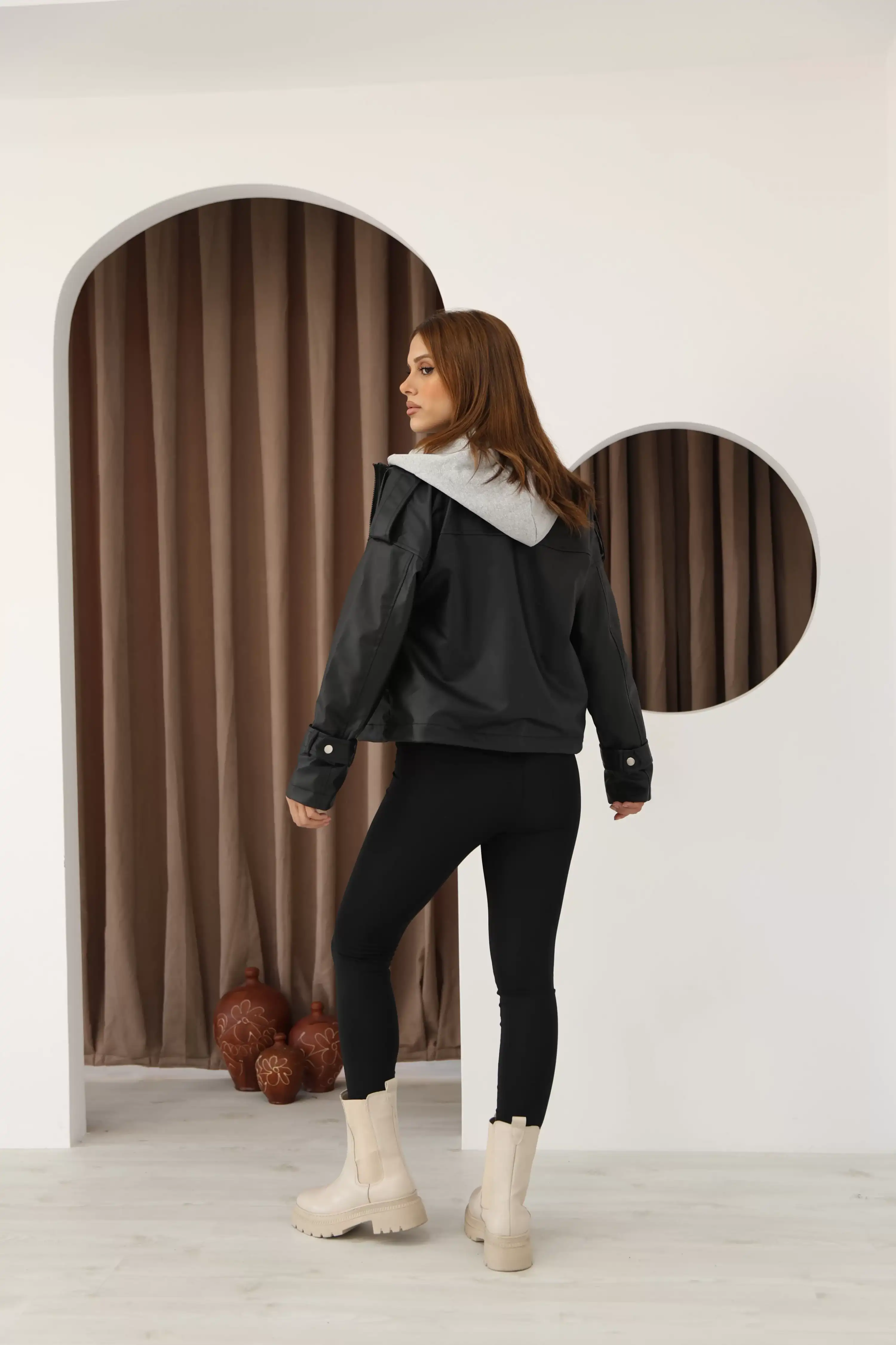 KAPÜŞONLU DERİ CEKET
