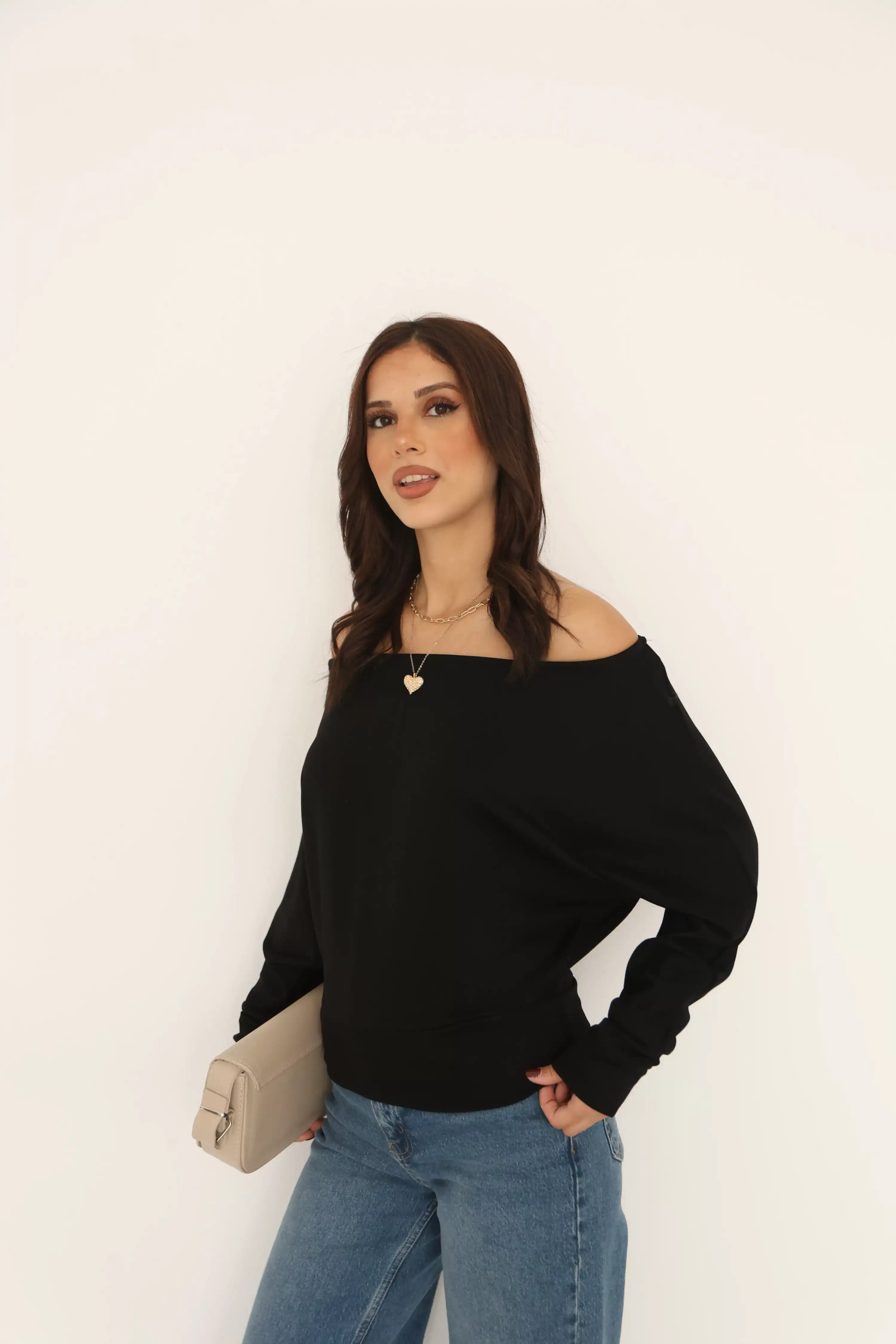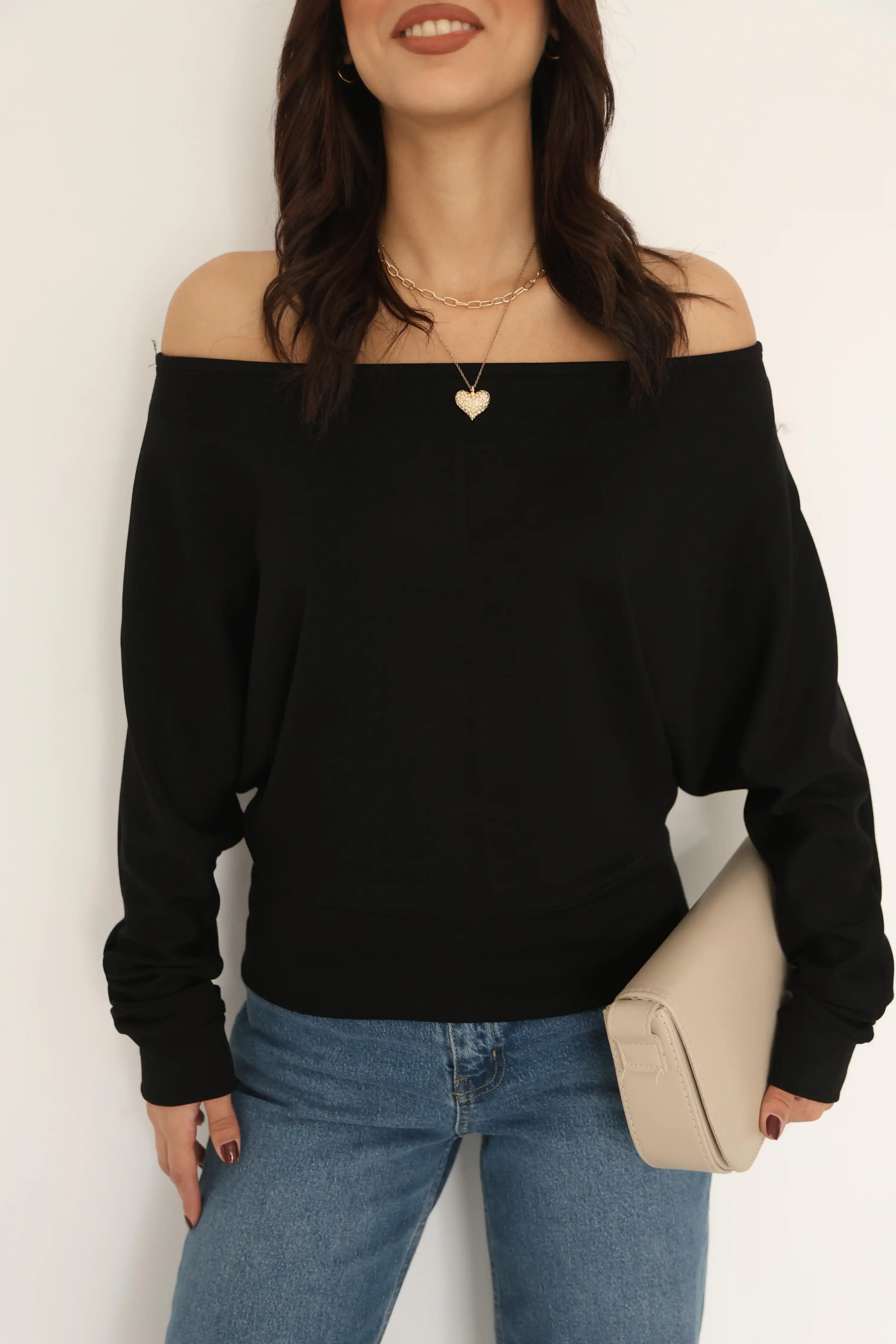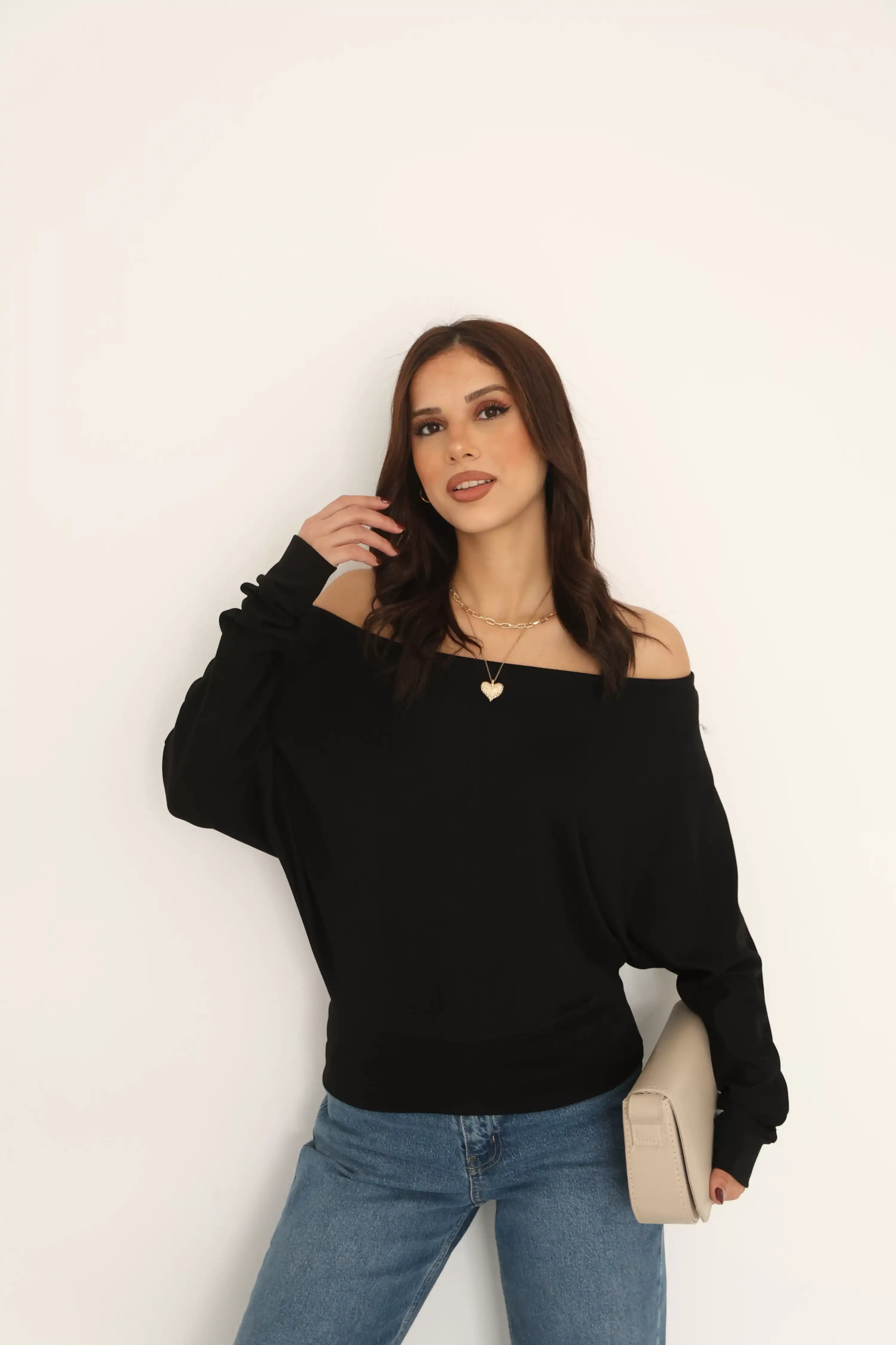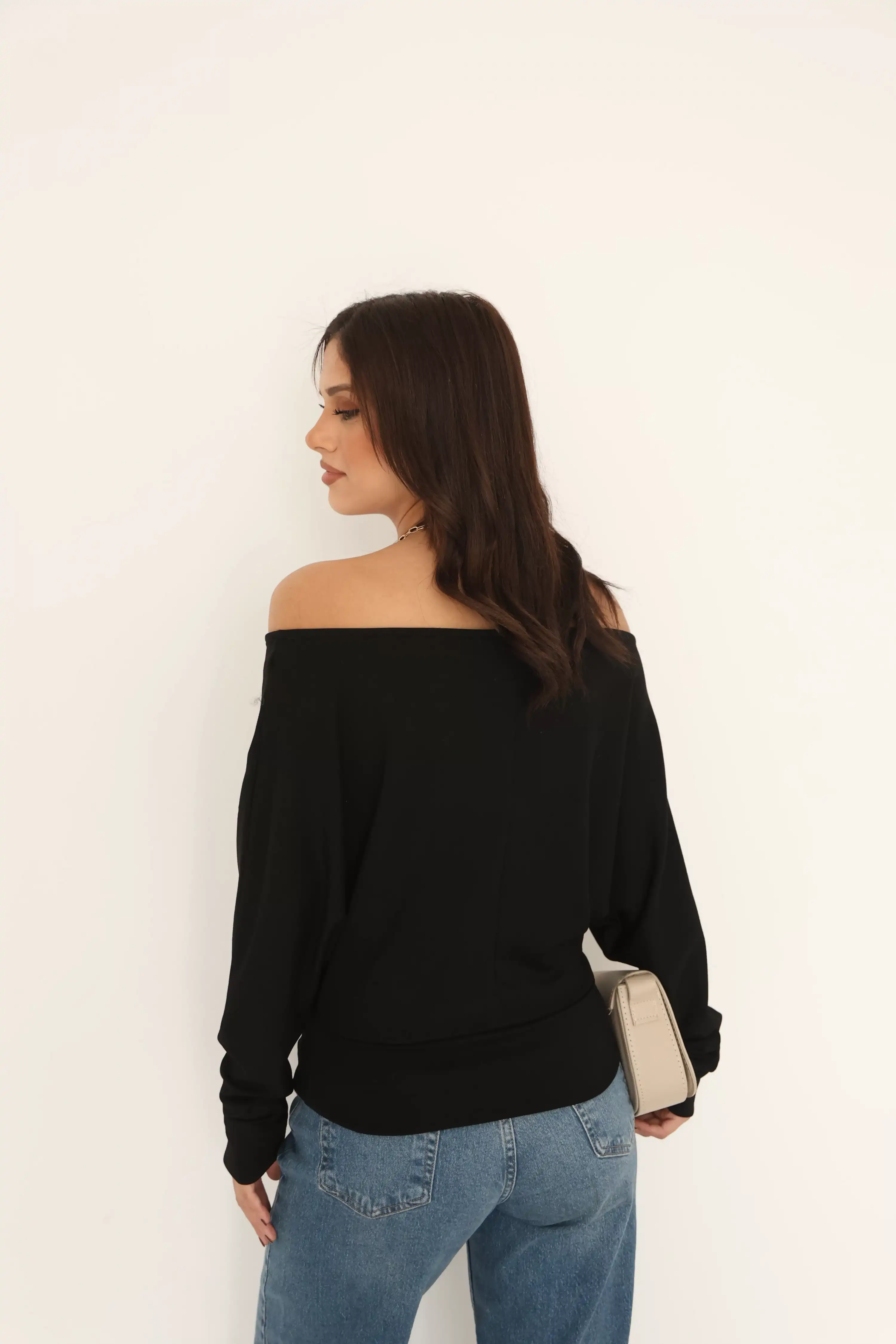KAYIK YAKA MODAL BLUZ-SİYAH