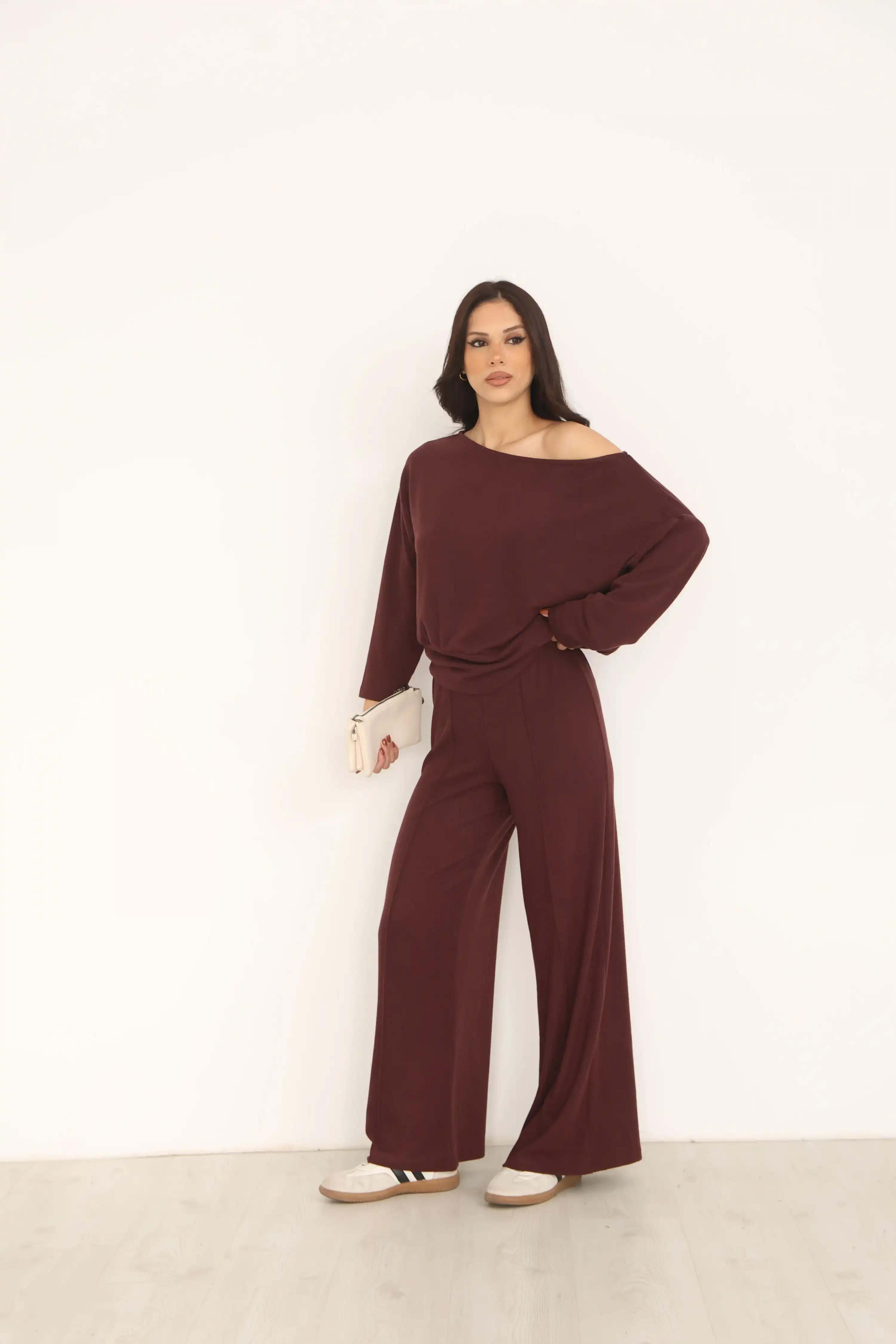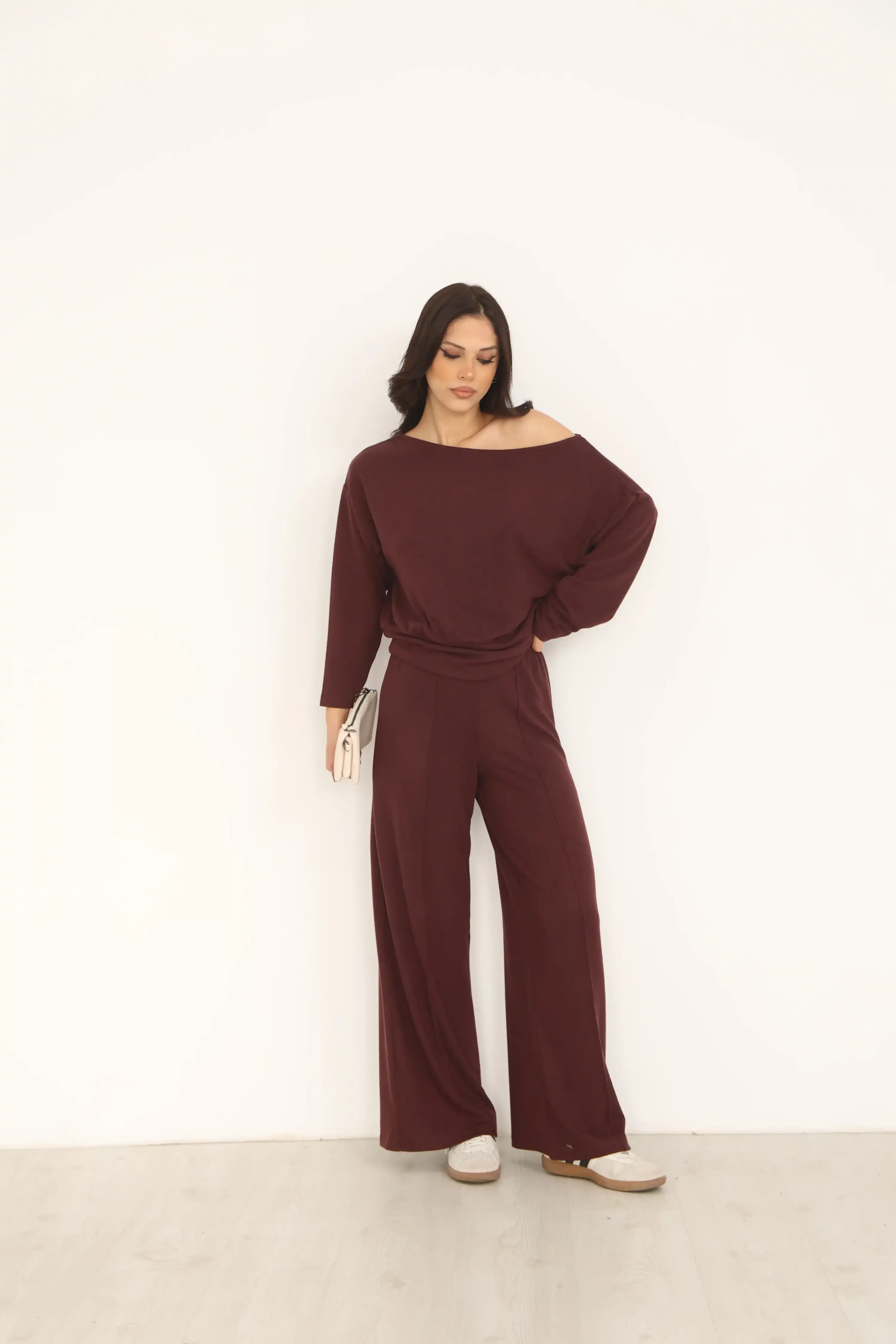 KAYIK YAKA MODAL İKİLİ TAKIM-ACI KAHVE