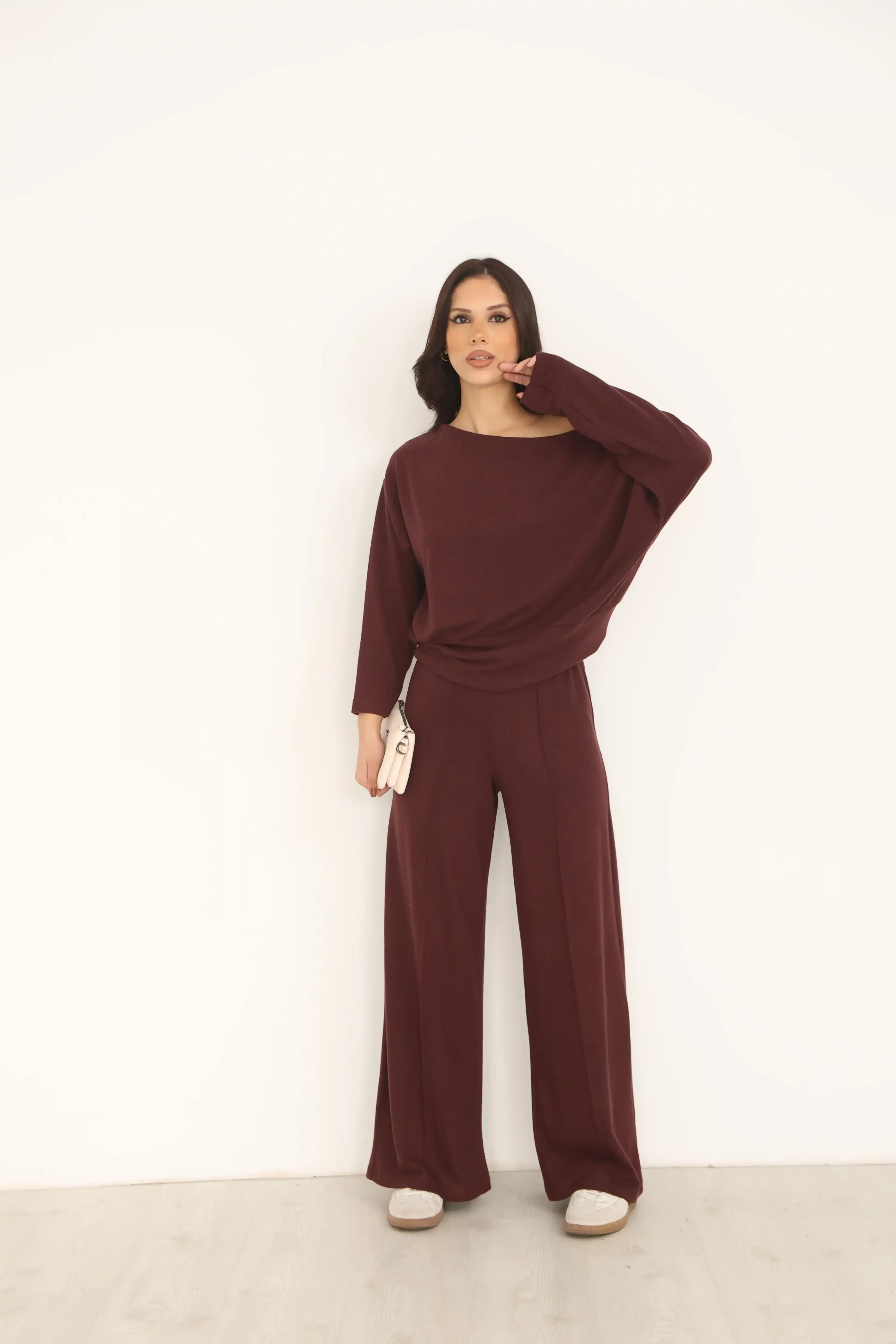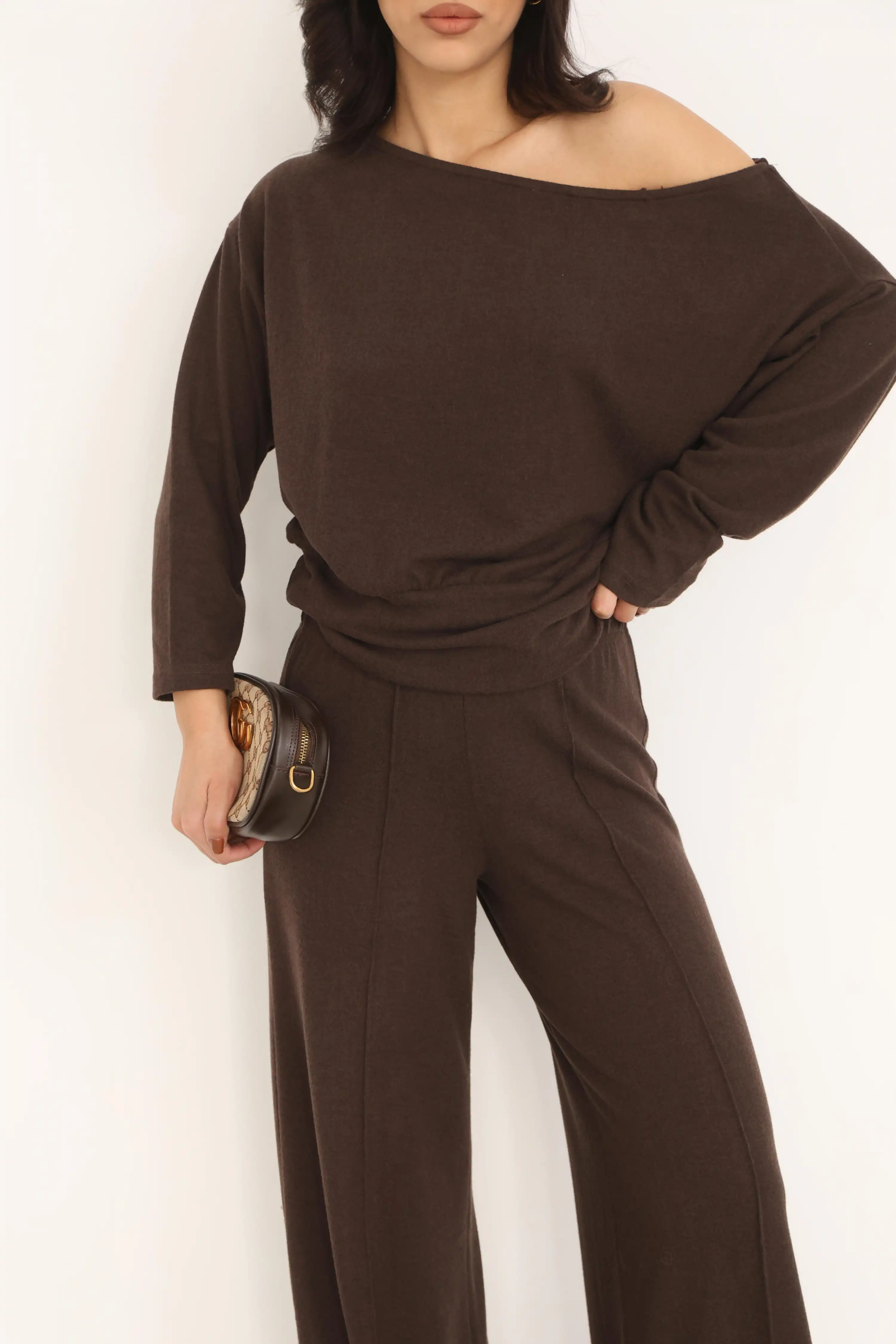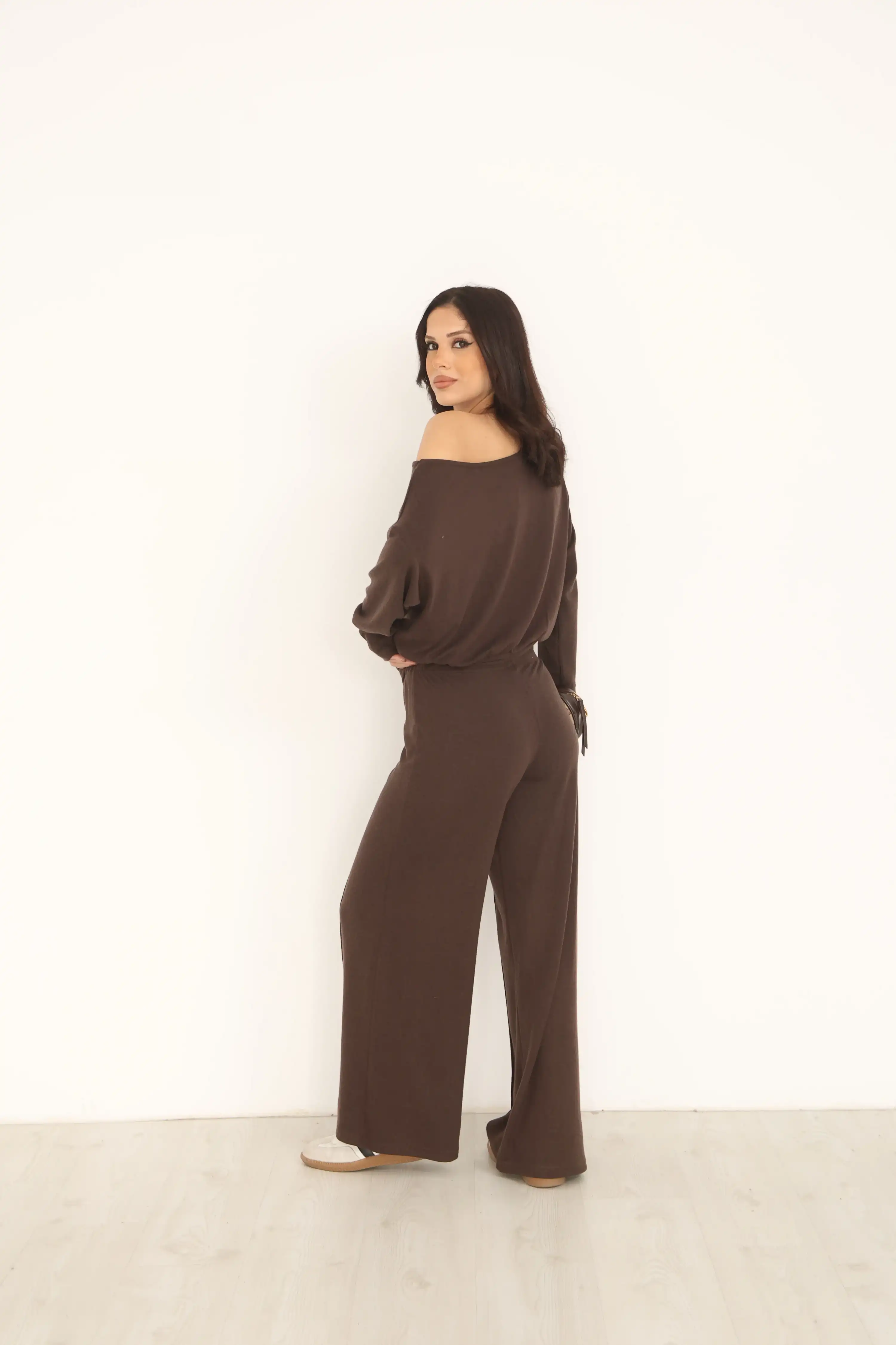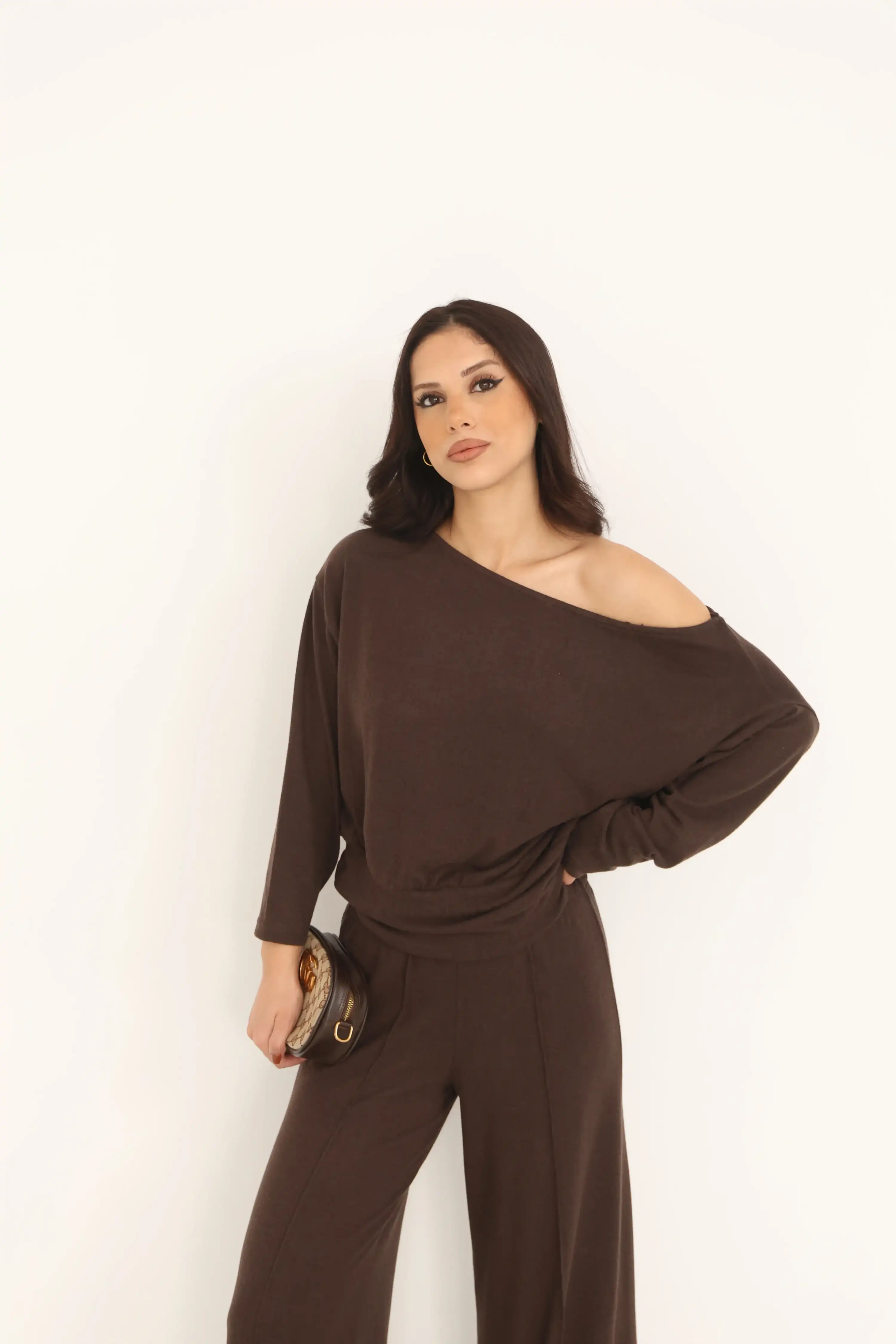 KAYIK YAKA MODAL İKİLİ TAKIM-KAHVE