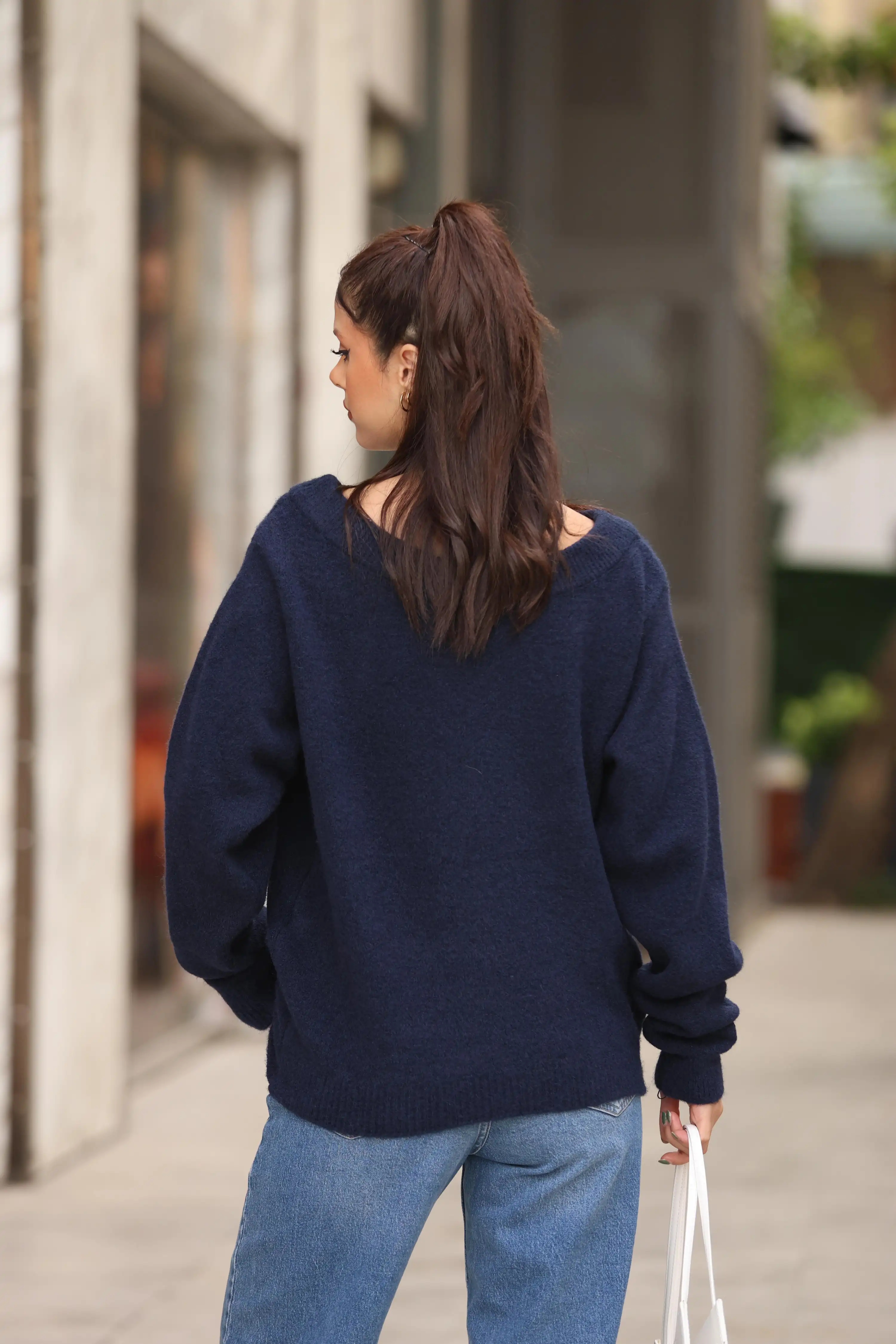 KAYIK YAKA YUMOŞ KAZAK-LACİVERT