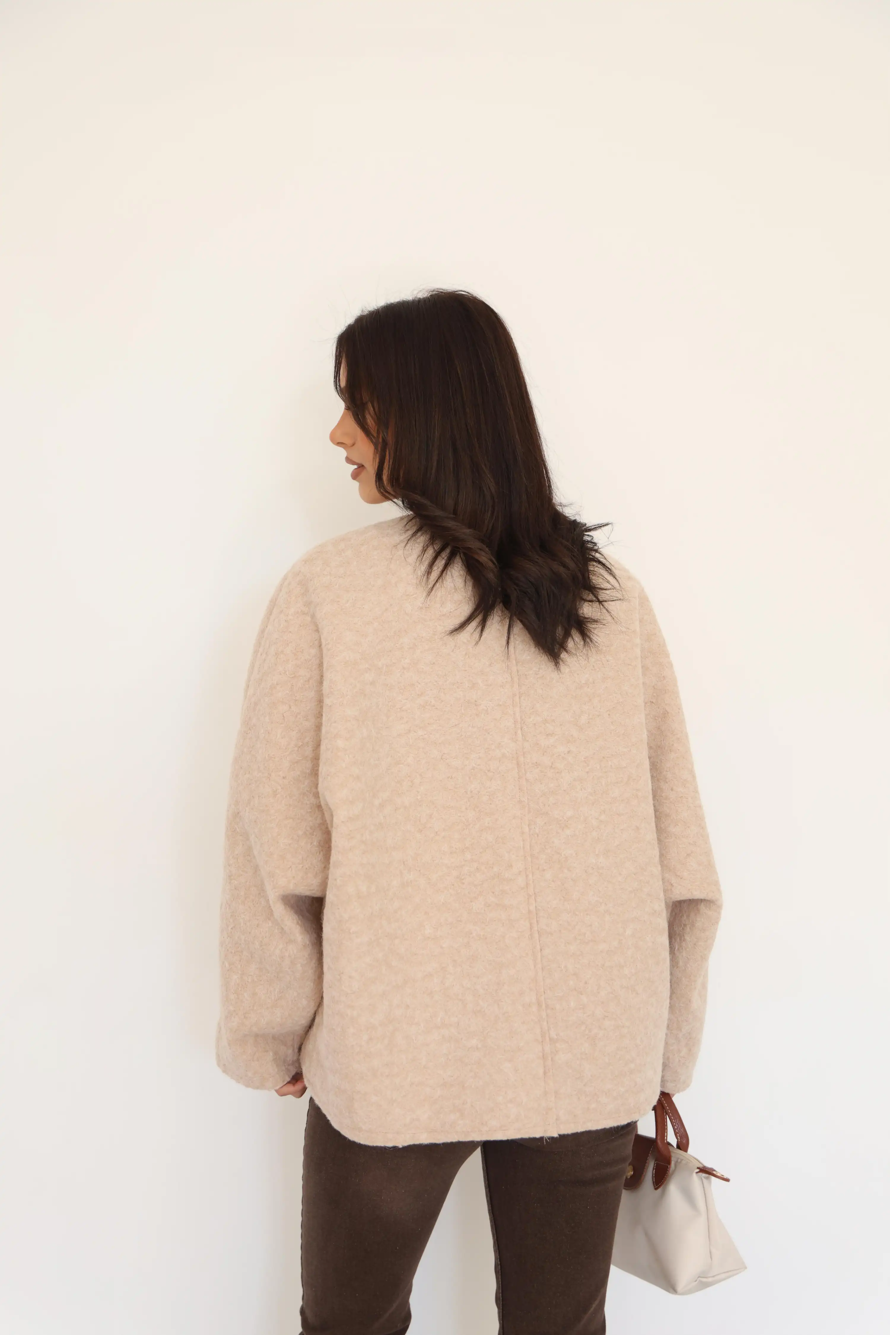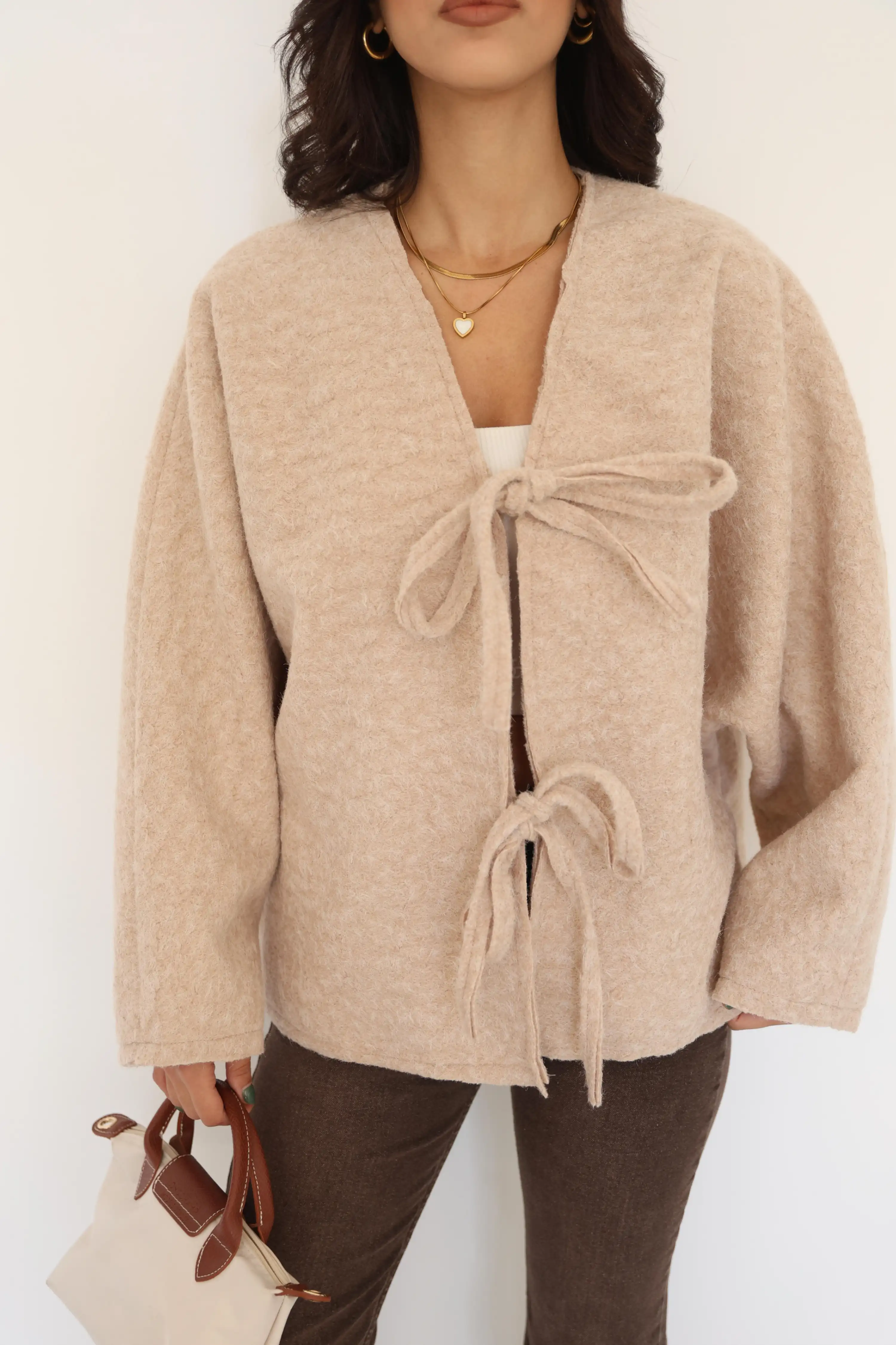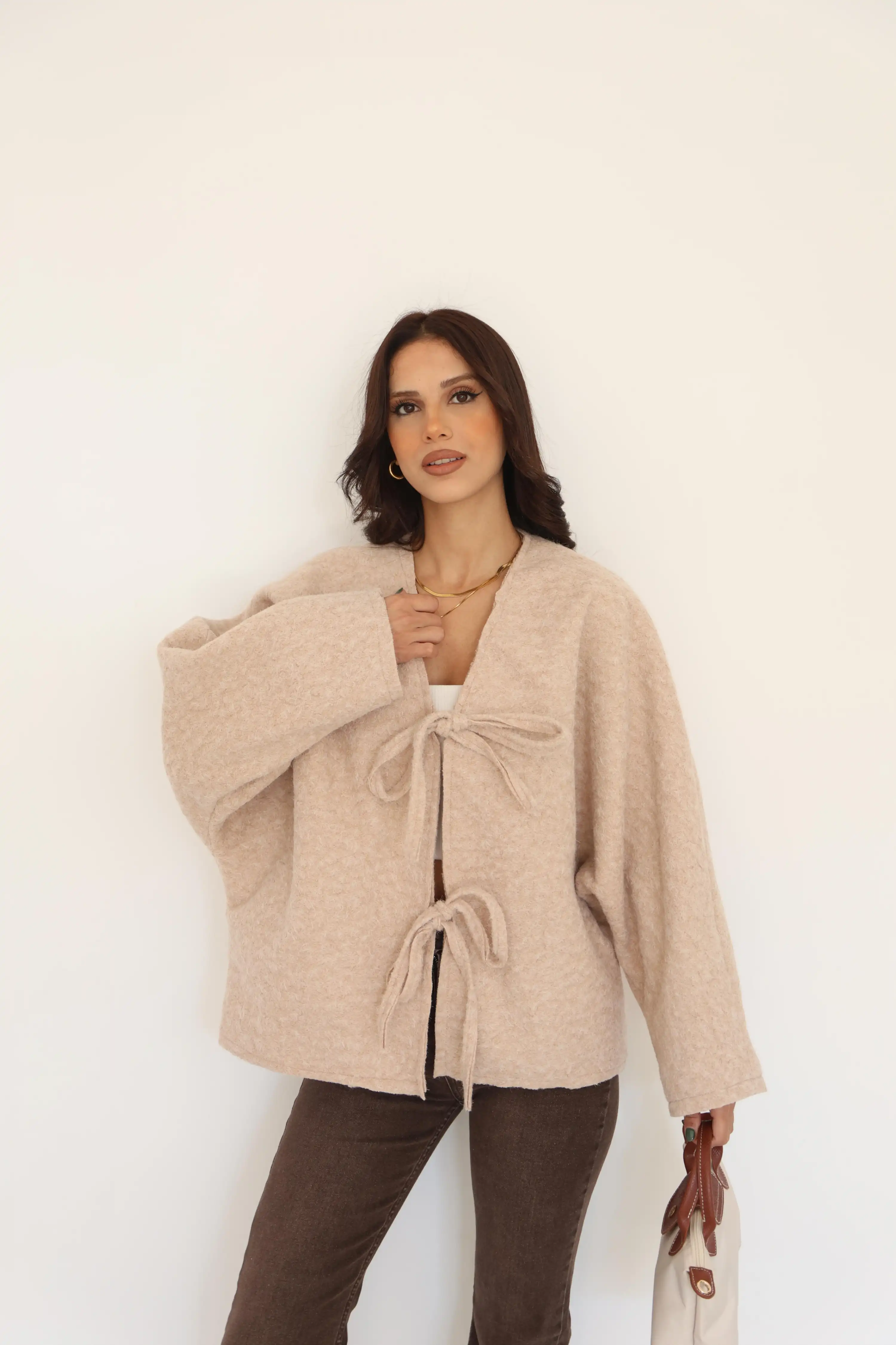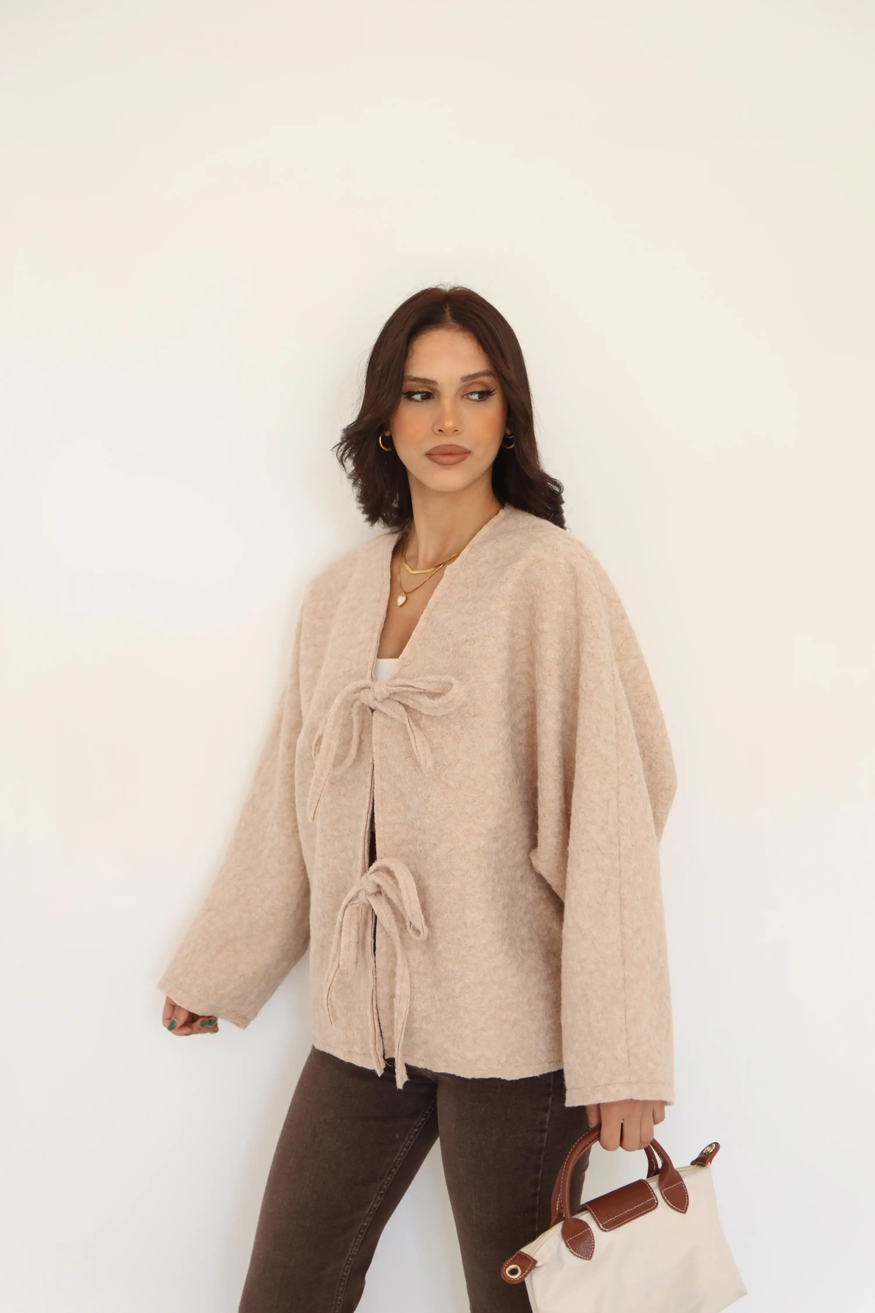 KEÇE KAŞE ÖNDEN BAĞLAMALI CEKET-KREM