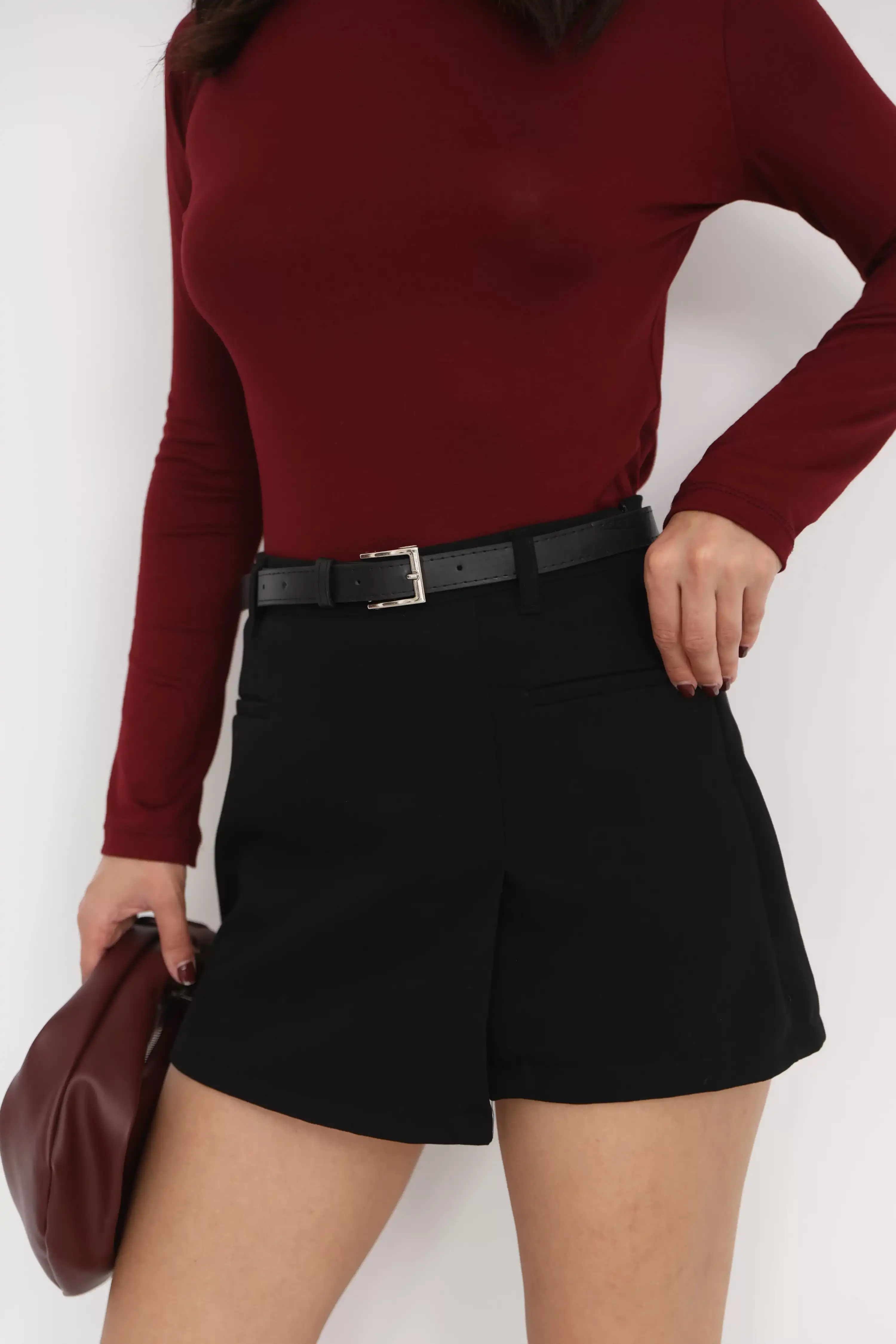 KEMERLİ MİNİ ŞORT ETEK-SİYAH